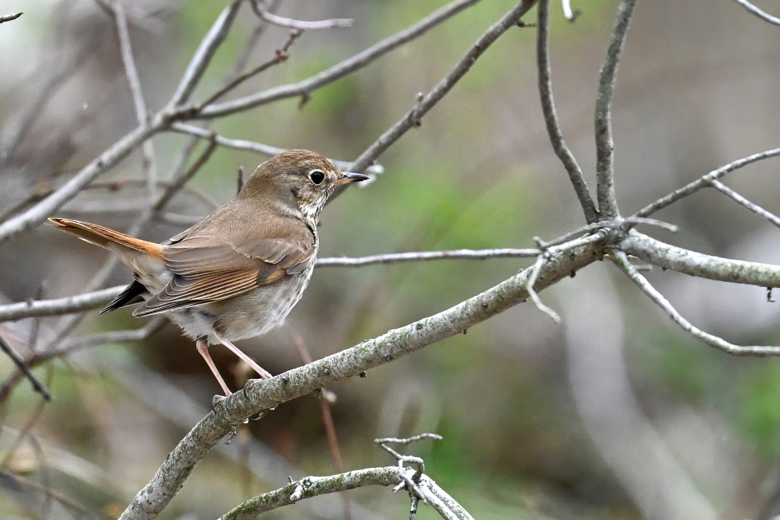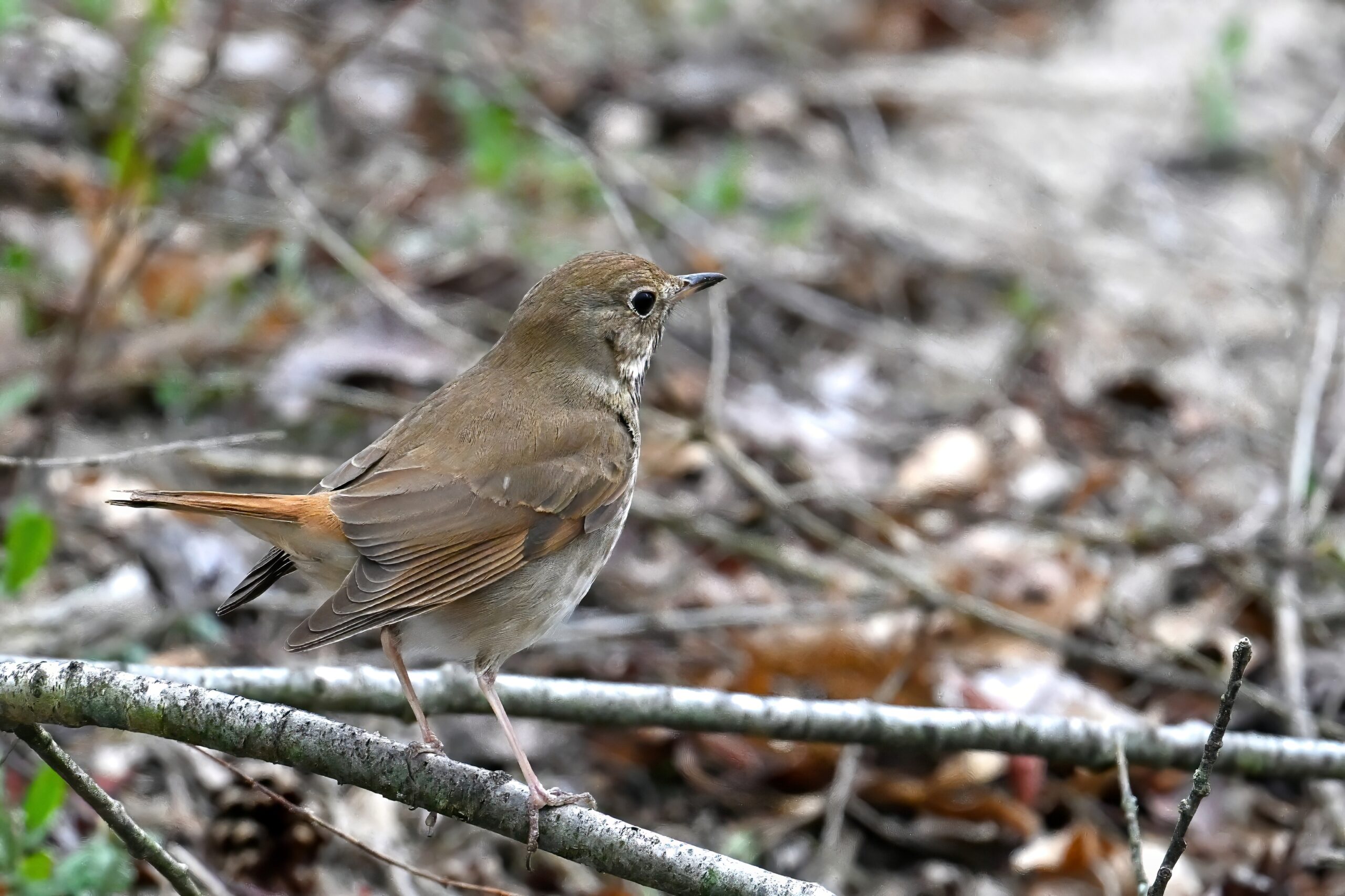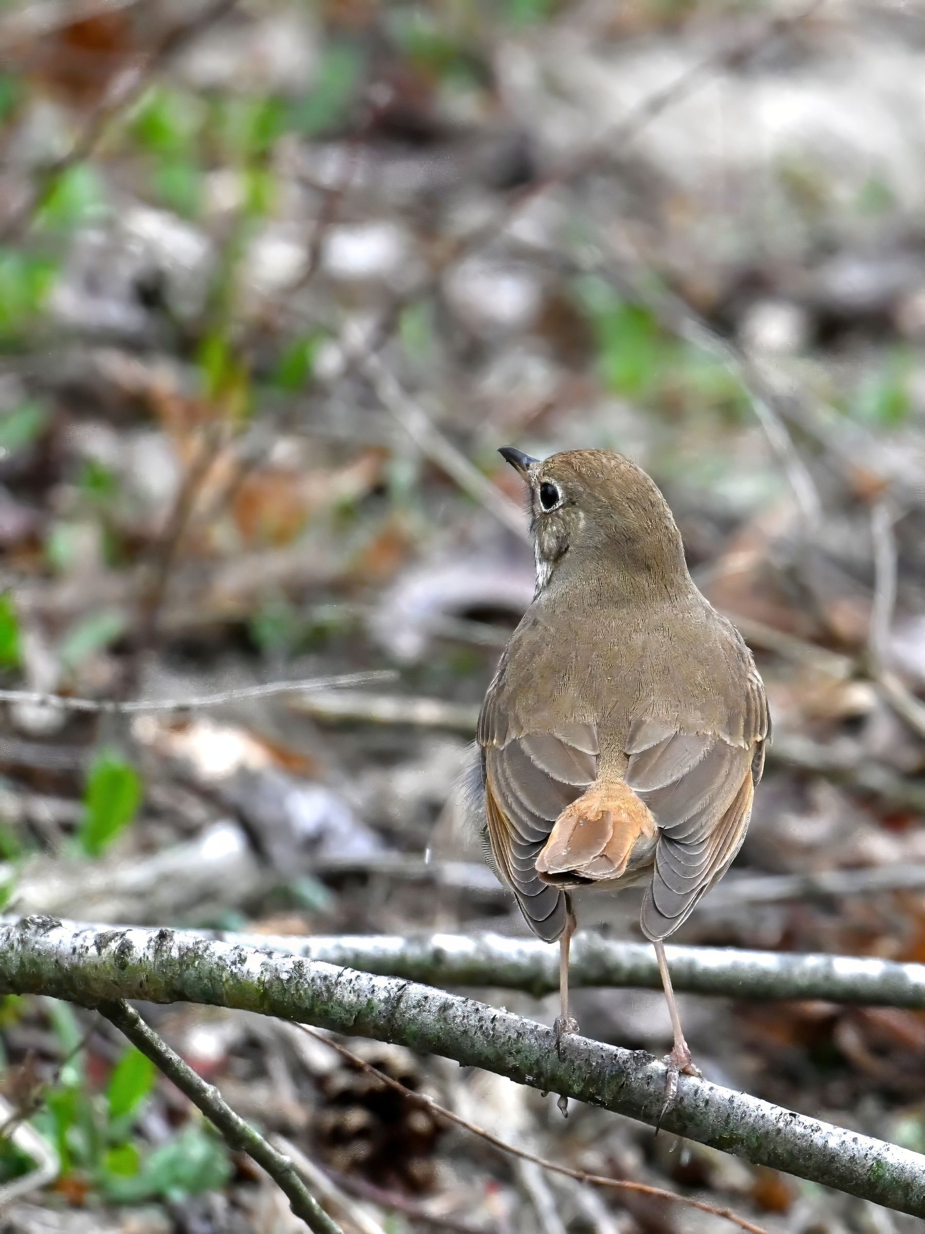 Really nice sighting of a Hermit Thrush right along the trail. Note the rufous tail contrasting w/ brown back: