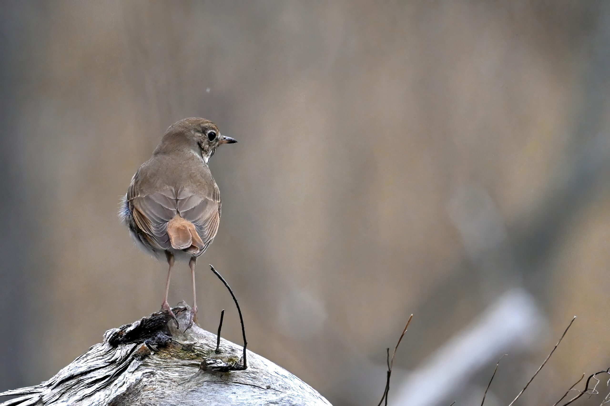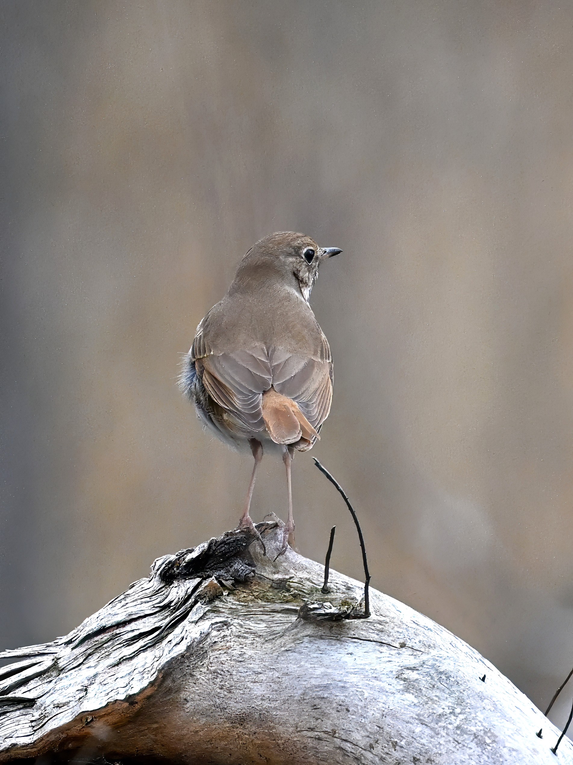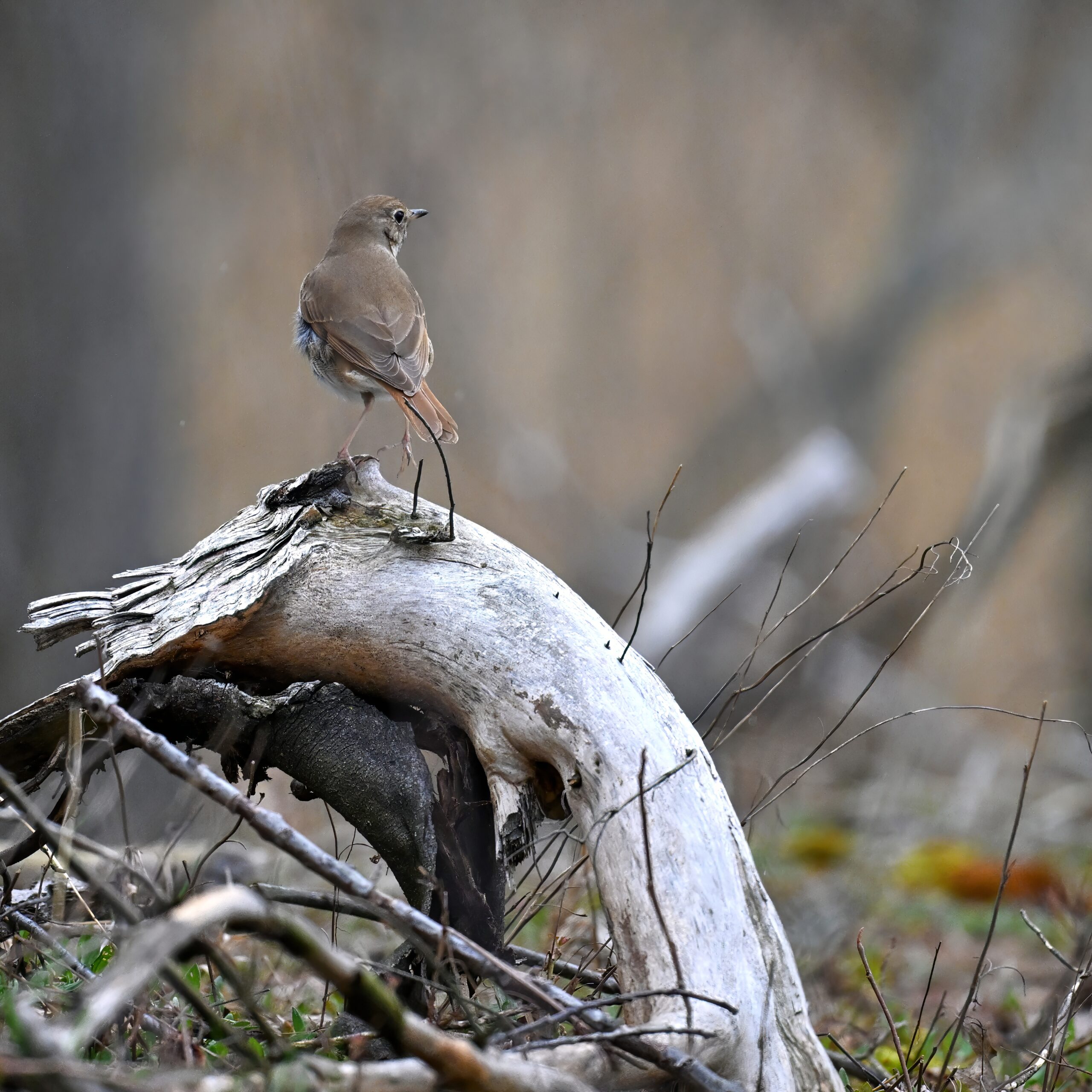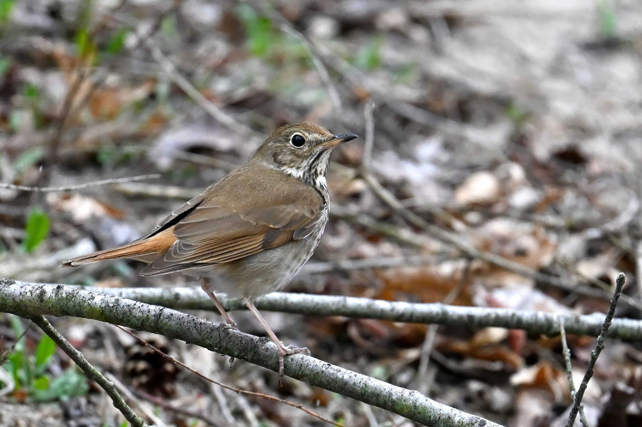 Really nice sighting of a Hermit Thrush right along the trail. Note the rufous tail contrasting w/ brown back: