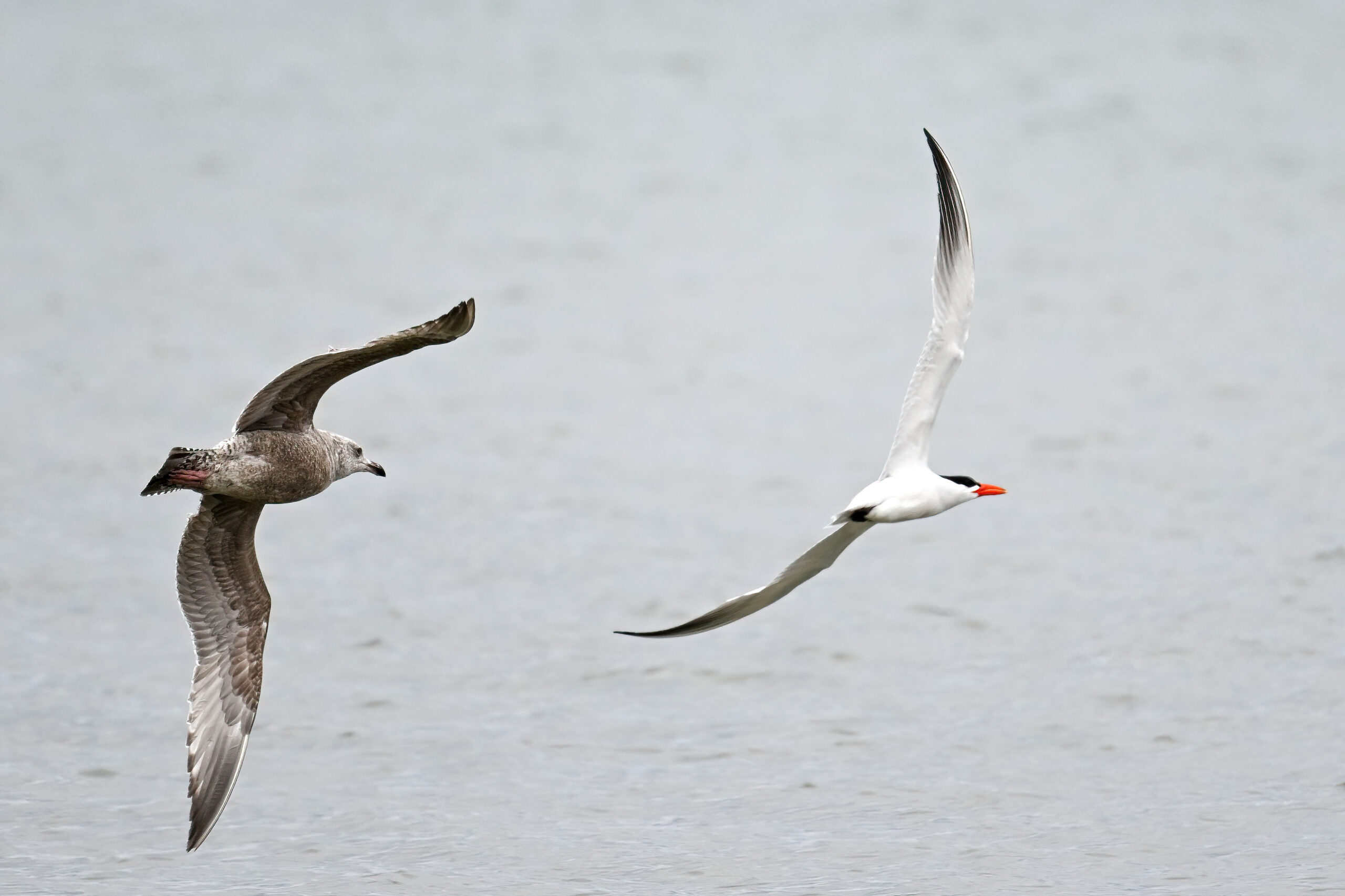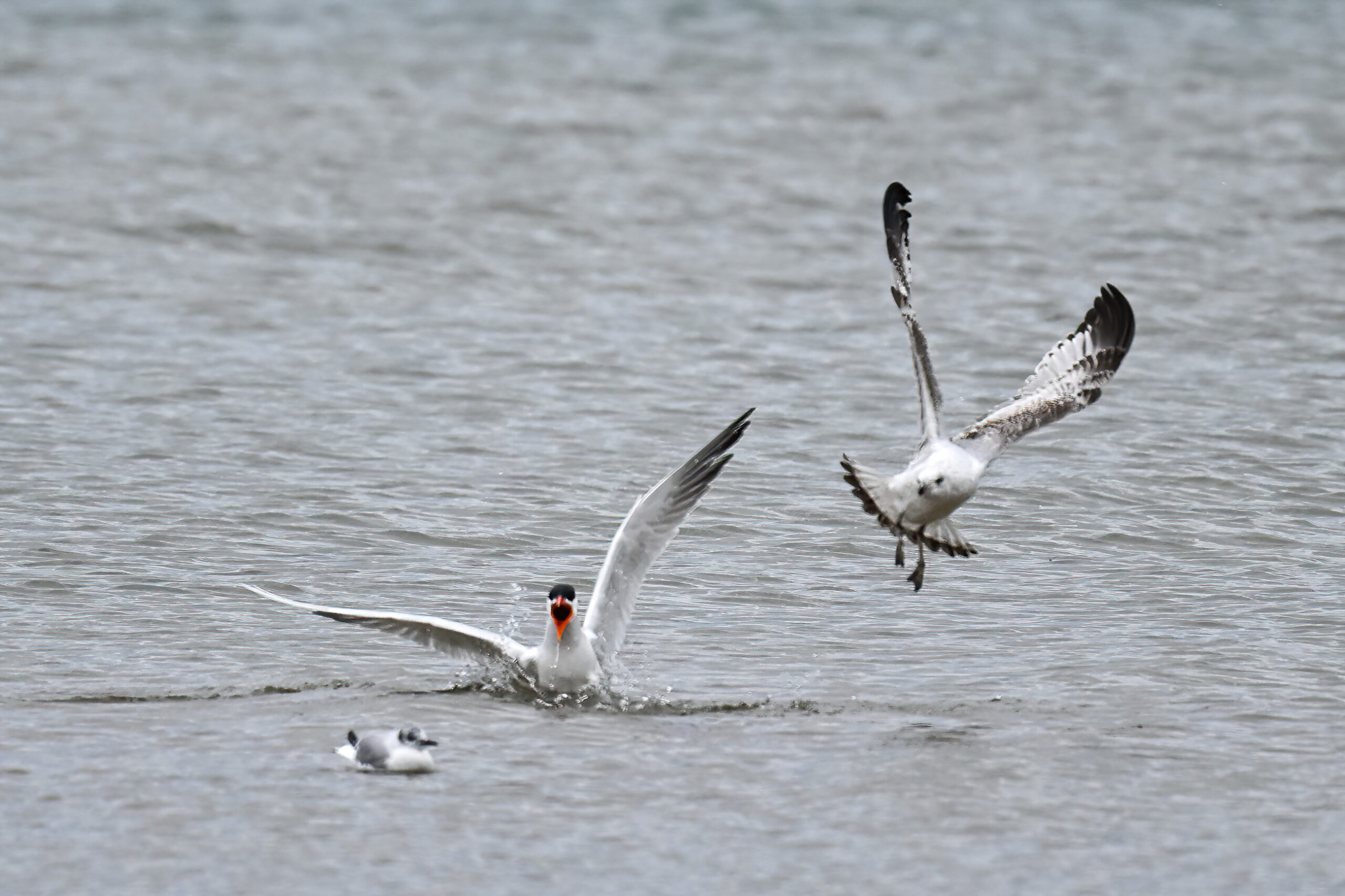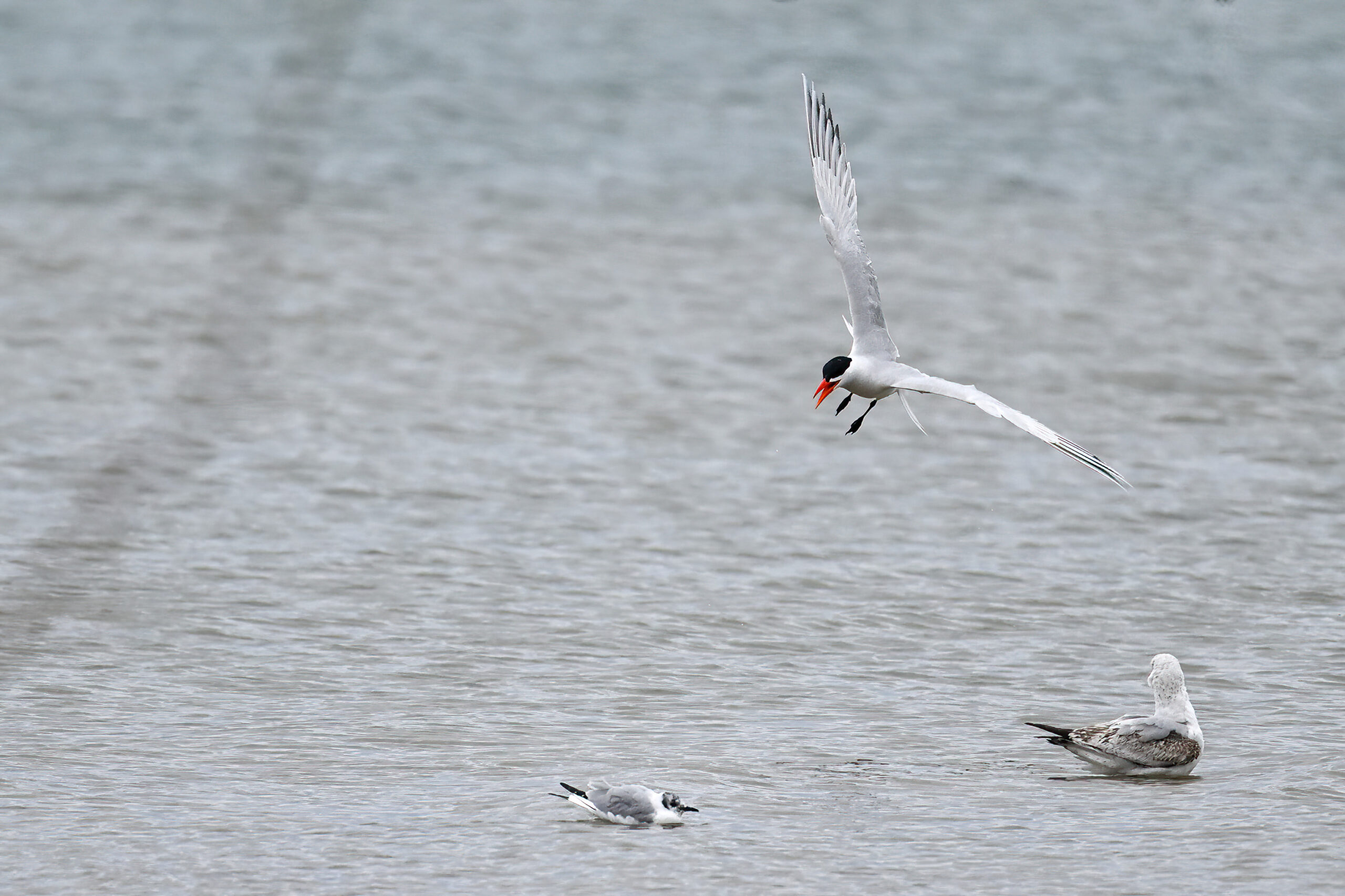 Herring GullHerring Gull (l) + Caspian Tern (r)Caspian Ternw/ Bonaparte’s Gull at lower leftw/ probably Ring-billed Gull (immature) on right