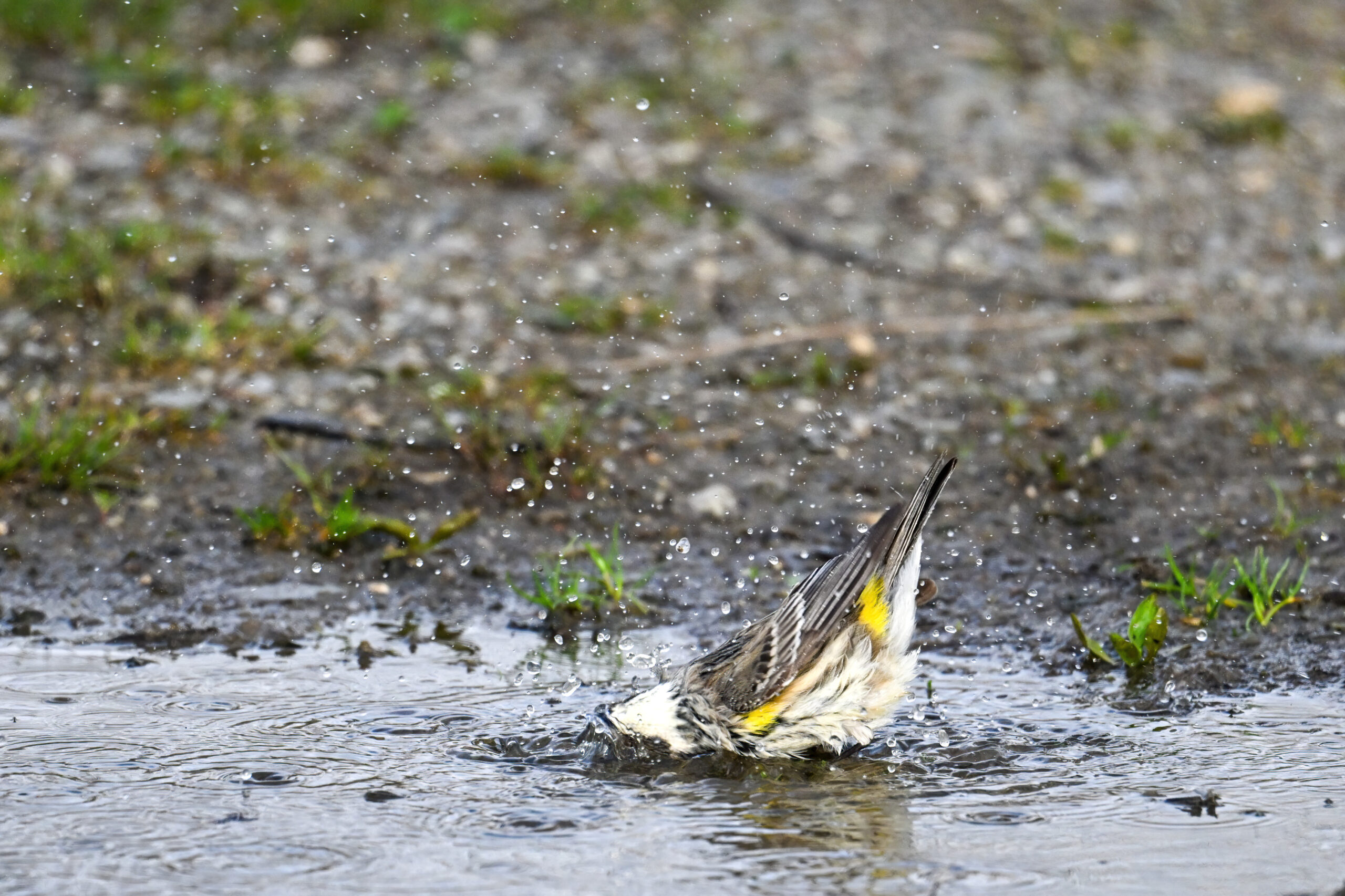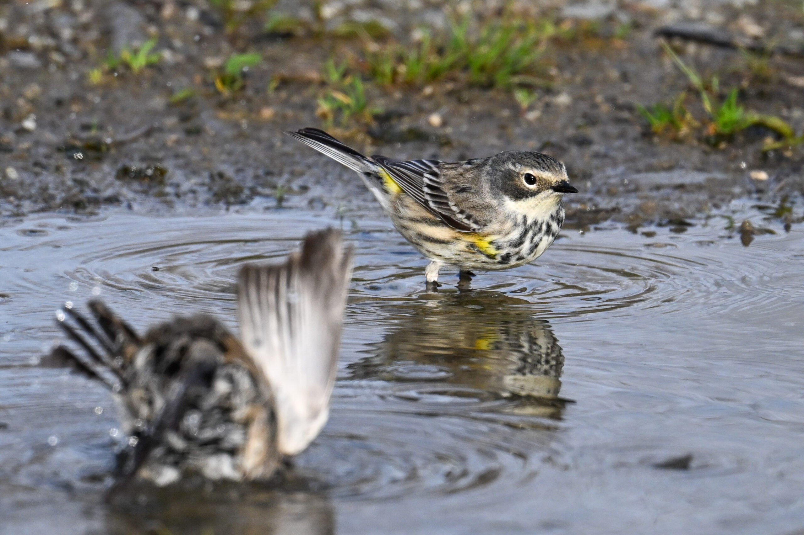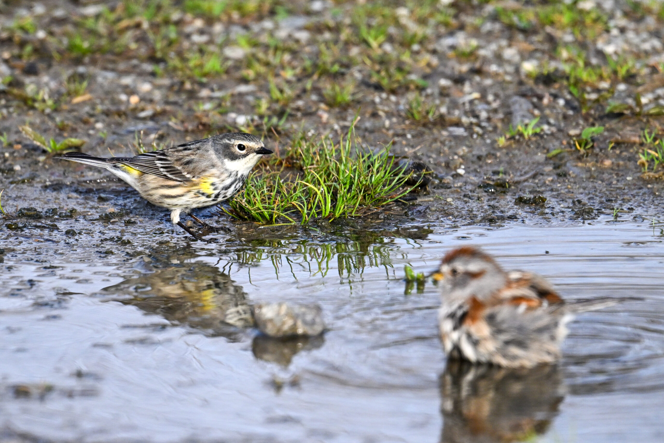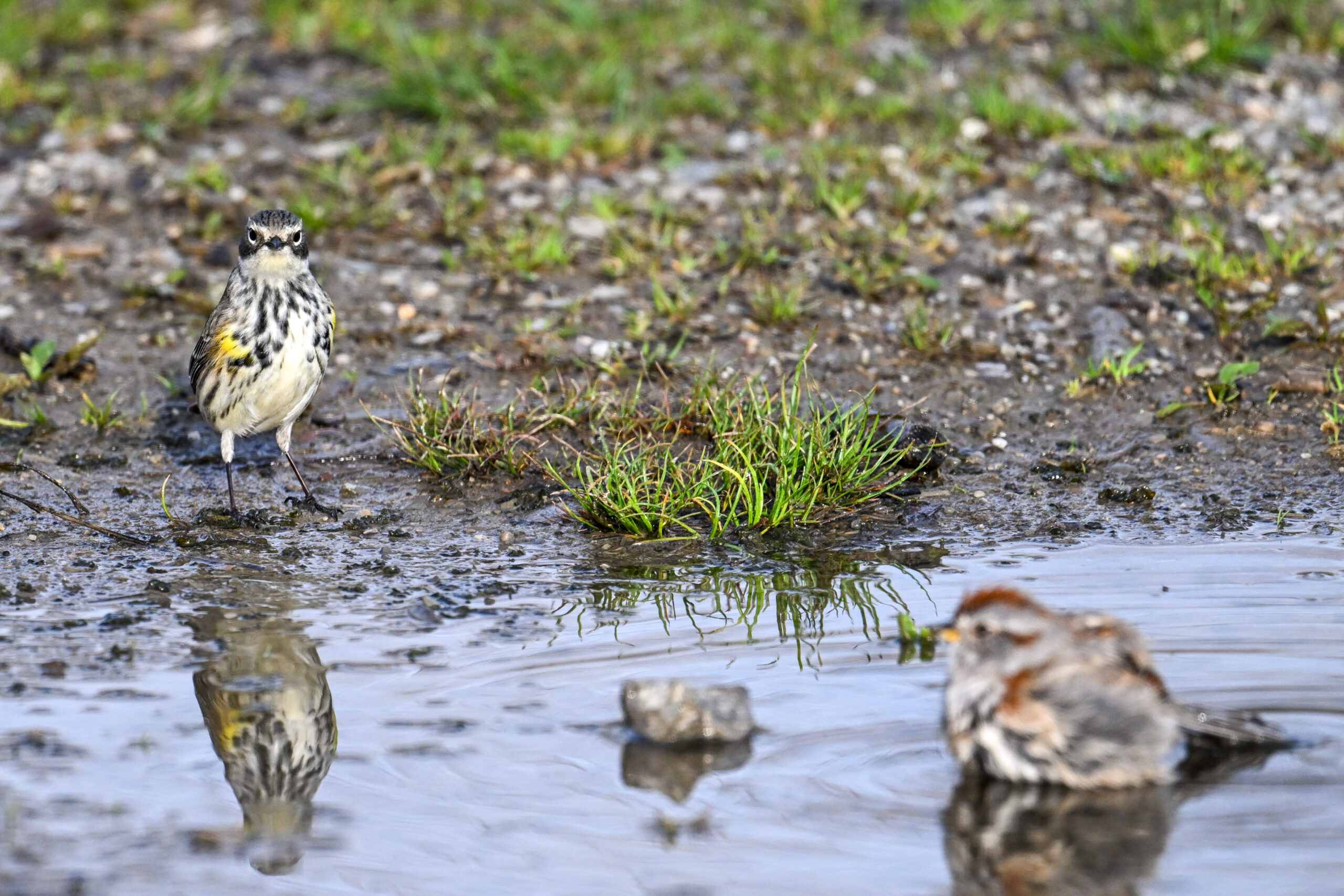 Celebrating one of the first BirdingPI.com warblers of the year w/ beautiful Yellow-rumped Warbler at Presque Isle State Park the other day (proximate an American Tree Sparrow @ bathing):