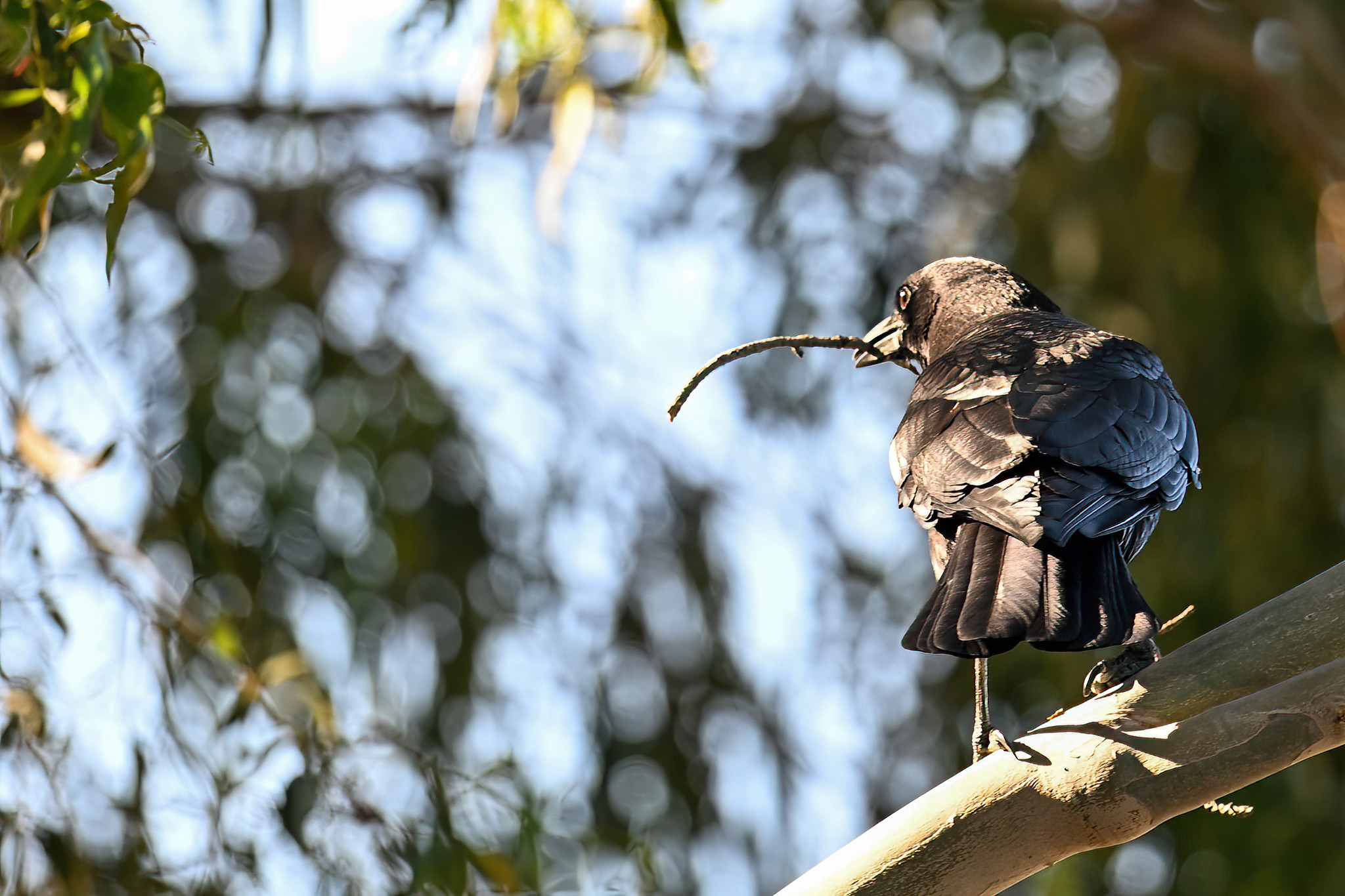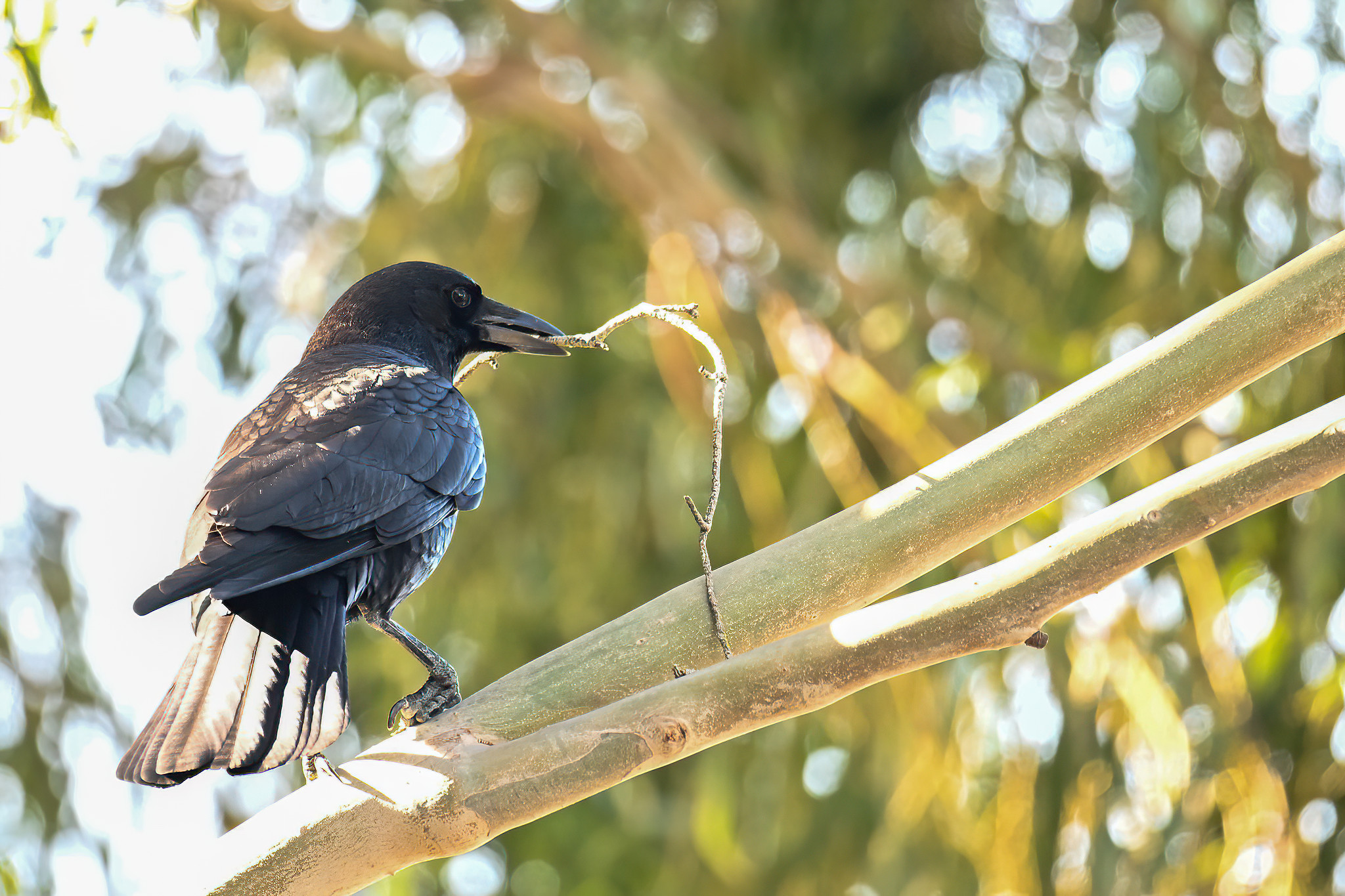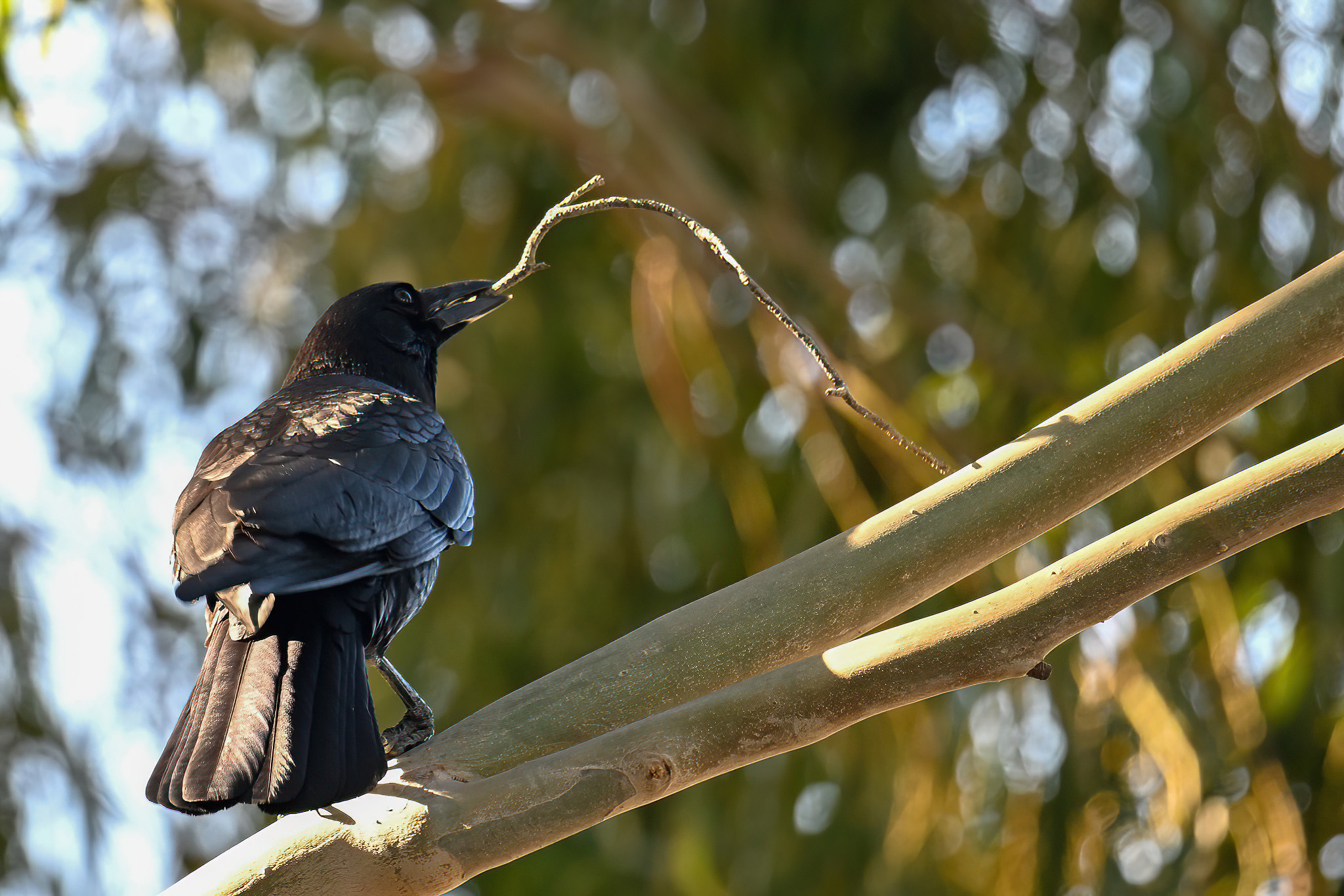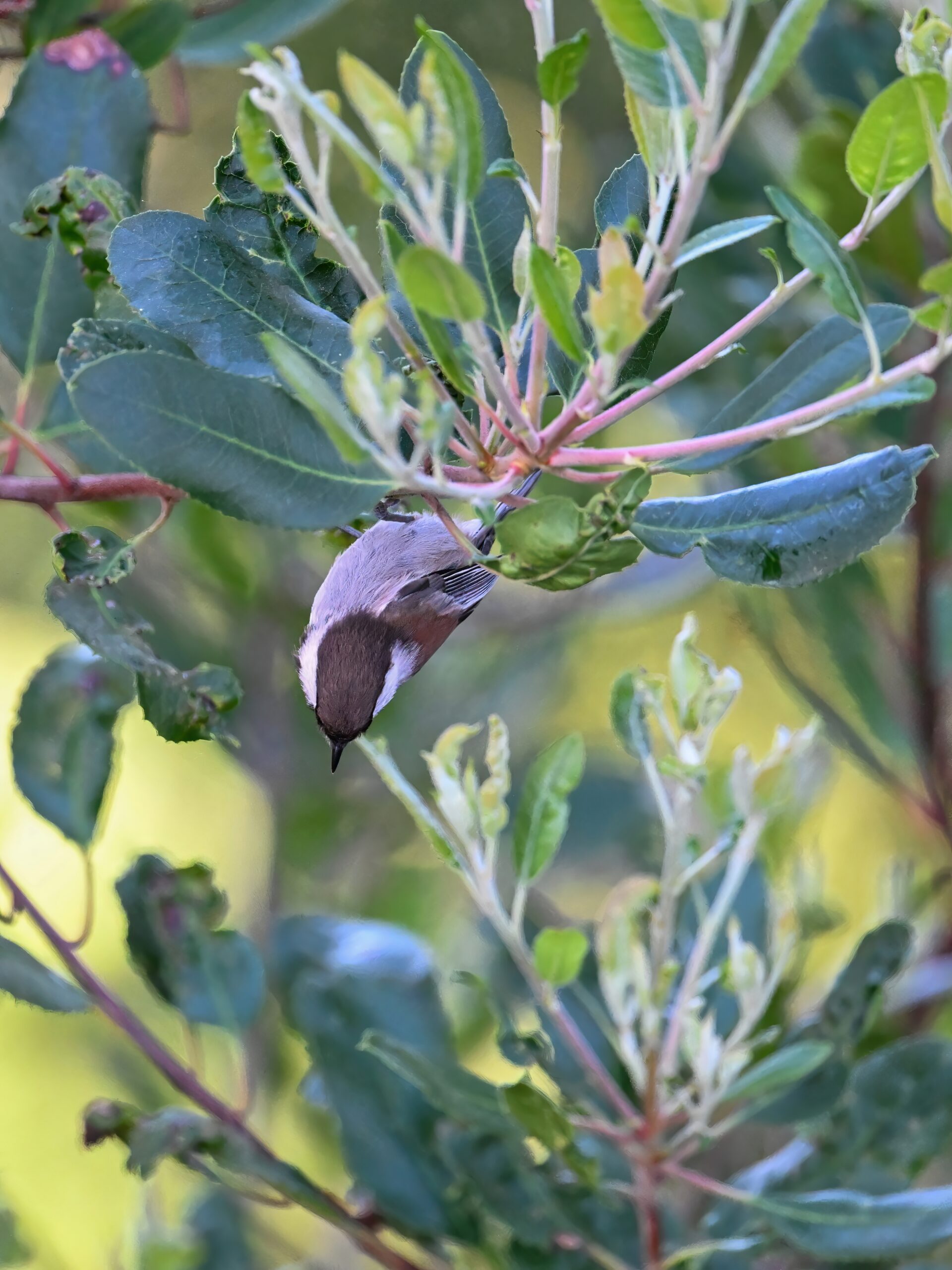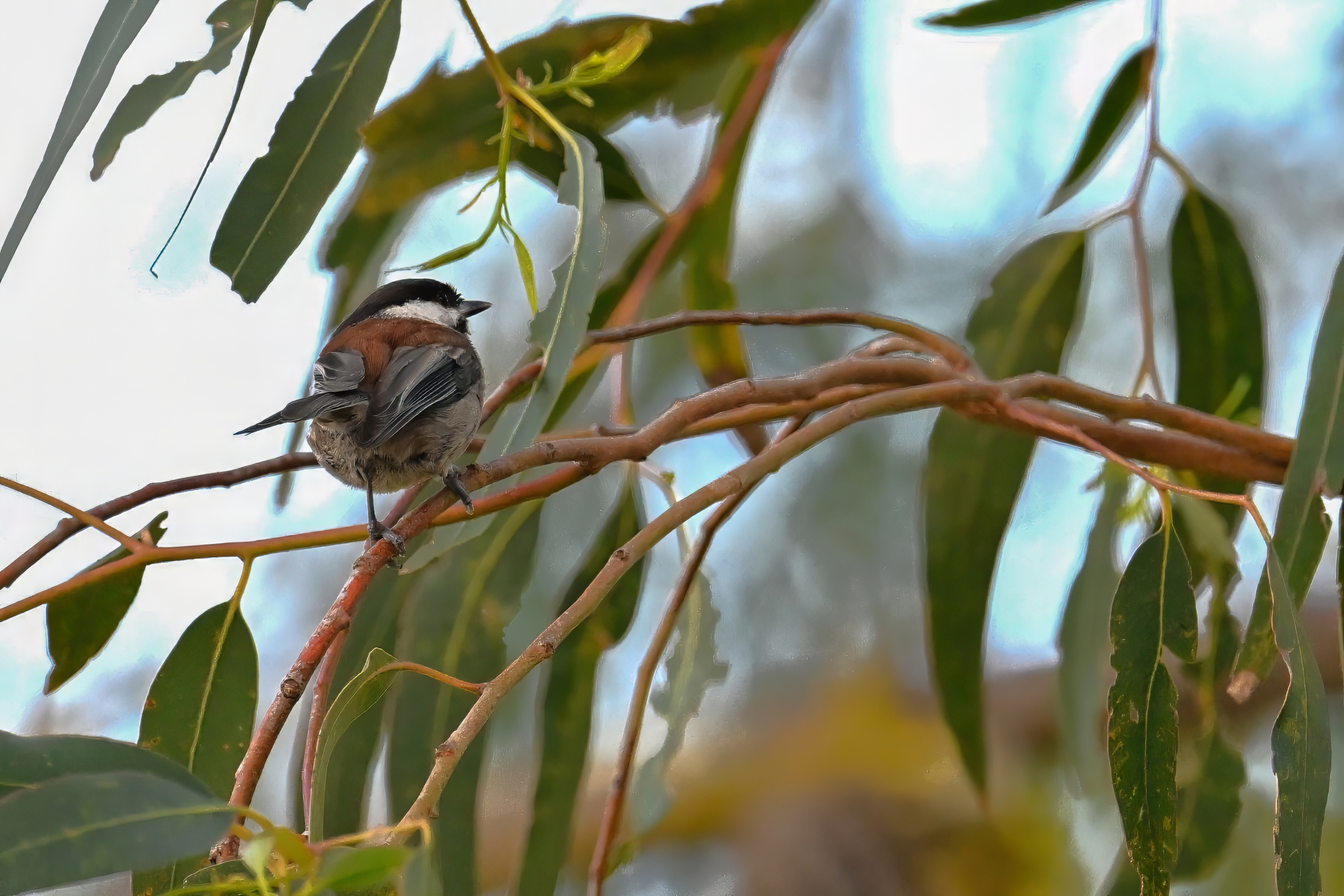 Back to March at the lovely campus of the College of San Mateo in San Mateo, California, featuring beautiful Chestnut-backed Chickadee x American Crow exhibiting “carrying nesting material” behaviour: