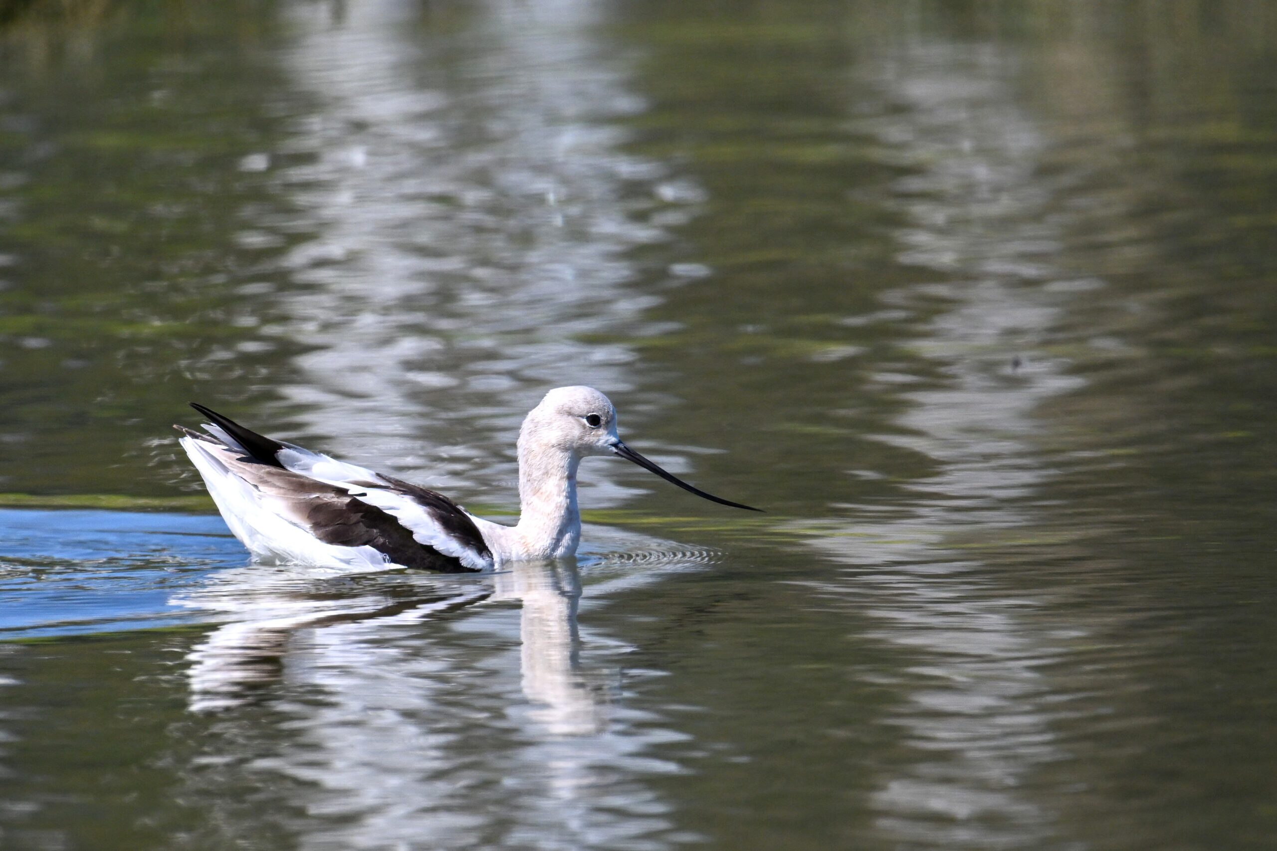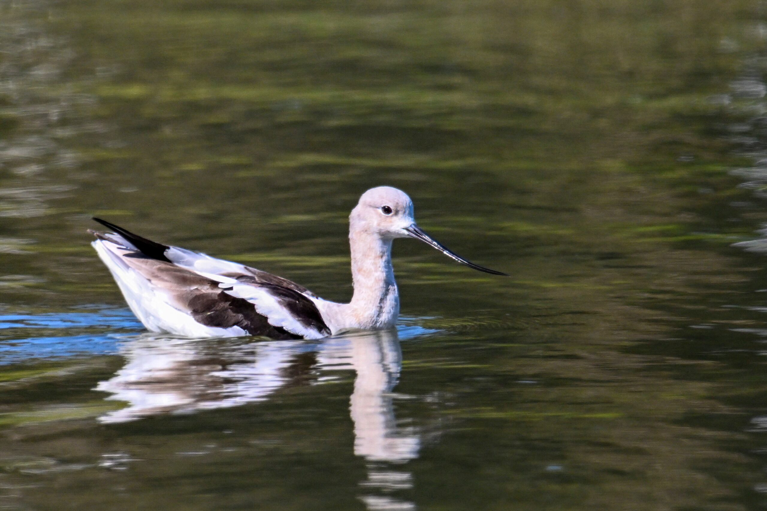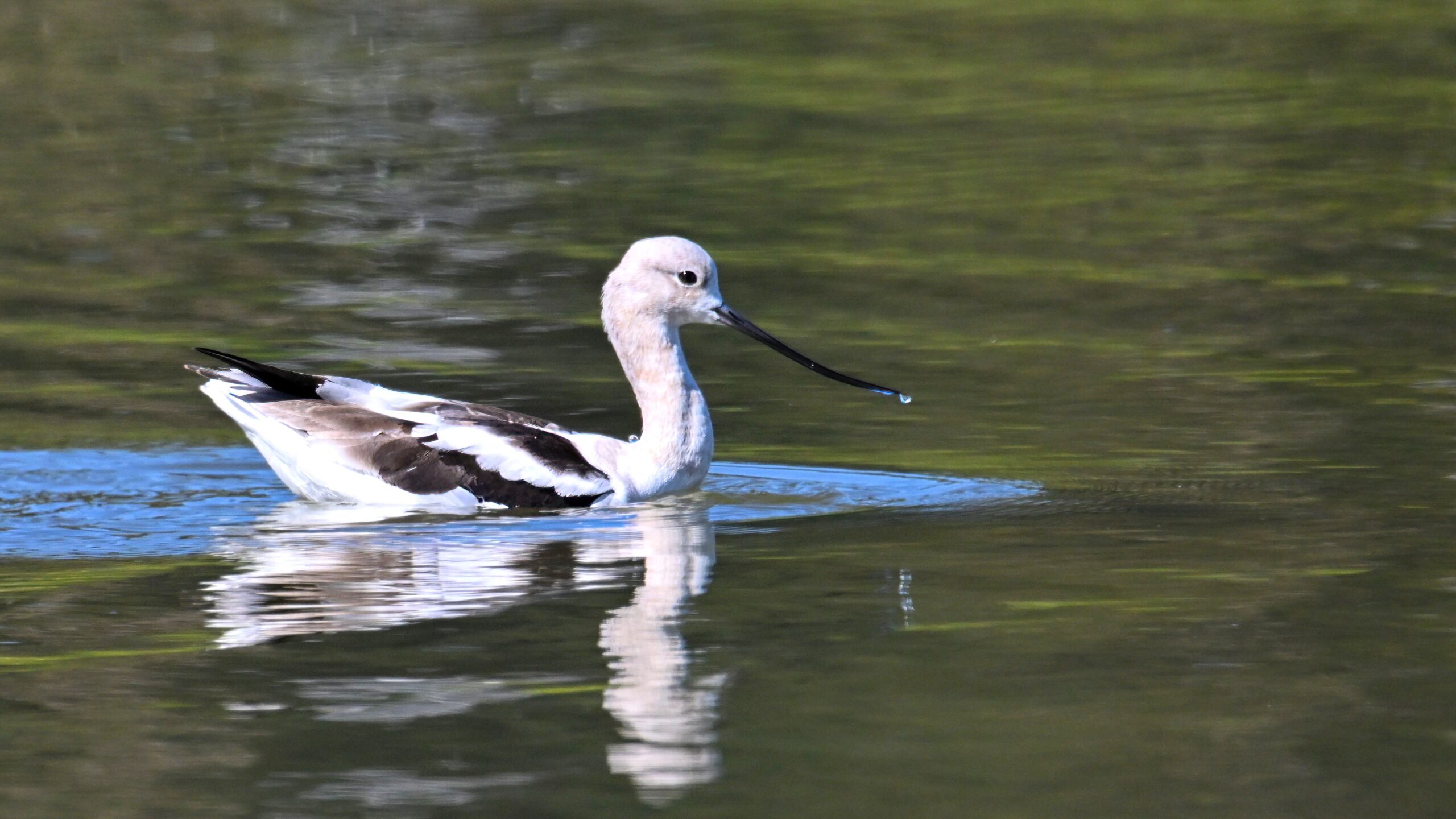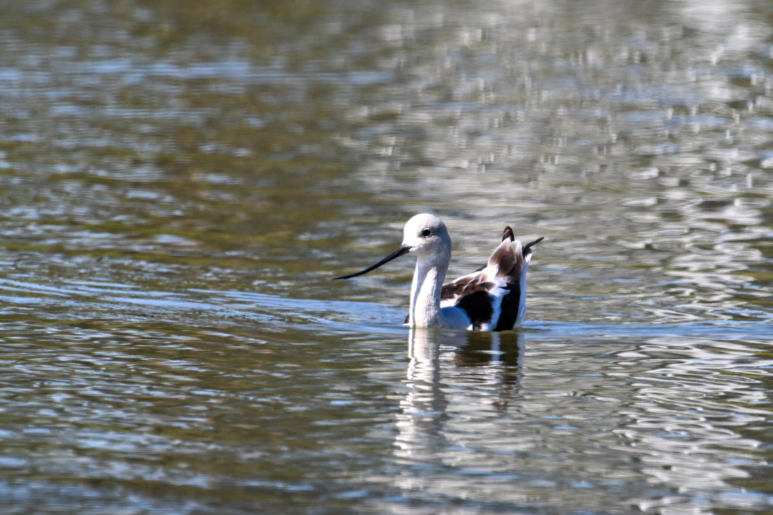 With the mediocre spring weather continuing in Erie County, PA, back to sunnier/warmer times in March @ San Francisco Bay Area, with more from Coyote Point County Park featuring a gorgeous, non-breeding/immature American Avocet exhibiting paddling and dabbling behaviour: