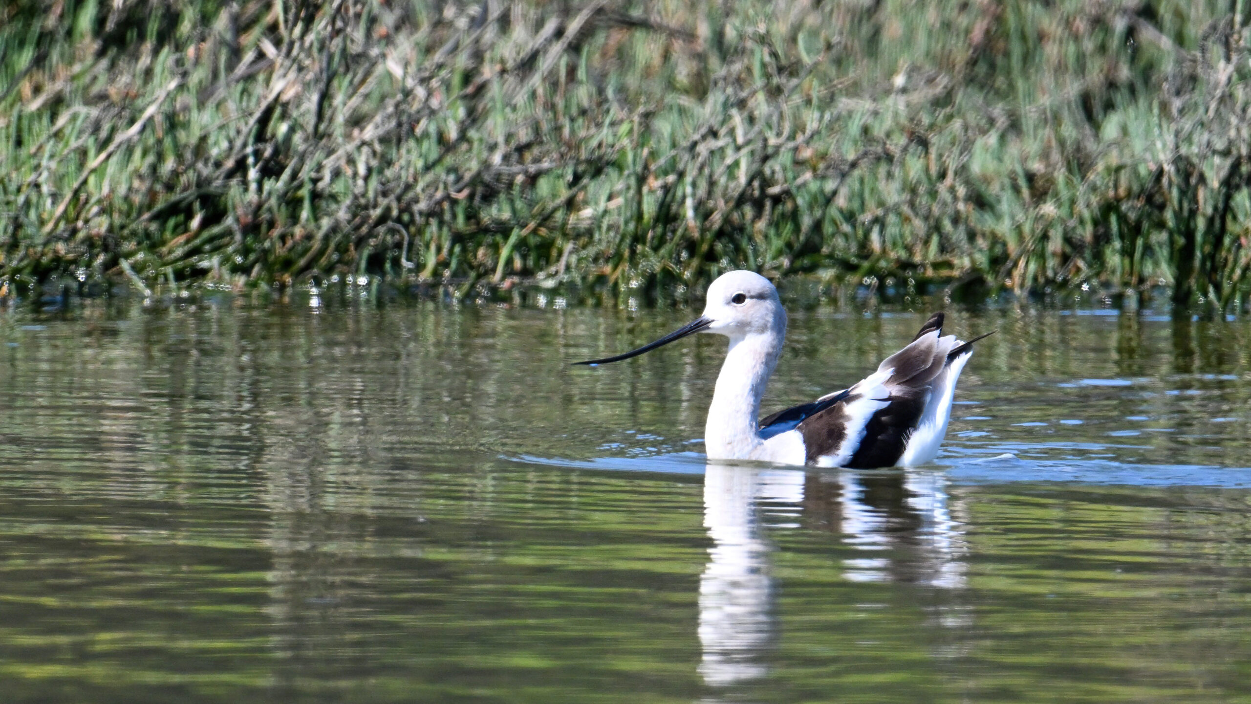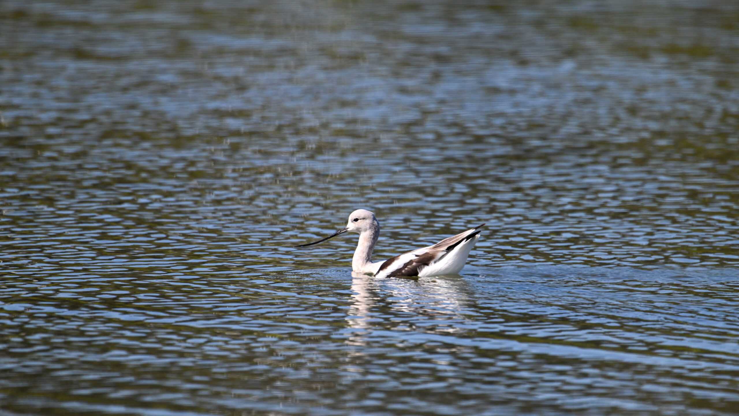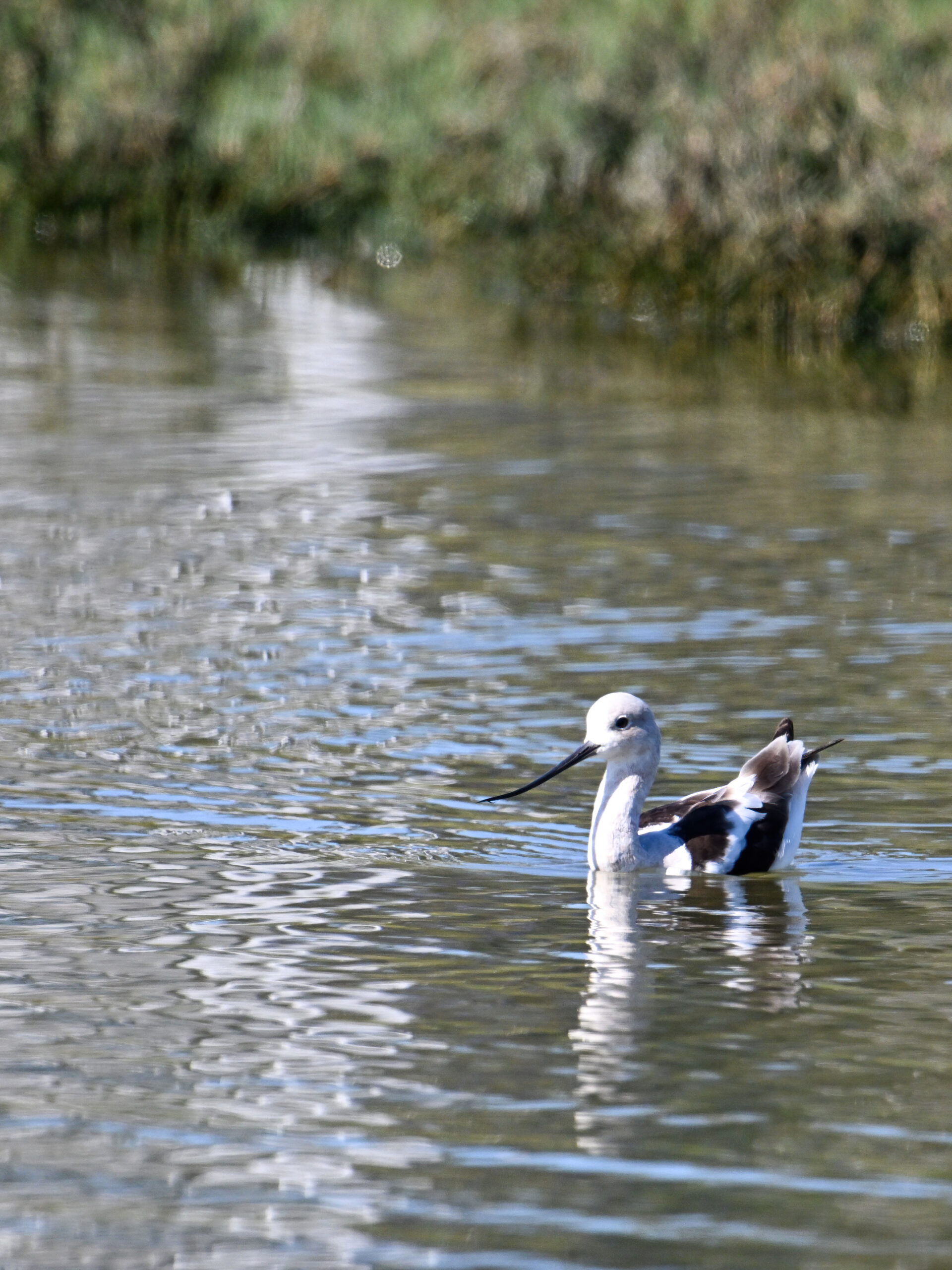 With the mediocre spring weather continuing in Erie County, PA, back to sunnier/warmer times in March @ San Francisco Bay Area, with more from Coyote Point County Park featuring a gorgeous, non-breeding/immature American Avocet exhibiting paddling and dabbling behaviour: