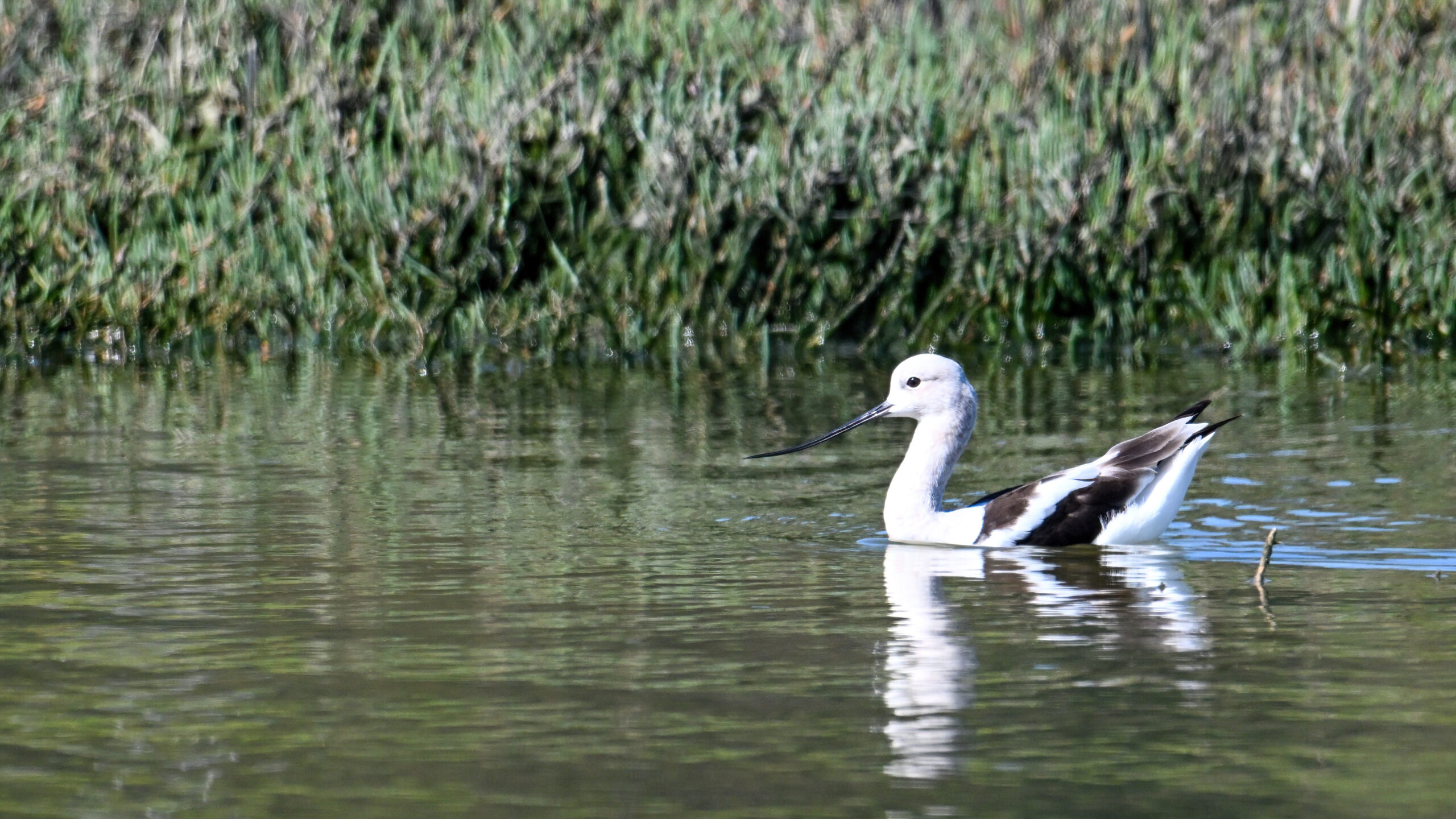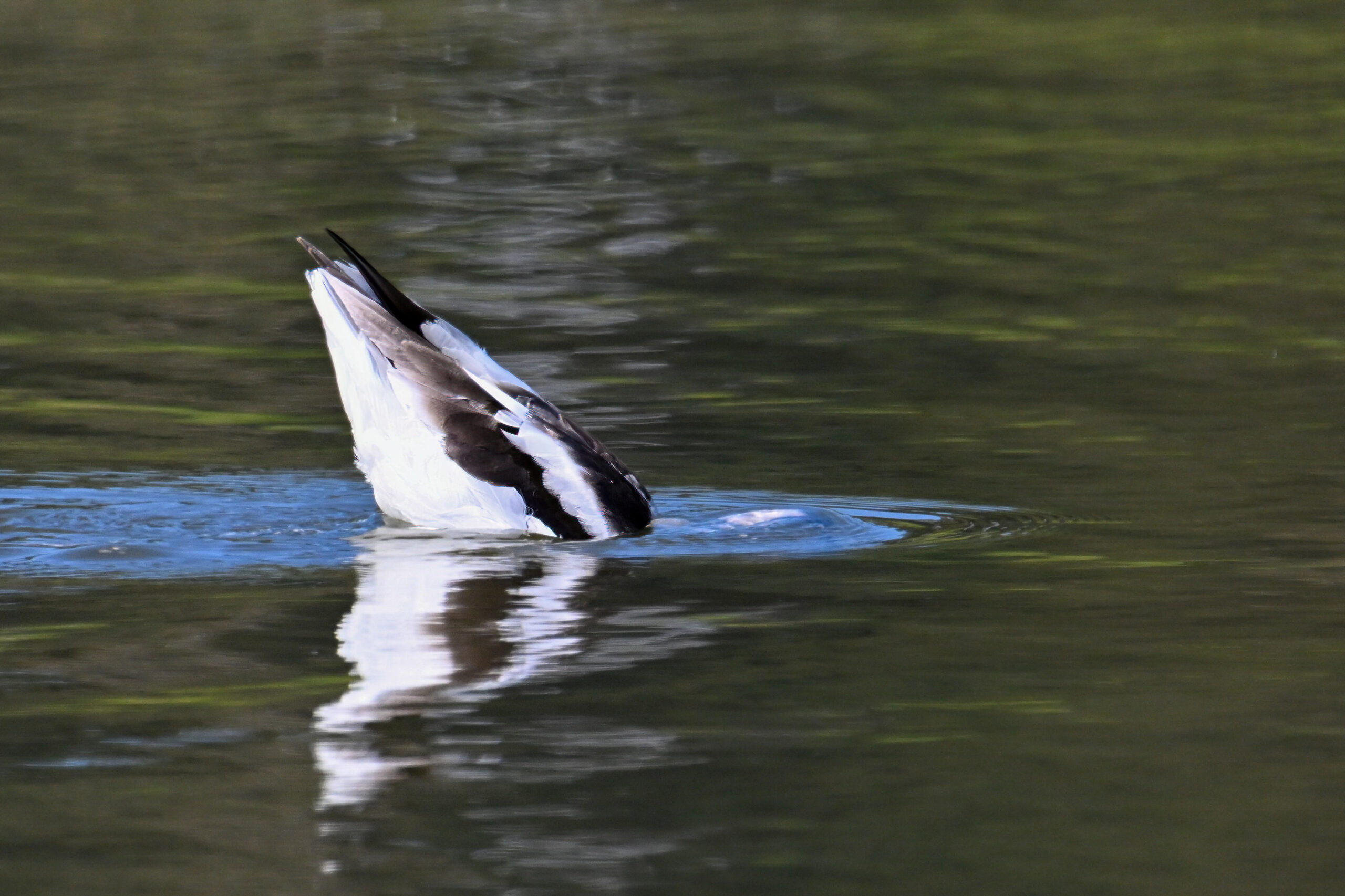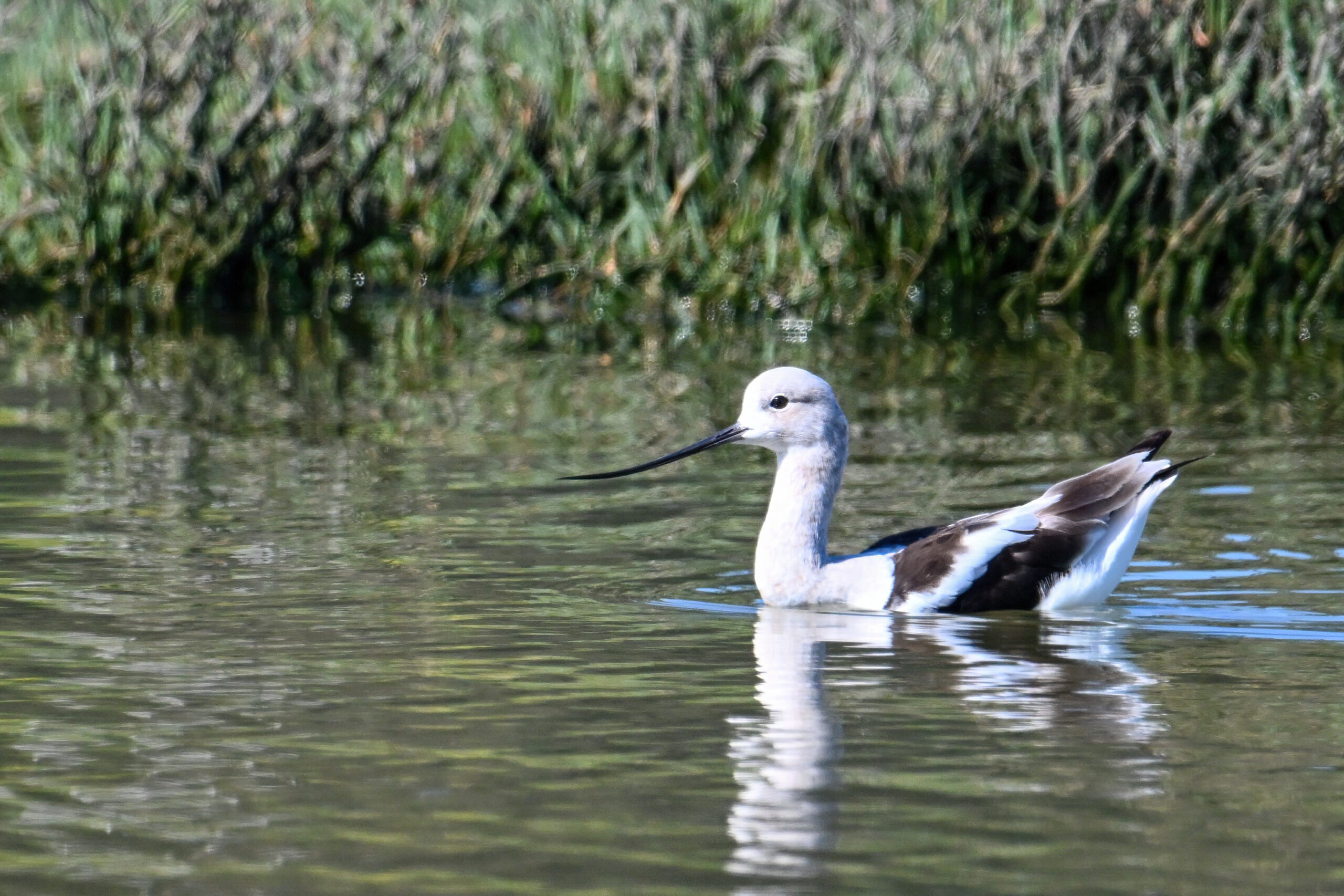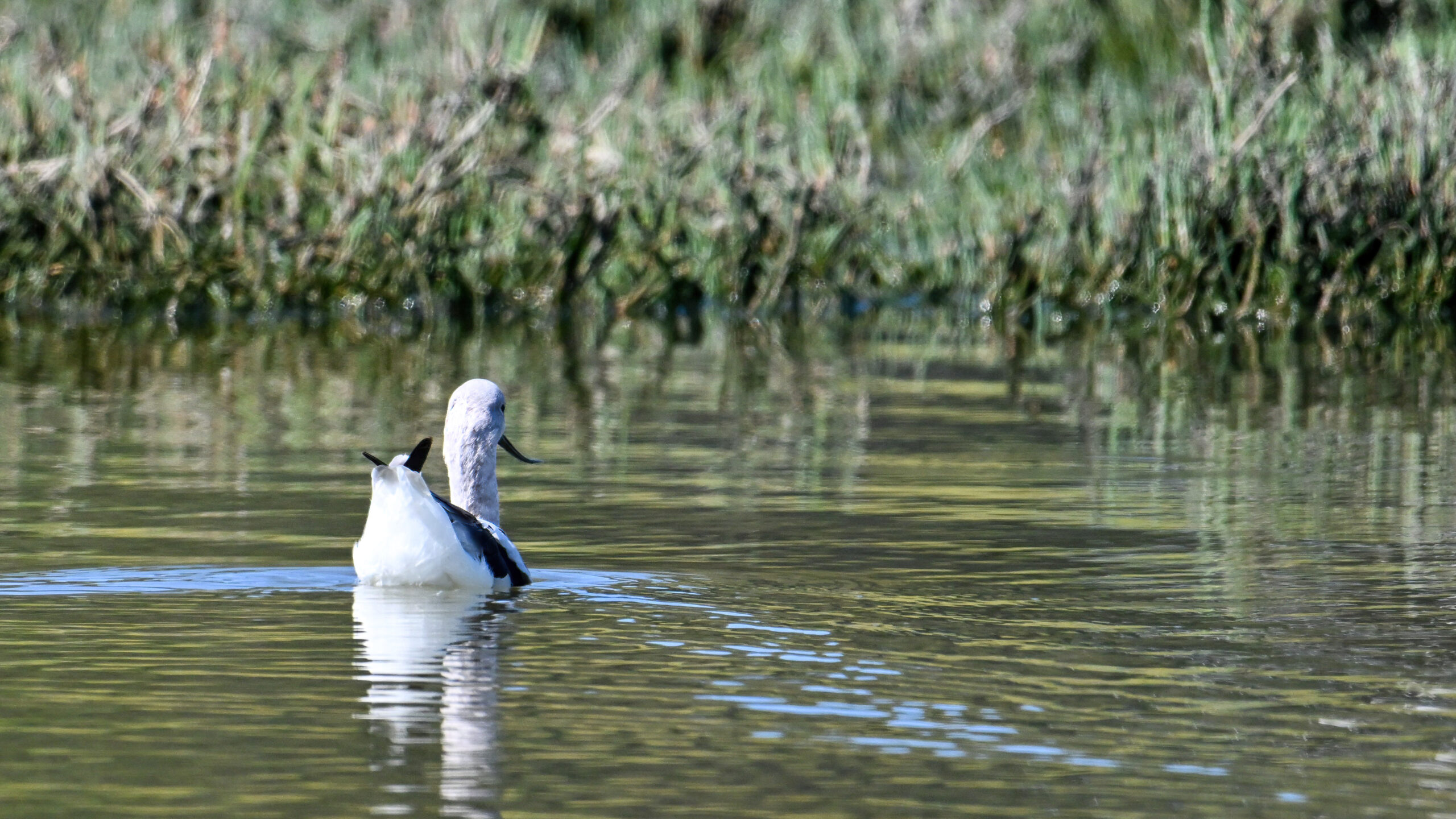With the mediocre spring weather continuing in Erie County, PA, back to sunnier/warmer times in March @ San Francisco Bay Area, with more from Coyote Point County Park featuring a gorgeous, non-breeding/immature American Avocet exhibiting paddling and dabbling behaviour: