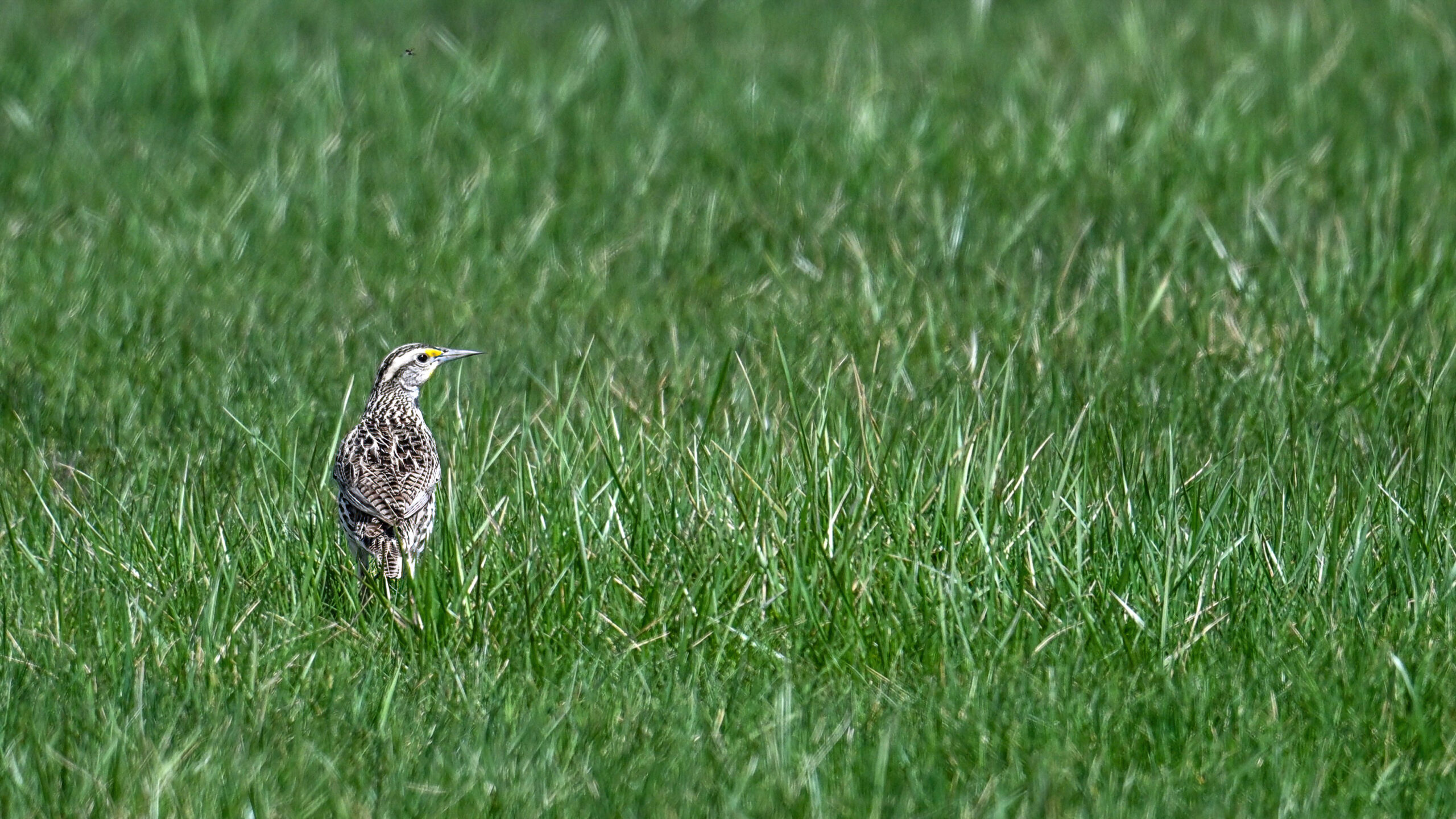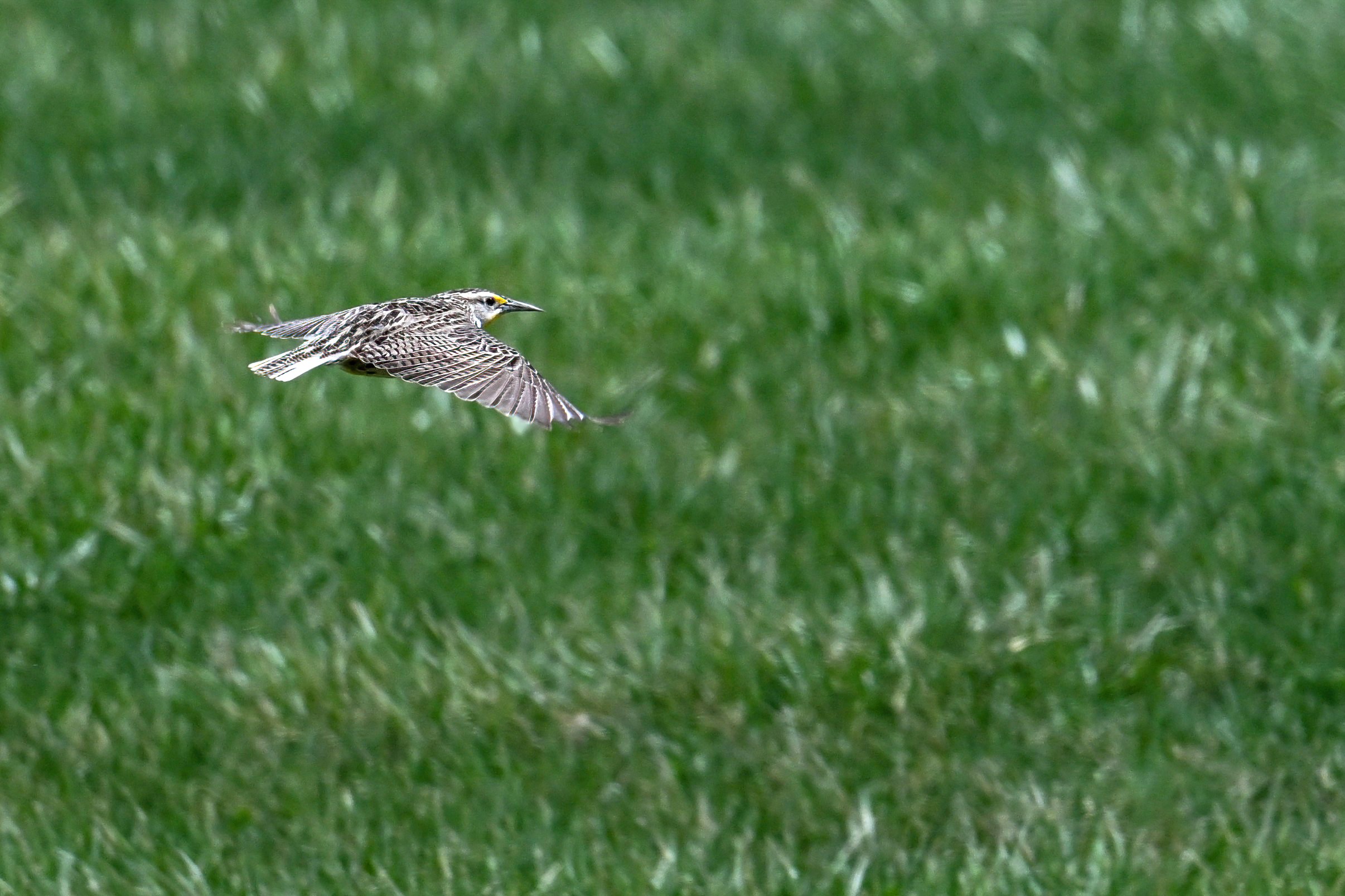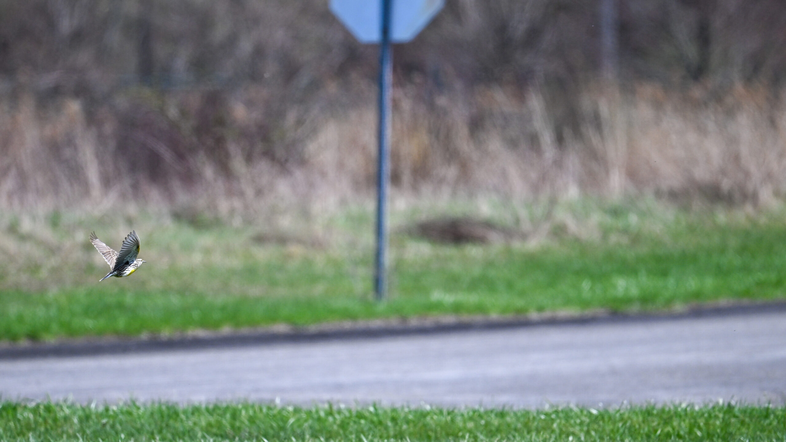 Might as well finish up from last Saturday at Fairview Business Park, specifically, the central area of the east campus = Flag Park (open for public access as a Fairview Twp, PA town park) and Lake Melvin. With copious lawn grass surrounded by brushy undeveloped lots, a great spot for Eastern Meadowlark: