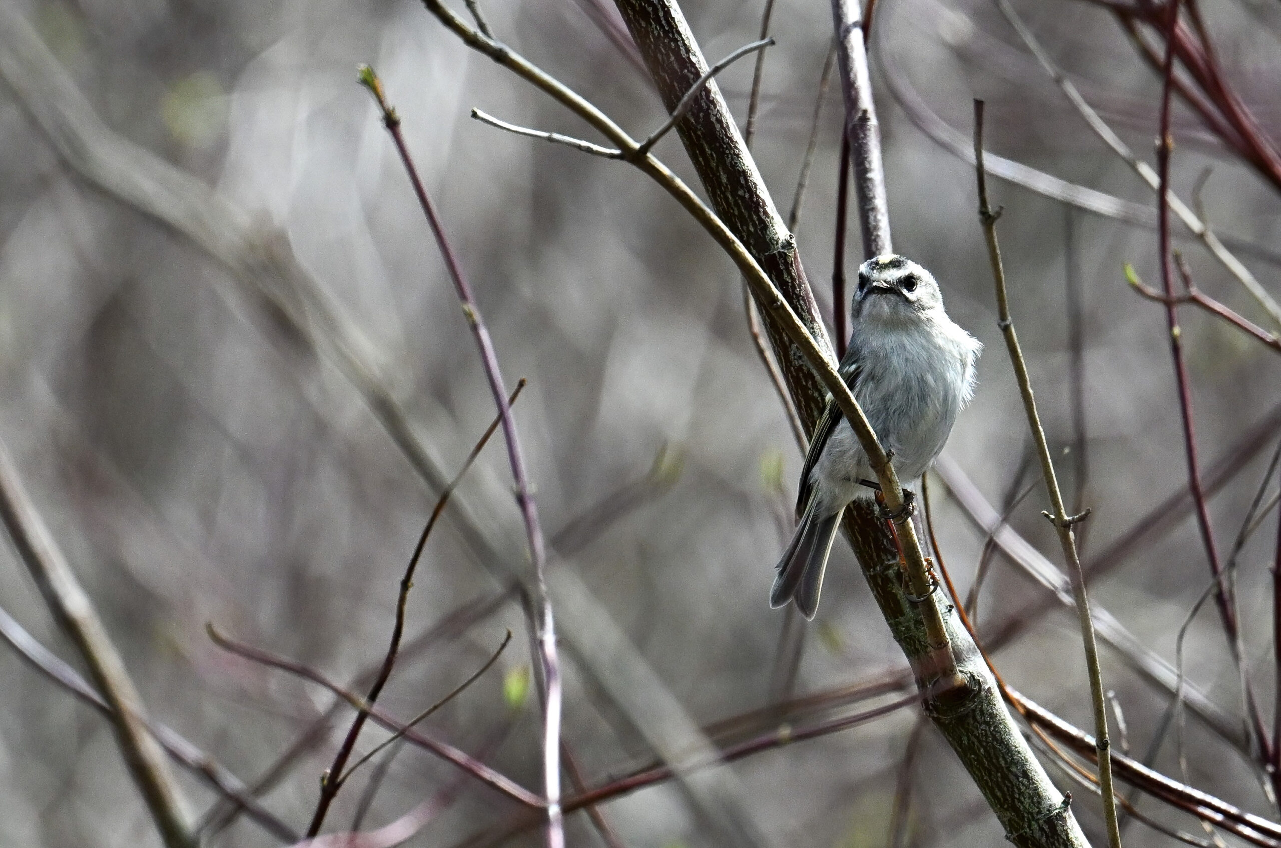 Attentive readers might have noticed a recent, brief exchange in comments about how Golden-crowned Kinglets raise their “crowns”/crests when agitated, typically during altercations with other kinglets. With that in mind, here’s a series of nice shots, in chronological order, of a Ruby-crowned Kinglet in the brush adjacent Beach 11 @ Presque Isle State Park yesterday, exhibiting similar behavior. In the vicinity, at least 3-4 other mixed Golden-crowned and Ruby-crowned Kinglets: