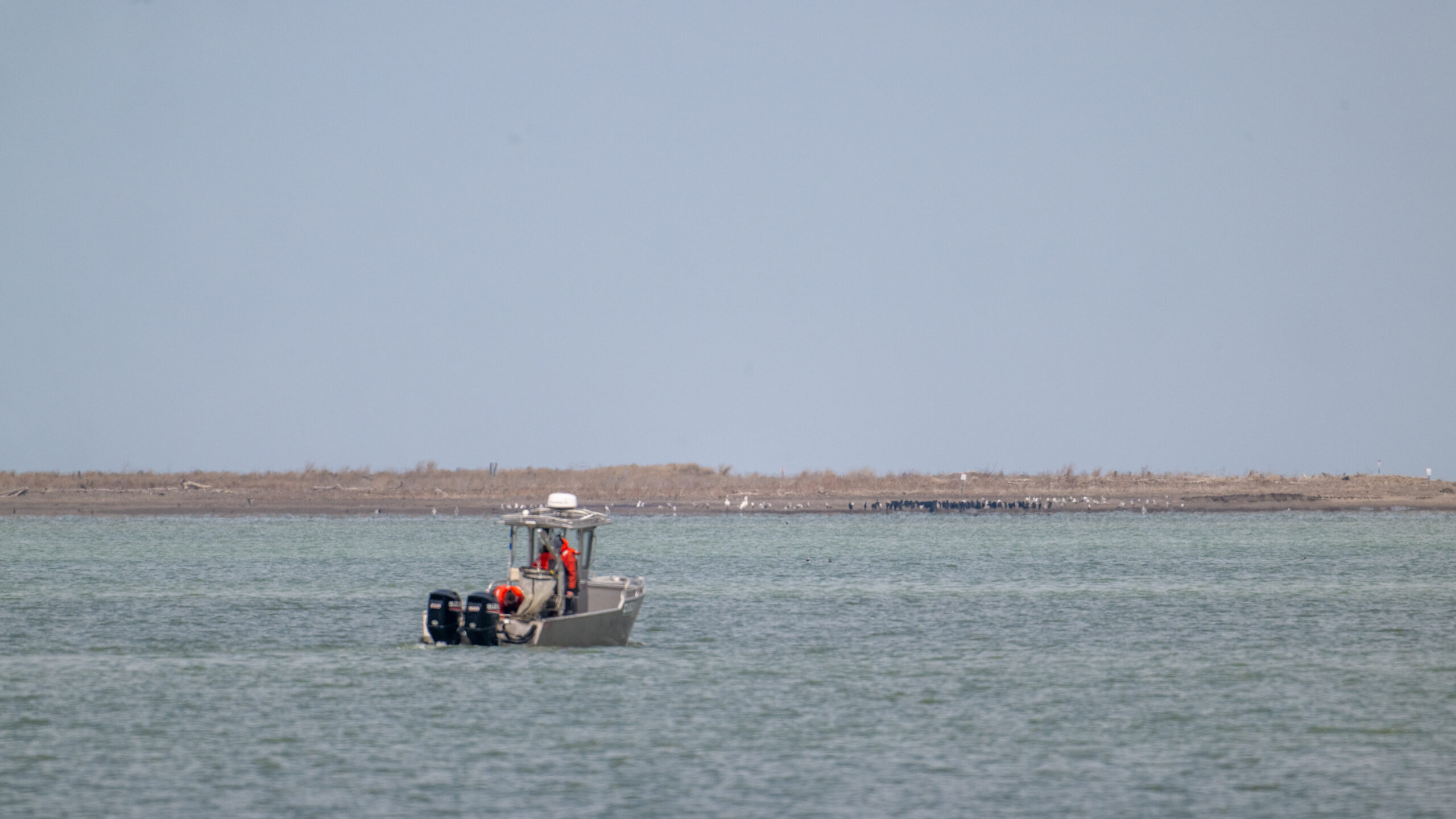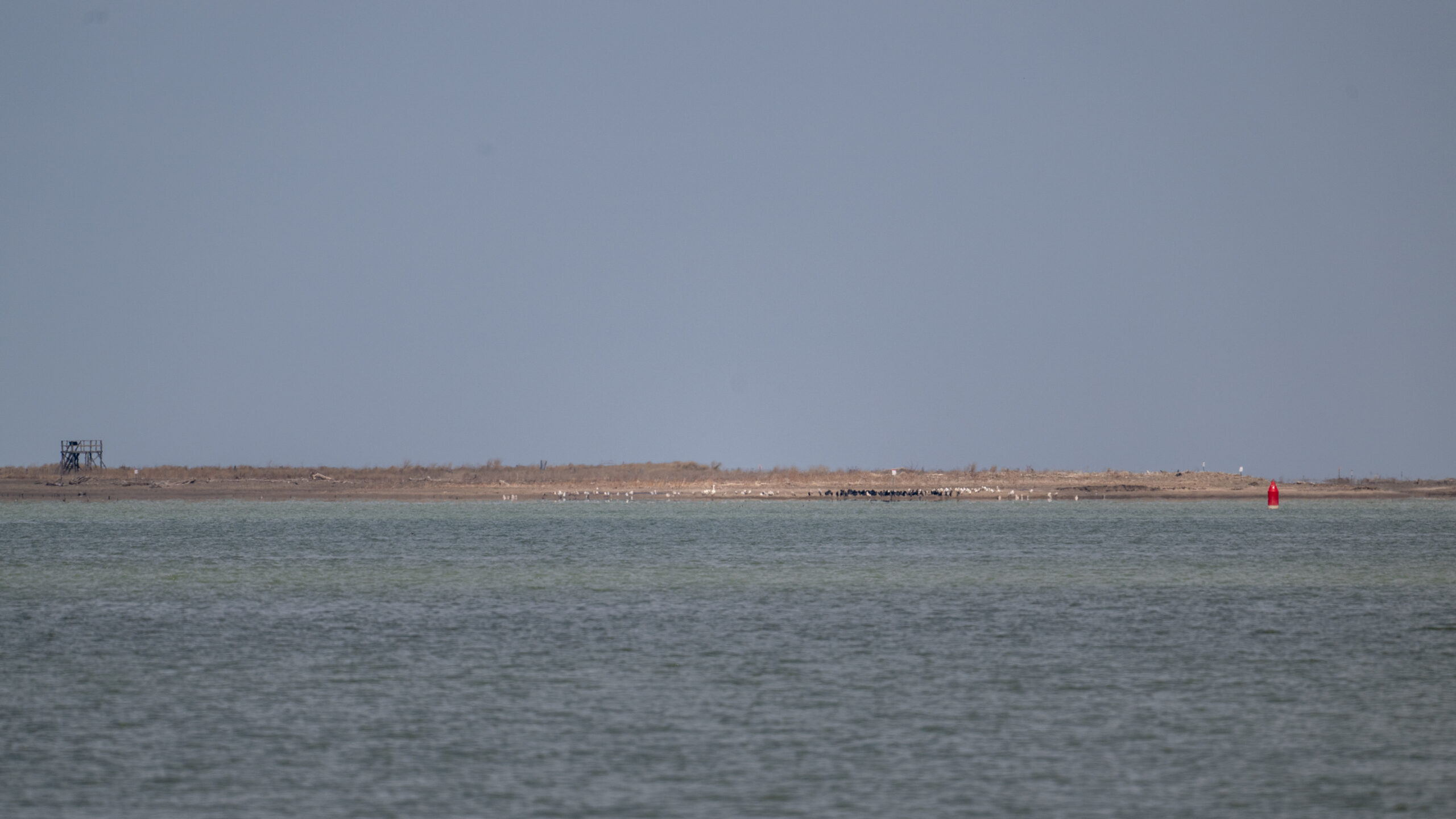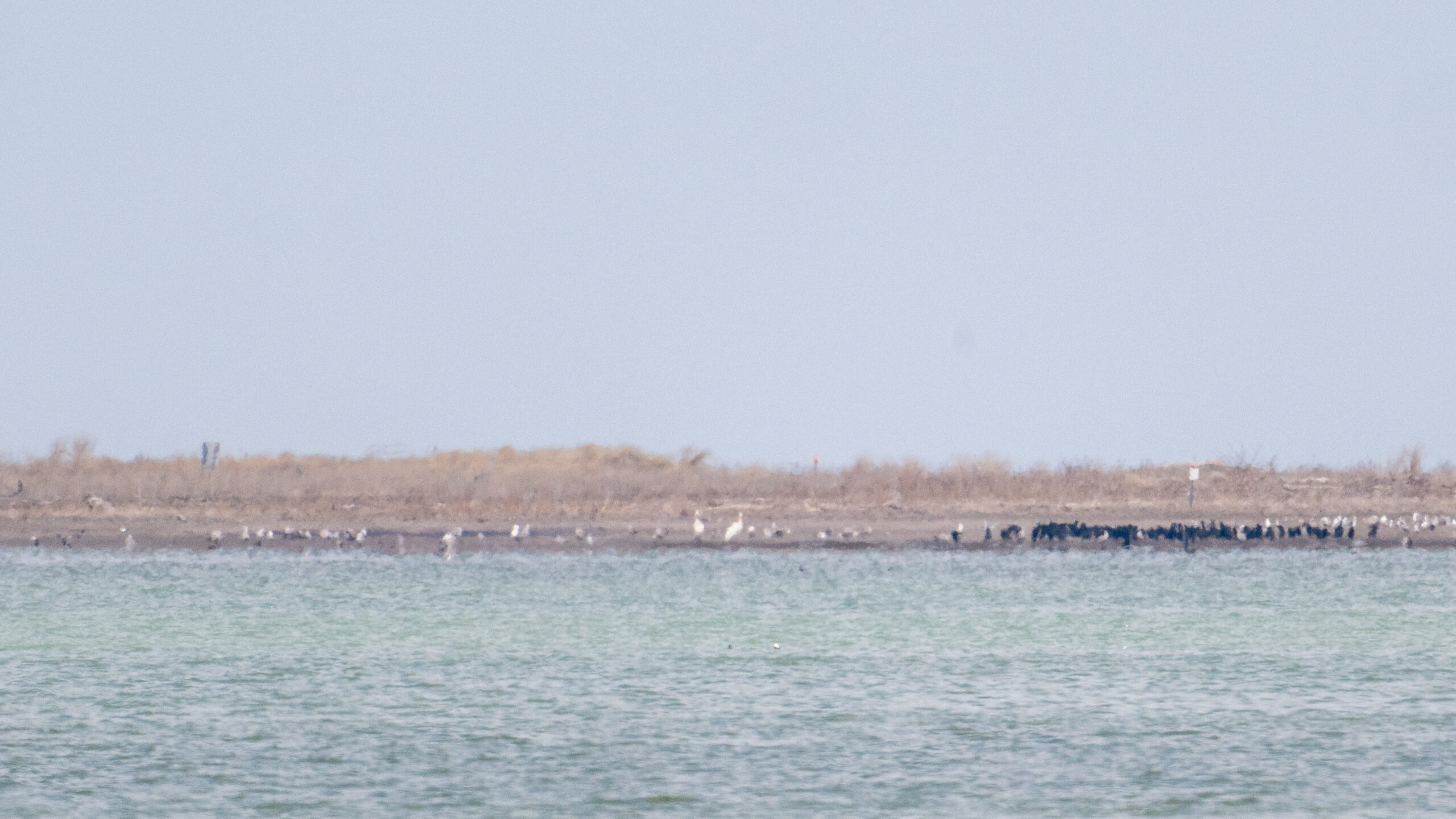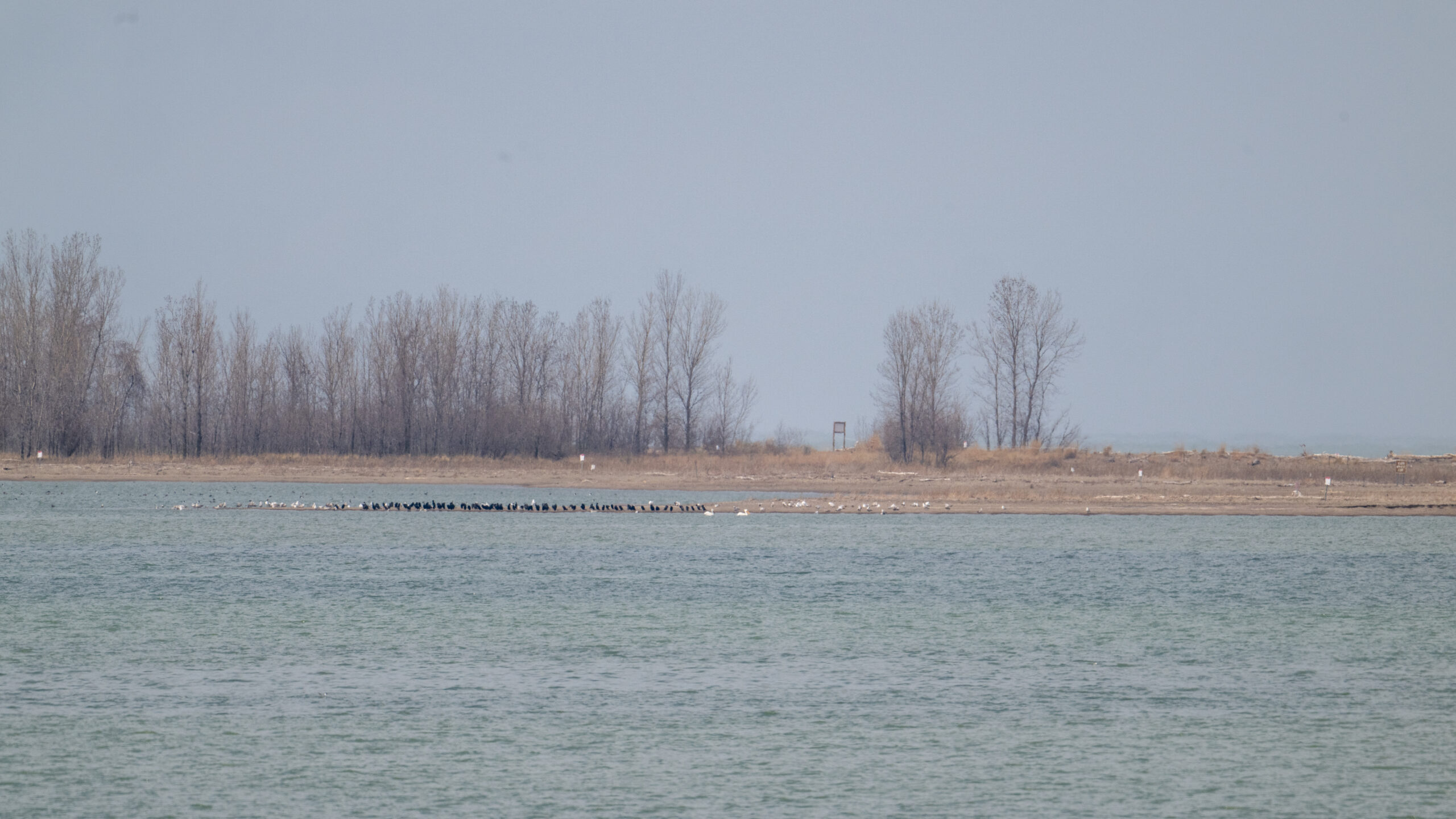 Gulls, cormorants, and 2x American White Pelican