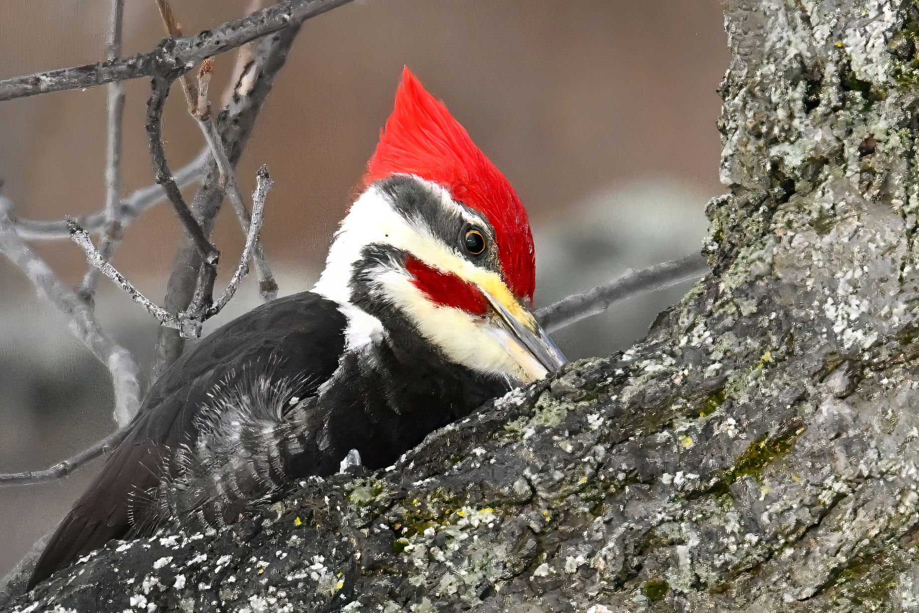 Back with the Pileated Woodpecker @ Christmas Bird Count at Presque Isle State Park. Lucky this beautiful bird landed so close (+ very occupied with foraging) right at the Niagara Boat Launch parking area.