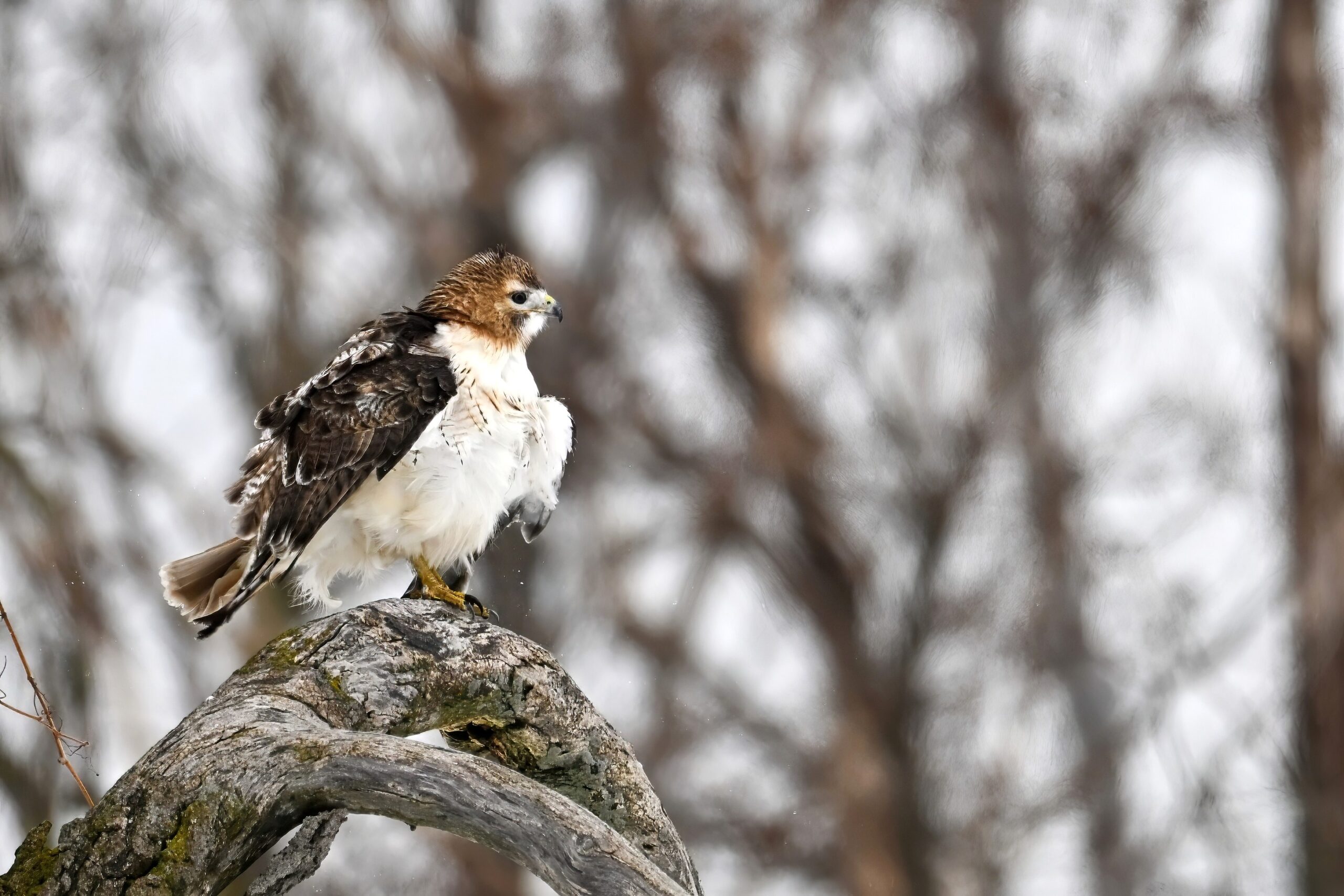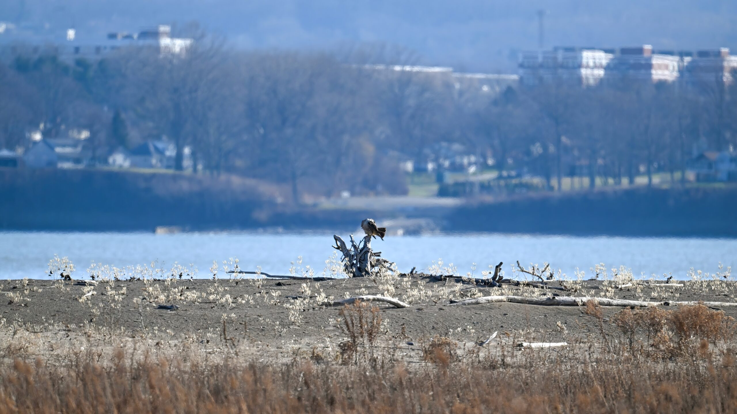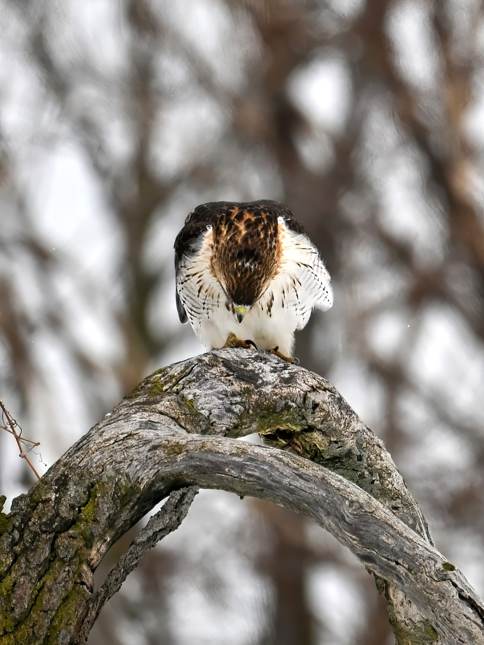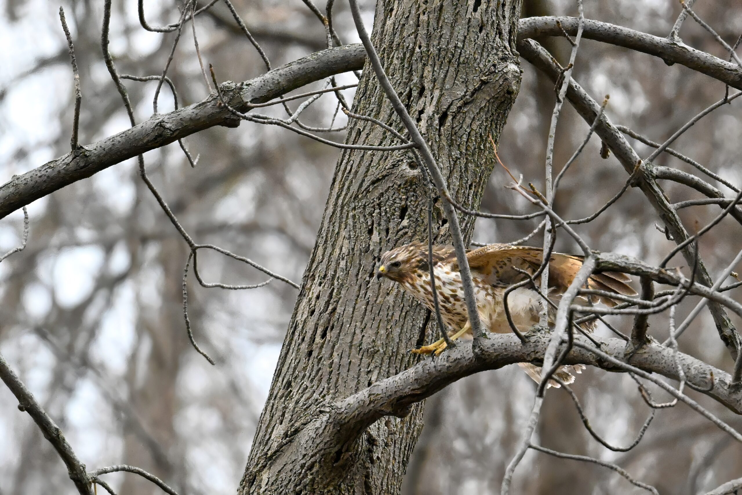 From yesterday at Presque Isle State Park, it’s a beautiful Red-tailed Hawk exhibiting predation/eating behaviours. These shots just after the hawk caught a small, unfortunate rodent. Weather at Presque Isle: mostly cloudy and very, very cold.