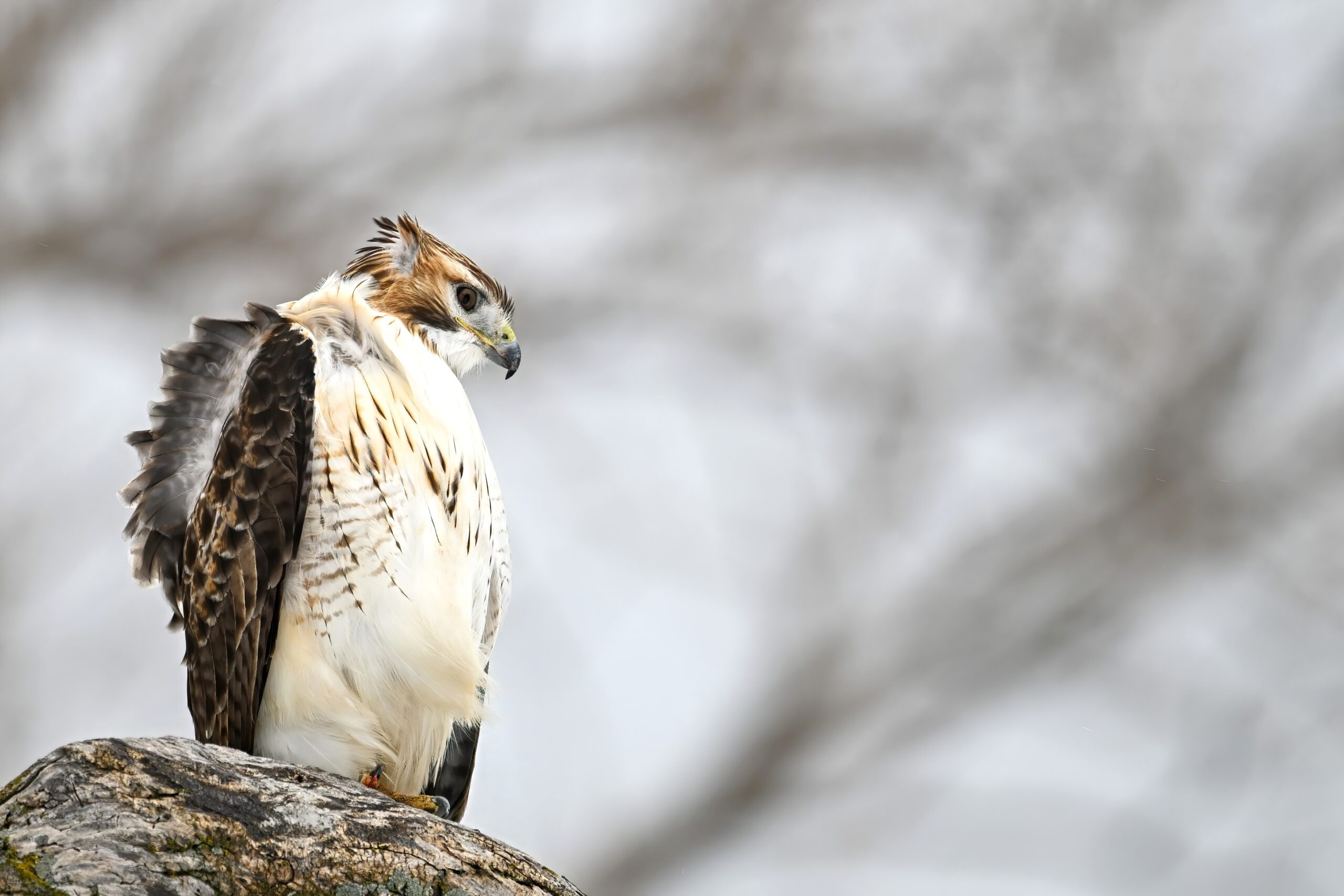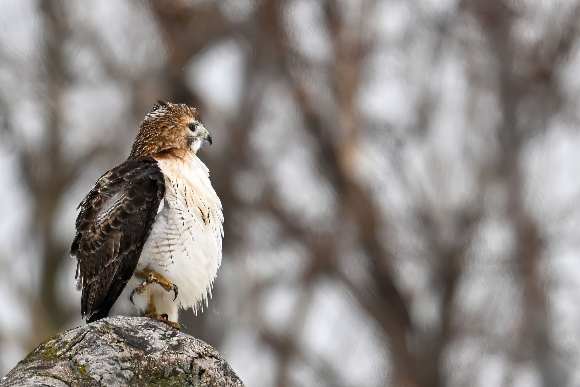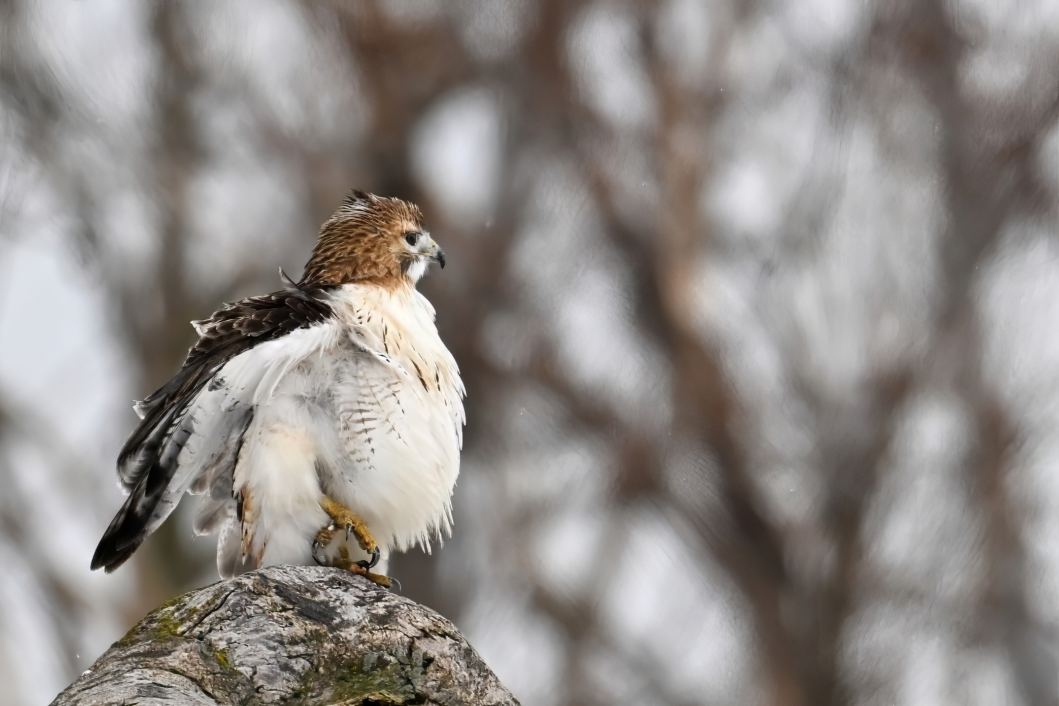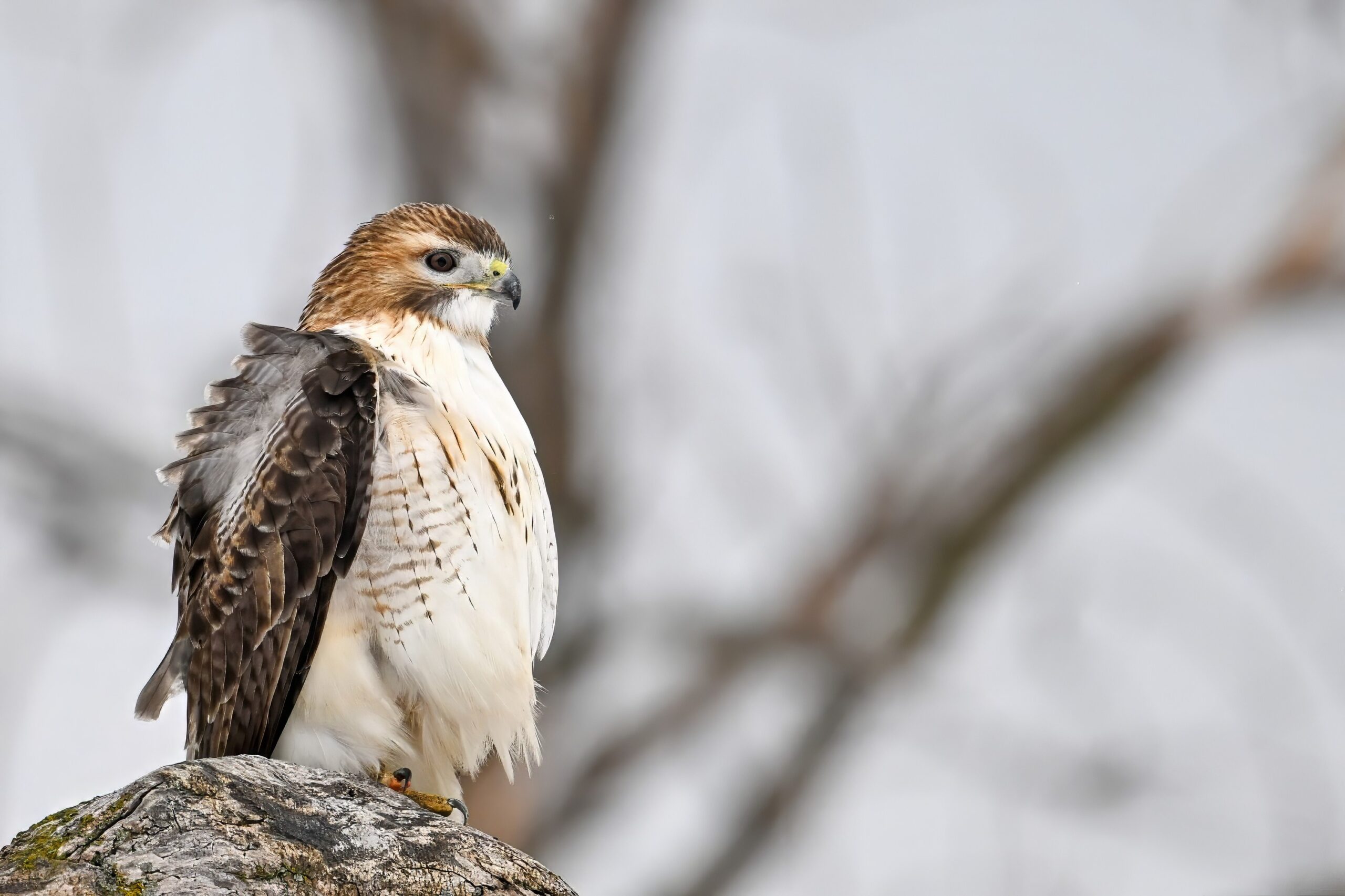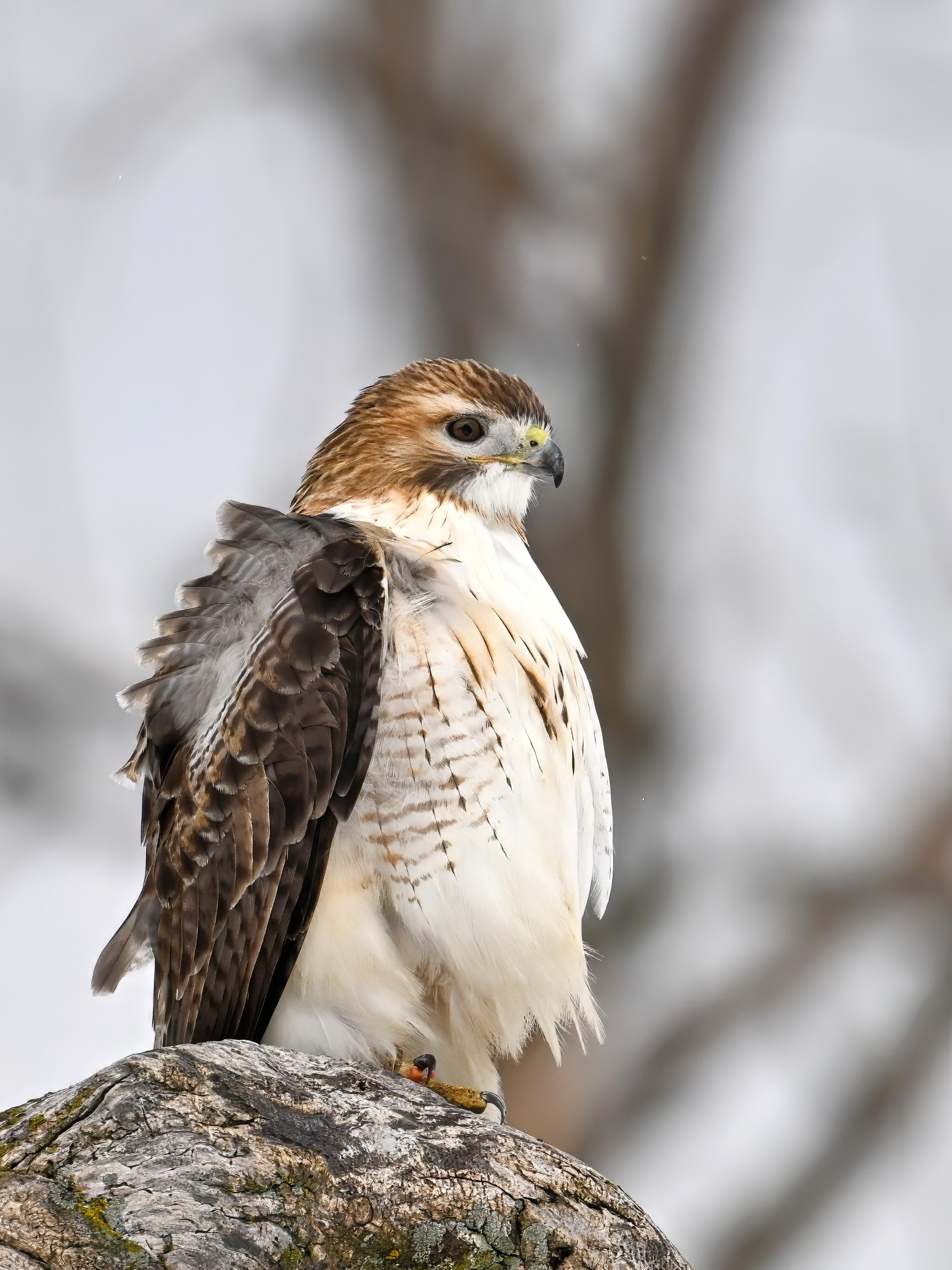 From yesterday at Presque Isle State Park, it’s a beautiful Red-tailed Hawk exhibiting predation/eating behaviours. These shots just after the hawk caught a small, unfortunate rodent. Weather at Presque Isle: mostly cloudy and very, very cold.