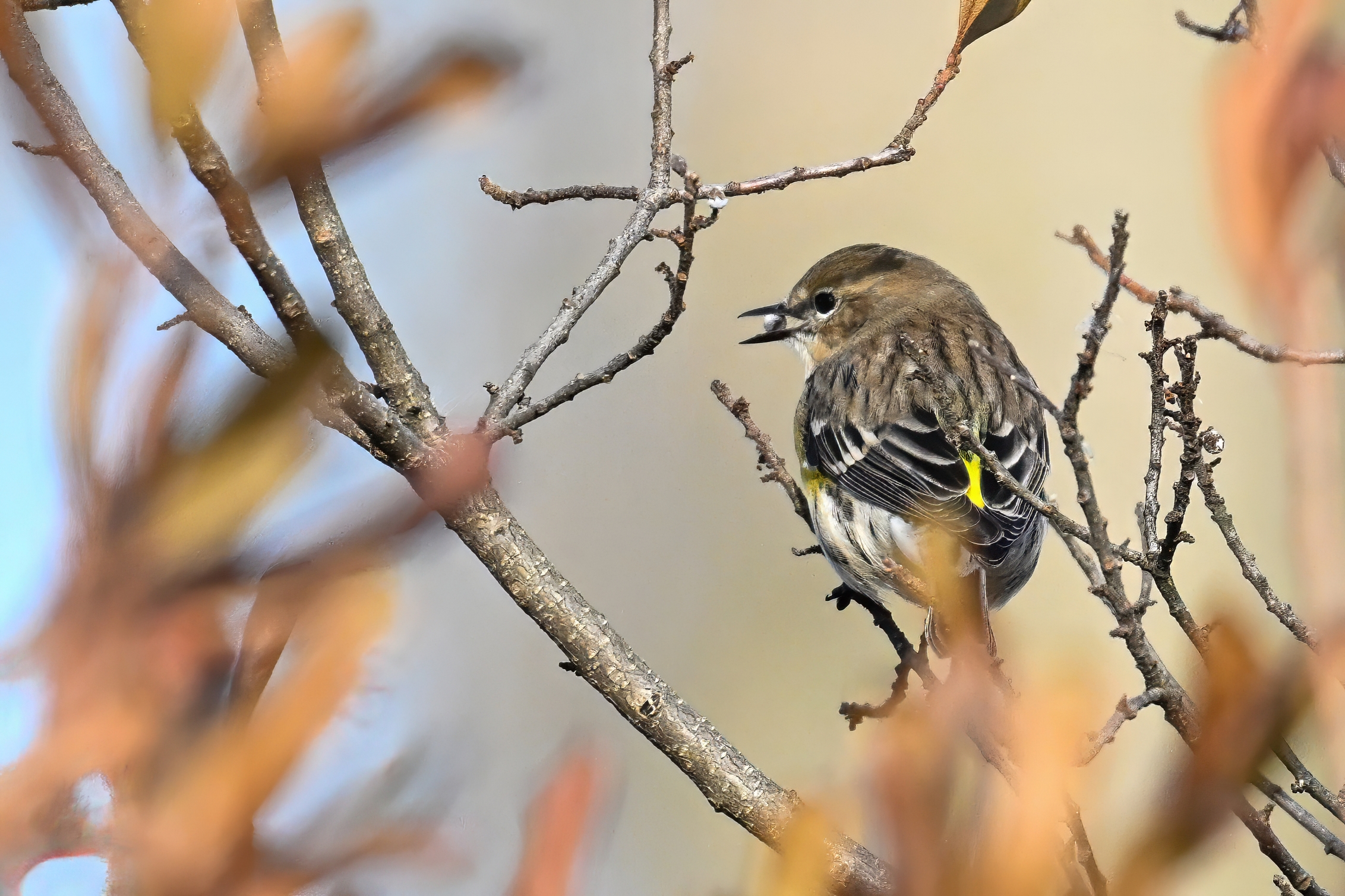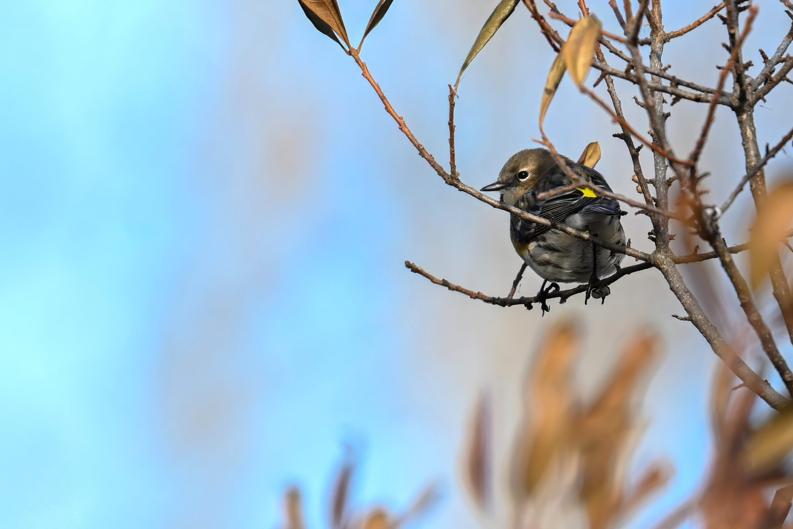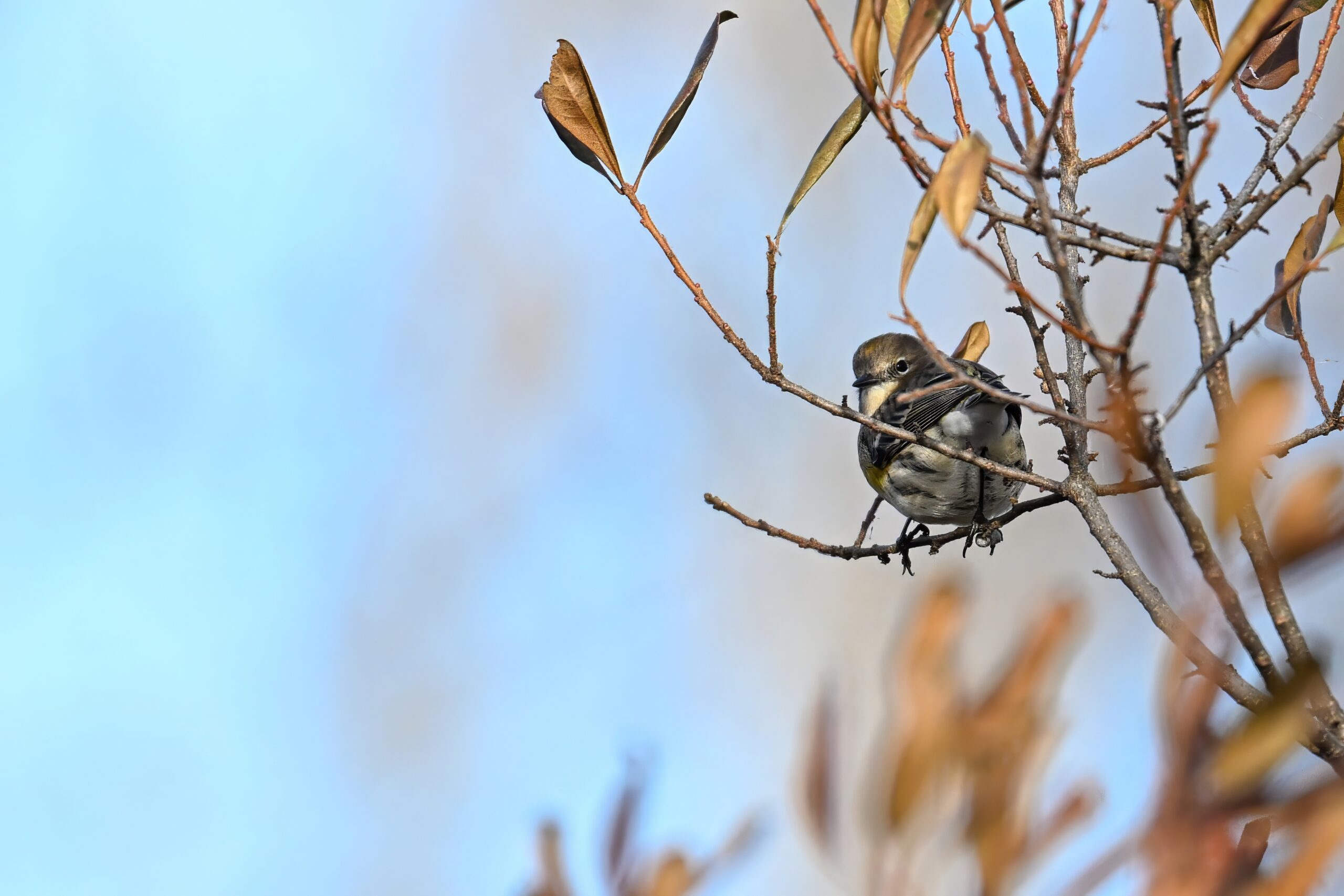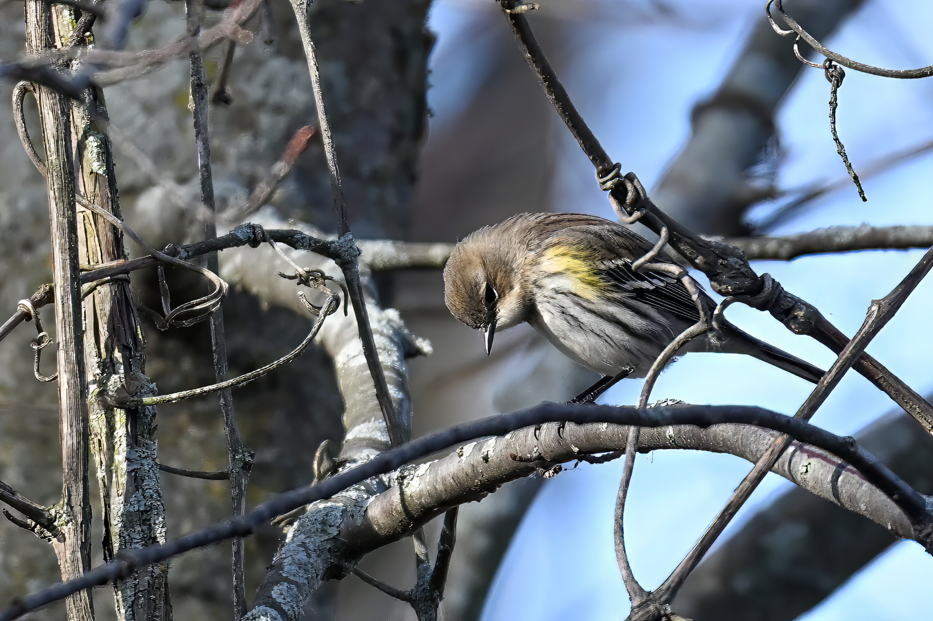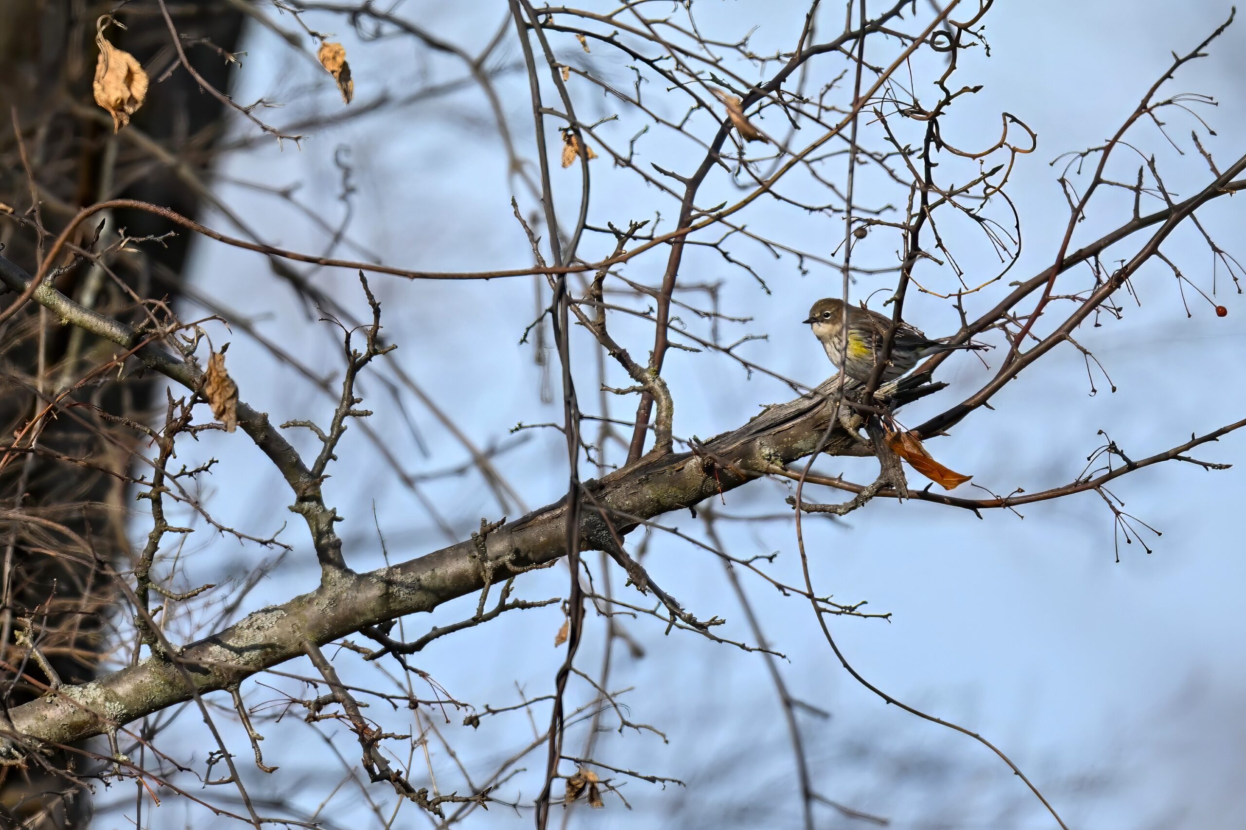 At one point, probably had at least a dozen Warblers flying back and forth, along with sparrows and woodpeckers. So a good/lucky day for winter Warblers!