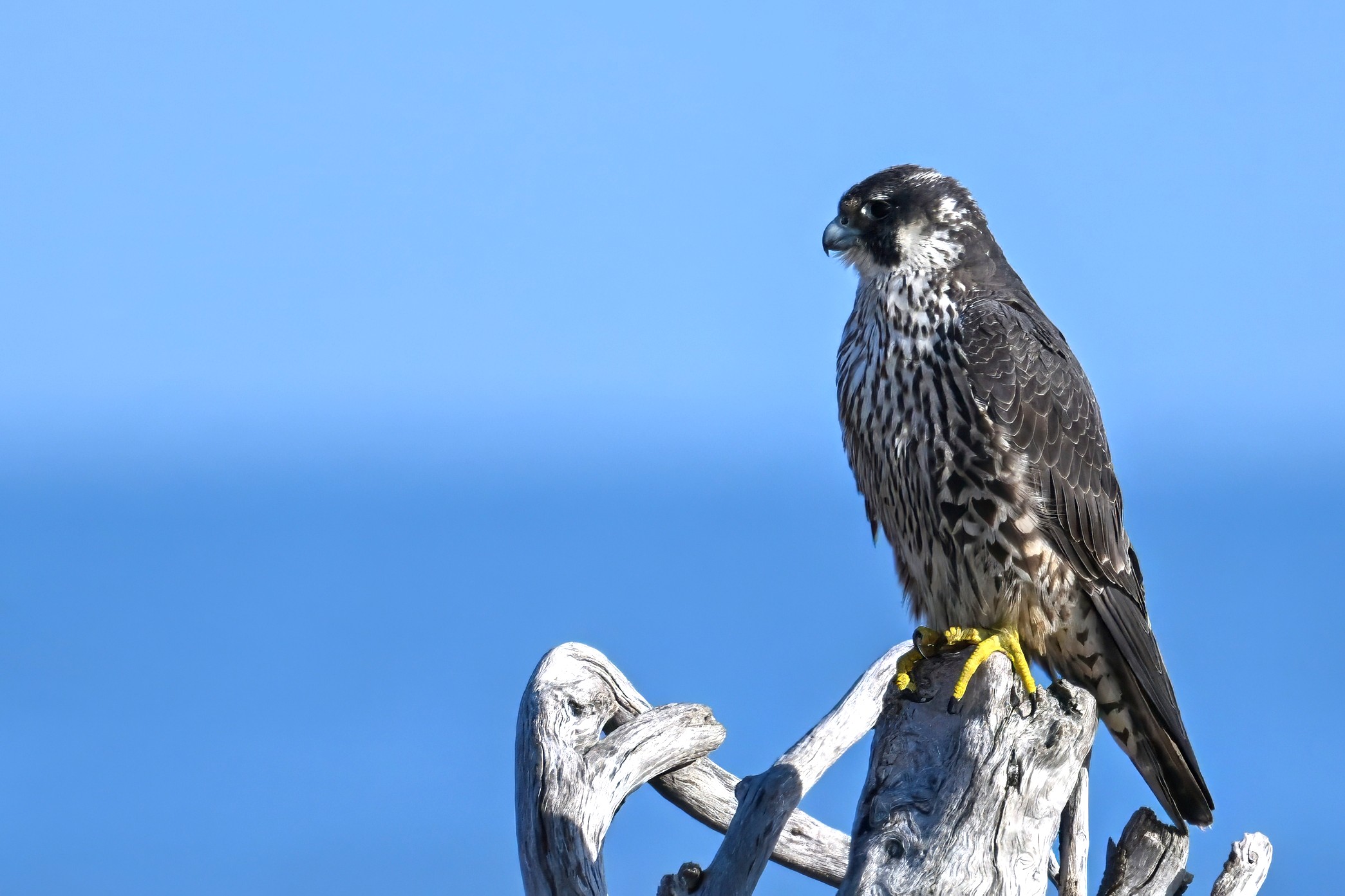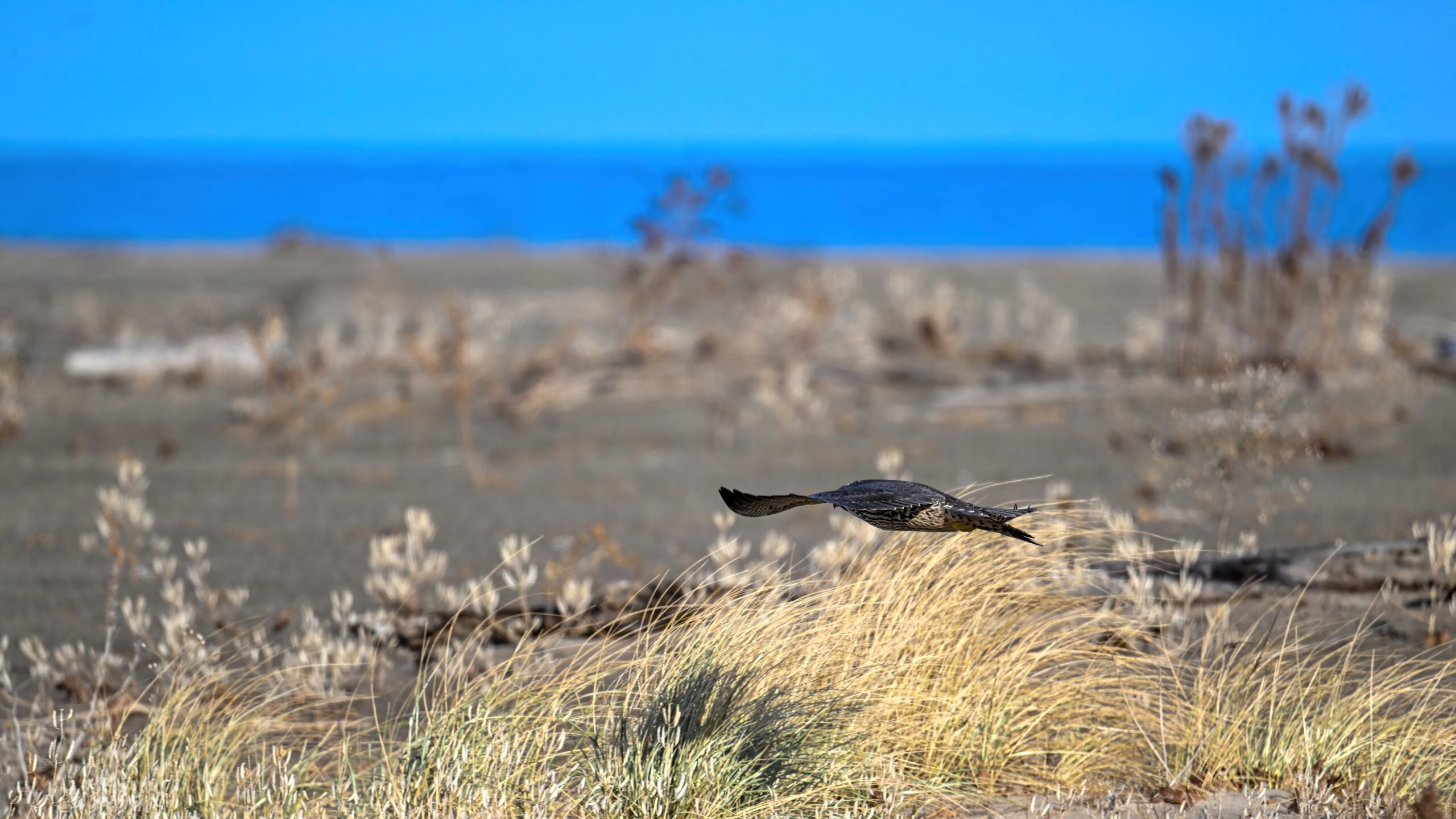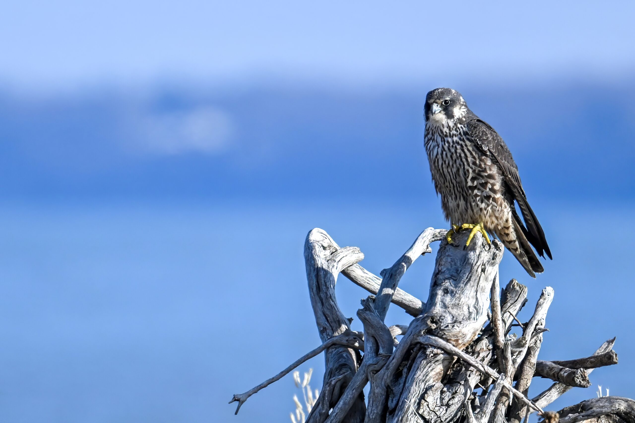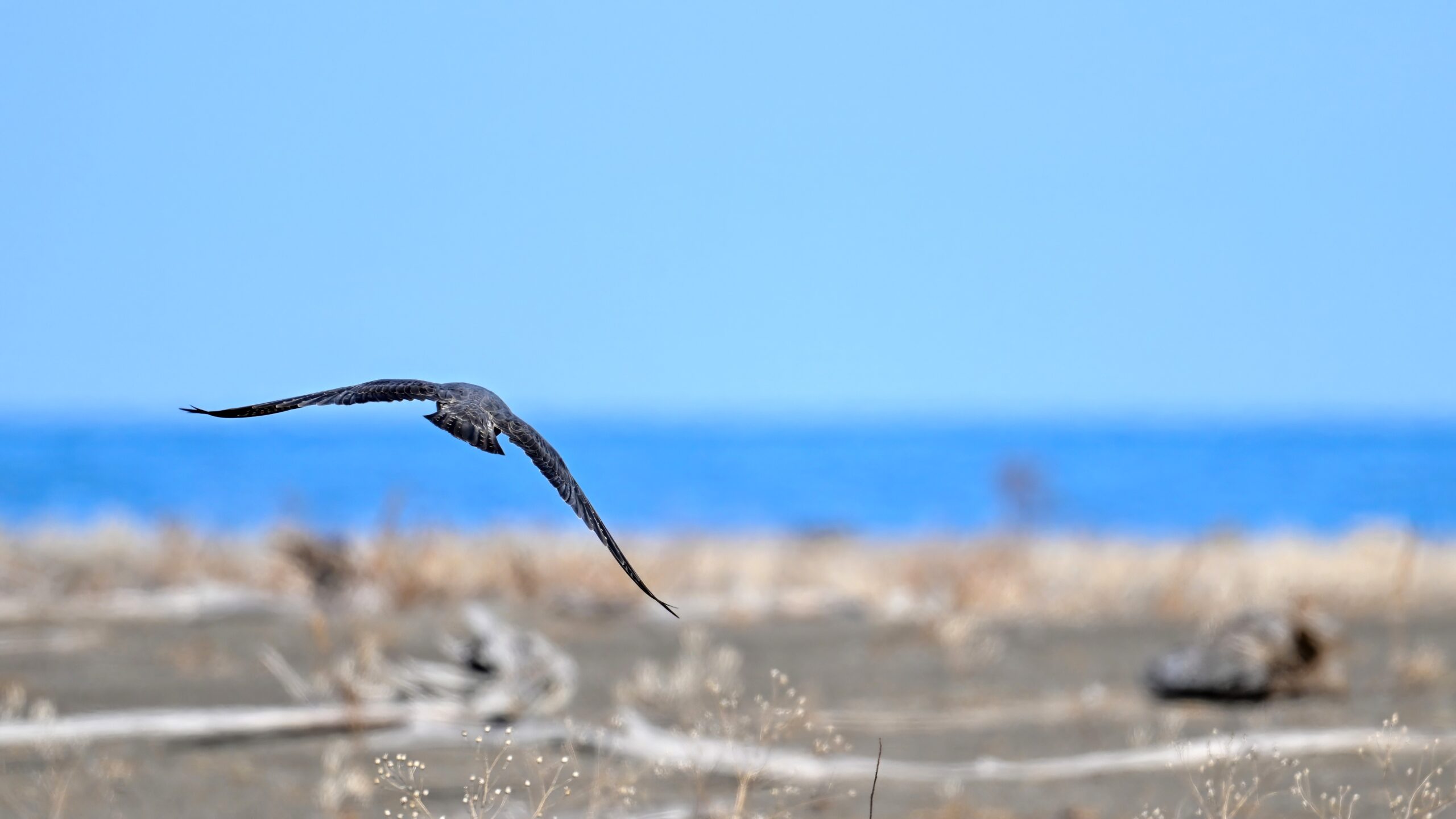 (As shown, after some shots perched on driftwood, the Peregrine Falcon was mostly seen in departure mode.)