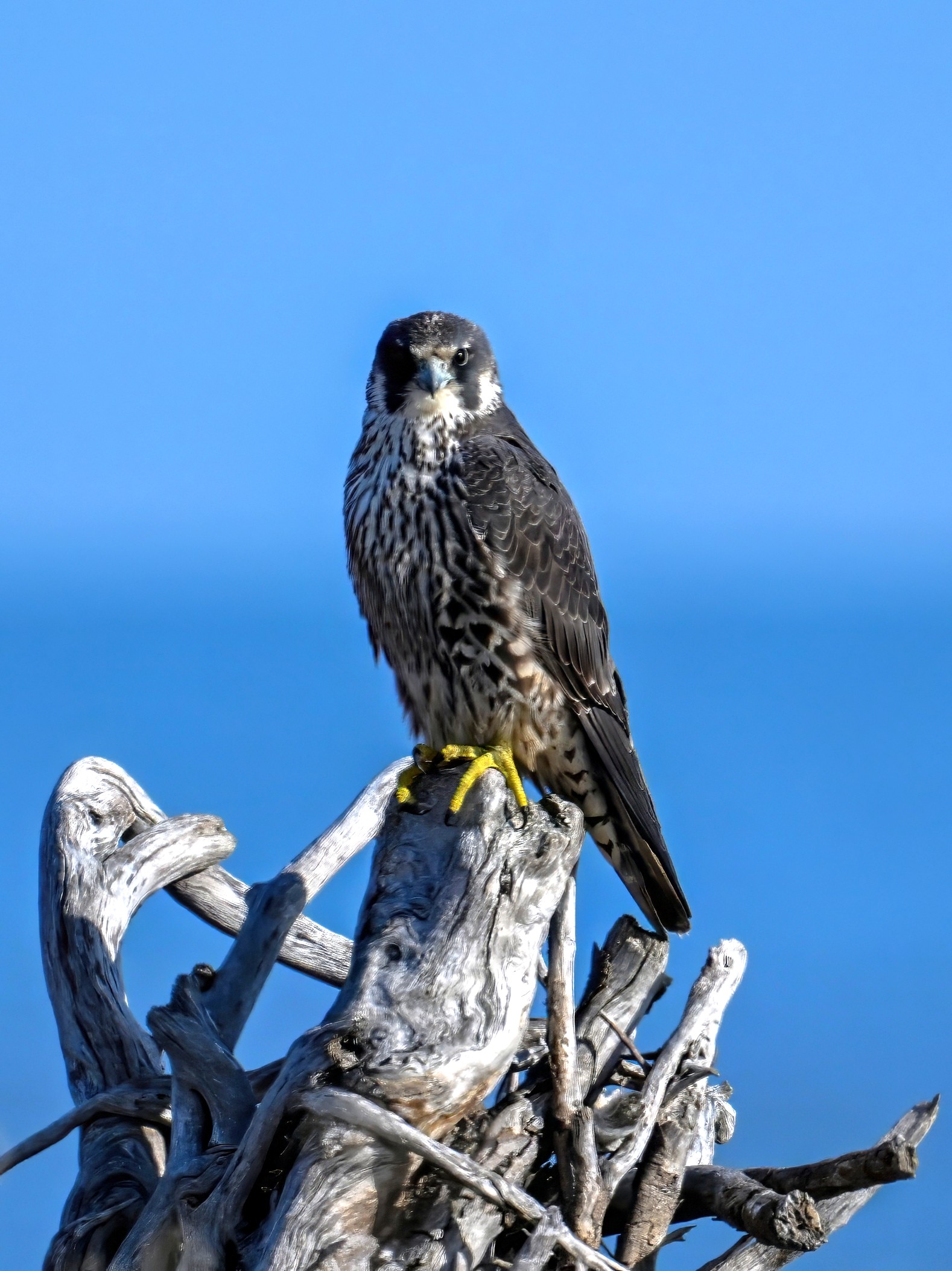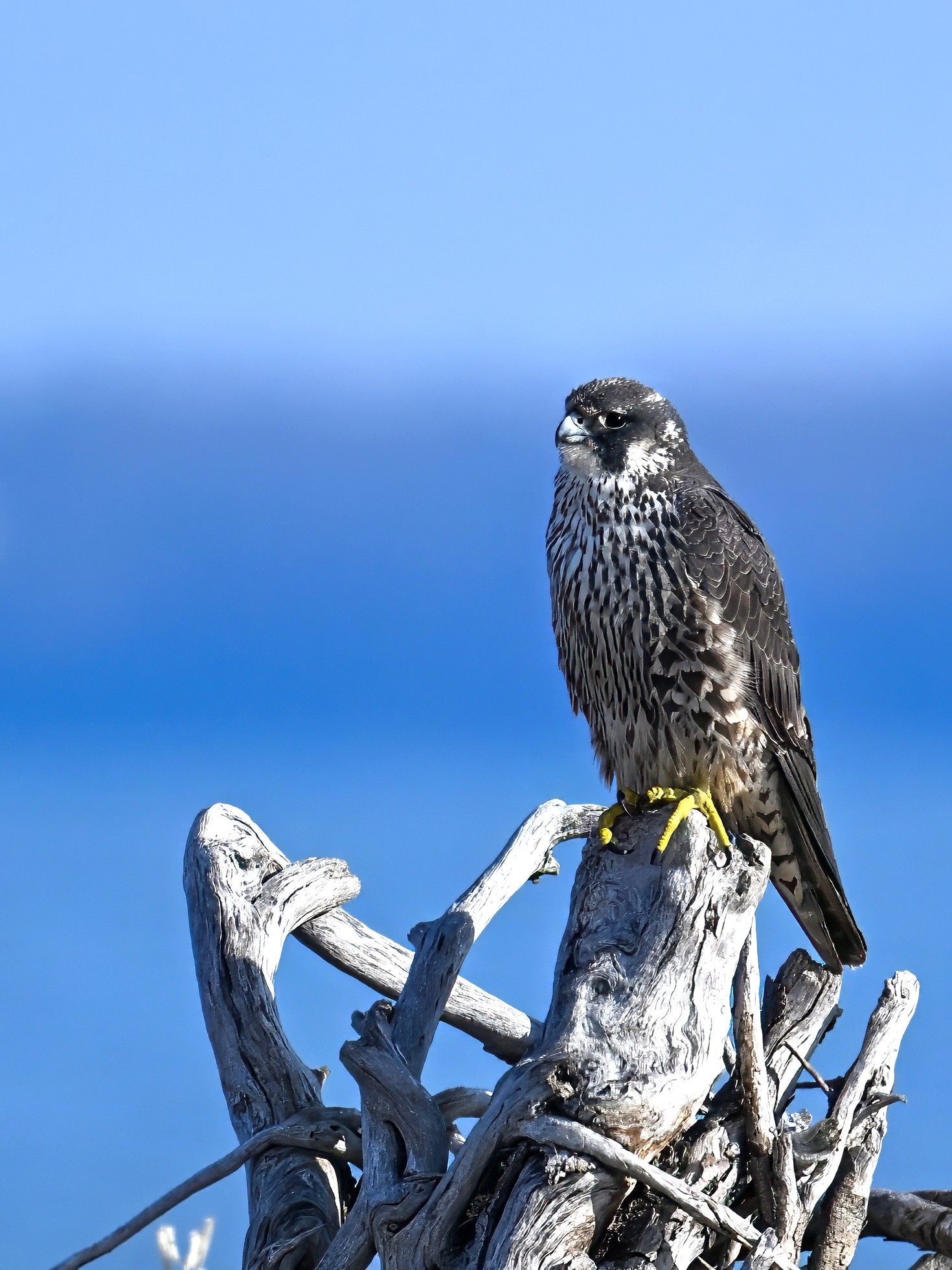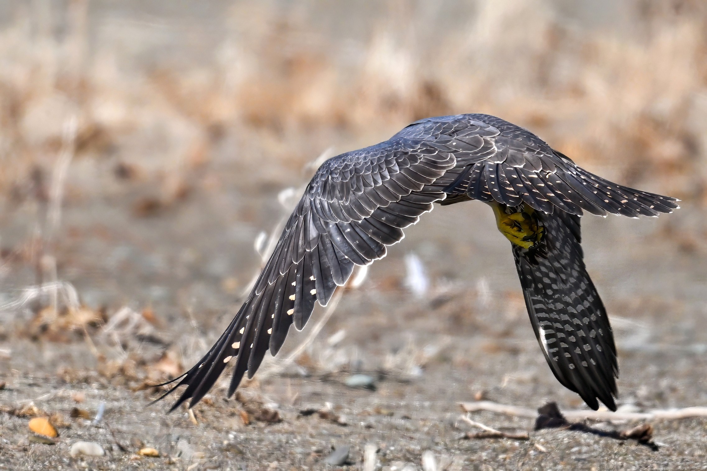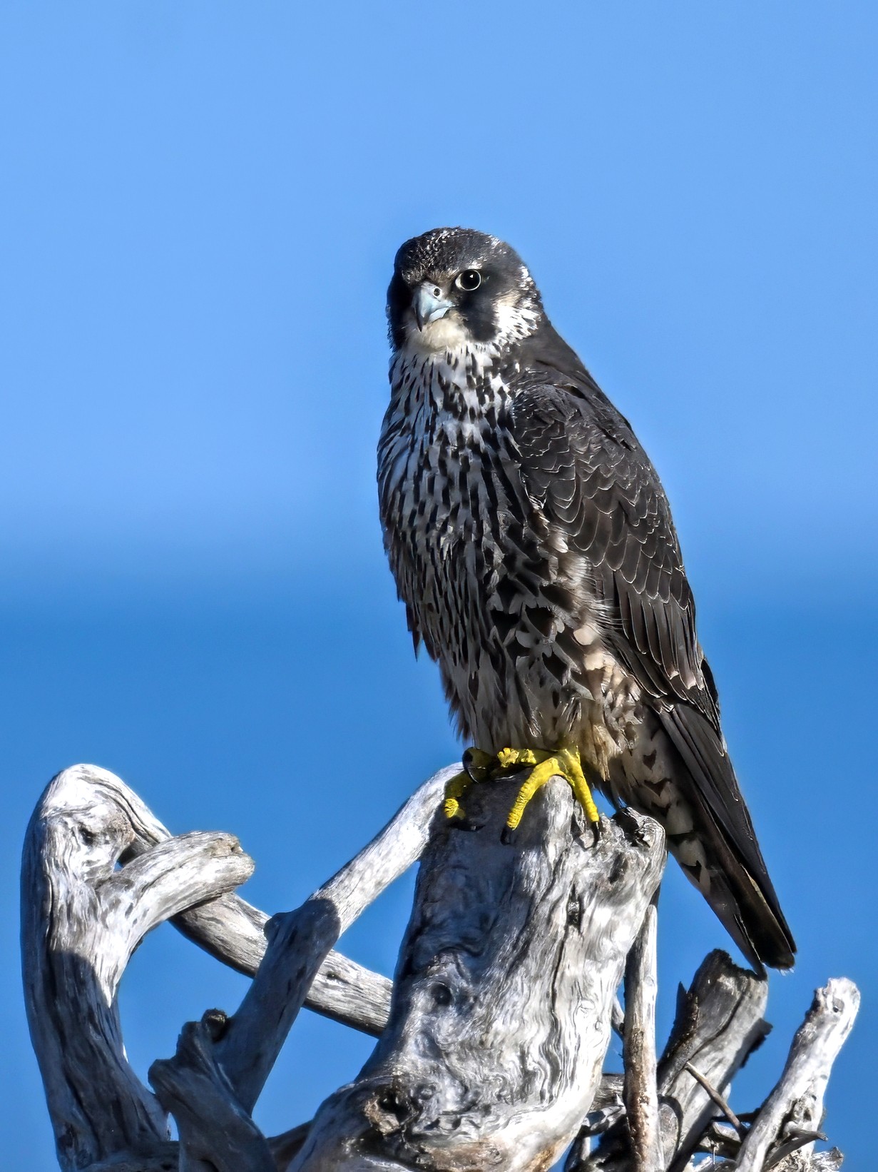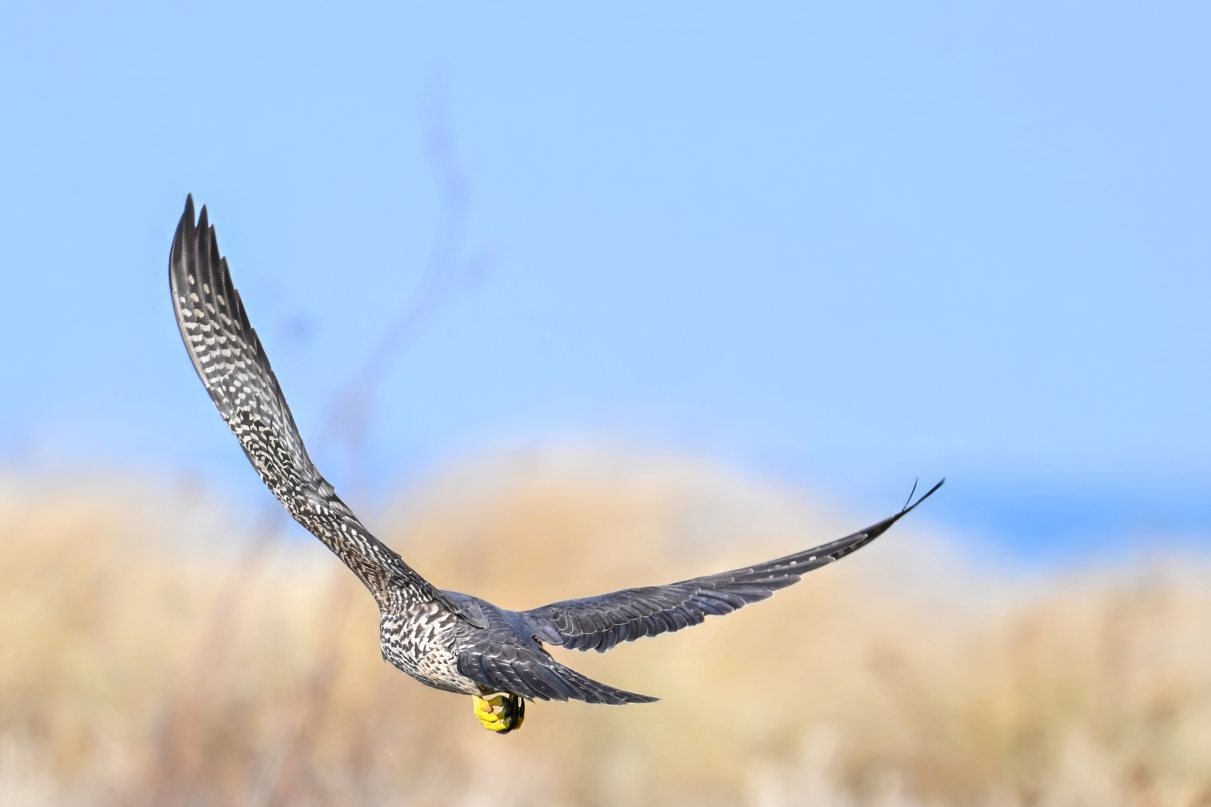 (As shown, after some shots perched on driftwood, the Peregrine Falcon was mostly seen in departure mode.)