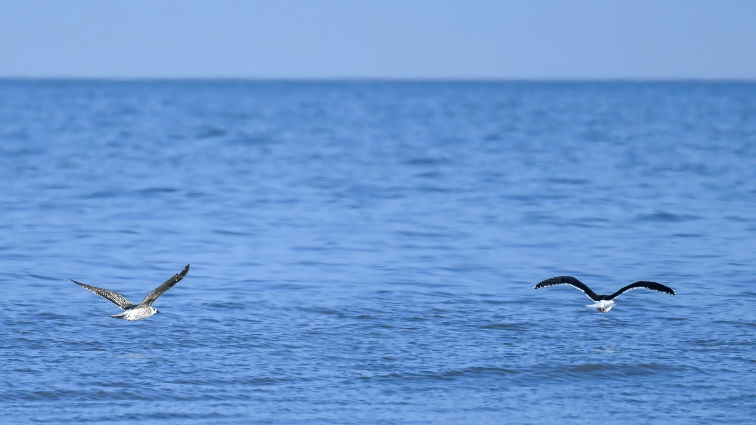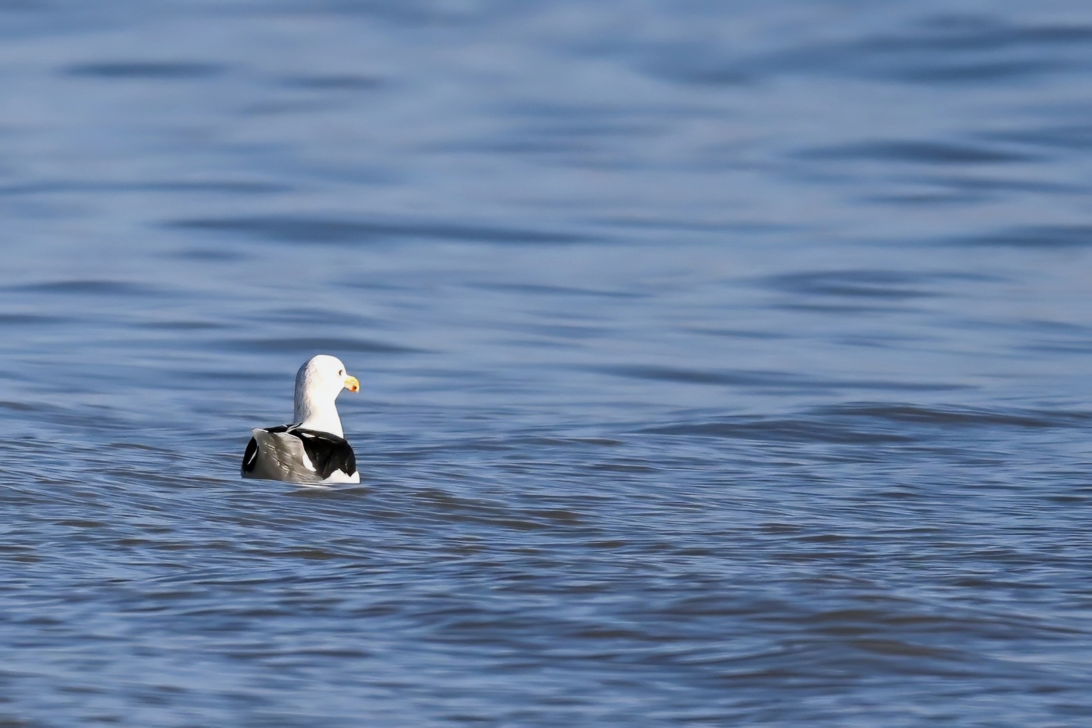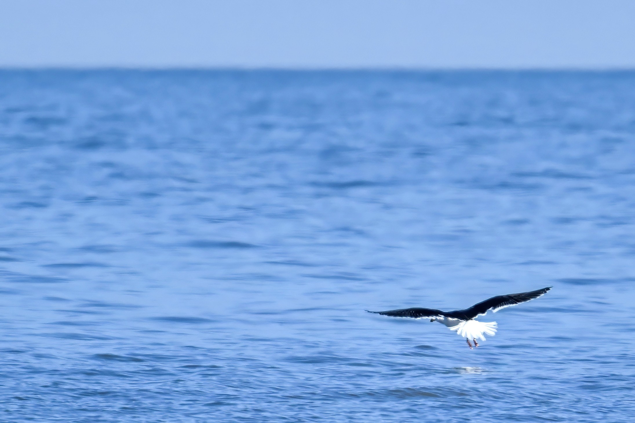 ID tip on (i) adult Great Black-backed Gull: large size, black wings, pink legs, & lower mandible w/ red spot; (ii) immature: large size, checkered mostly b&w wings, dark/stout bill, & prolonged proximity to adult.