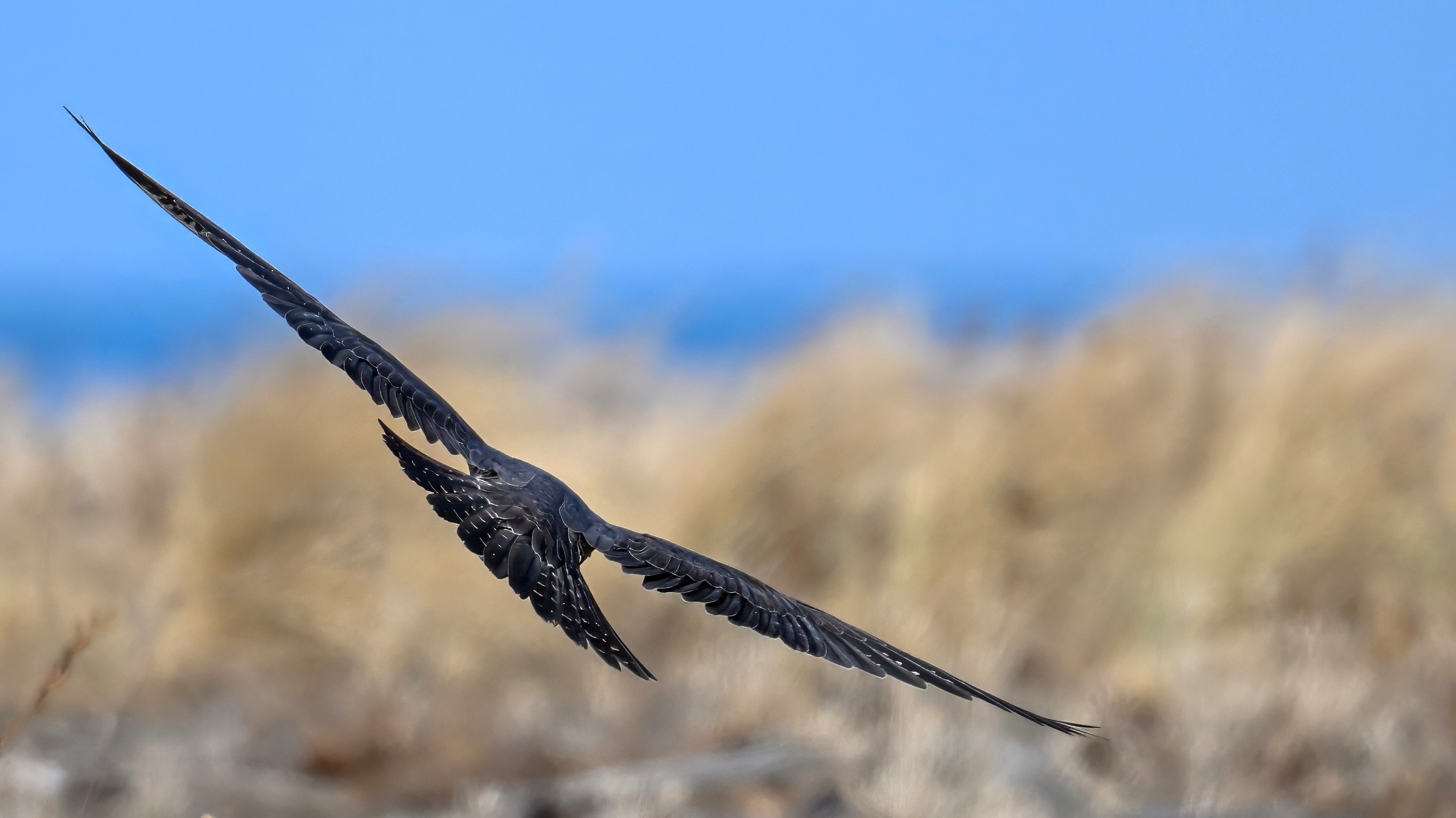 Fortunately, the beach-side multi-use trail was nearby, enabling quickly skirting the ground vegetation for a lucky sequence of hawk in flight shots, w/ ID confirmation of a not-so-commonly-seen Red-shouldered Hawk (immature):