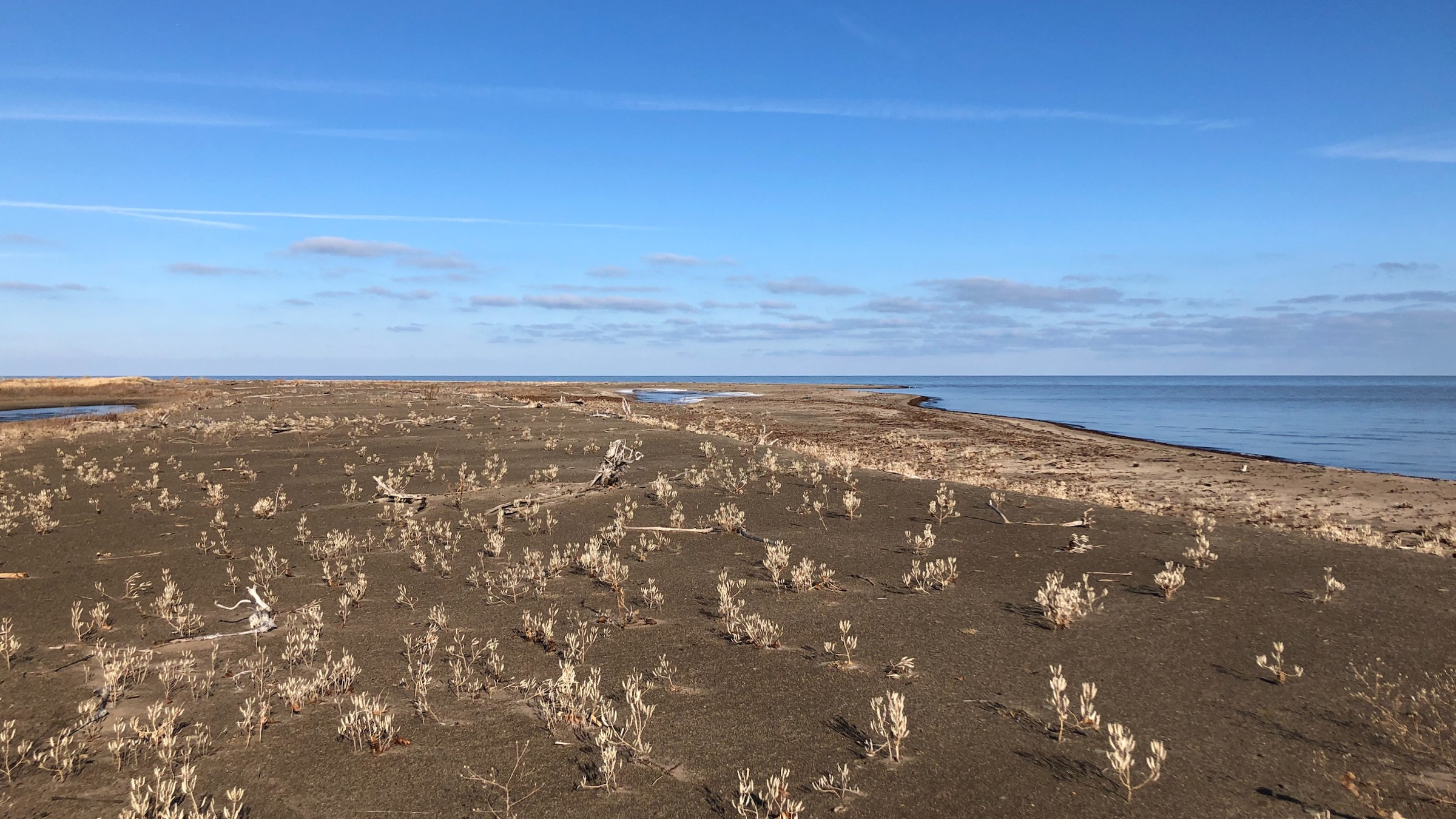 Rather nice weather the day of Christmas Eve, so why not the yearly/seasonal hike out to Gull Point for (hopefully) seeing overwintering Yellow-rumped Warblers?