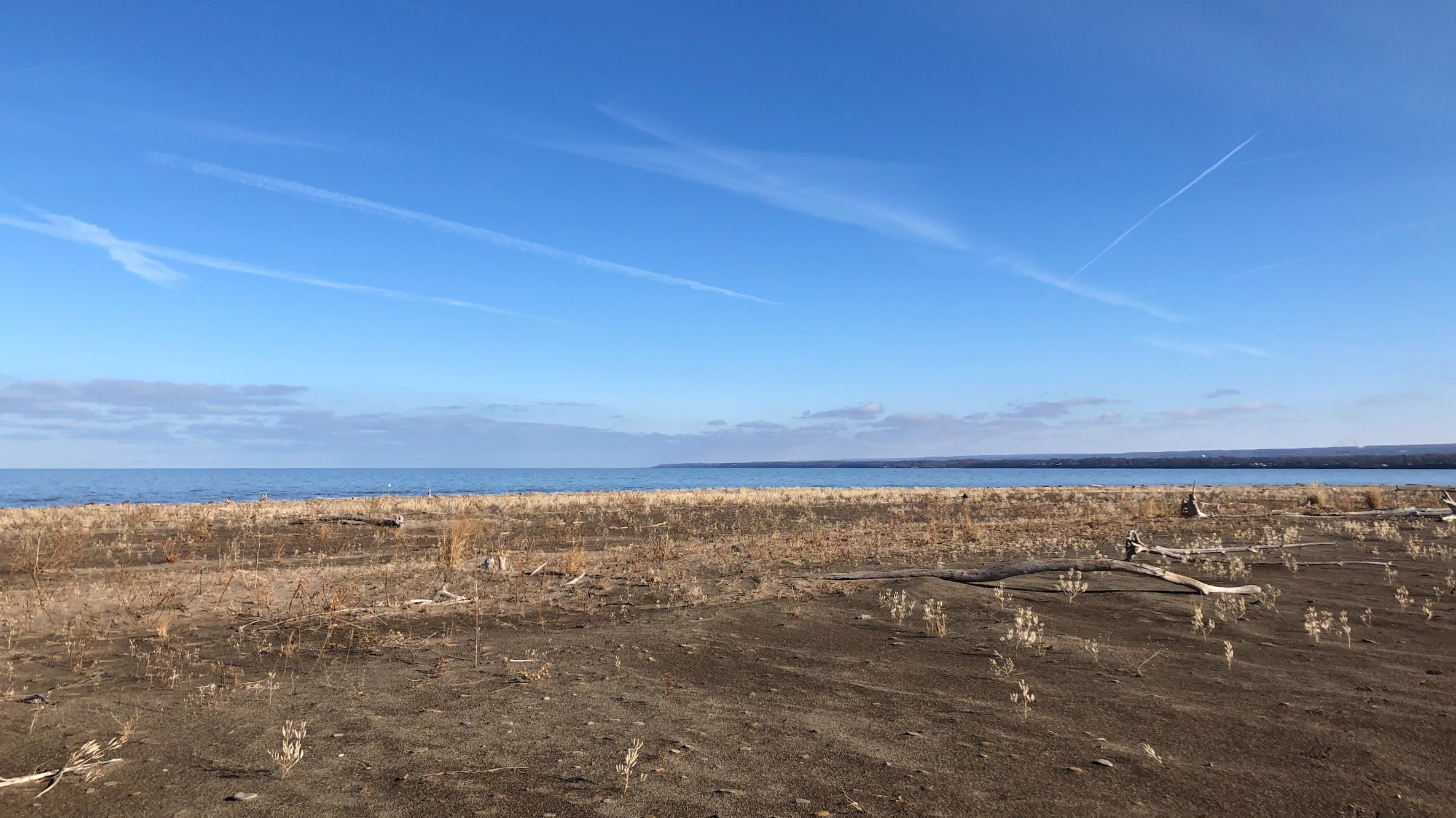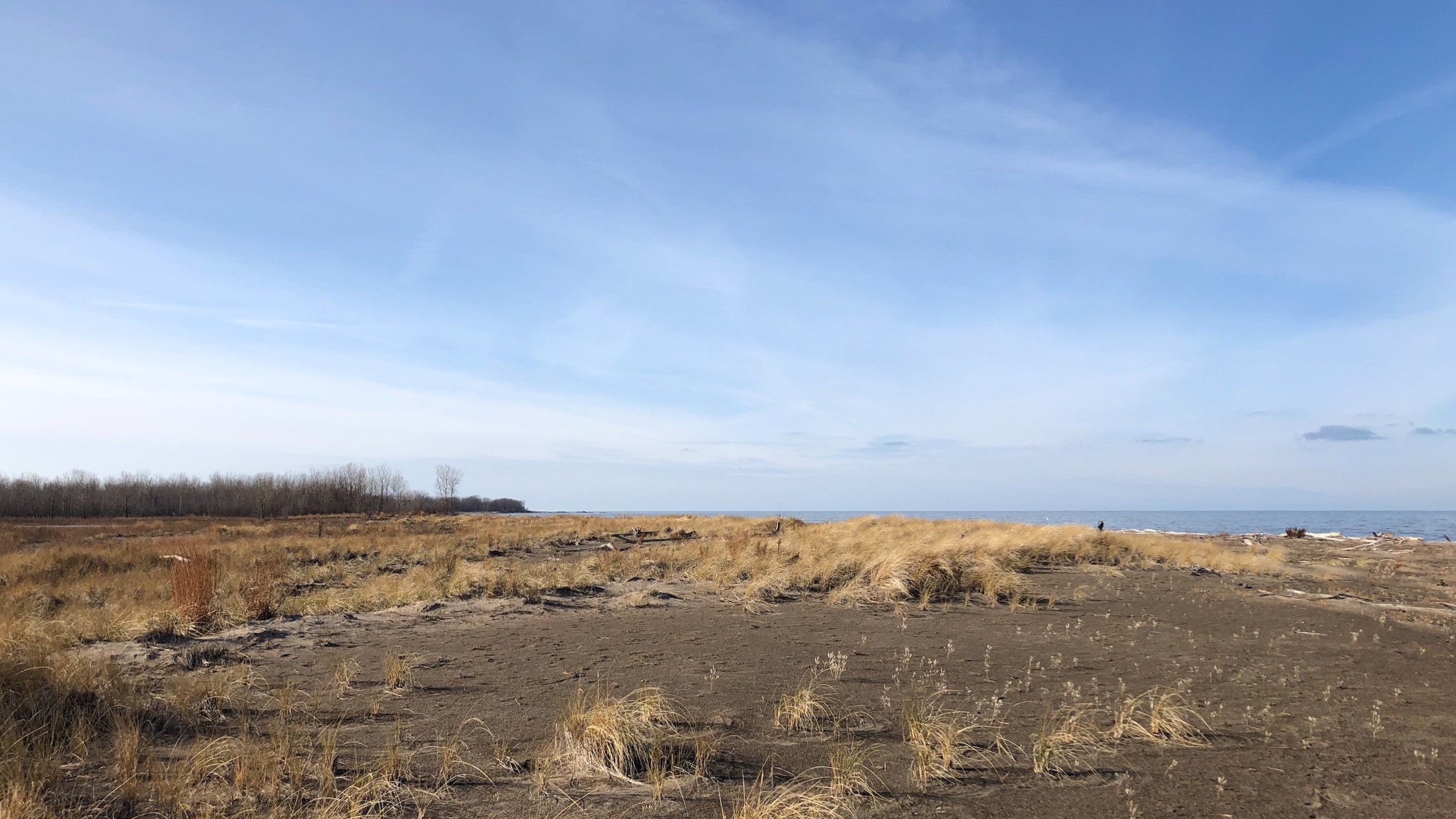 Outer Lake Erie remained unfrozen, with little snow on the ground other than melting chunks along Budny Beach: