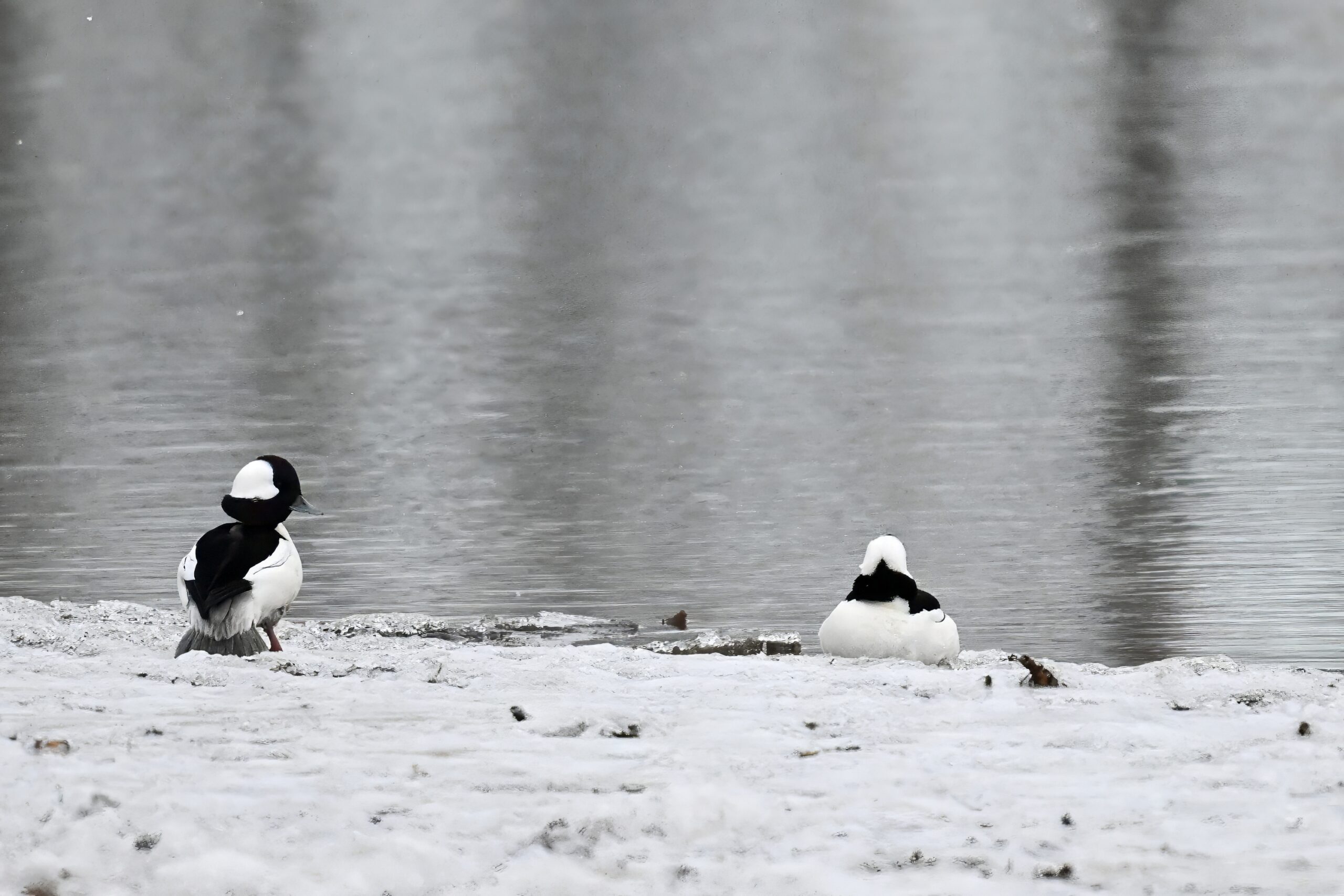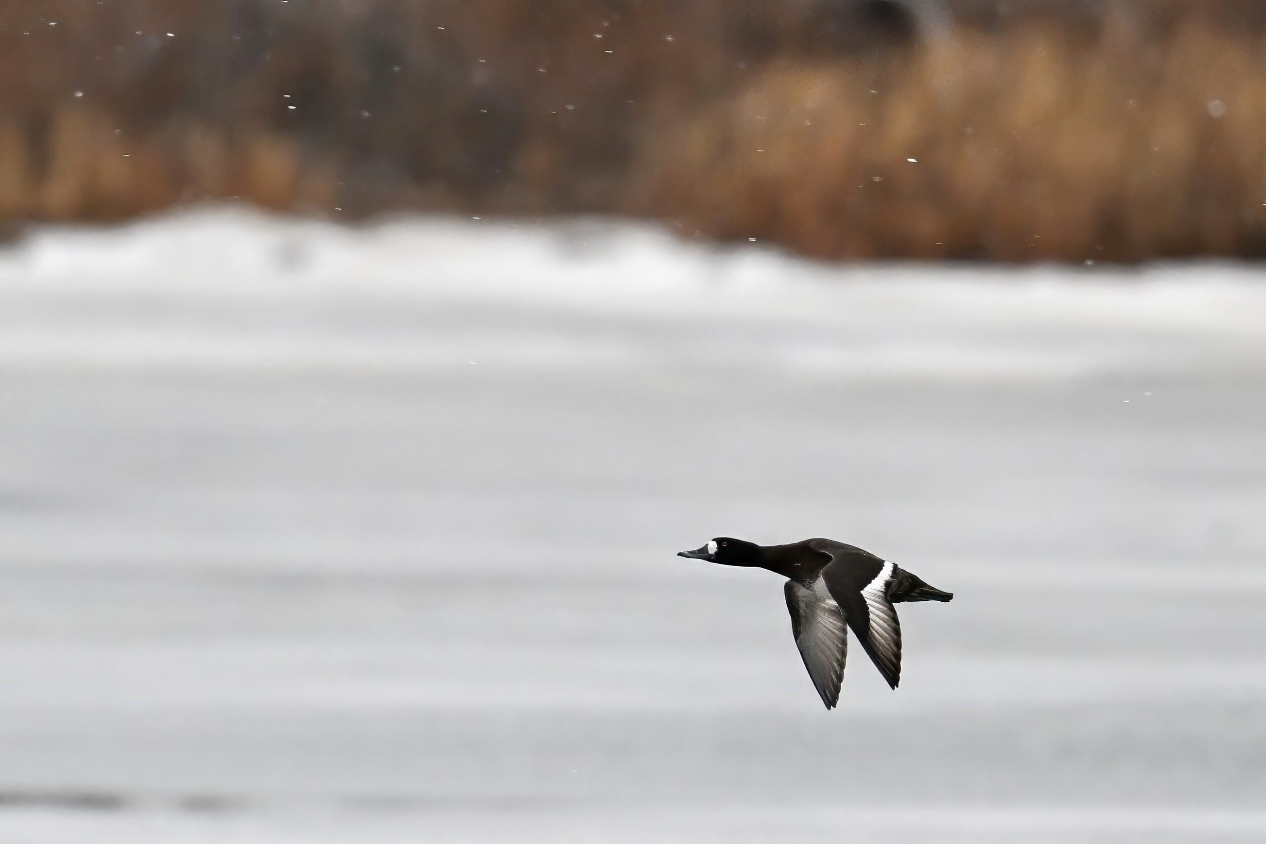 Female Lesser Scaup in flightFemale Lesser Scaup not in flightTundra Swans @ head of Presque Isle BayMale Bufflehead in flight (left) + Common Goldeneye (right)Male and female Lesser Scaups @ landing modeLesser Scaup (f, top) + Bufflehead (m, bottom)Tundra Swans IIBuffleheads on the beach @ Thompson BayFemale Mallard in flight“Fisher Drive owl” – Eastern Screech OwlTundra Swans IIIMale Lesser Scaups in flight in light swowImmature Tundra Swan (right)MIF II