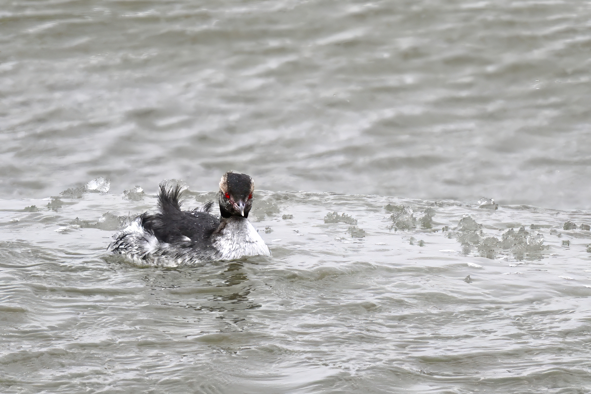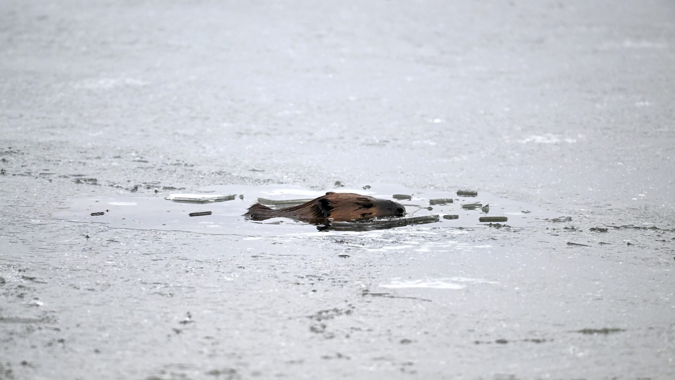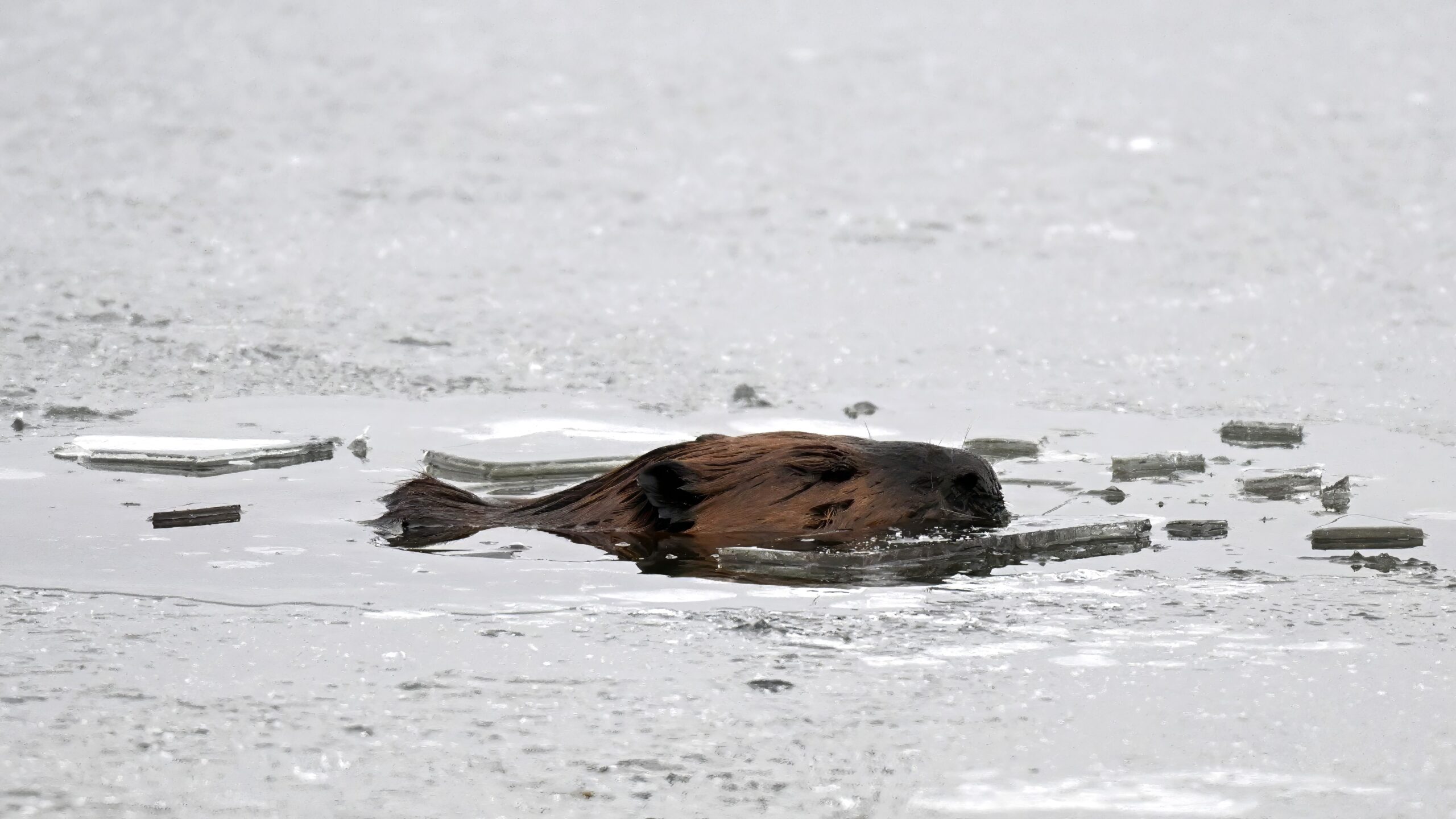 Finally, on Thompson Bay, something you don’t see every day, an American Beaver (Castor canadensis) breaking through the ice for a look-see and/or breath:
