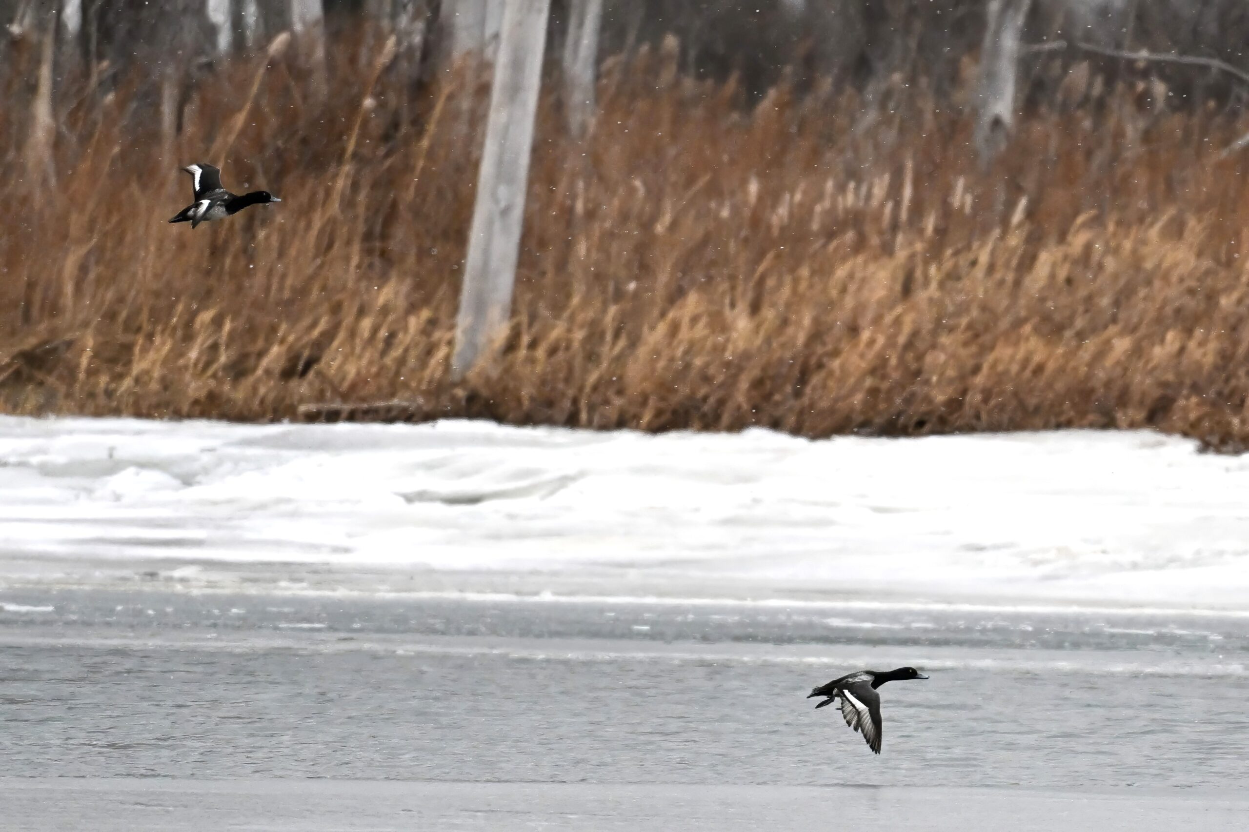 At 8% of respondents, the #2 answer to question #1 of the 2025 BirdingPI.com Readers’ Survey (“What would you like to see more of?”) was, quite sensibly, “More ducks in flight.” Happy to oblige, from Presque Isle State Park in late December, featuring female Lesser Scaup + misc. ‘same day/location’ nature: