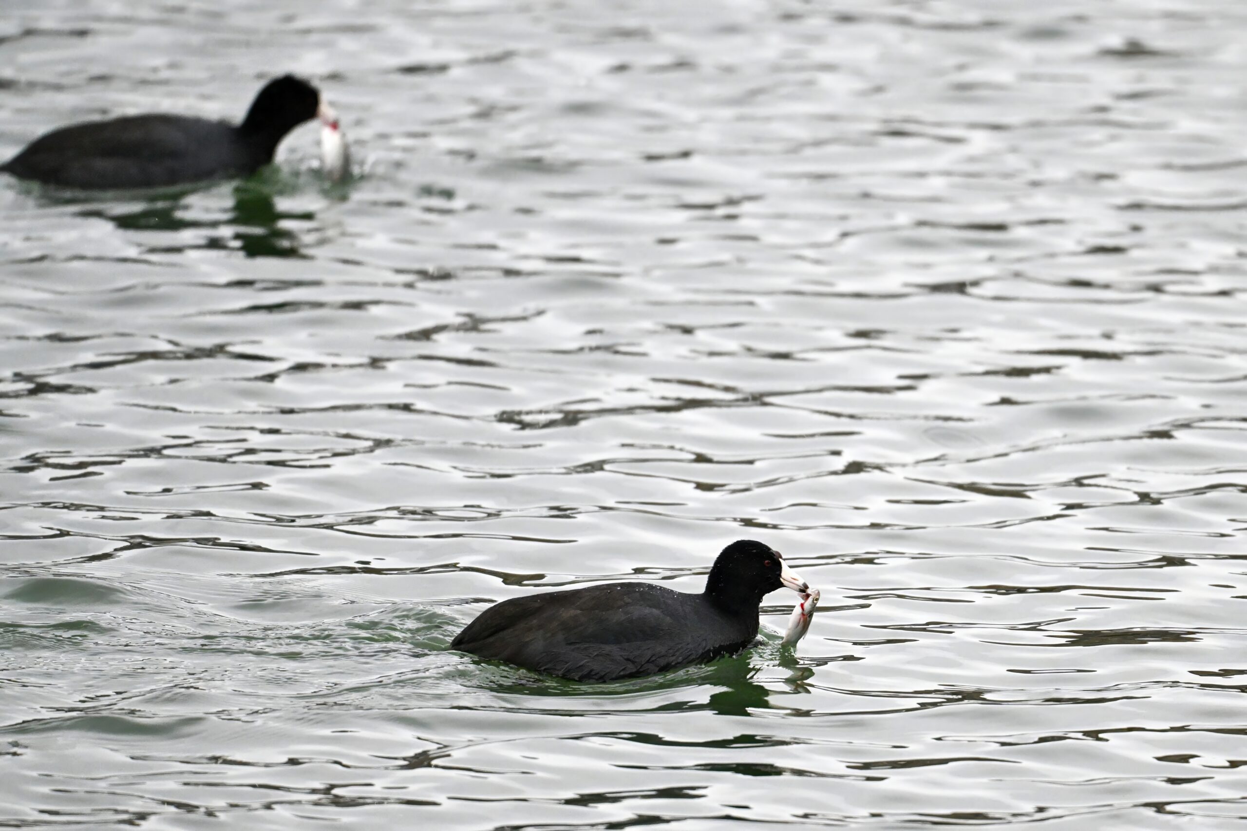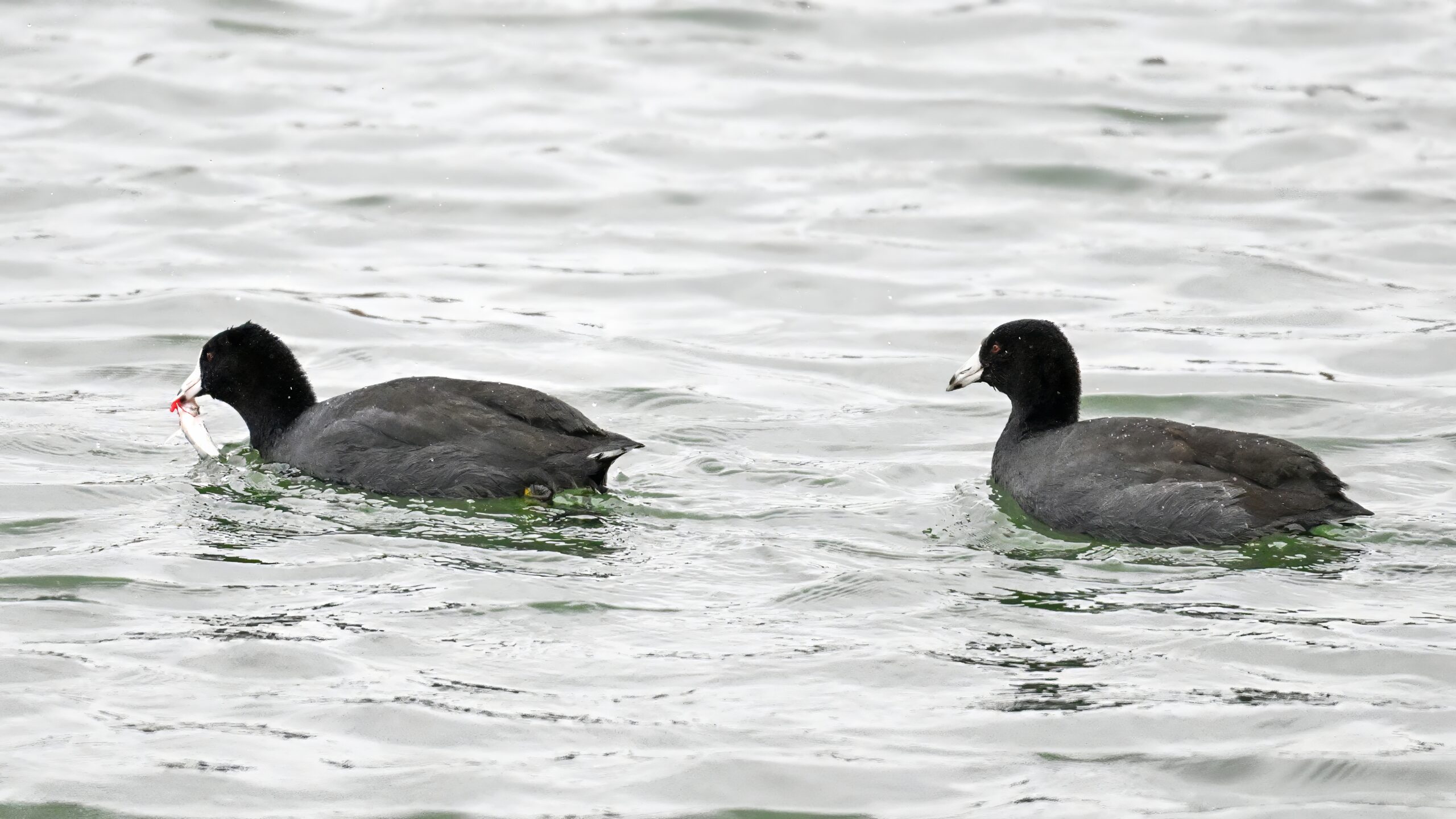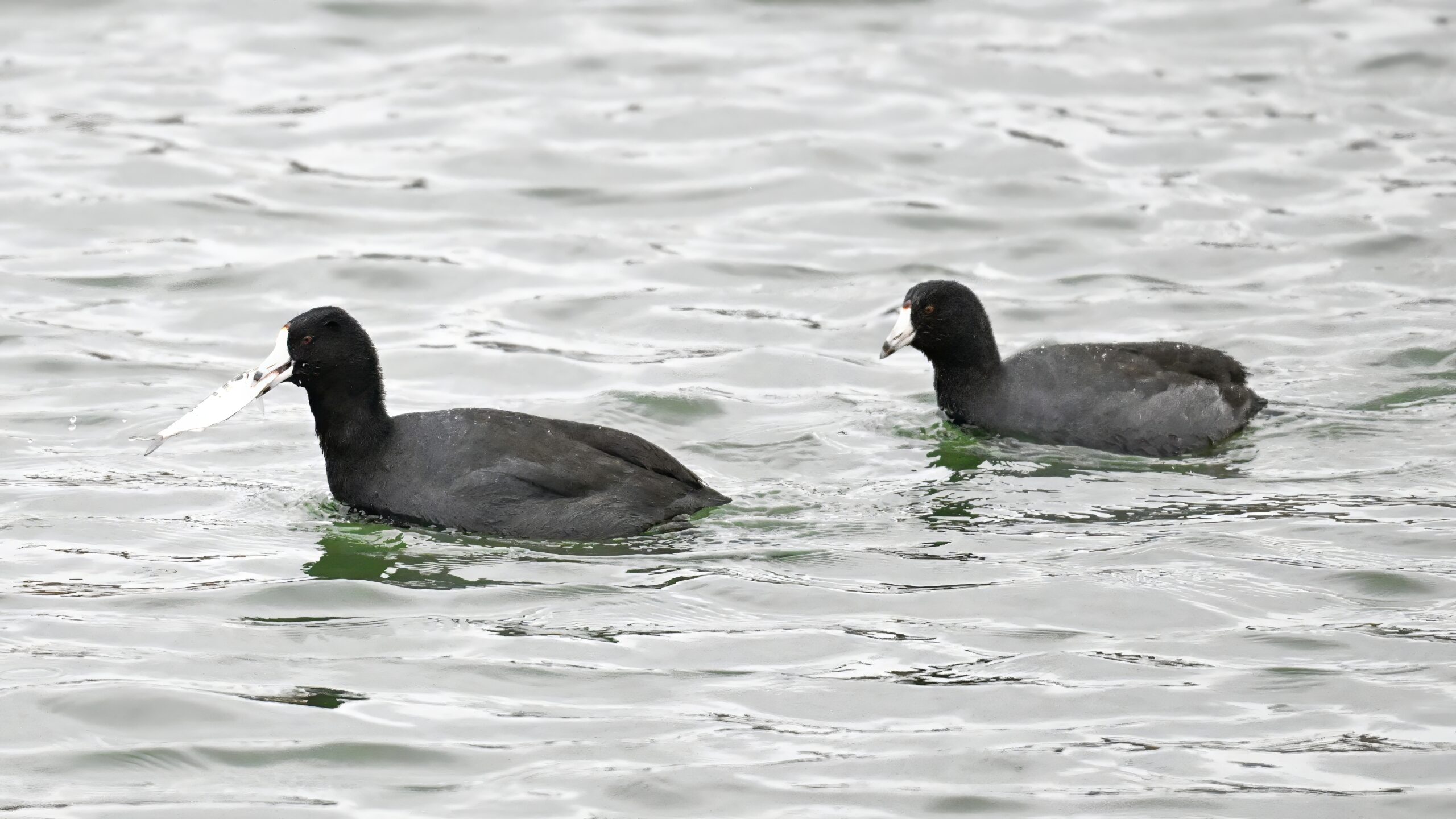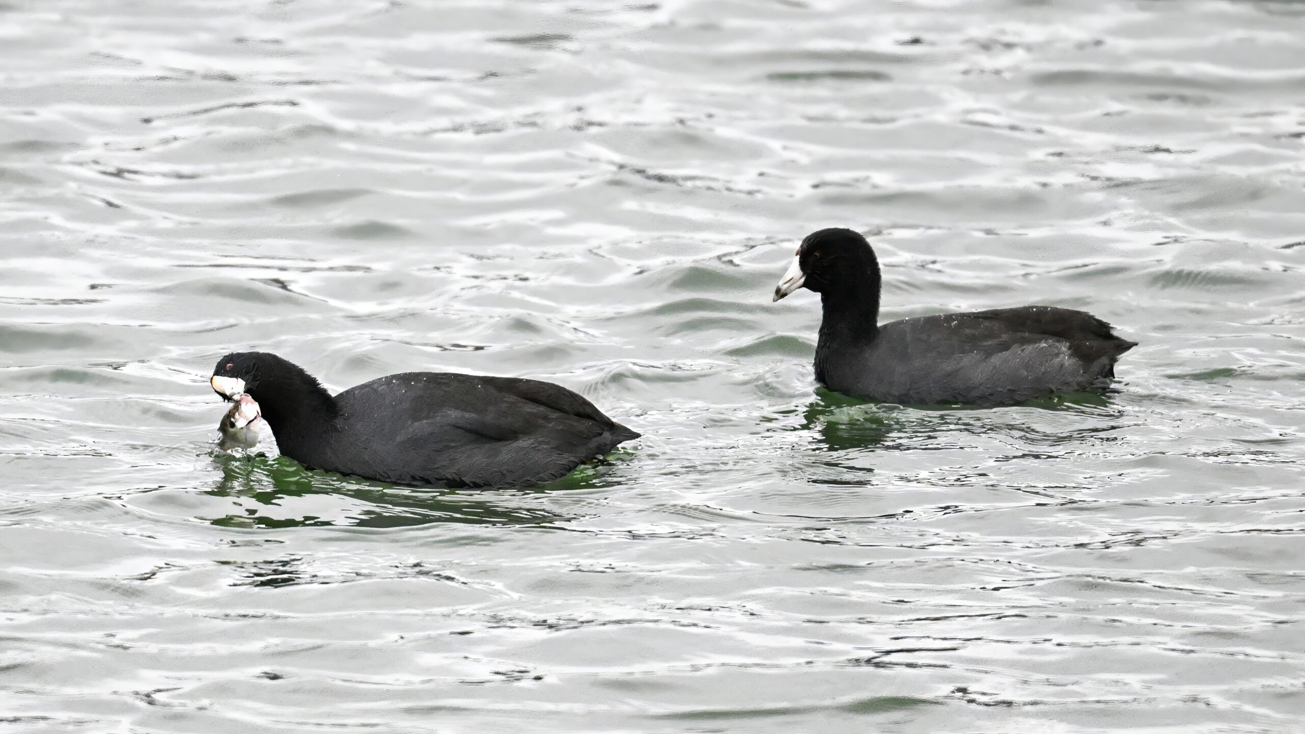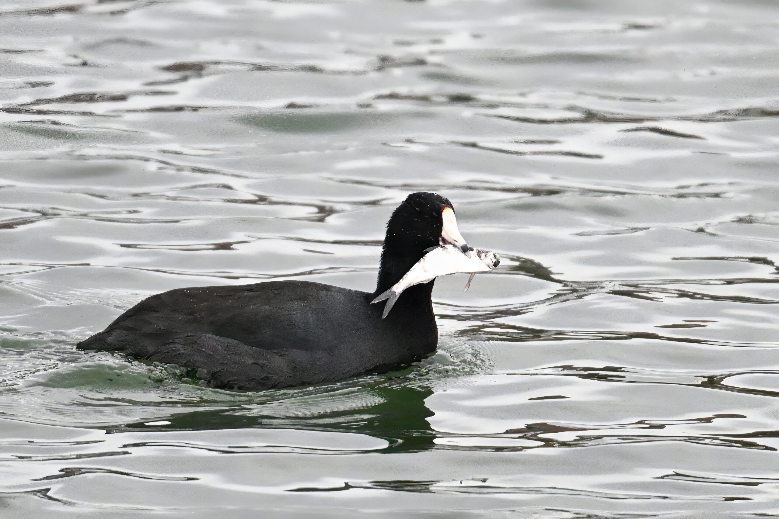 Wishing everyone on the Gregorian calendar a Happy New Year! And with last year over and done, it’s time to release the results of the 2025 BirdingPI.com Readers’ Survey, starting with question 1: “What would you like to see more of?” Near consensus answer @ 87% of respondents: “More pictures of birds eating fish.” Well, happy to oblige with a giant post of poorly lit digital photographs of American Coot at the marina at Erie downtown bayfront on 26 December: