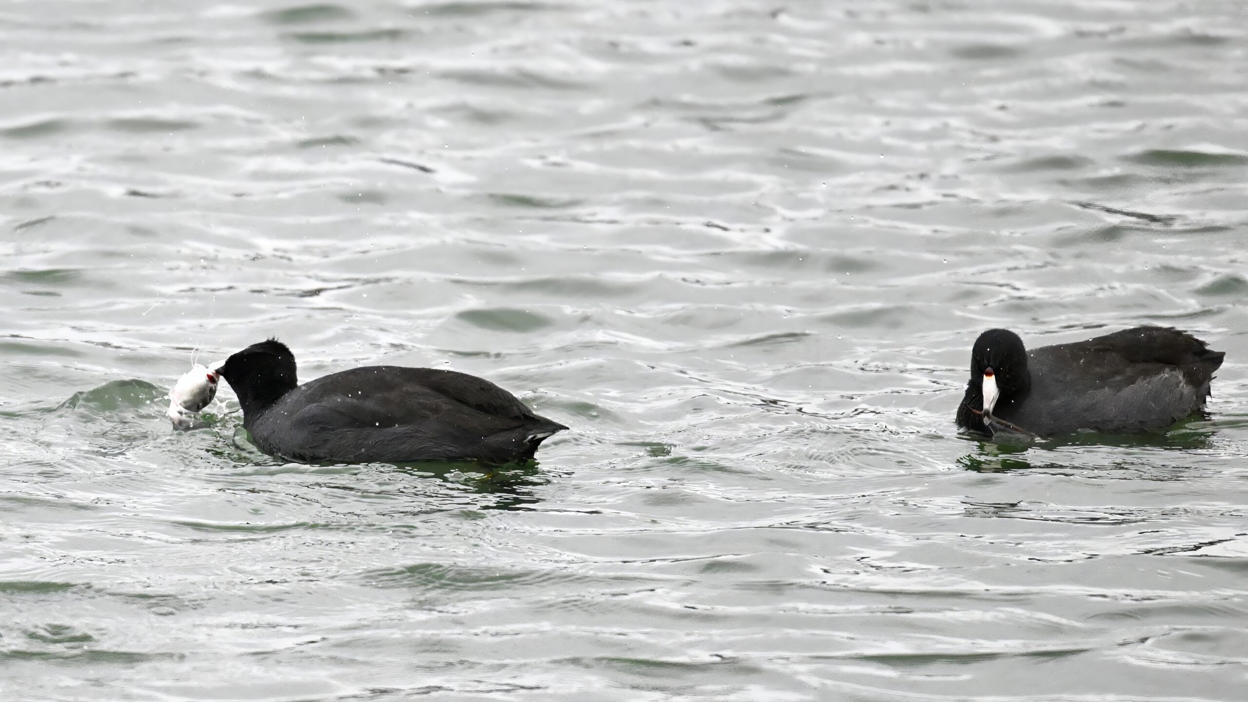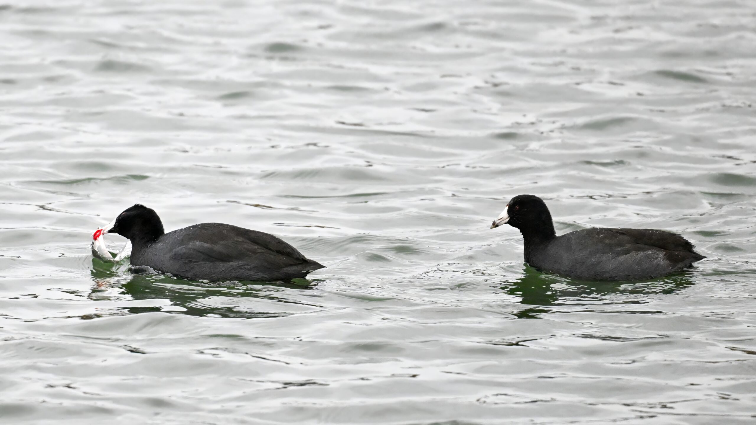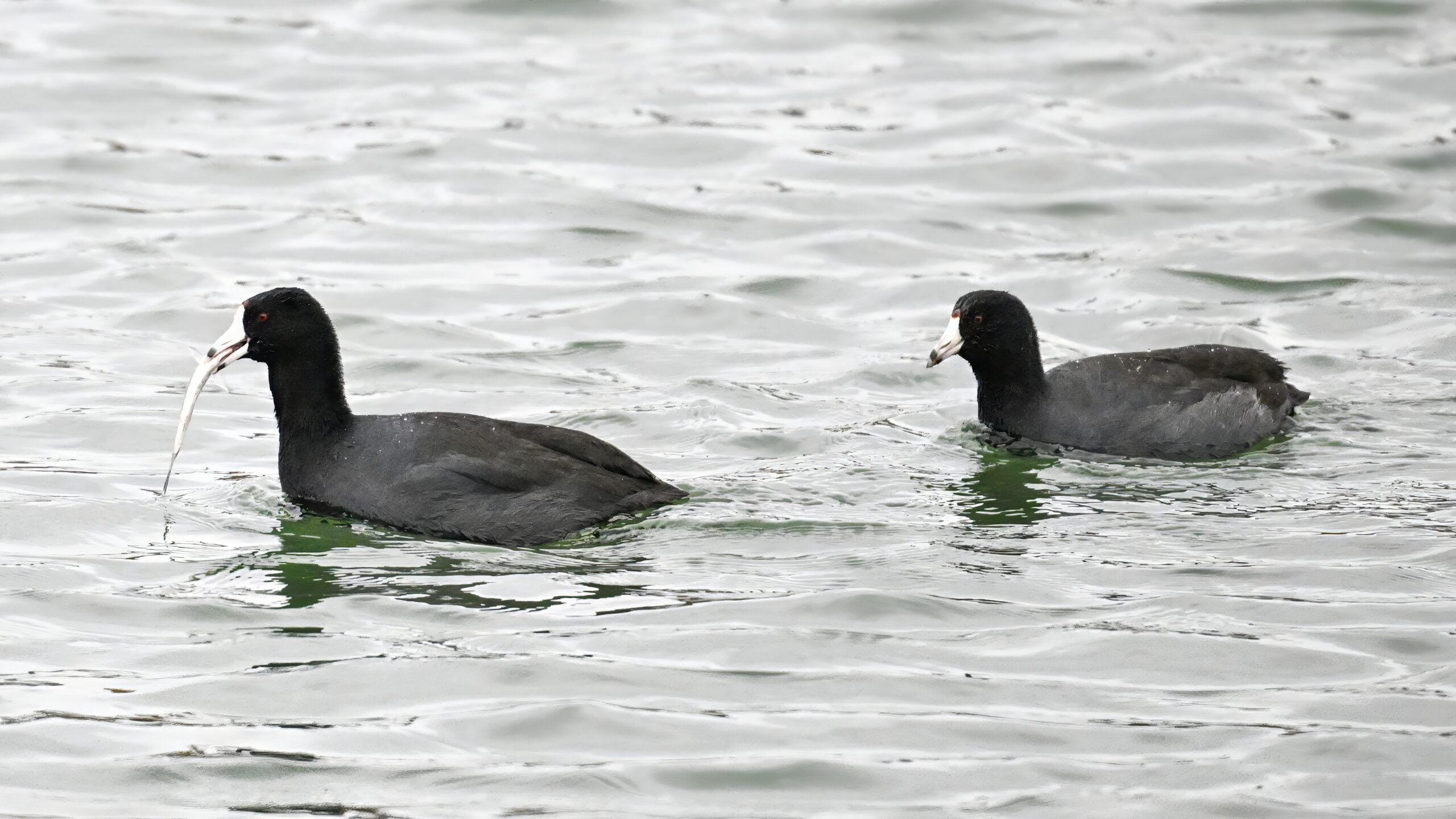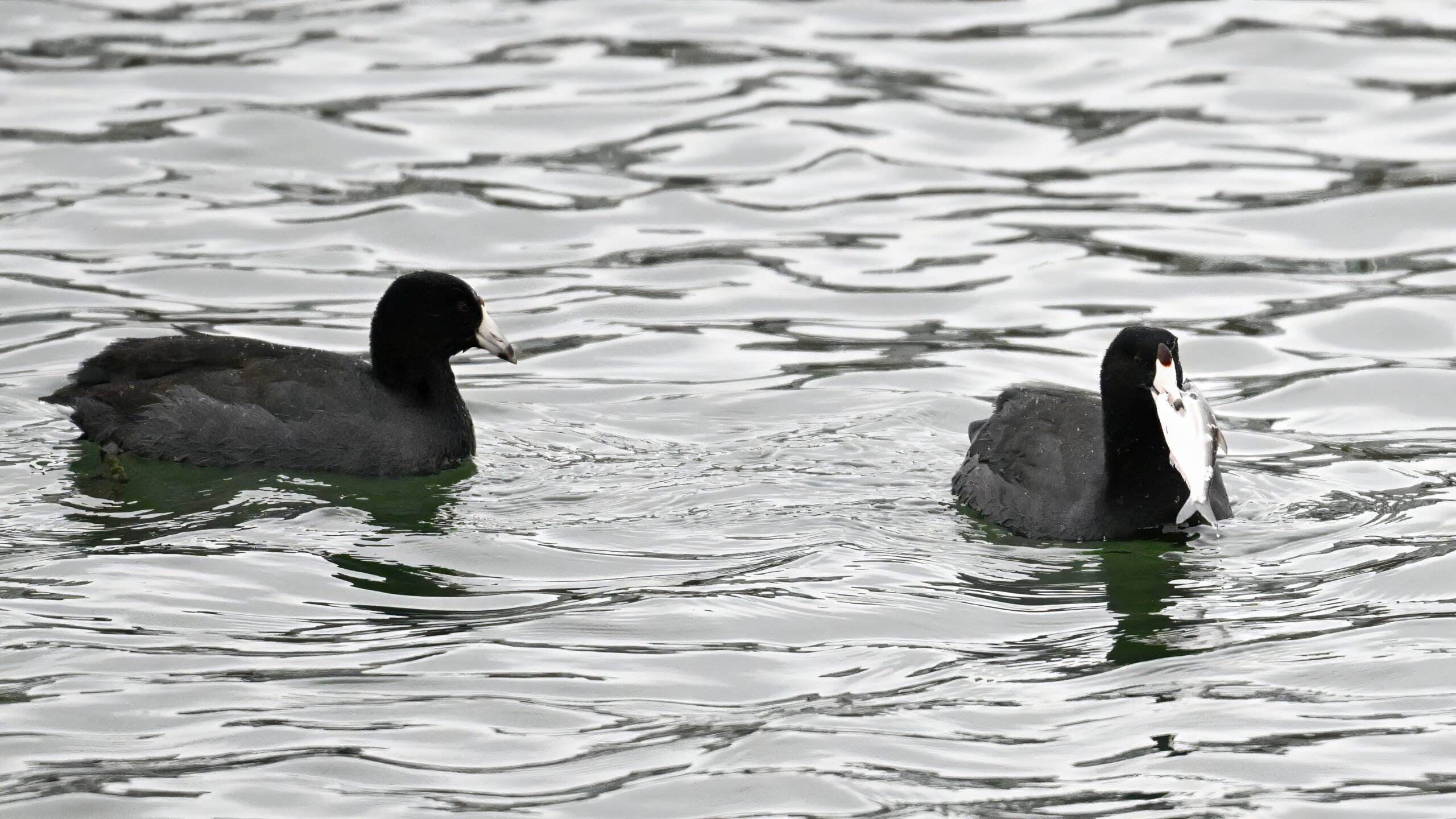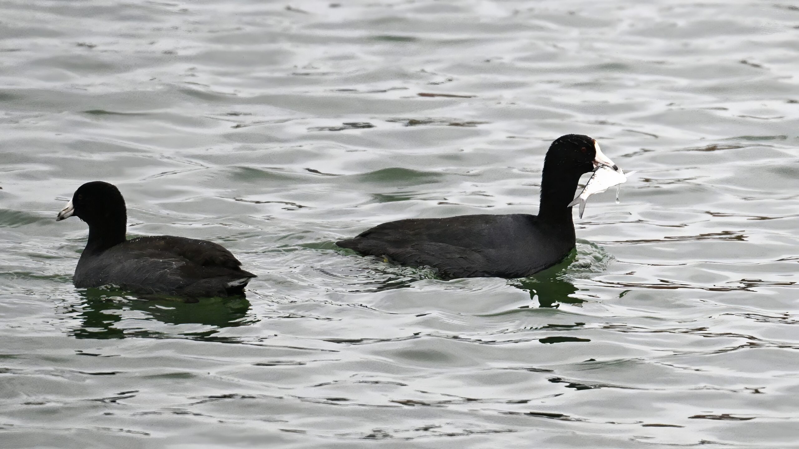 Wishing everyone on the Gregorian calendar a Happy New Year! And with last year over and done, it’s time to release the results of the 2025 BirdingPI.com Readers’ Survey, starting with question 1: “What would you like to see more of?” Near consensus answer @ 87% of respondents: “More pictures of birds eating fish.” Well, happy to oblige with a giant post of poorly lit digital photographs of American Coot at the marina at Erie downtown bayfront on 26 December: