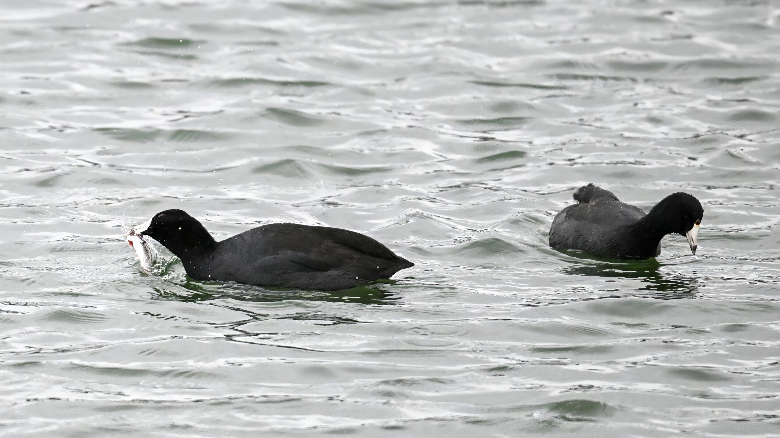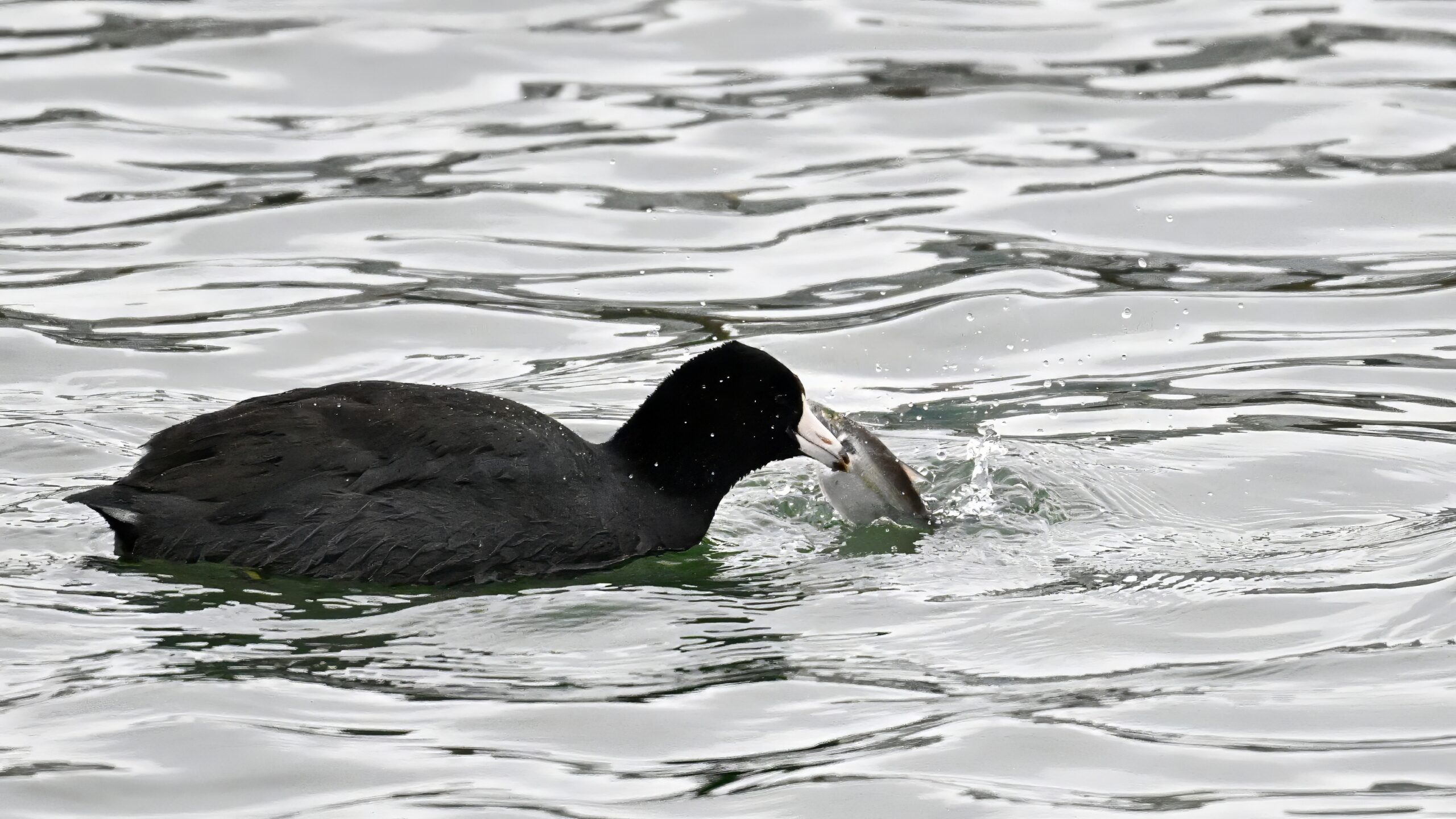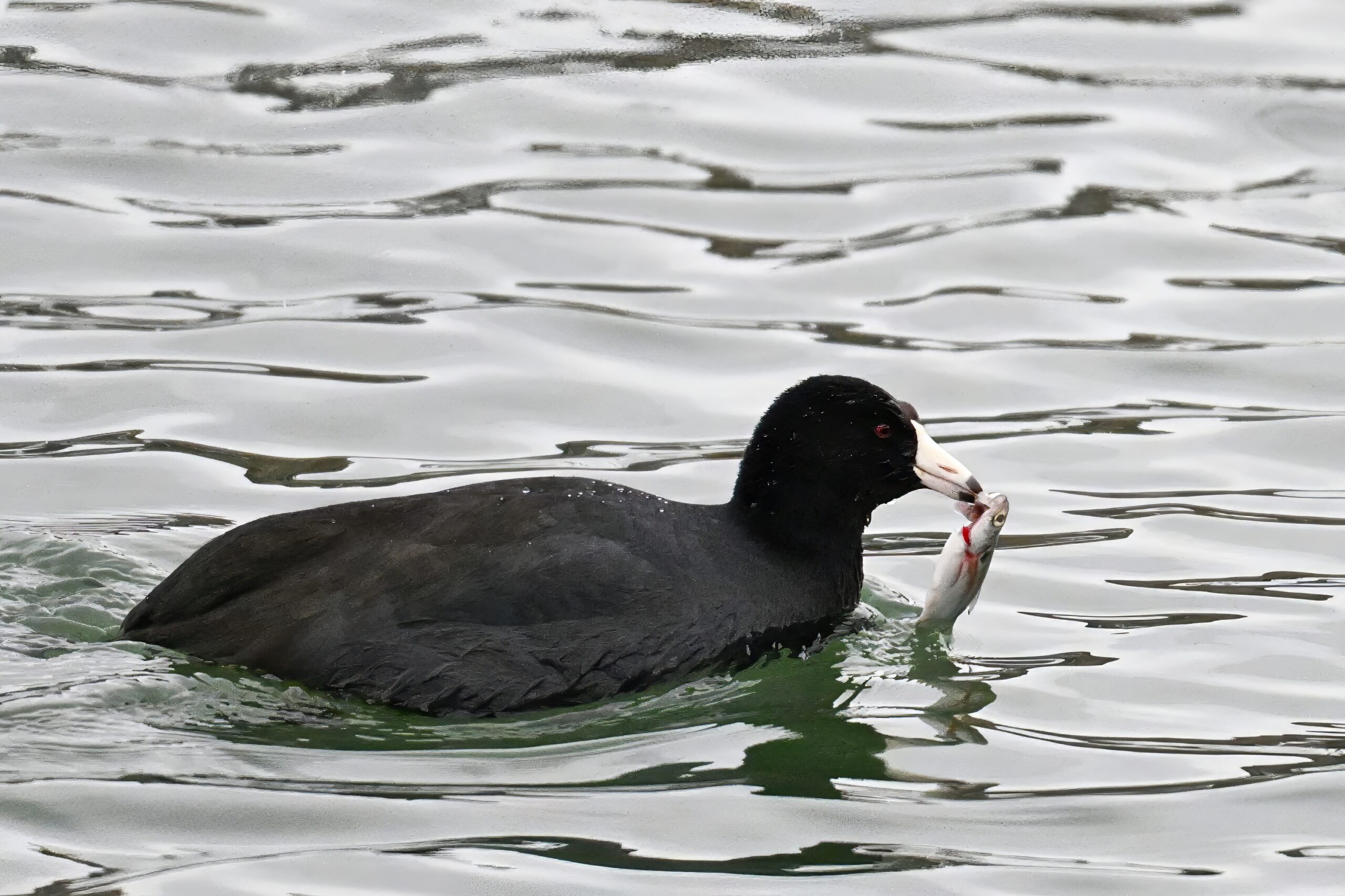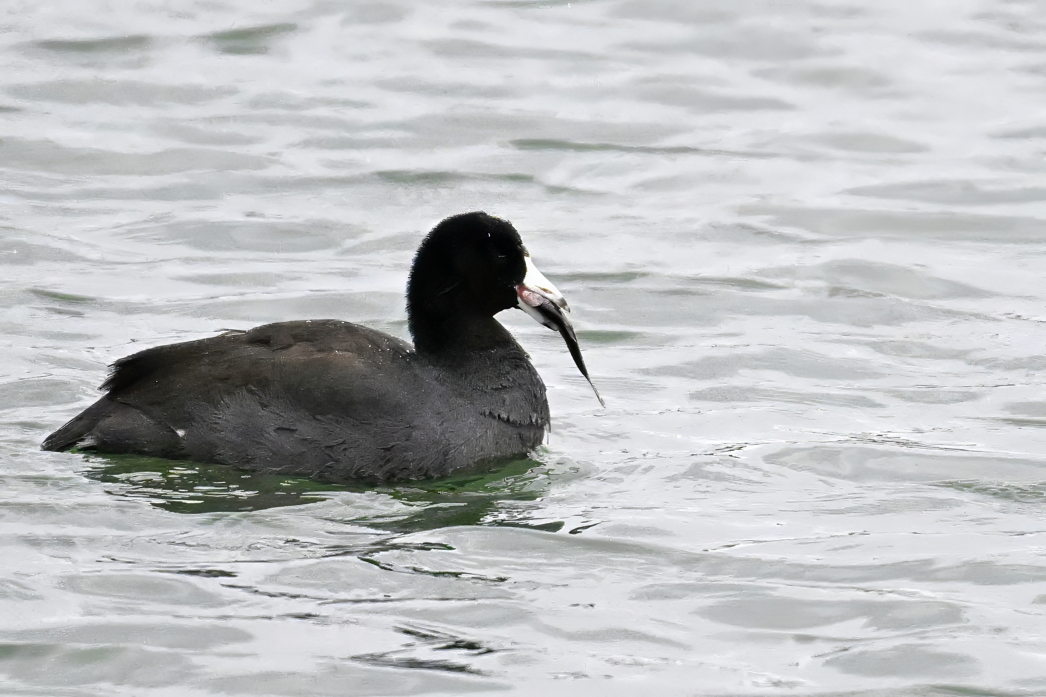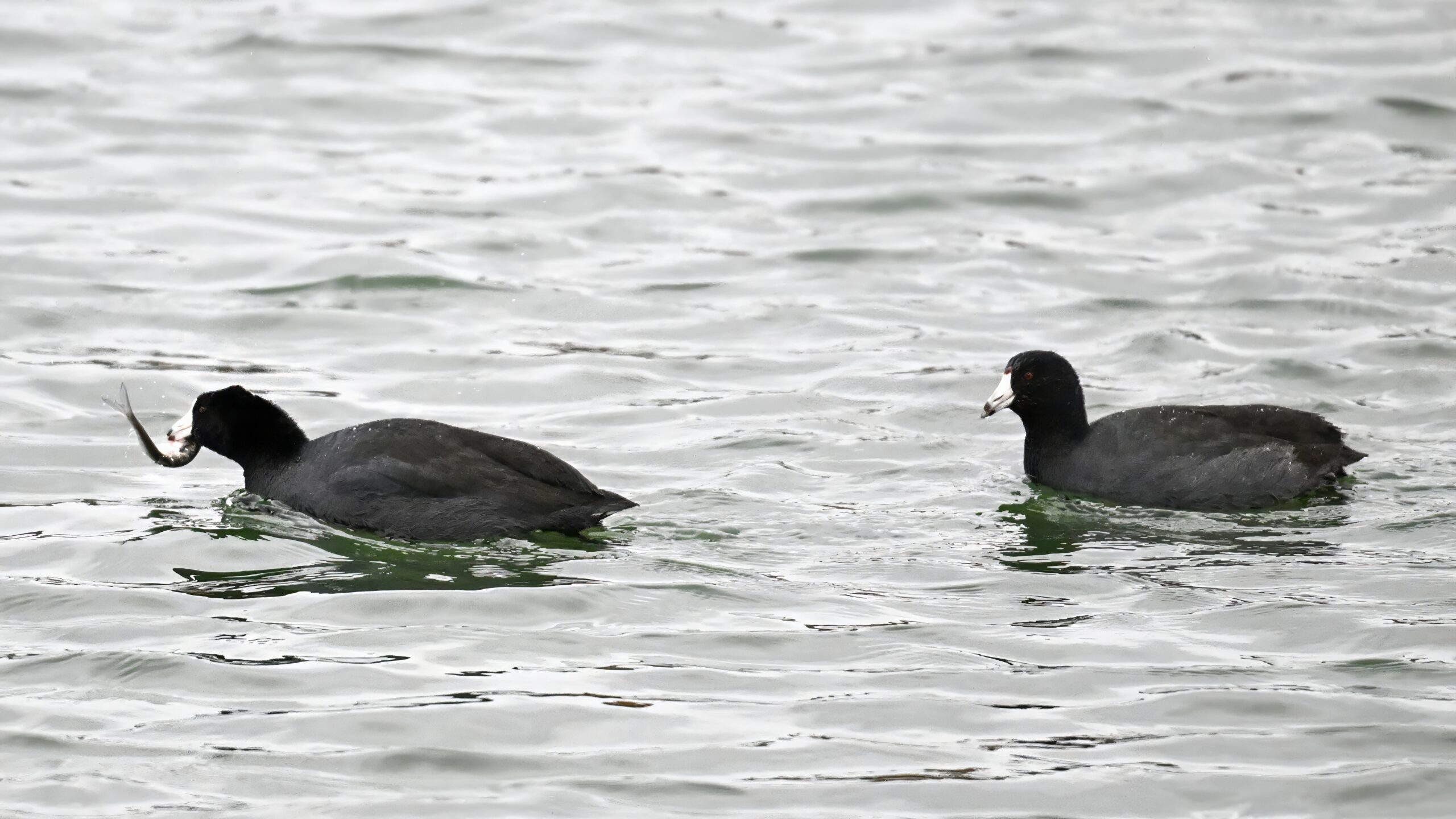 Wishing everyone on the Gregorian calendar a Happy New Year! And with last year over and done, it’s time to release the results of the 2025 BirdingPI.com Readers’ Survey, starting with question 1: “What would you like to see more of?” Near consensus answer @ 87% of respondents: “More pictures of birds eating fish.” Well, happy to oblige with a giant post of poorly lit digital photographs of American Coot at the marina at Erie downtown bayfront on 26 December: