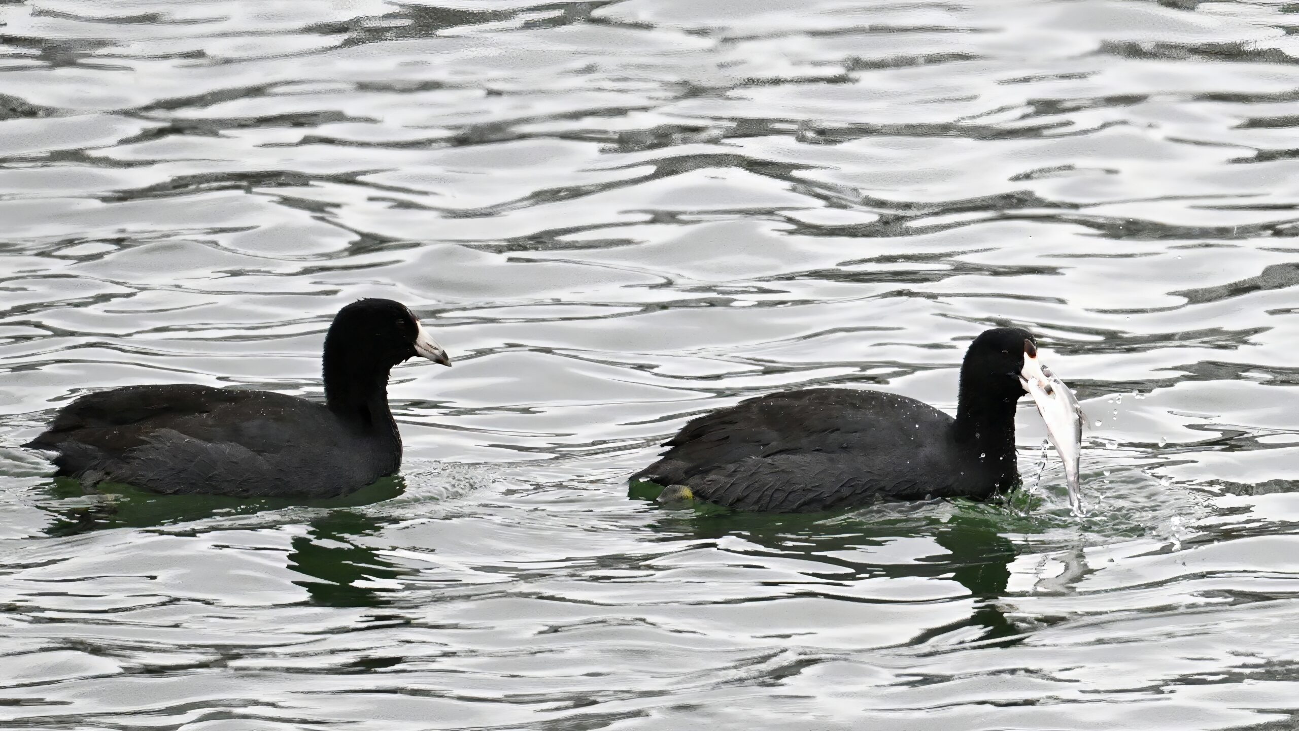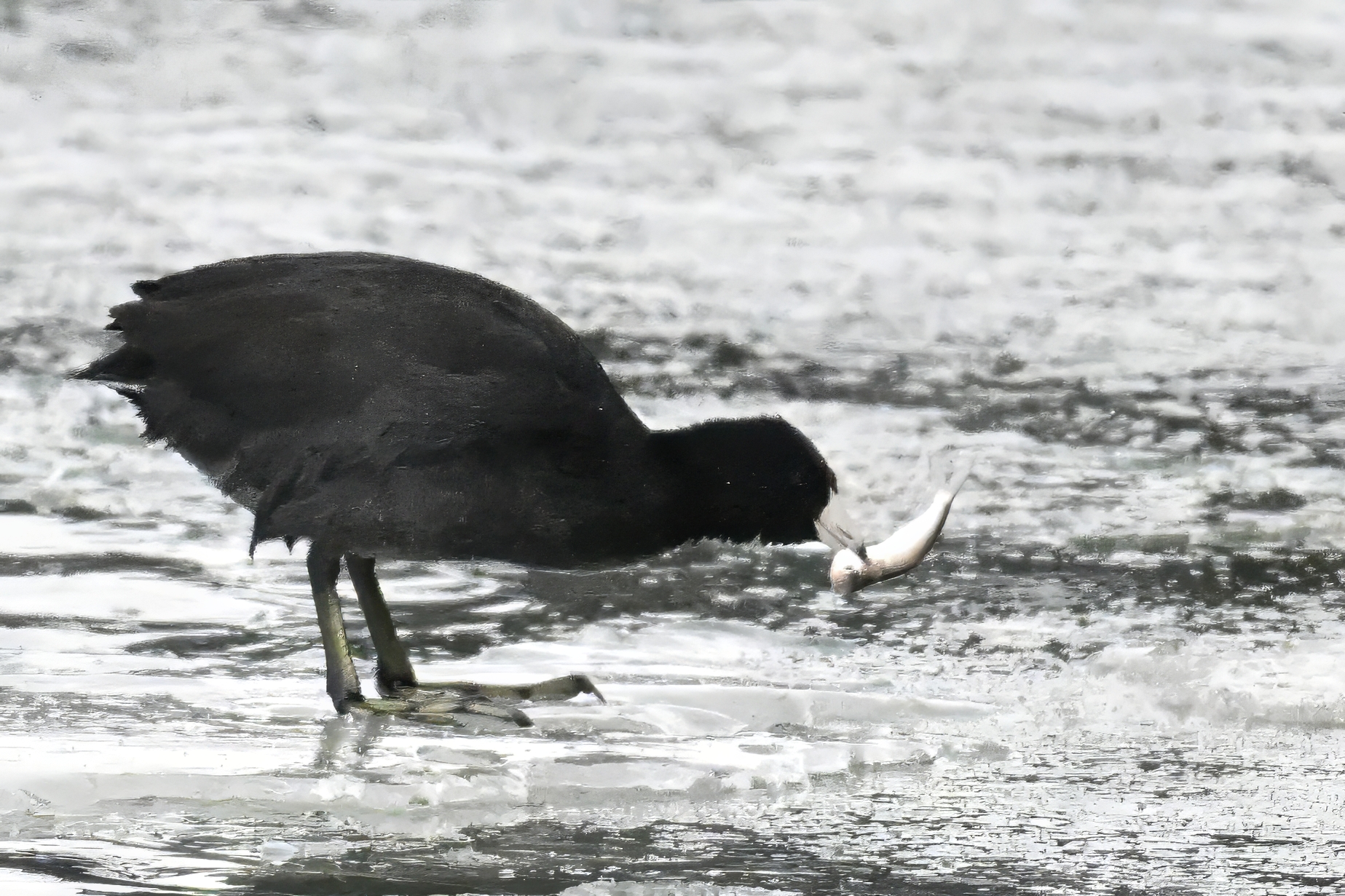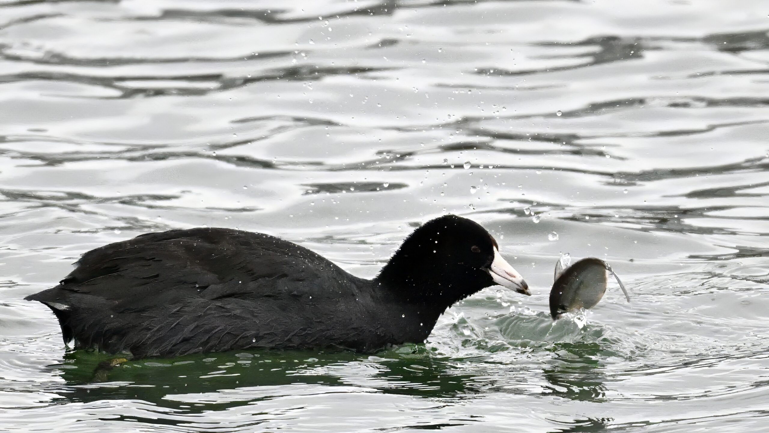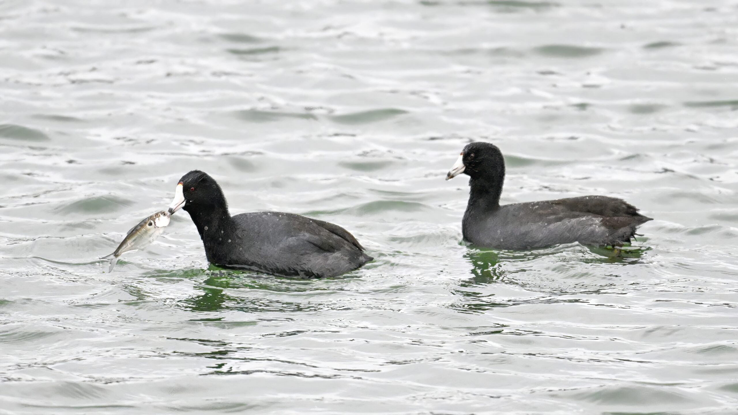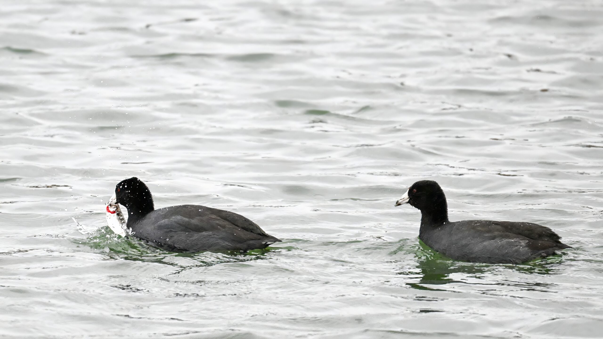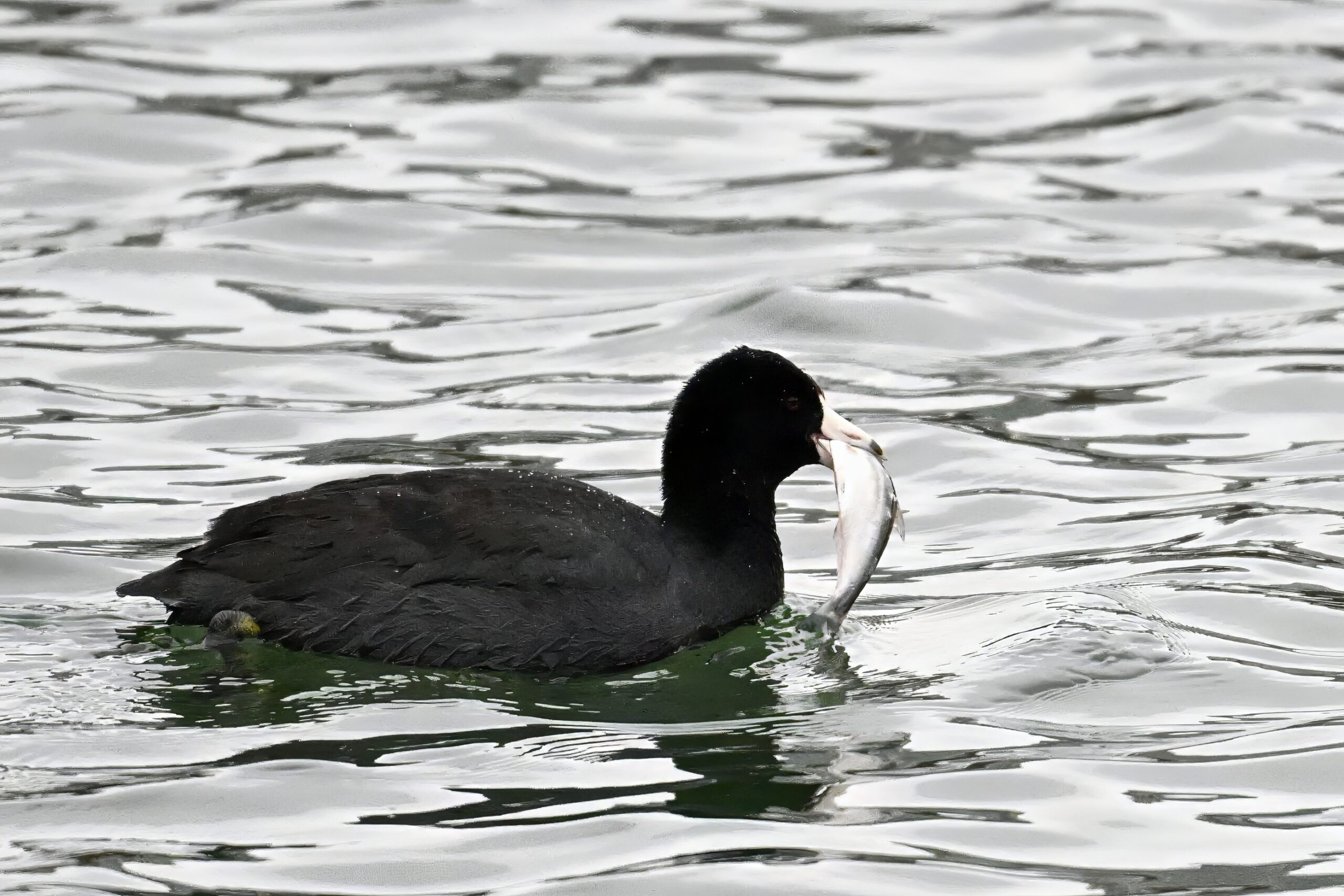 Wishing everyone on the Gregorian calendar a Happy New Year! And with last year over and done, it’s time to release the results of the 2025 BirdingPI.com Readers’ Survey, starting with question 1: “What would you like to see more of?” Near consensus answer @ 87% of respondents: “More pictures of birds eating fish.” Well, happy to oblige with a giant post of poorly lit digital photographs of American Coot at the marina at Erie downtown bayfront on 26 December: