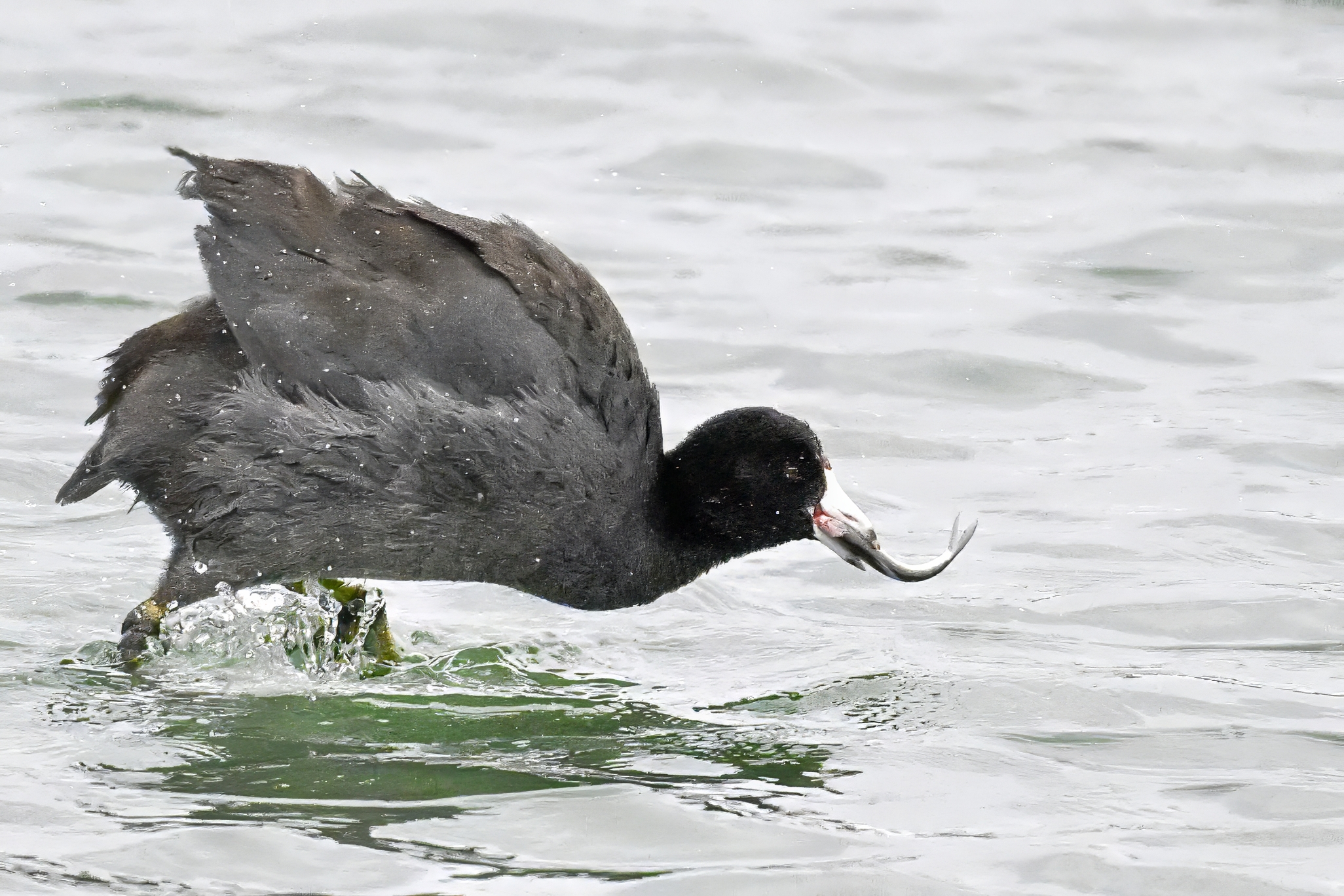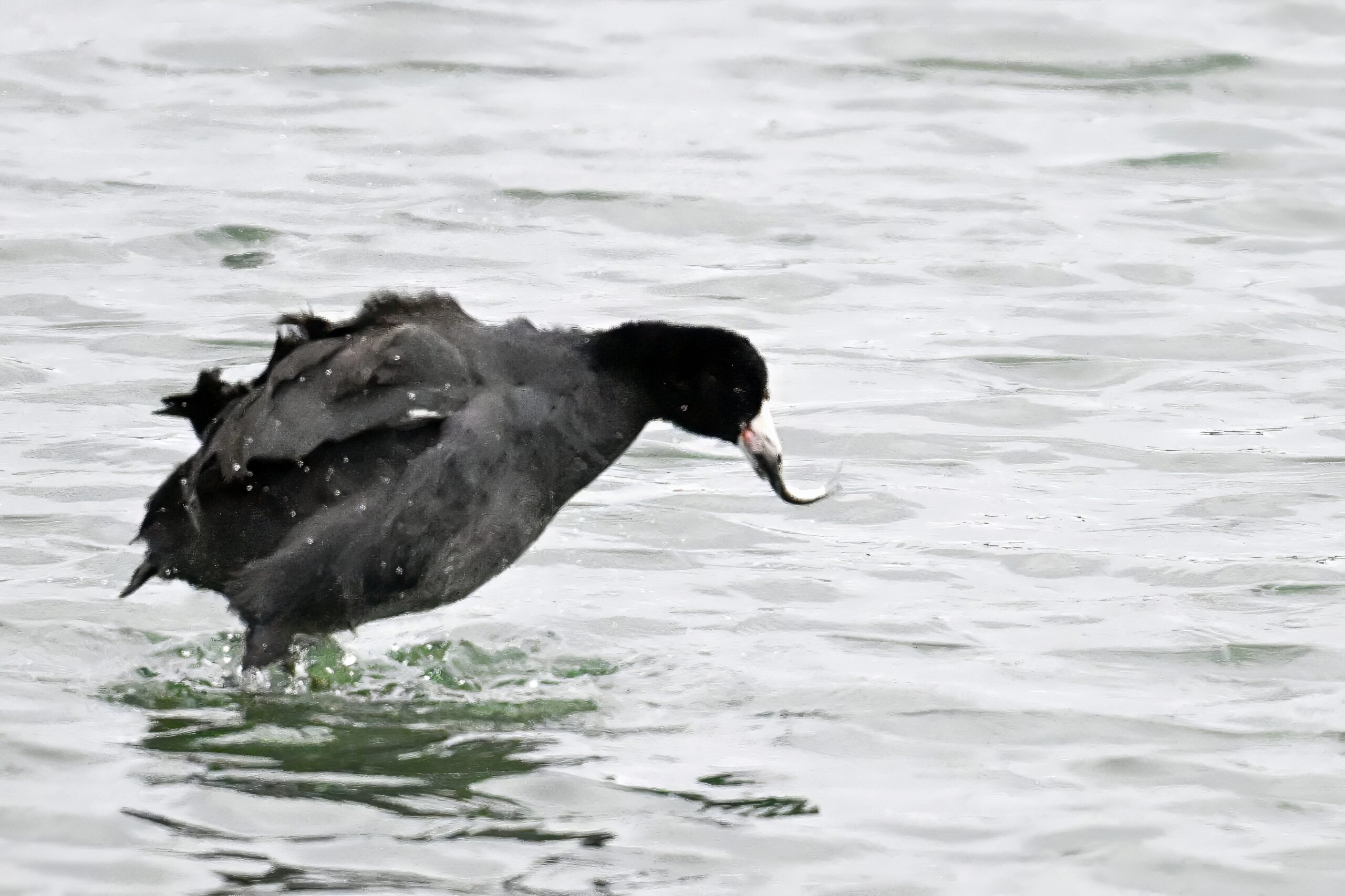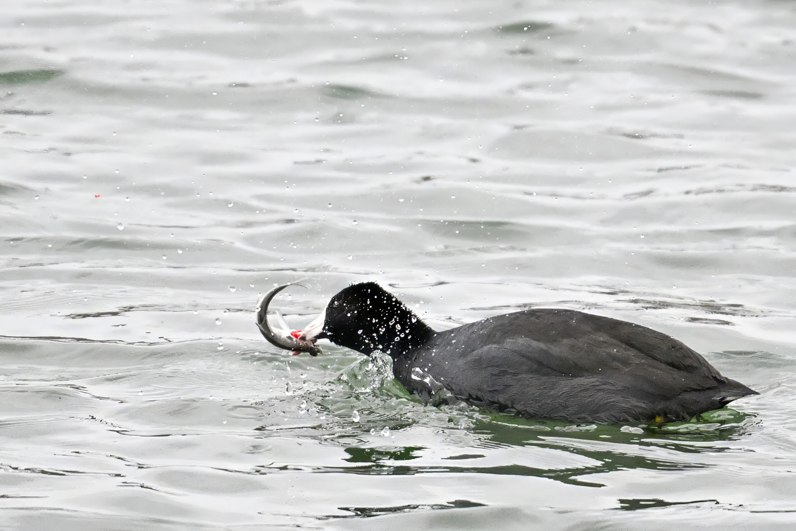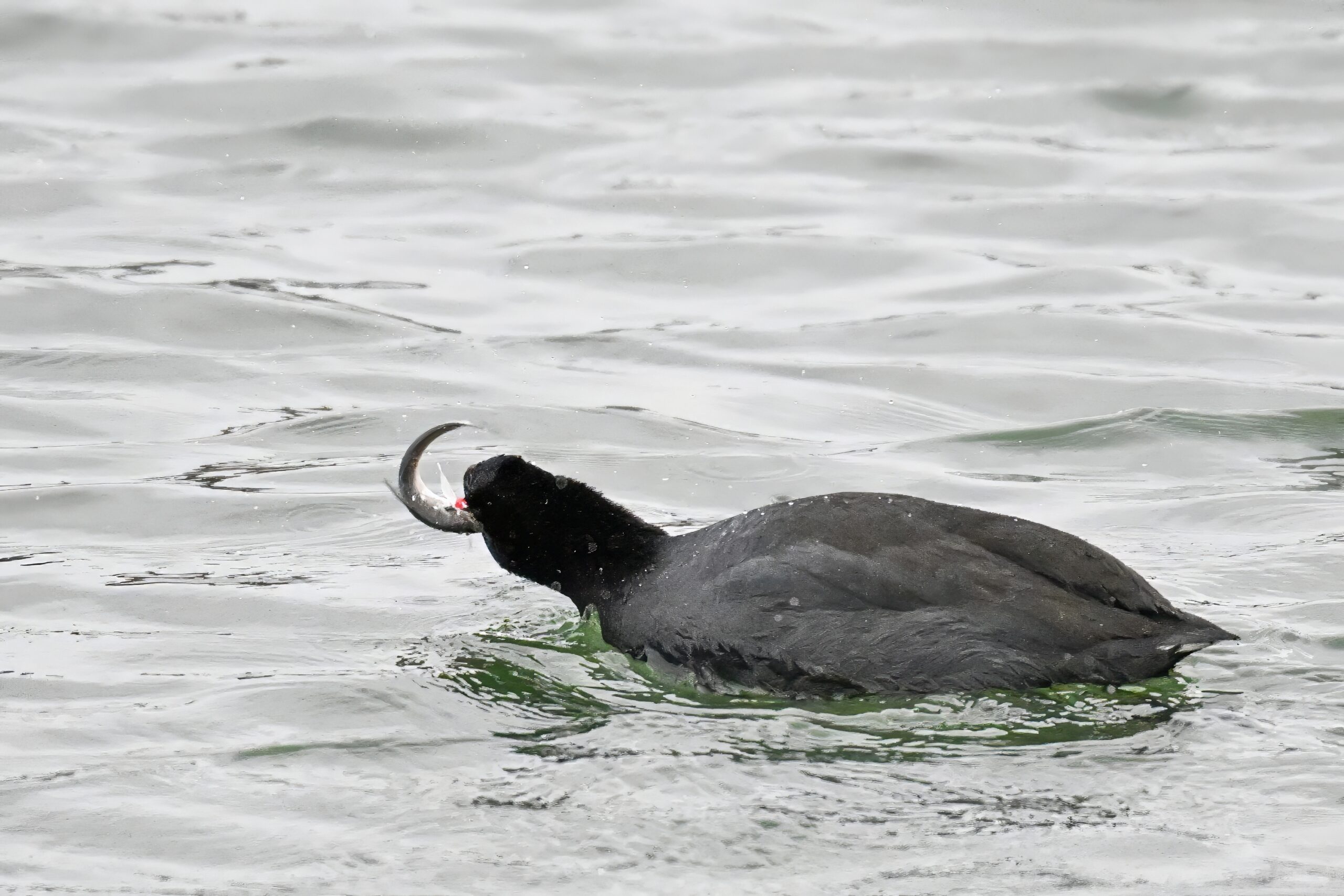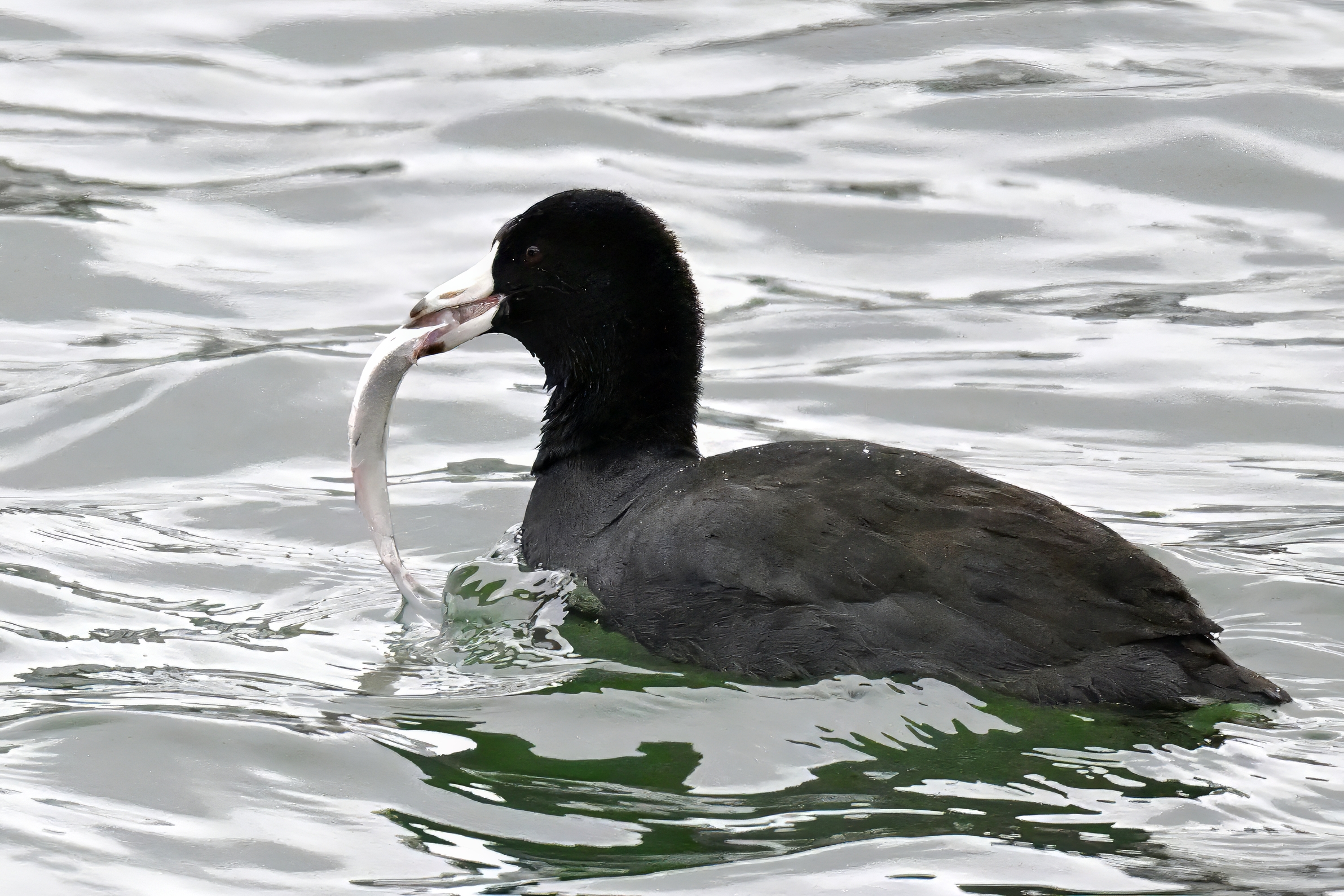 Wishing everyone on the Gregorian calendar a Happy New Year! And with last year over and done, it’s time to release the results of the 2025 BirdingPI.com Readers’ Survey, starting with question 1: “What would you like to see more of?” Near consensus answer @ 87% of respondents: “More pictures of birds eating fish.” Well, happy to oblige with a giant post of poorly lit digital photographs of American Coot at the marina at Erie downtown bayfront on 26 December: