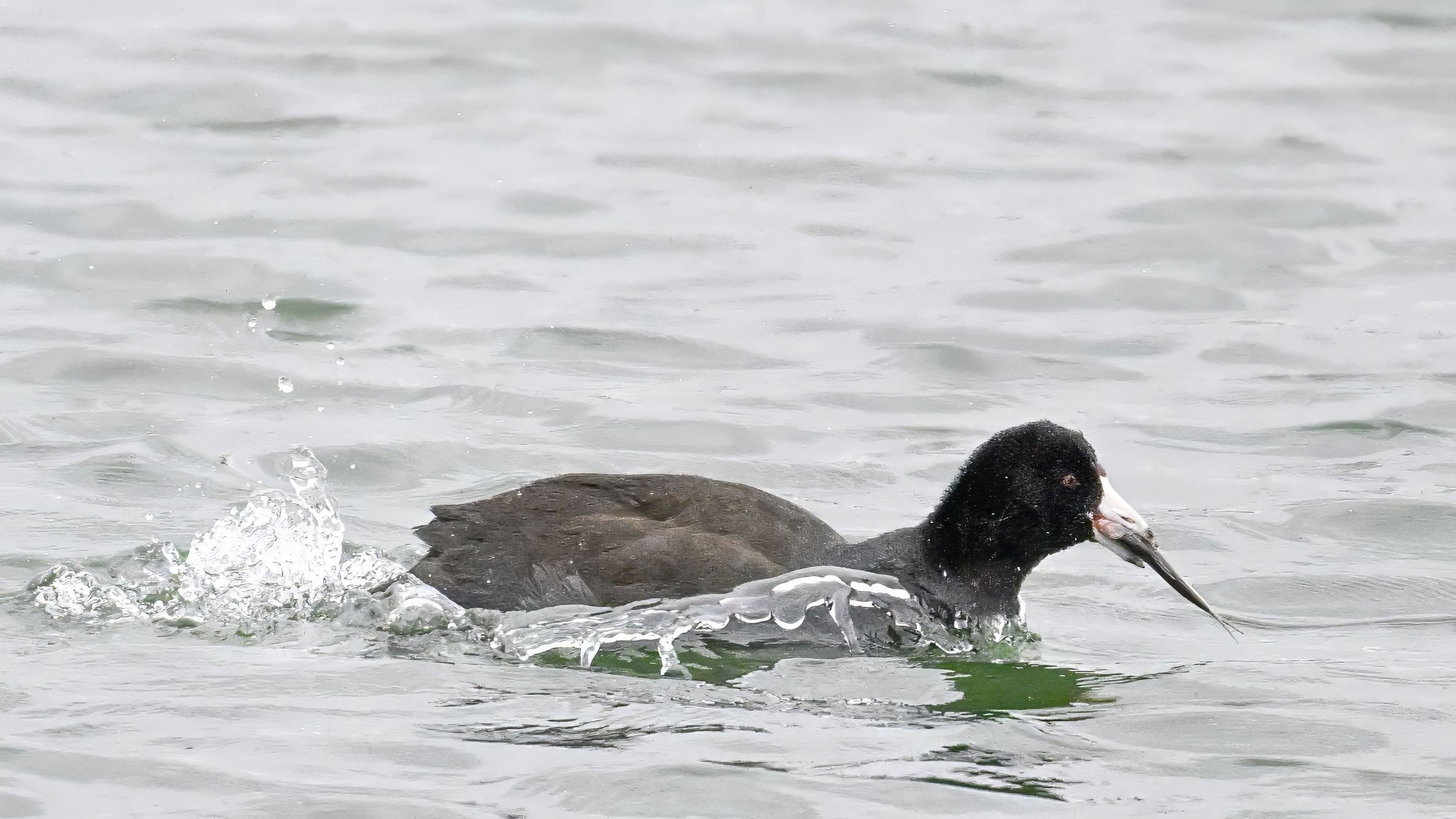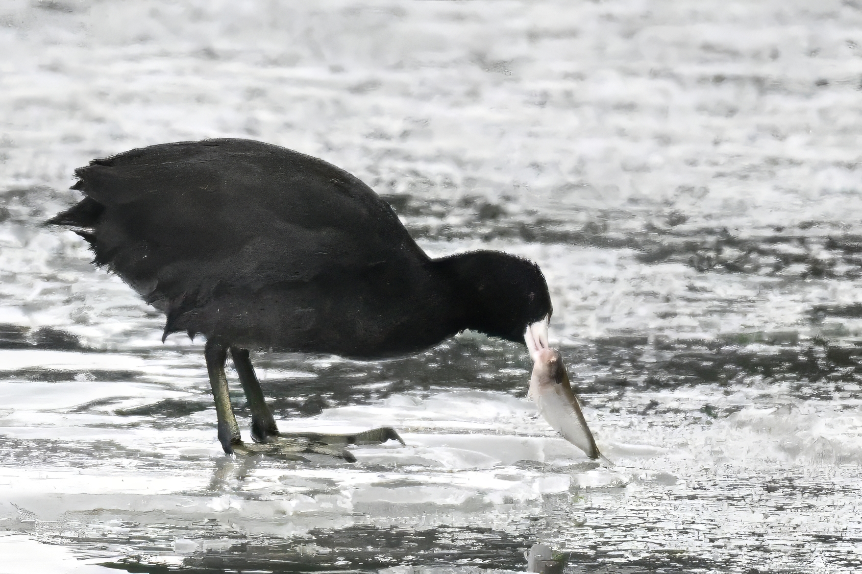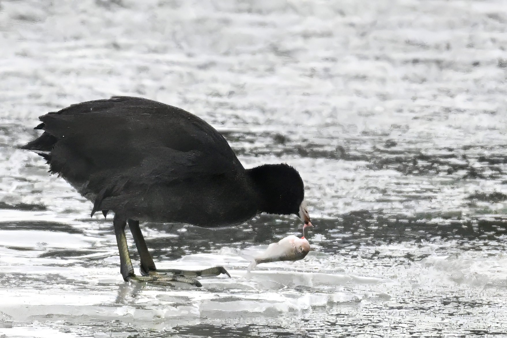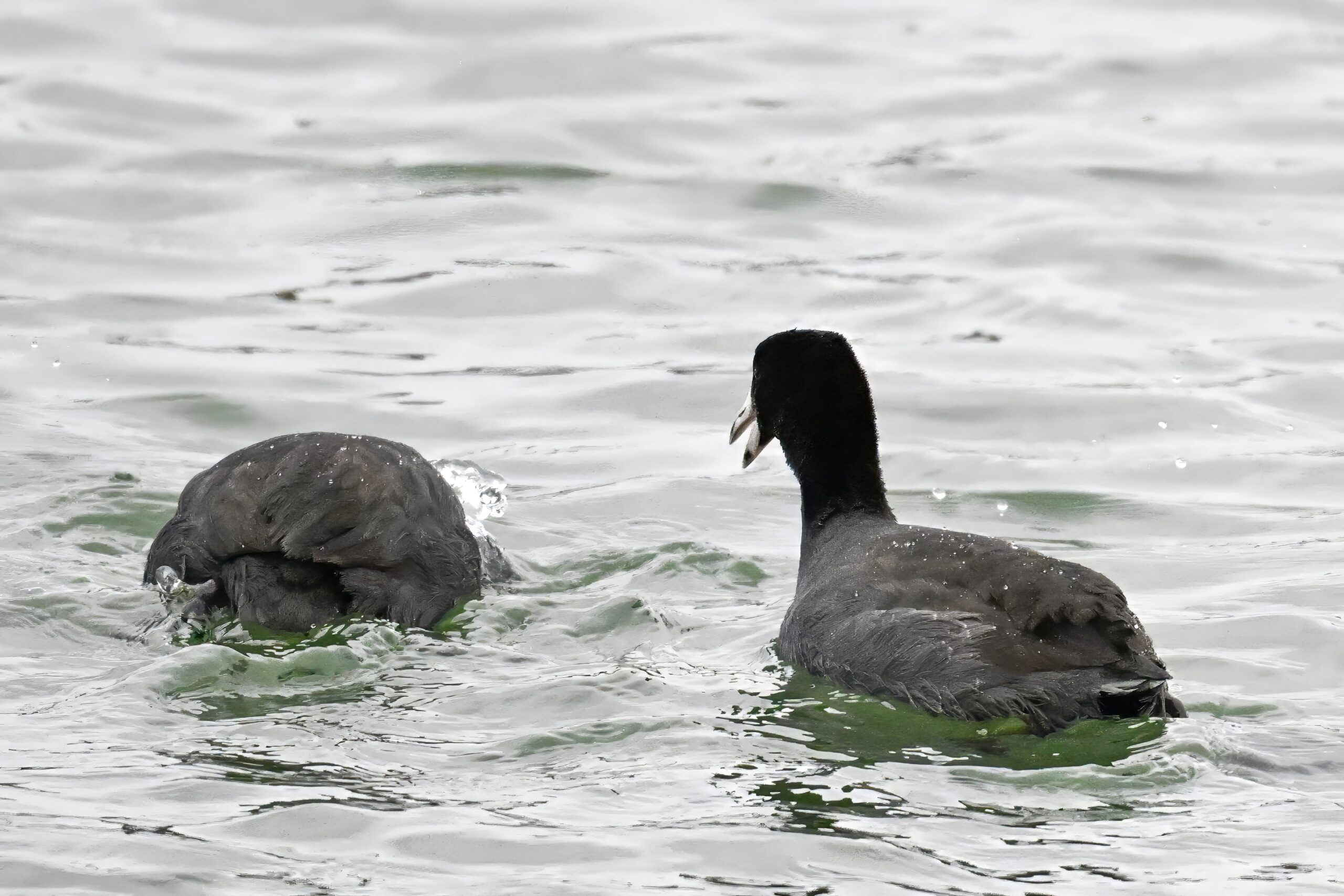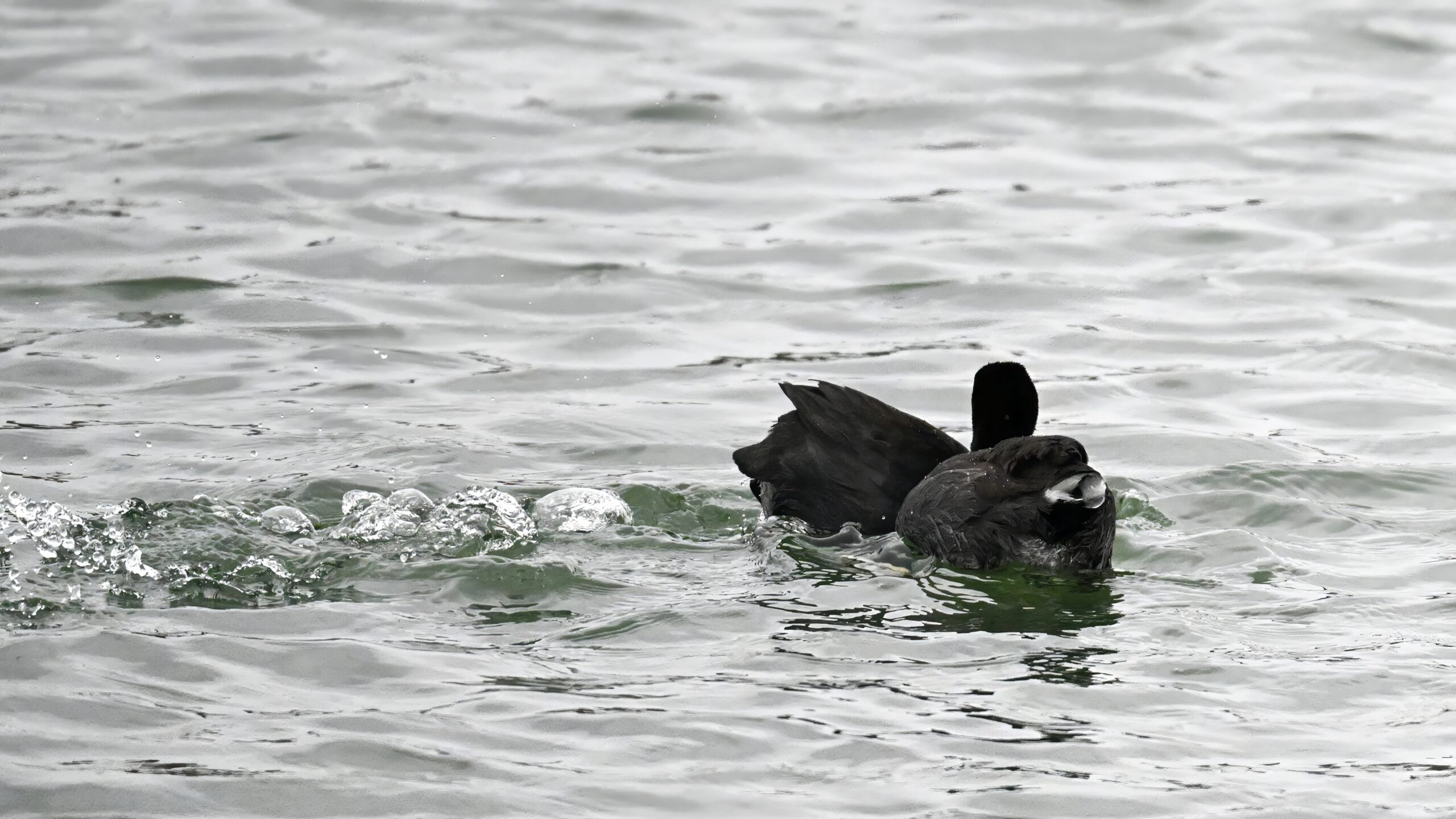 Wishing everyone on the Gregorian calendar a Happy New Year! And with last year over and done, it’s time to release the results of the 2025 BirdingPI.com Readers’ Survey, starting with question 1: “What would you like to see more of?” Near consensus answer @ 87% of respondents: “More pictures of birds eating fish.” Well, happy to oblige with a giant post of poorly lit digital photographs of American Coot at the marina at Erie downtown bayfront on 26 December: