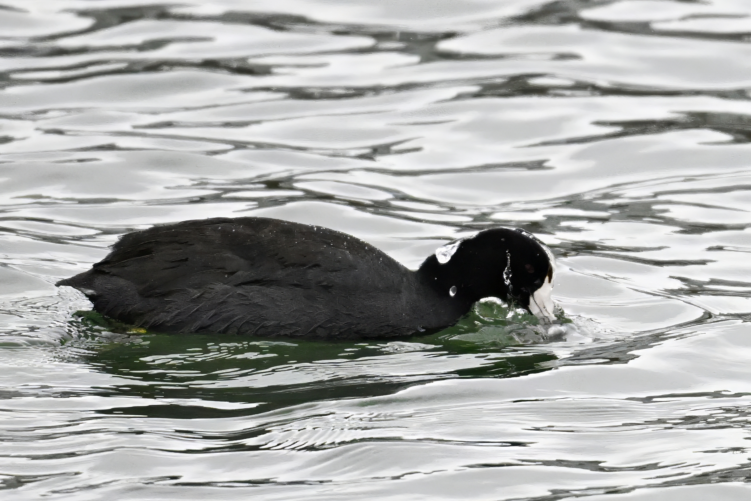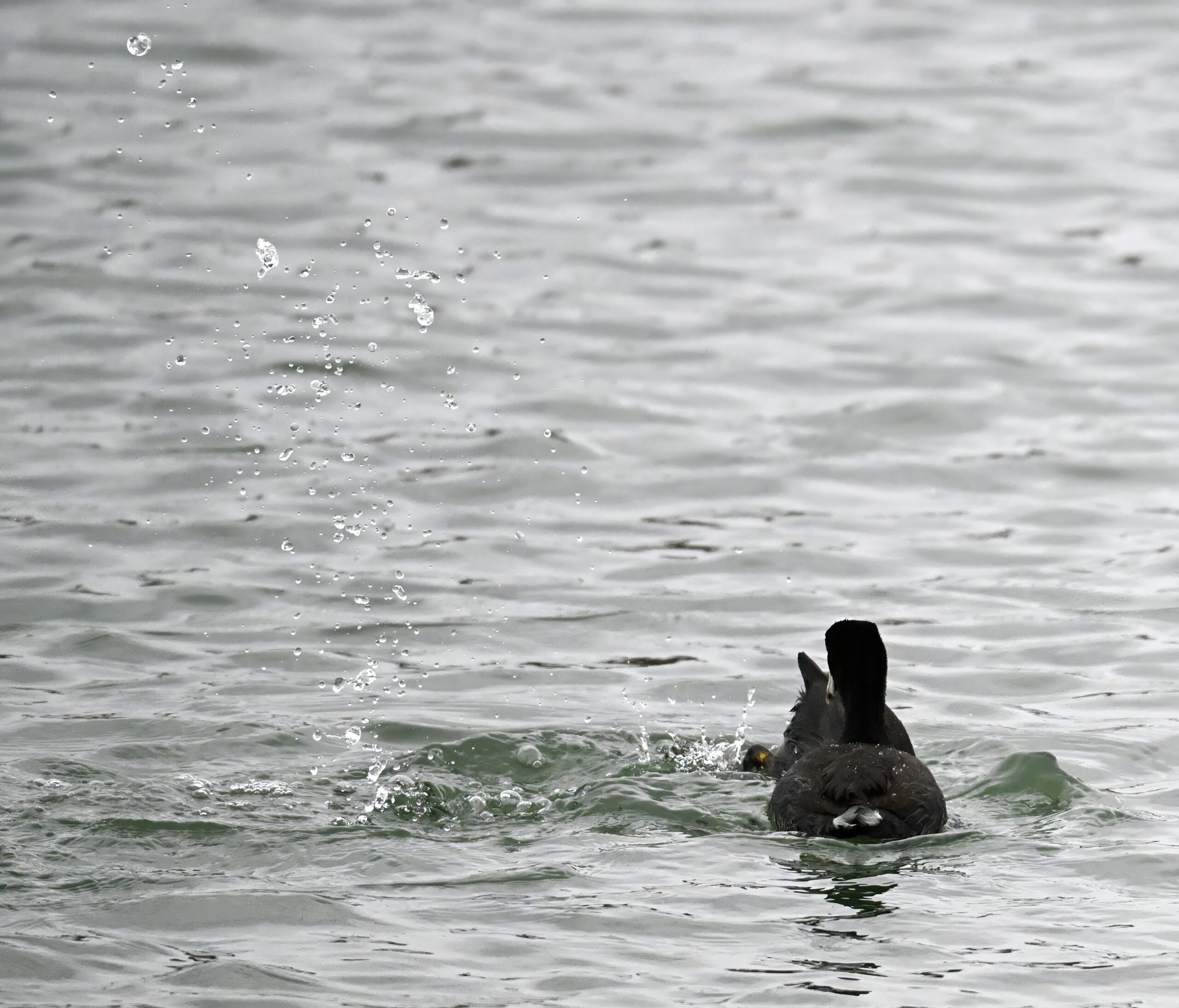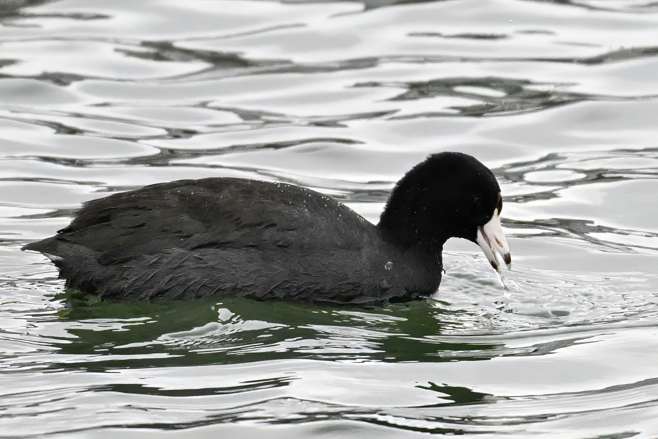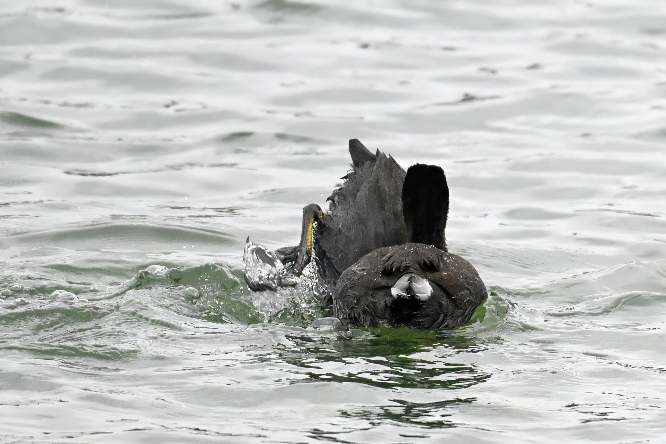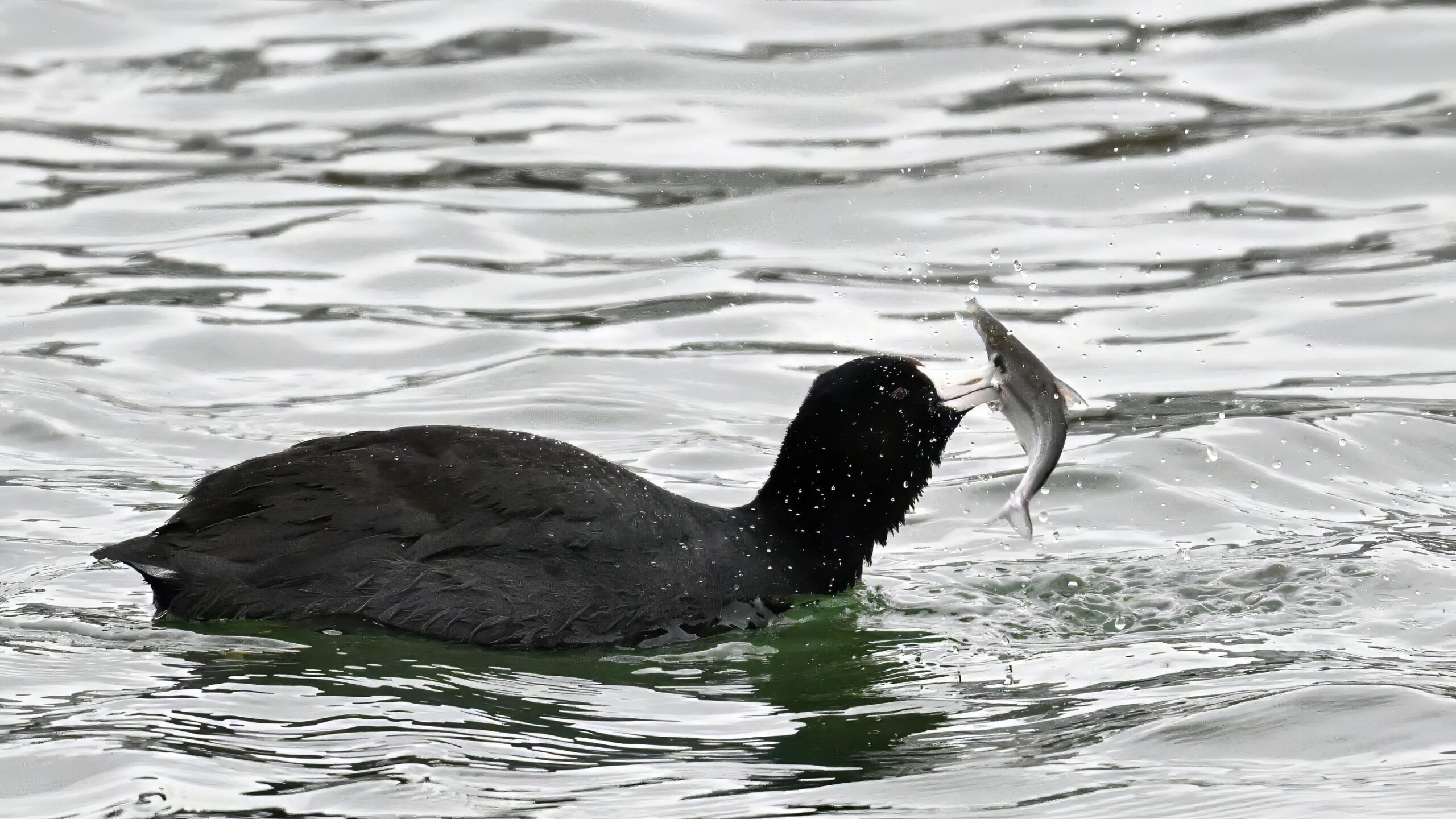 Wishing everyone on the Gregorian calendar a Happy New Year! And with last year over and done, it’s time to release the results of the 2025 BirdingPI.com Readers’ Survey, starting with question 1: “What would you like to see more of?” Near consensus answer @ 87% of respondents: “More pictures of birds eating fish.” Well, happy to oblige with a giant post of poorly lit digital photographs of American Coot at the marina at Erie downtown bayfront on 26 December: