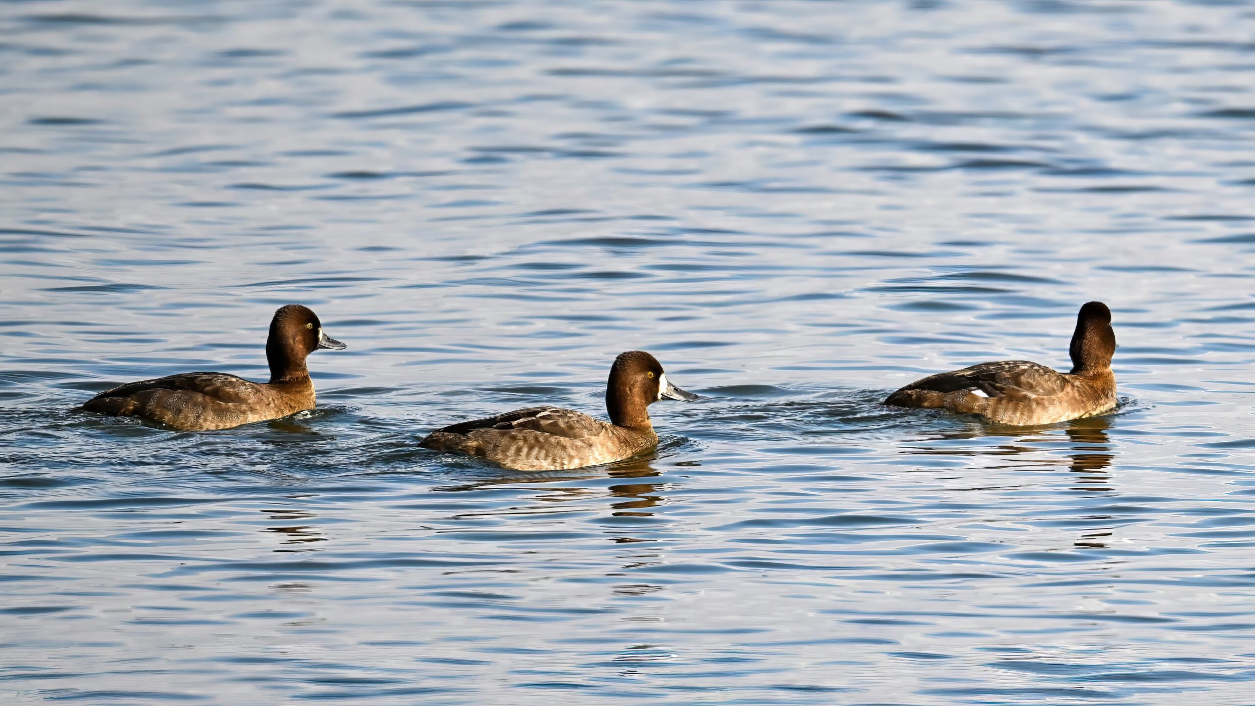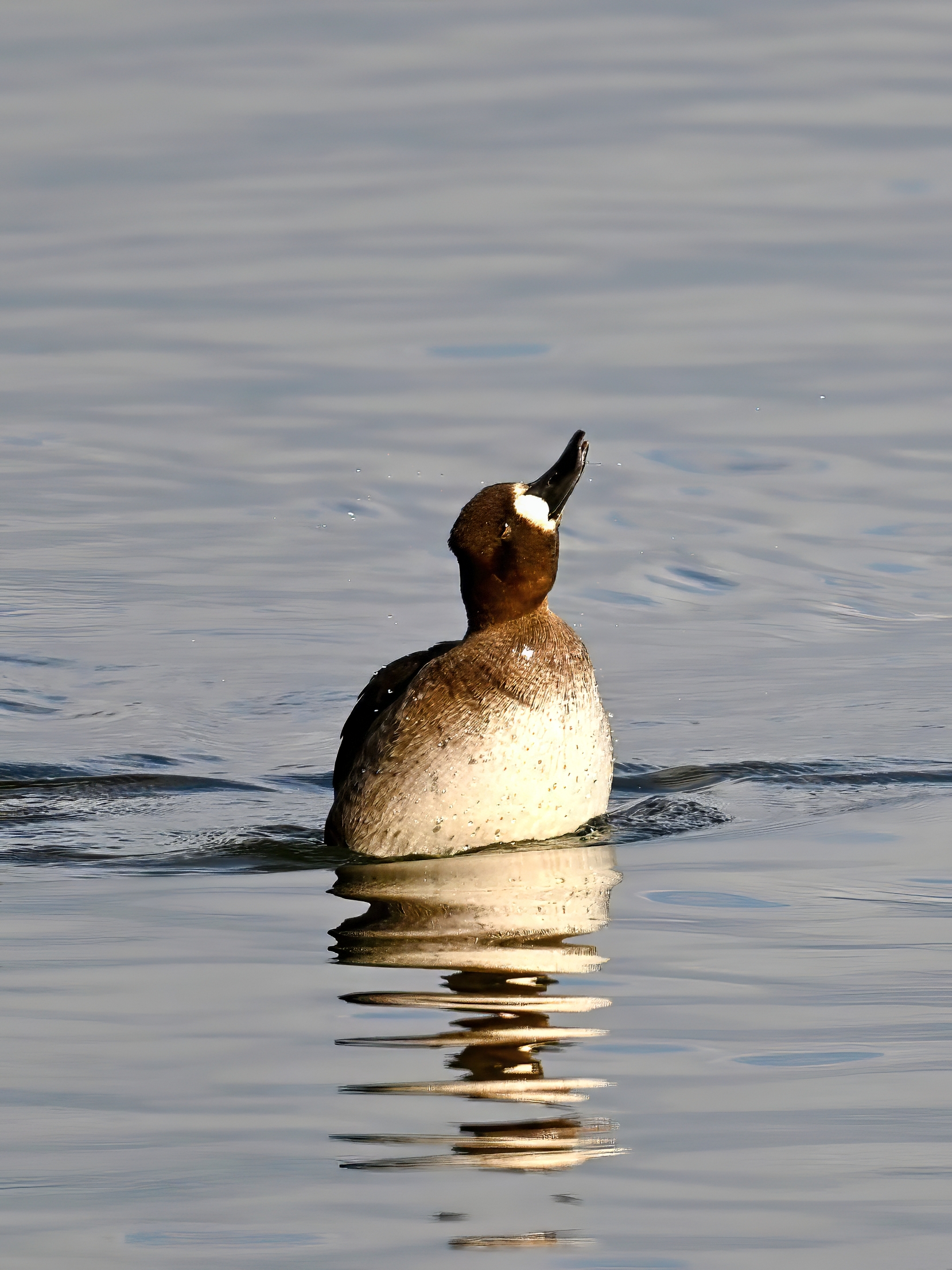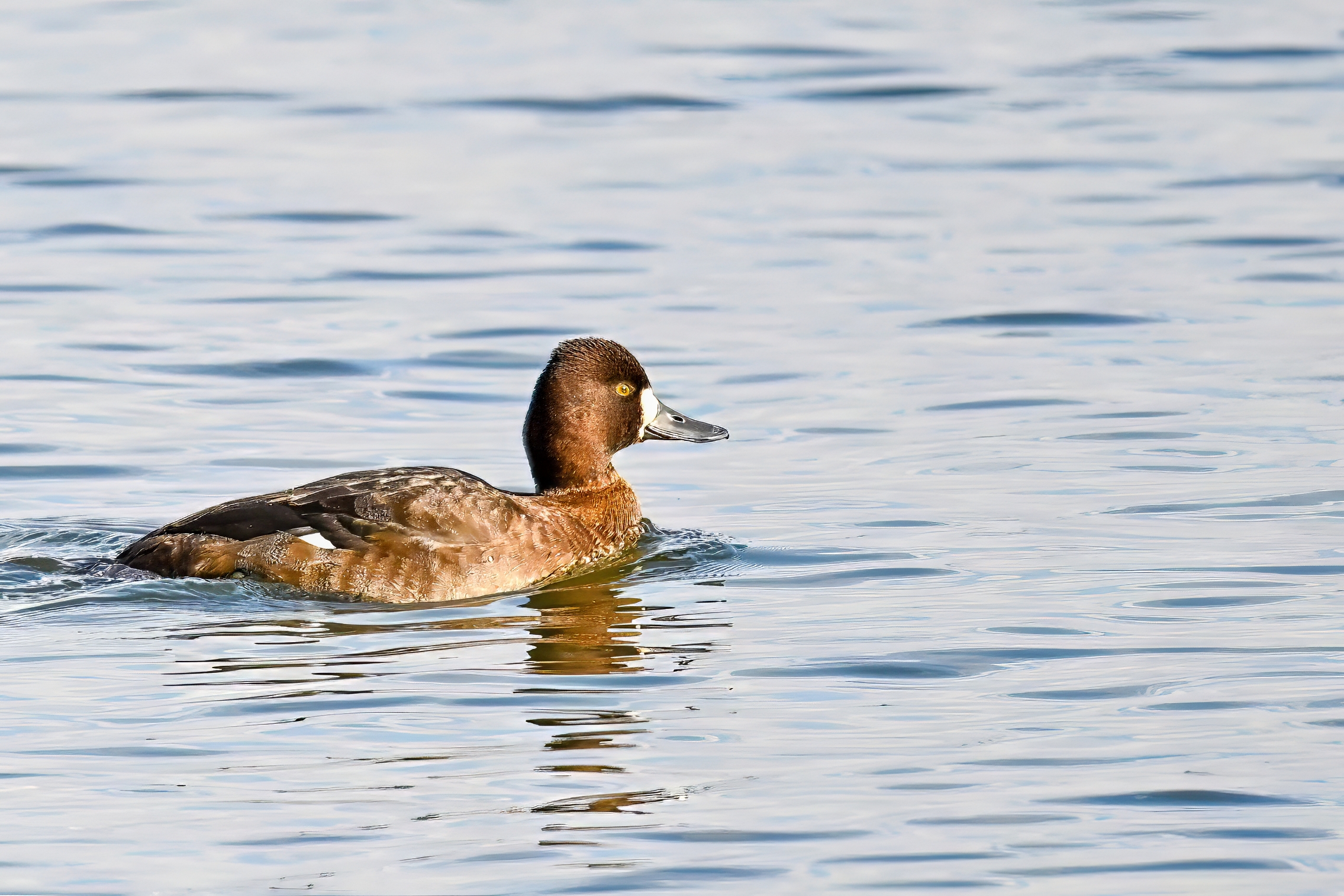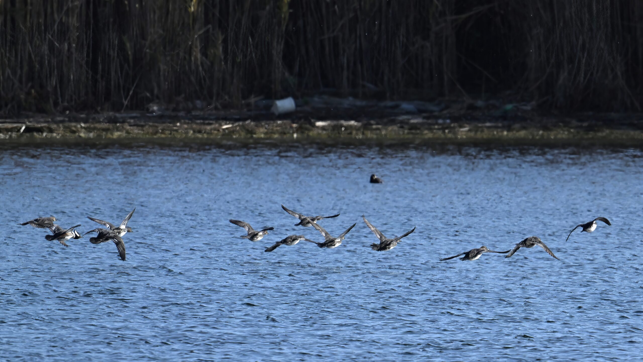 Seems like usually ducks break in the wrong direction and/or against the light. (“Break” = startle and take flight.) Here, lucky that neither was the case, with a rather beautiful shot of Lesser Scaup: