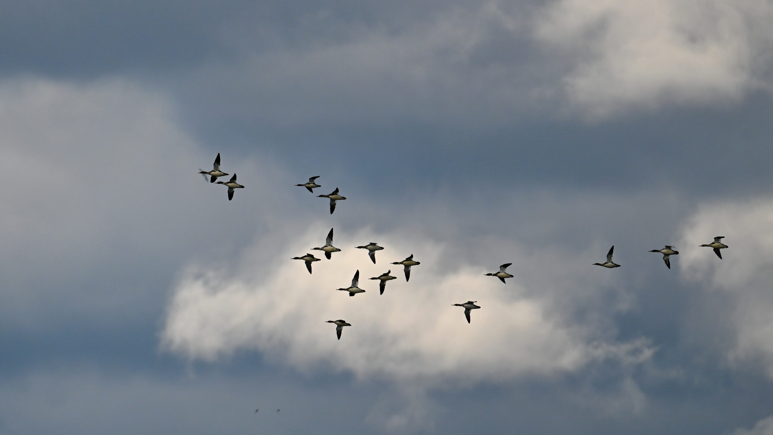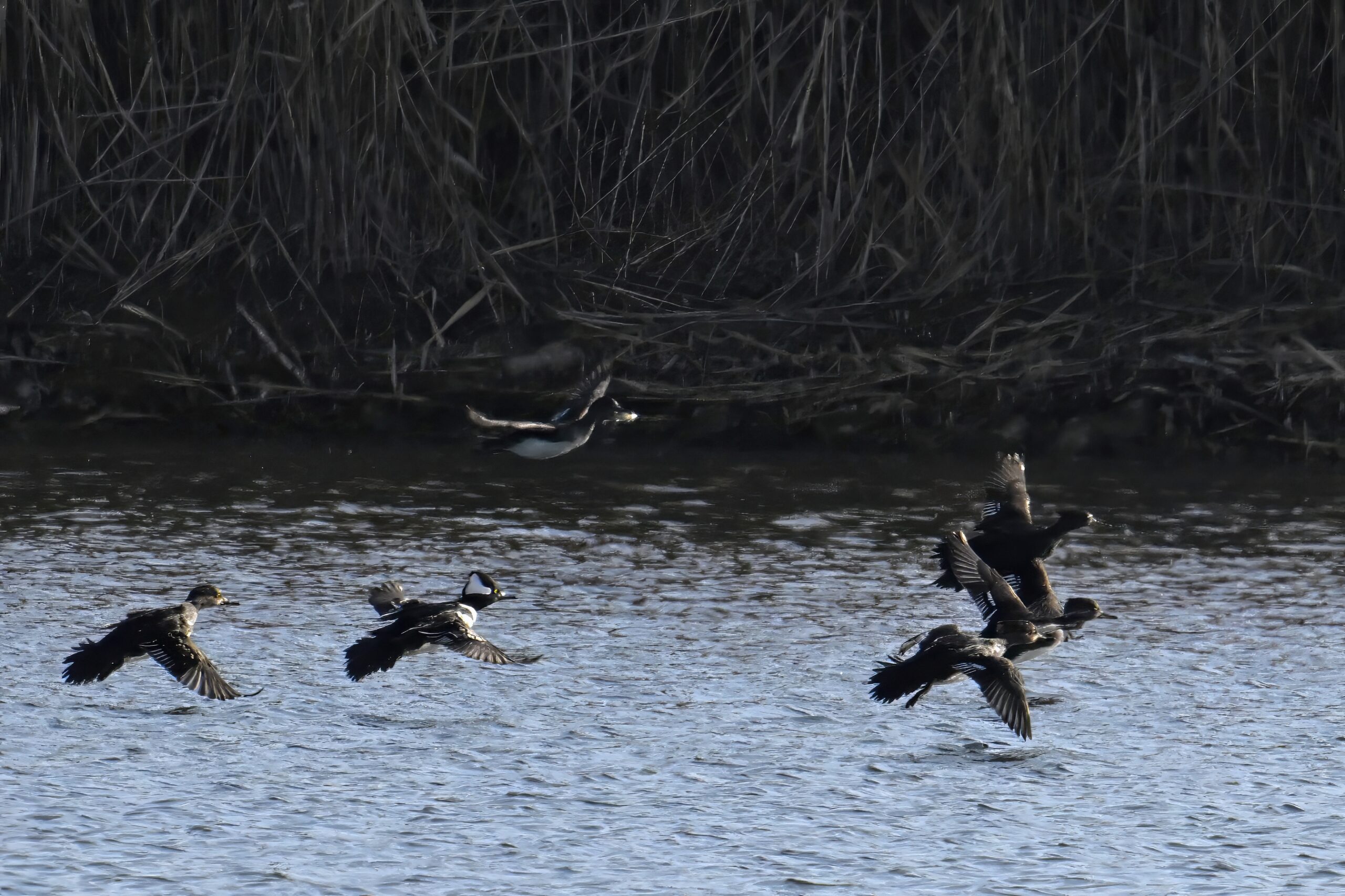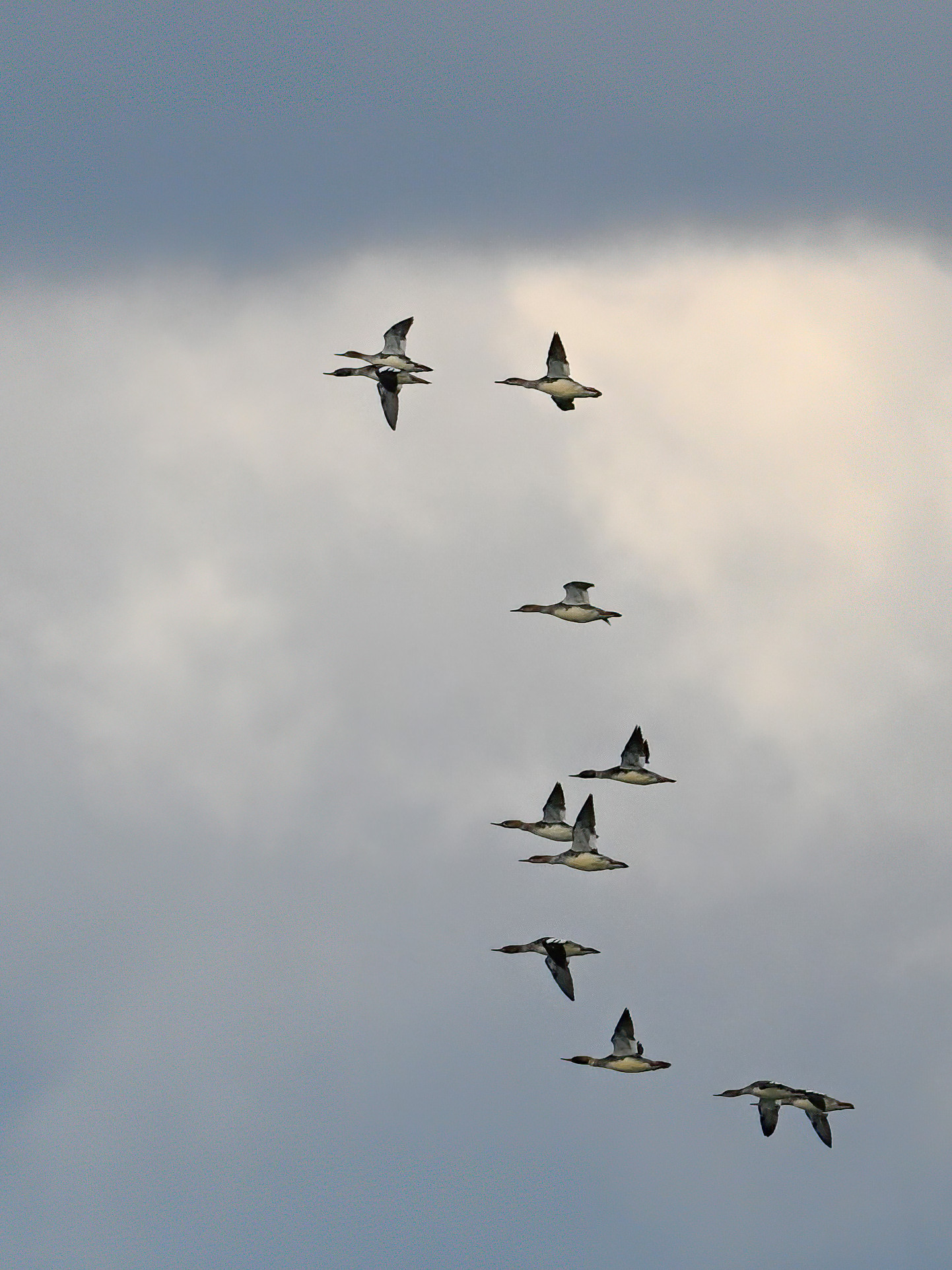 Long-tailed Duck (immature)Chase IIIOther ducks startlingChase VMergansers in flightMergansers in flight, 1 w/ fish (upper middle)Chase XIIIChase IX