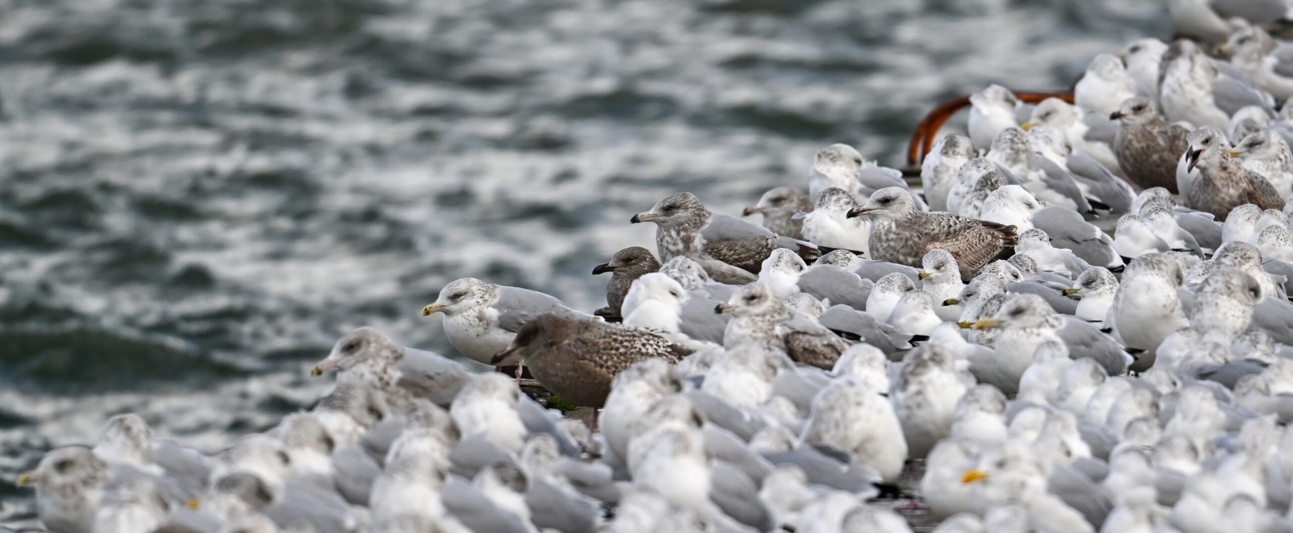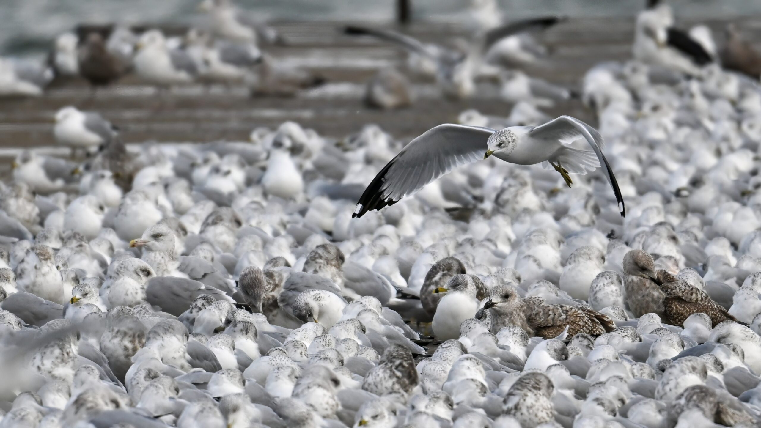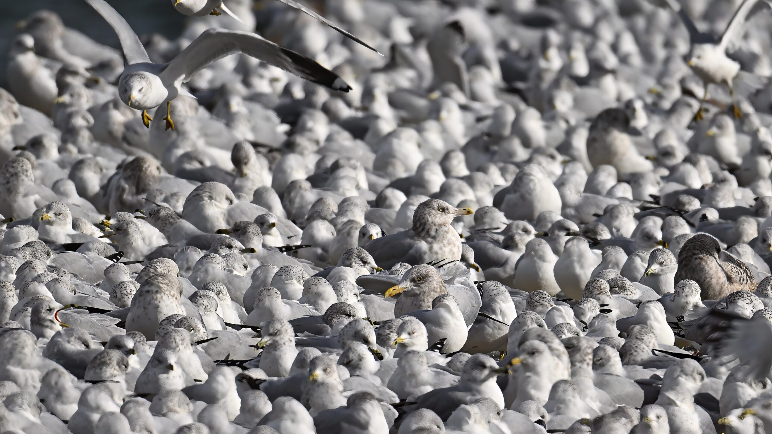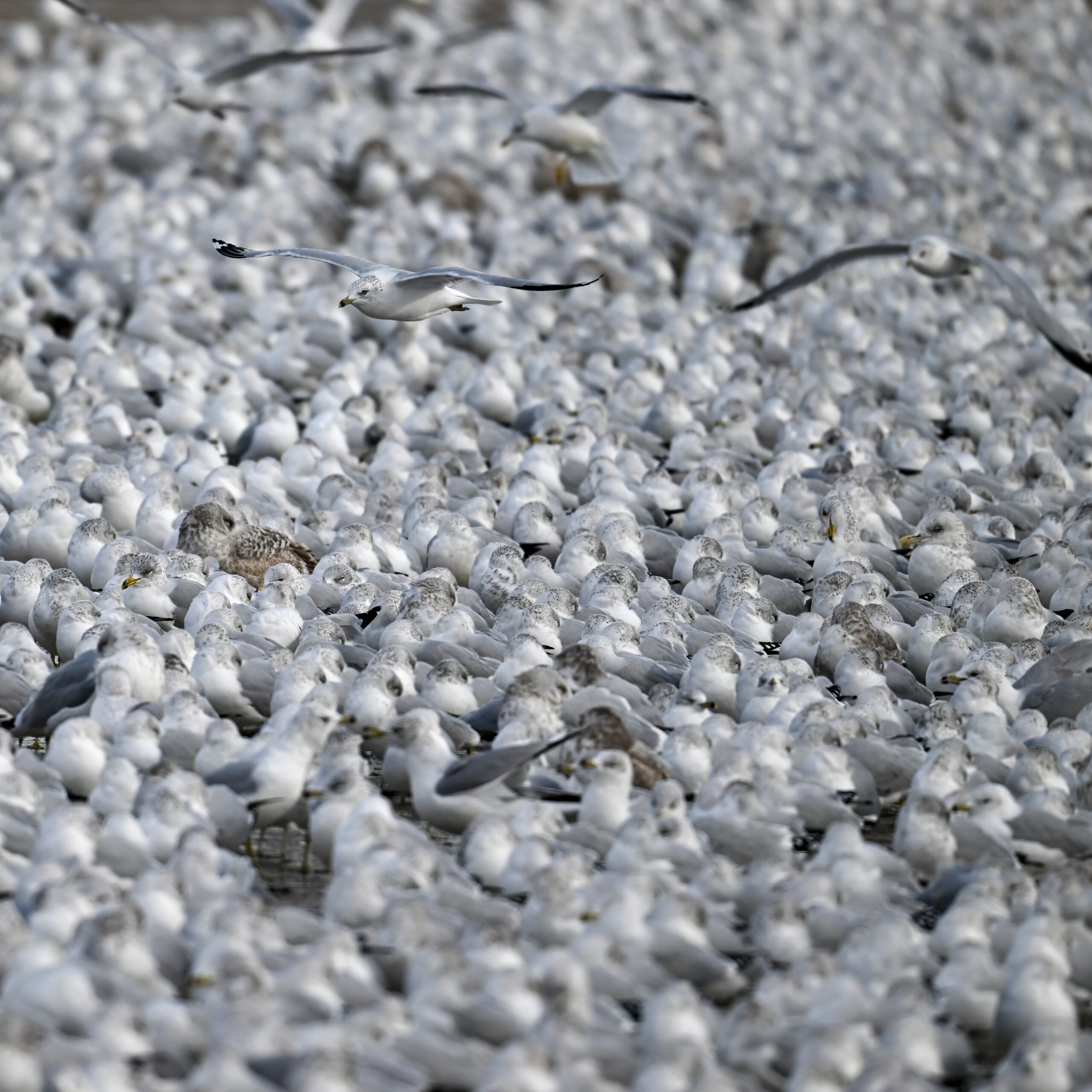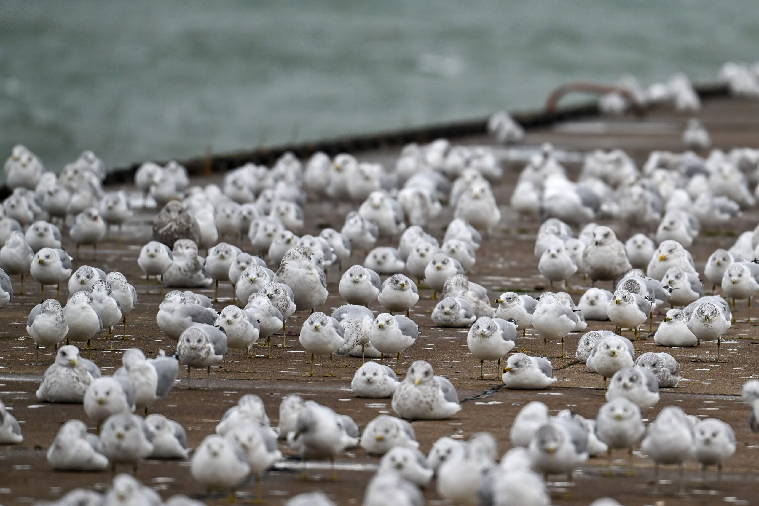 East end of South Pier w/ lots and lots of gullsLooking for a pelican in a sea of gullsLots of gullsGulls on North Pier @ North Pier LightSo many gullsMostly Ring-billed GullsMallard and Long-tailed Ducks off end of South PierHerring Gull left of centerGulls in flightWhat’s that brown spot?Adult and immature Long-tailed Ducks (on right)At least a few Herring GullsGulls in flight over mixed gullsHas anyone seen a pelican?Gull textureMore gulls in flightHmmm, more brown birdsAnother brown bird, not a pelicanImmature Long-tailed DuckMore gull texture ITexture IIMore gull texture III