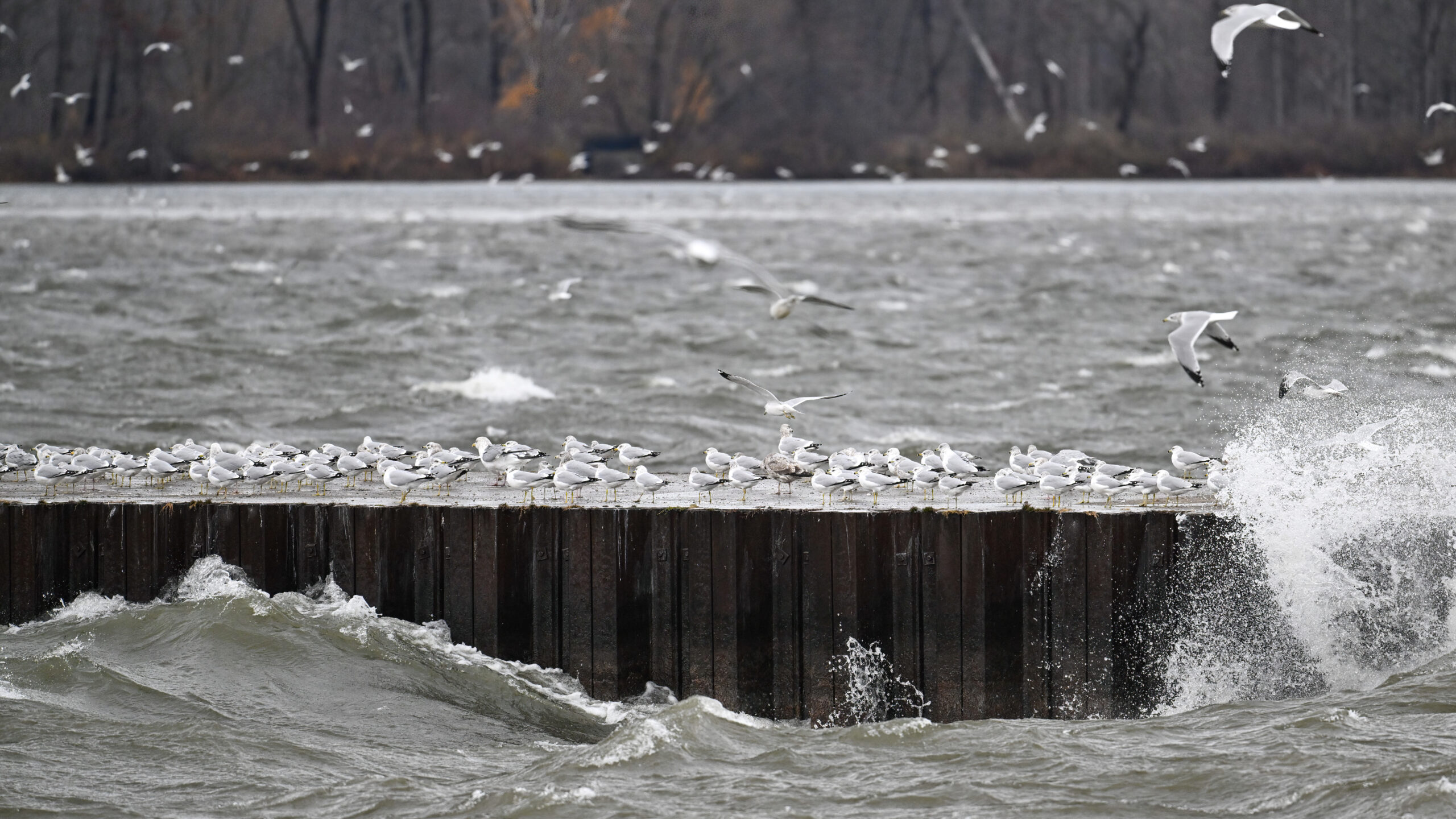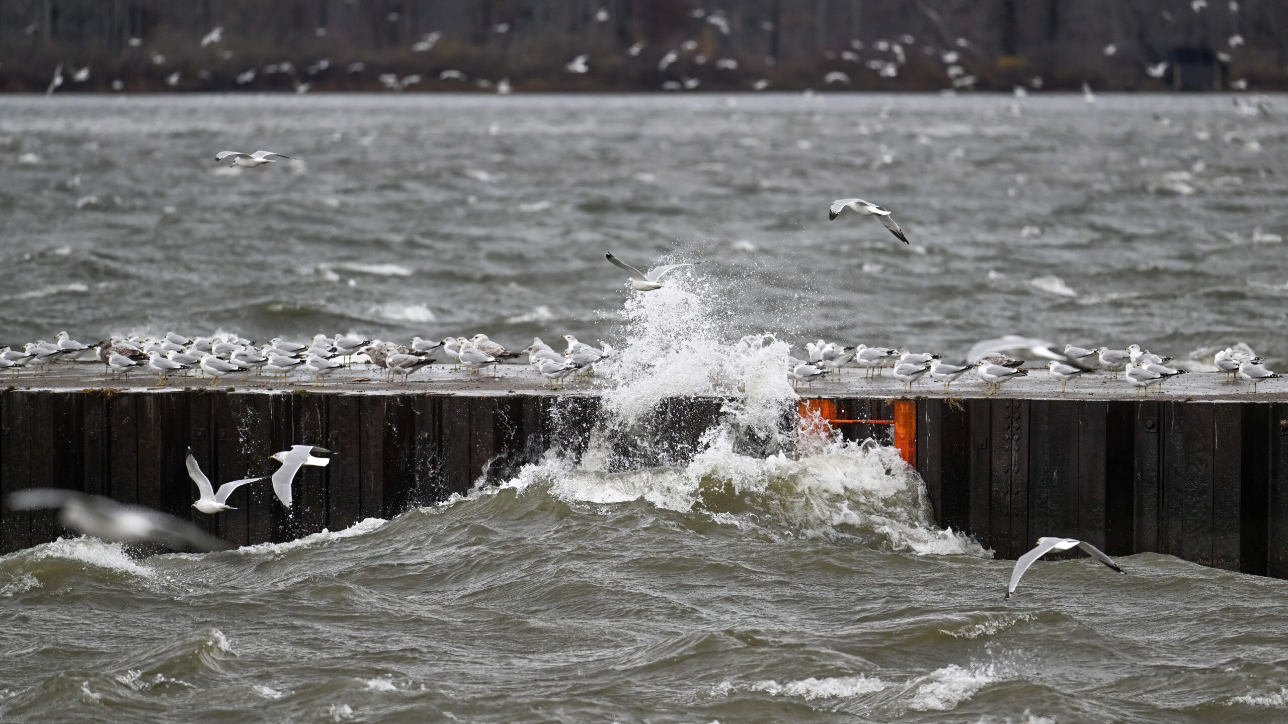 Crashing surf @ east Erie bluffsEvidence of wind: flags at Coast Guard stationGIF off South PierWaves w/ gulls at North PierWaves w/ gulls at South PierYou know it’s windy when the surf is over the pierGulls at South PierMore crashing waves w/ gulls at North PierRed-breasted Mergansers in flight @ outer Lake ErieThat’s a large Herring Gull!Red-breasted Mergansers in flight with outer Gull Point in backgroundGulls on South PierRed-breasted Mergansers in flight @ outer Thompson BayEast Erie bluffs w/ crashing surf IIRed-breasted Mergansers in flight over Gull PointGulls on South Pier IIRed-breasted Mergansers in flight w/ outer Gull Point tree lineRing-billed Gull on South PierMergansers in flight VIGulls on South Pier IIIMergansers in flight VIIGulls on South Pier IVMergansers in flight VIII“Cormorant Island” in sunlightMergansers in flight IXSurf line @ outer Lake ErieMergansers in flight XEast Erie bluffs w/ surf + brief break in the clouds