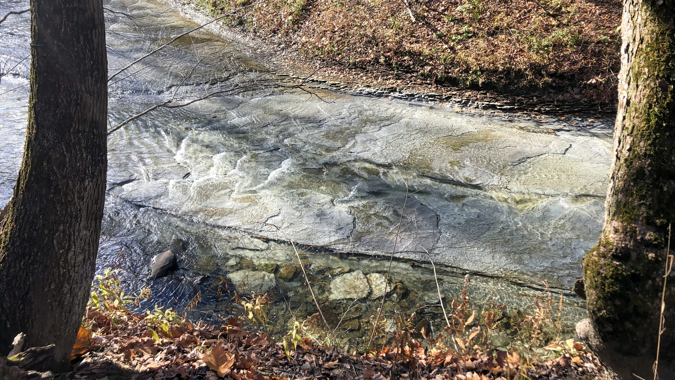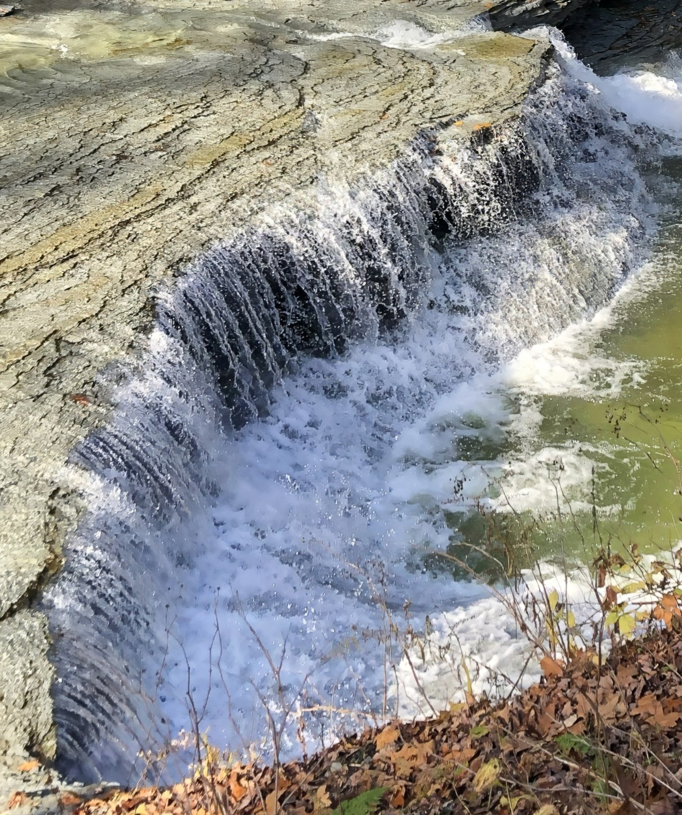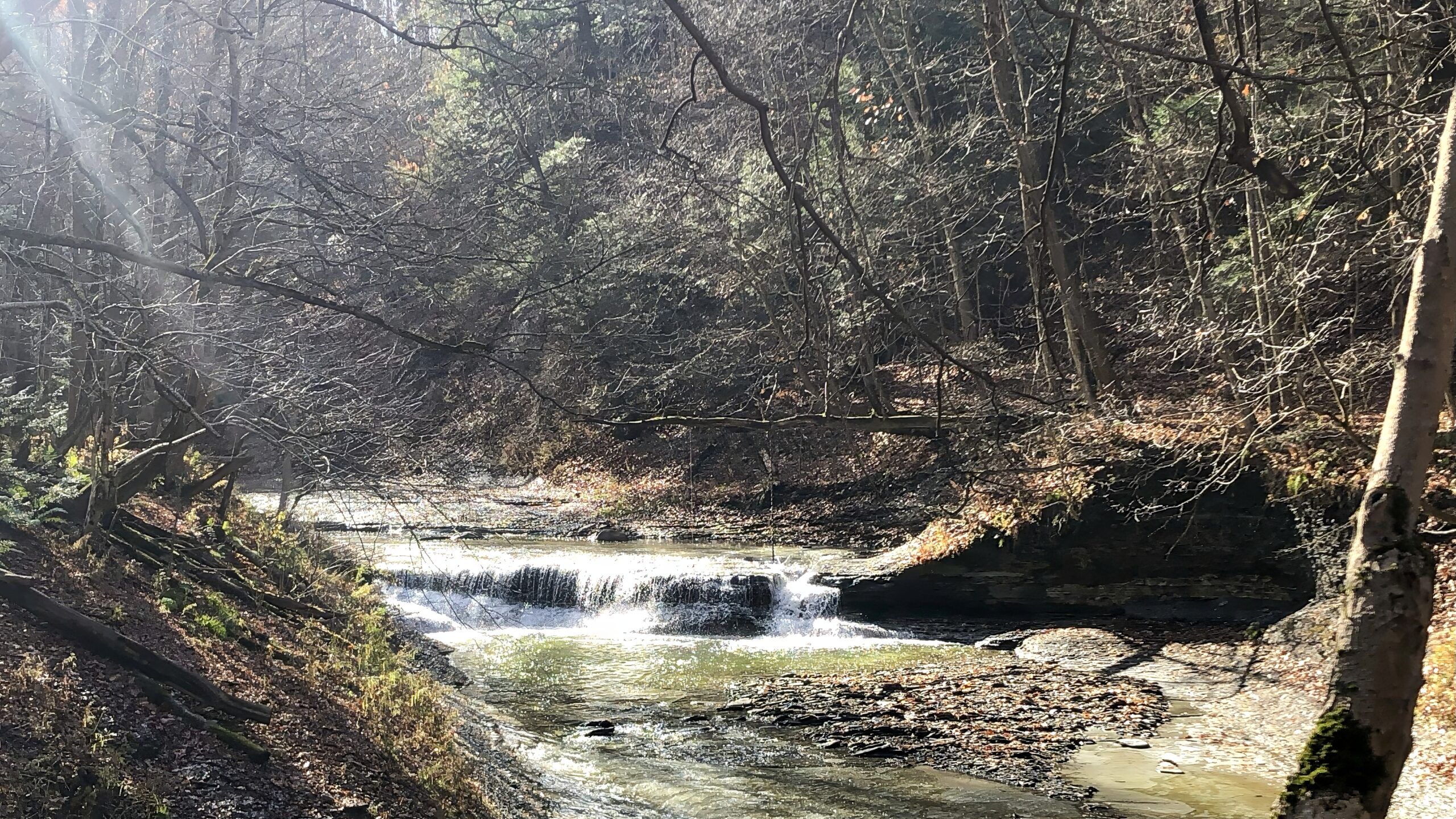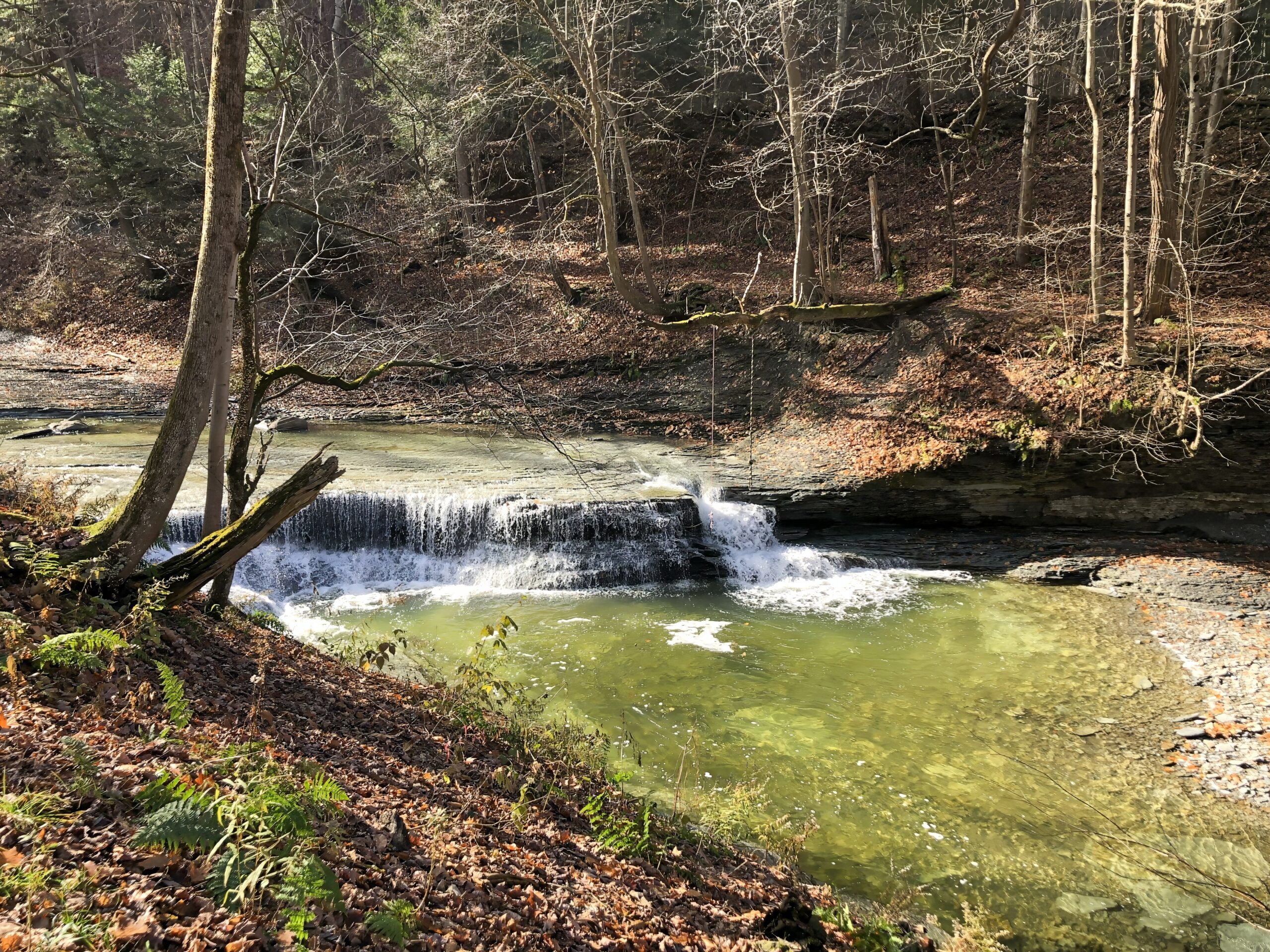 More juvenile Fox SquirrelUpstream view of gorge from main trailAdult Fox Squirrel gathering leaves for nestLate season fall colourClear stream water over bed of sedimentary rockUpstream waterfall off main trailLooking downstream, near waterfallWaterfall in afternoon sunshineWaterfall detailWaterfall IV