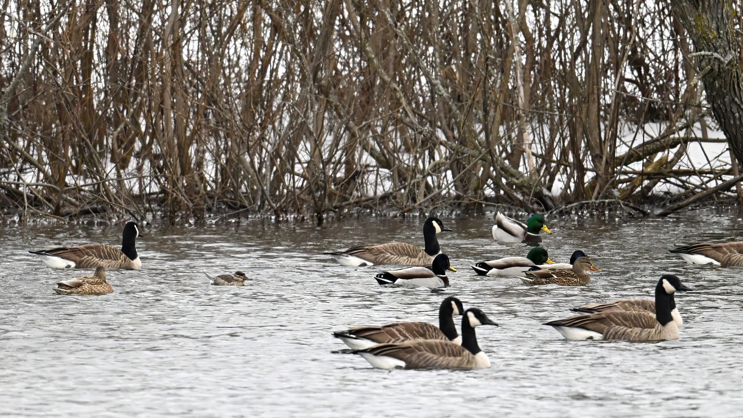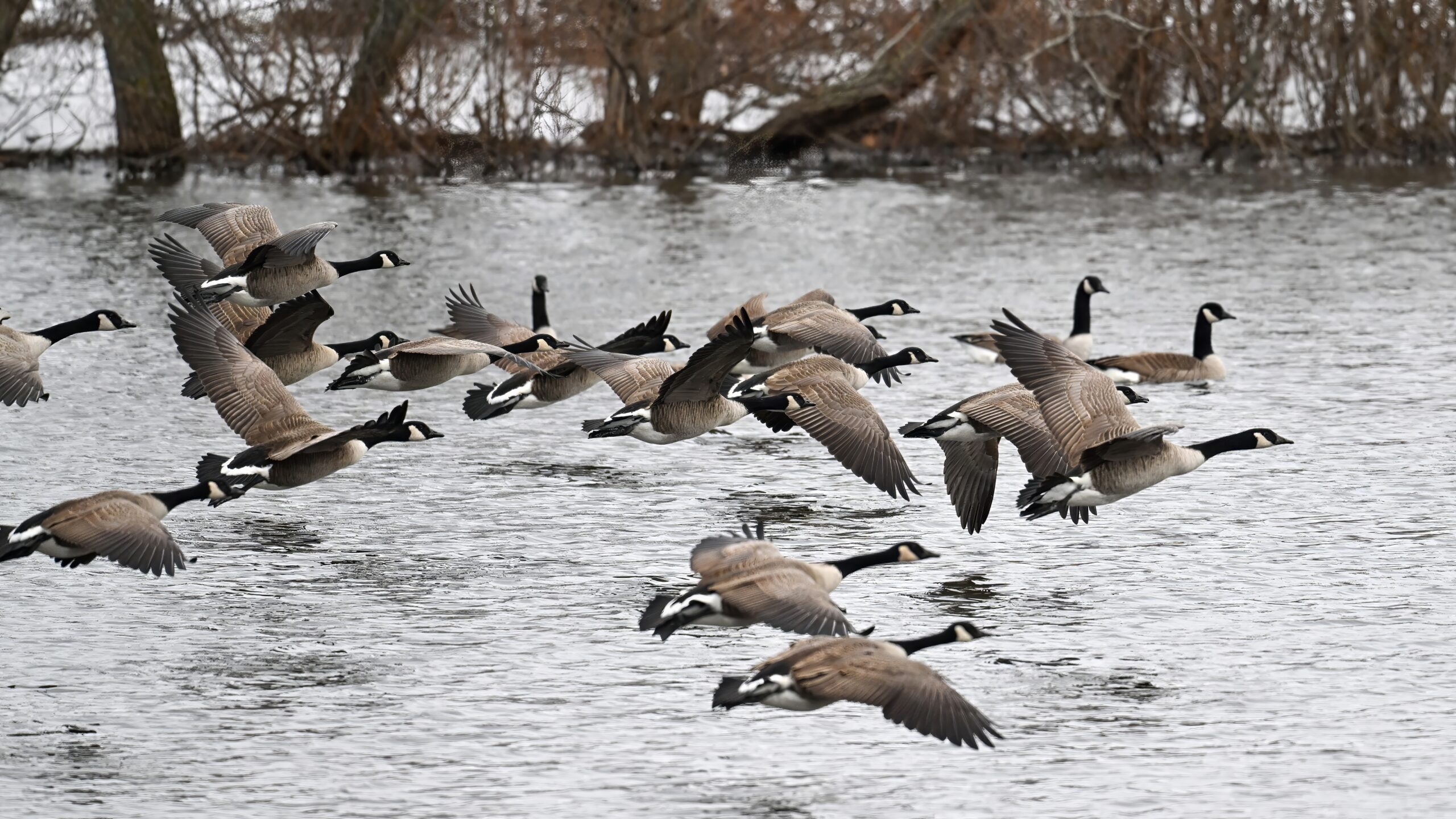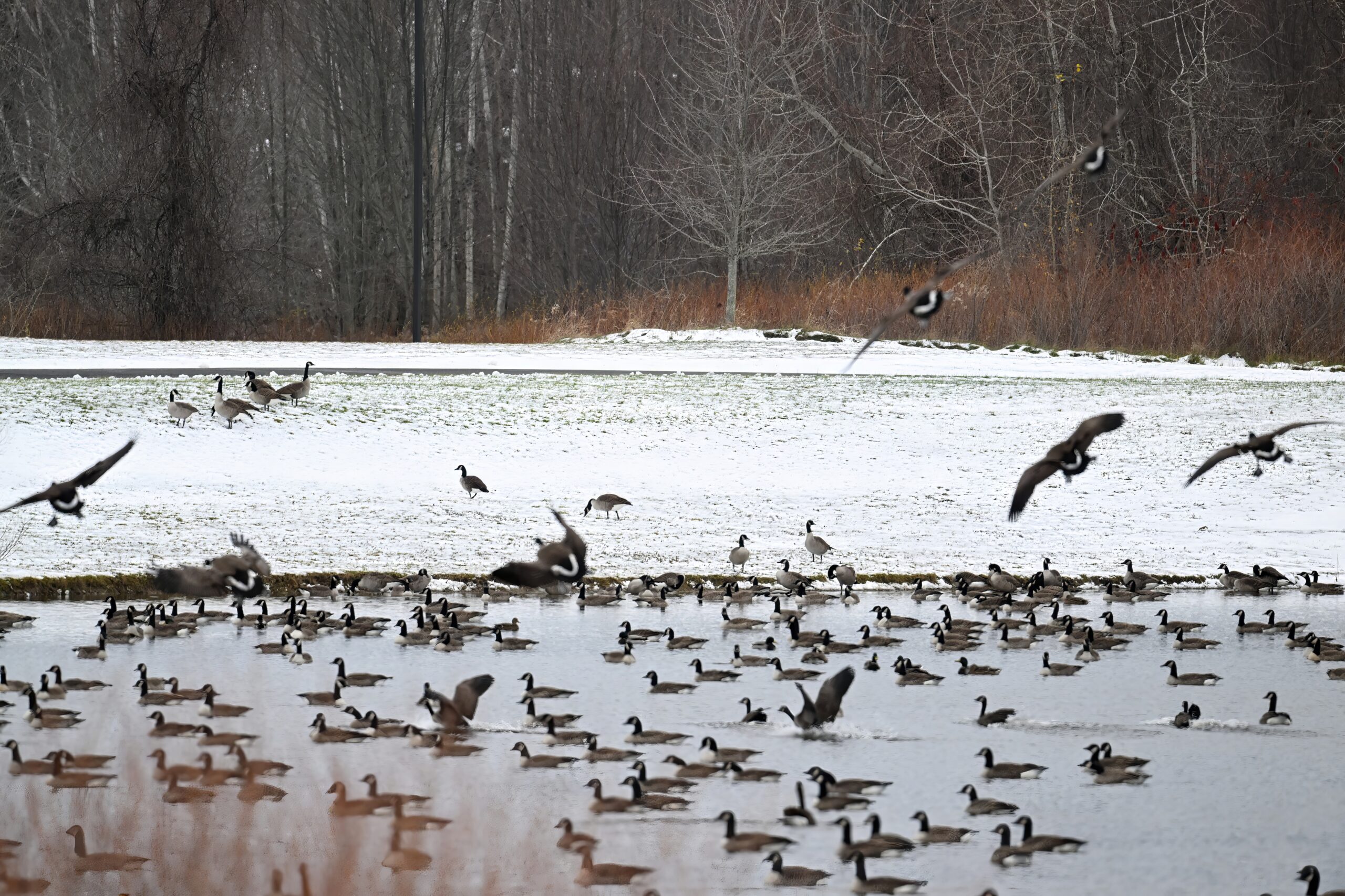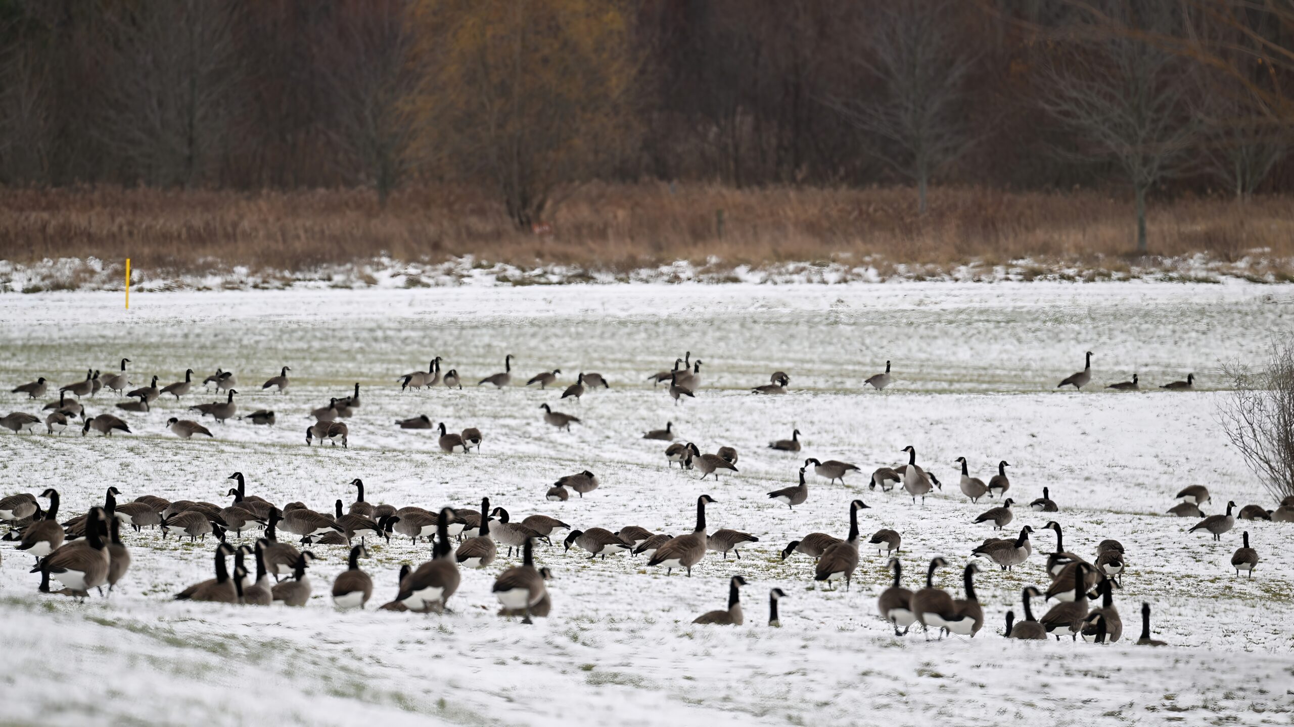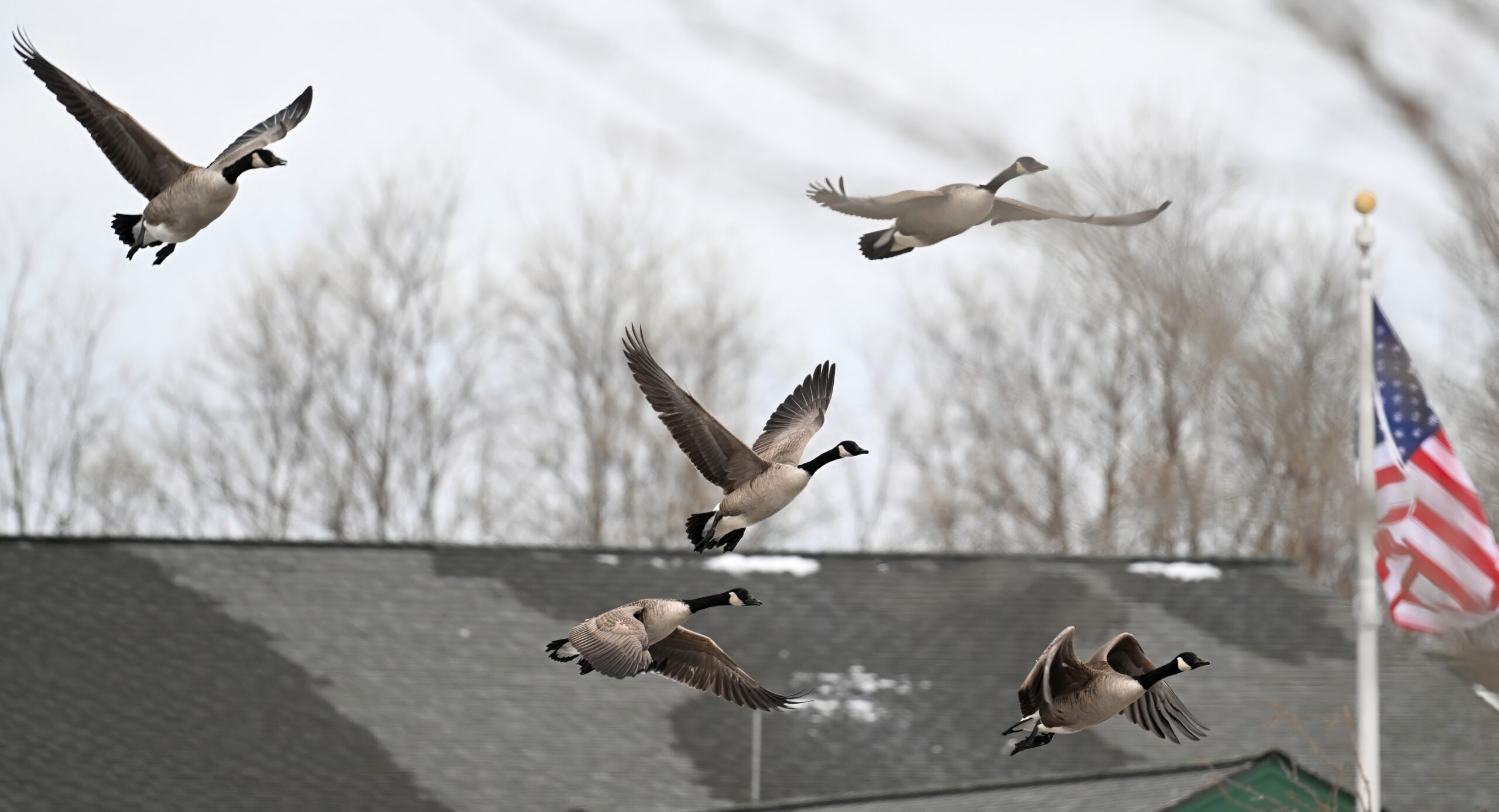 A five-goose aerial salute to the Stars and Stripes!“The pelican was there somewhere, we were sure of it”Still not convinced this isn’t a miniature pelicanSnow/geese