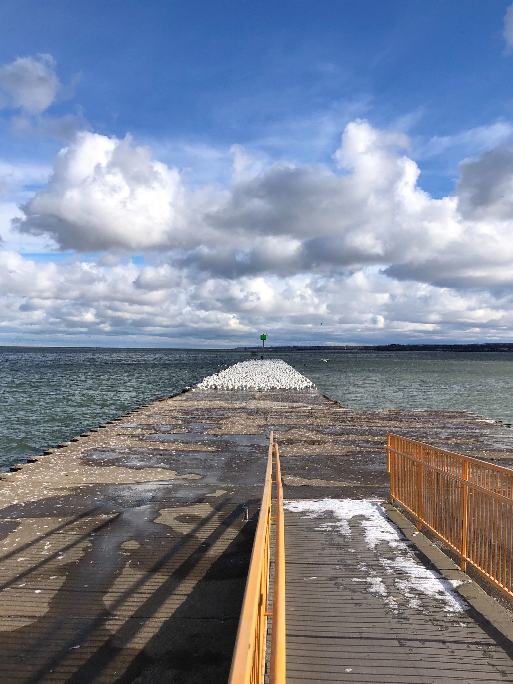Starting with, East Ave Boat Launch under cold and extremely (!) windy conditions. Different views towards South Pier and Presque Isle State Park and North Pier: