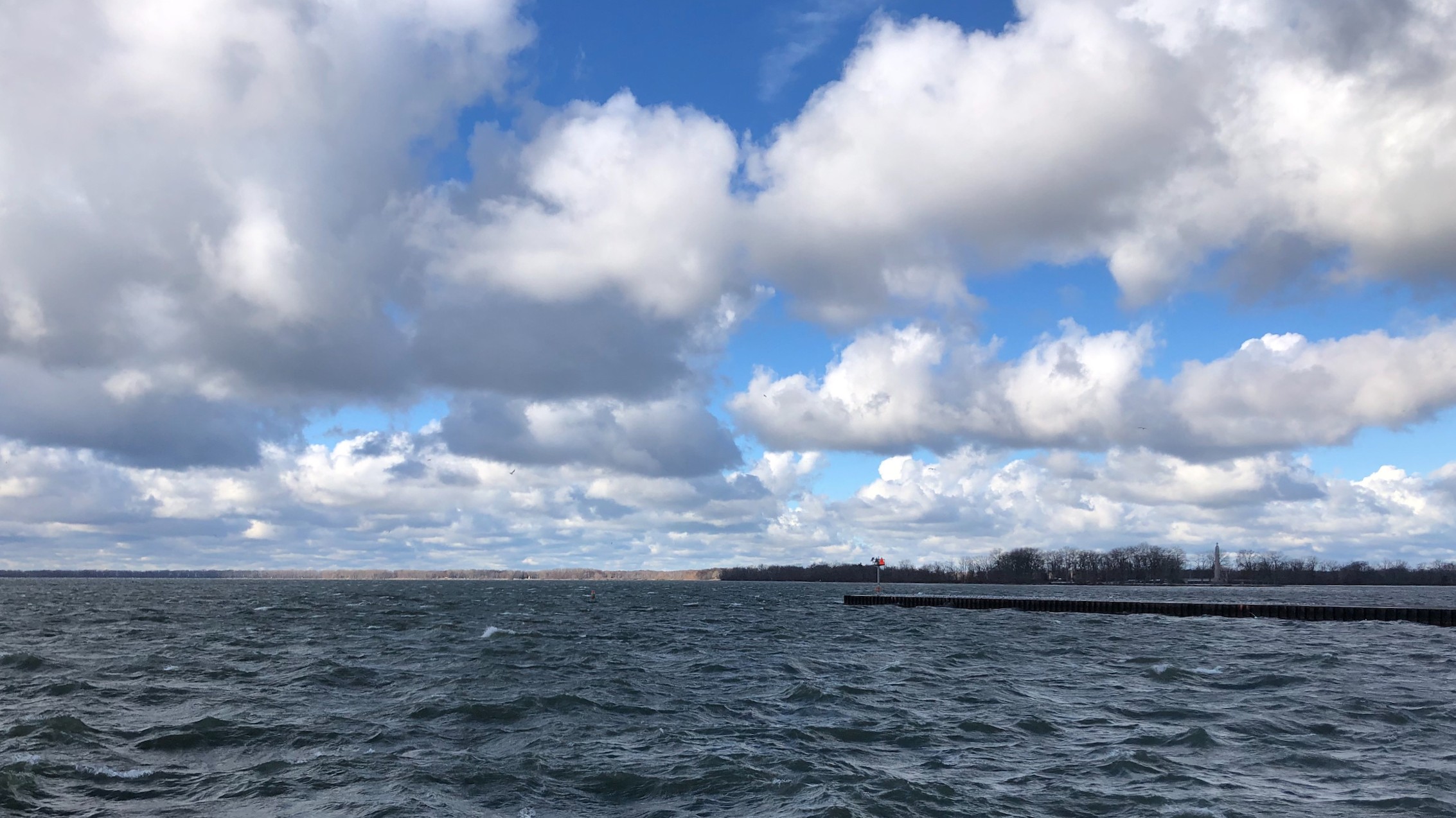Outer Lake Erie w/ east Erie bluffs, heavy wind/surf