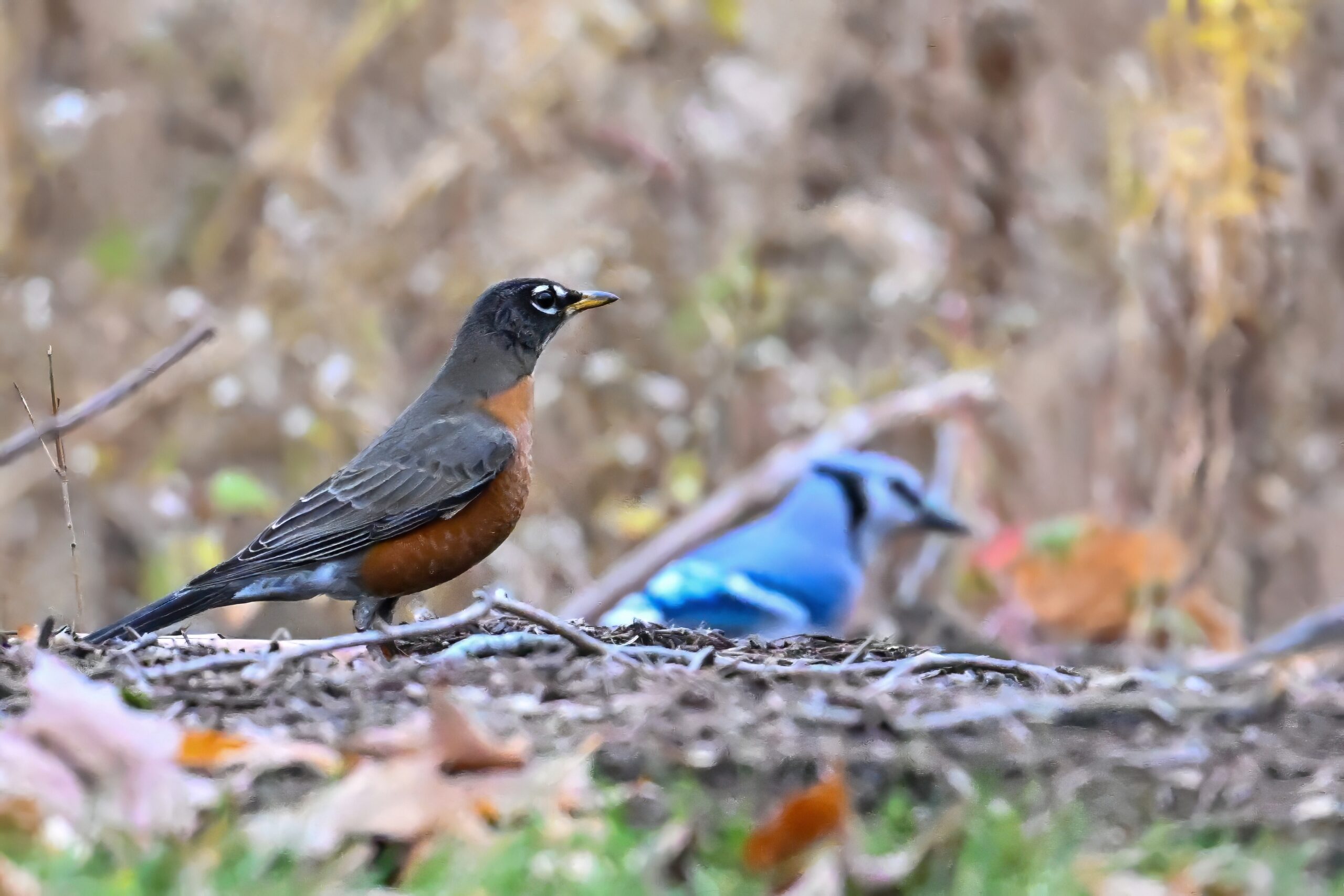 More common fall birds this week in Millcreek Twp, Pennsylvania (“Since 1800”), featuring Blue Jay and American Robin. Coming up tomorrow, Presque Isle news!