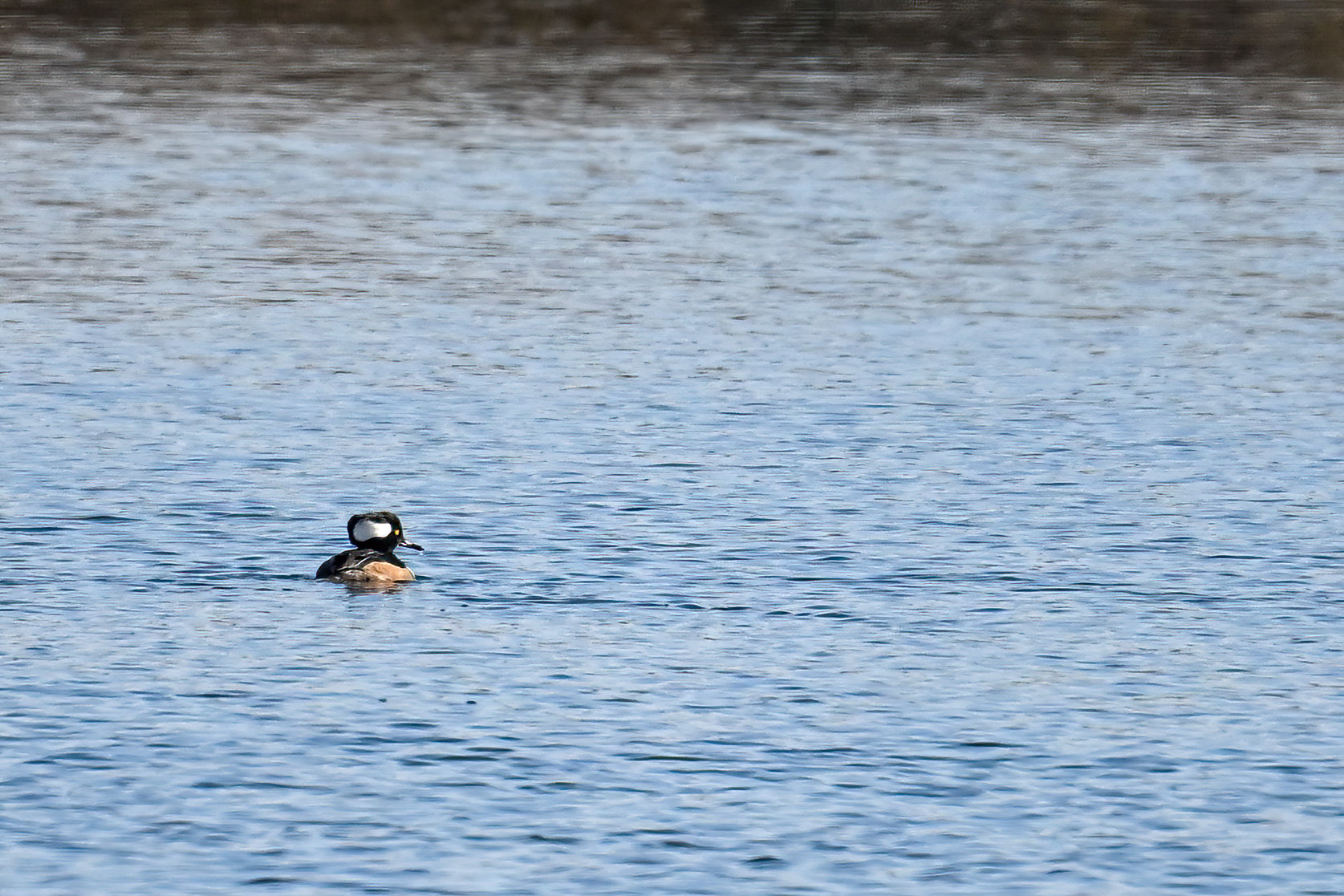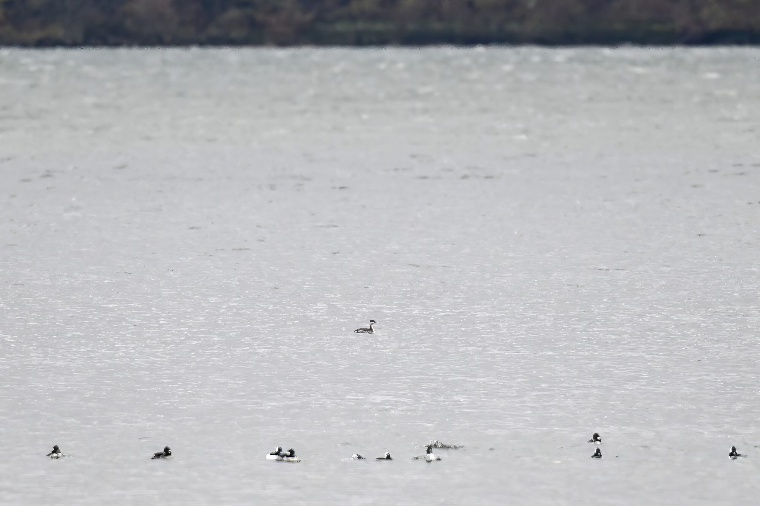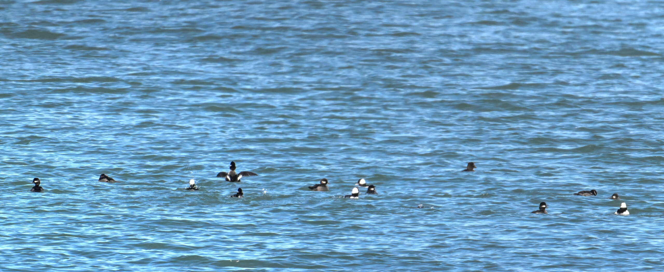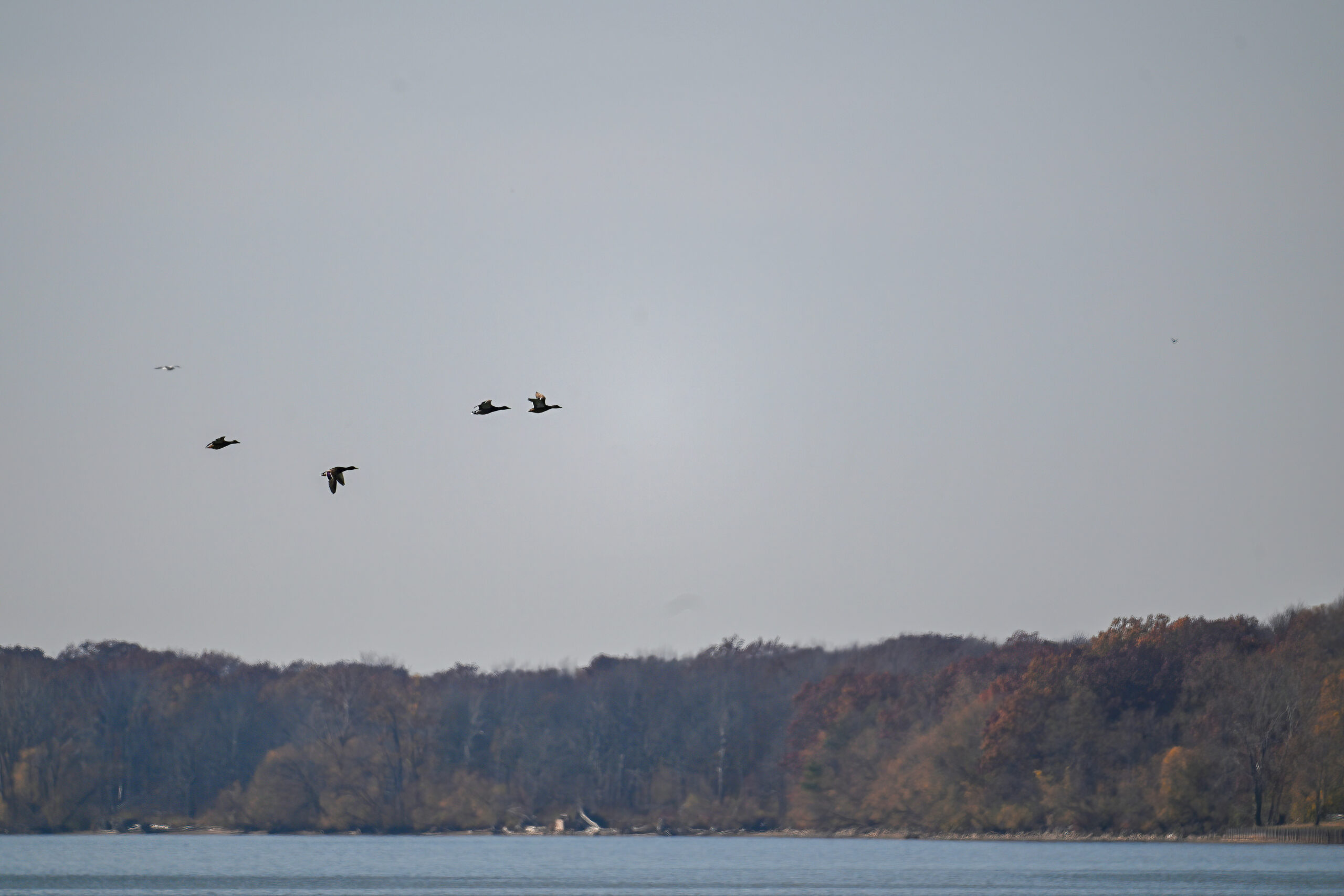 One idea for Erie County, Pennsylvania birding this time of year is peering “out to sea,” out to see Lake Erie, rather, with an eye towards passing waterfowl. Generally, this requires some sort of optics, such as a spotting scope or giant camera. Here, @ 1200mm from Chatauqua Park, on the east side of the City of Erie, generally southeast across outer Thompson Bay from Gull Point.