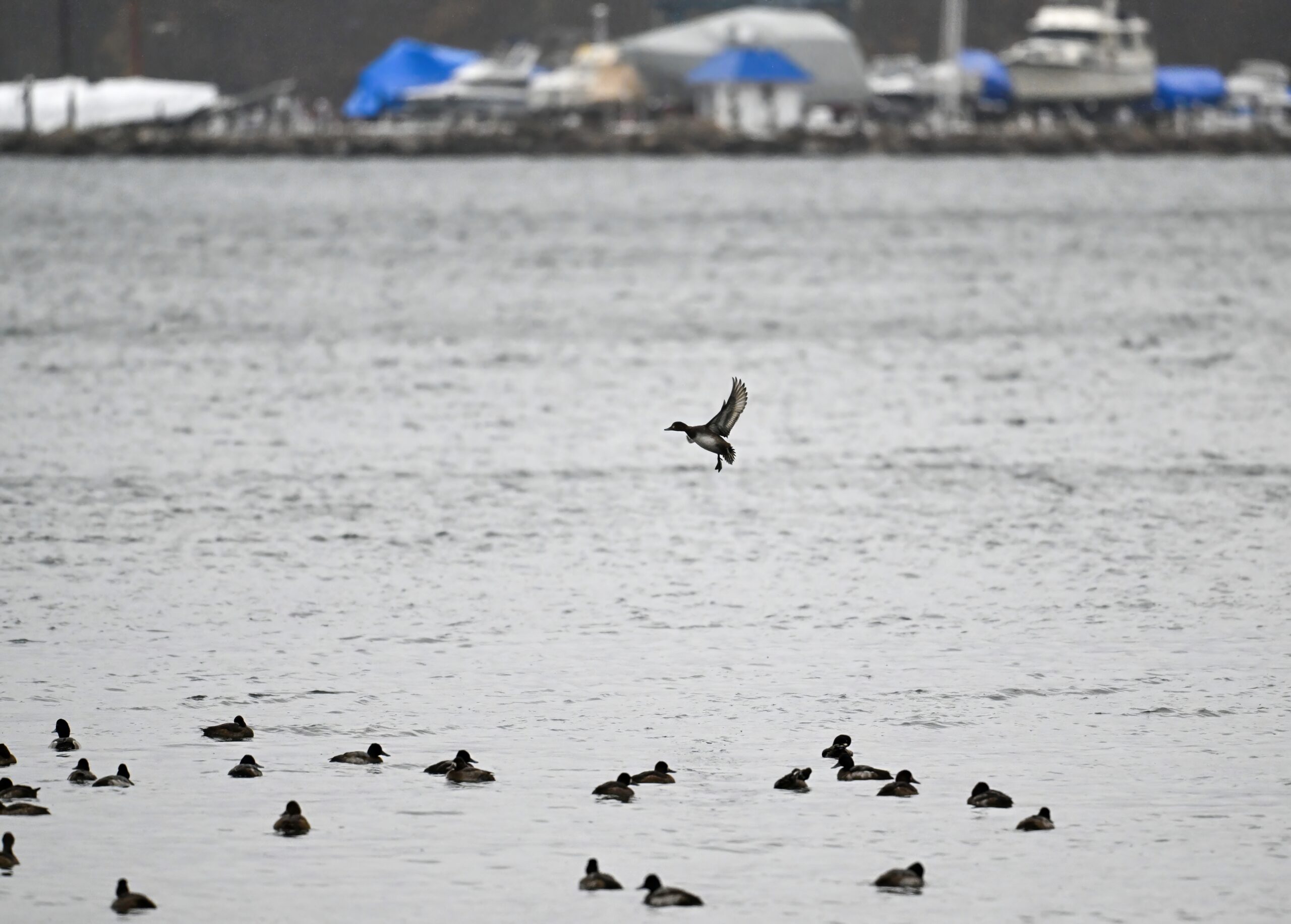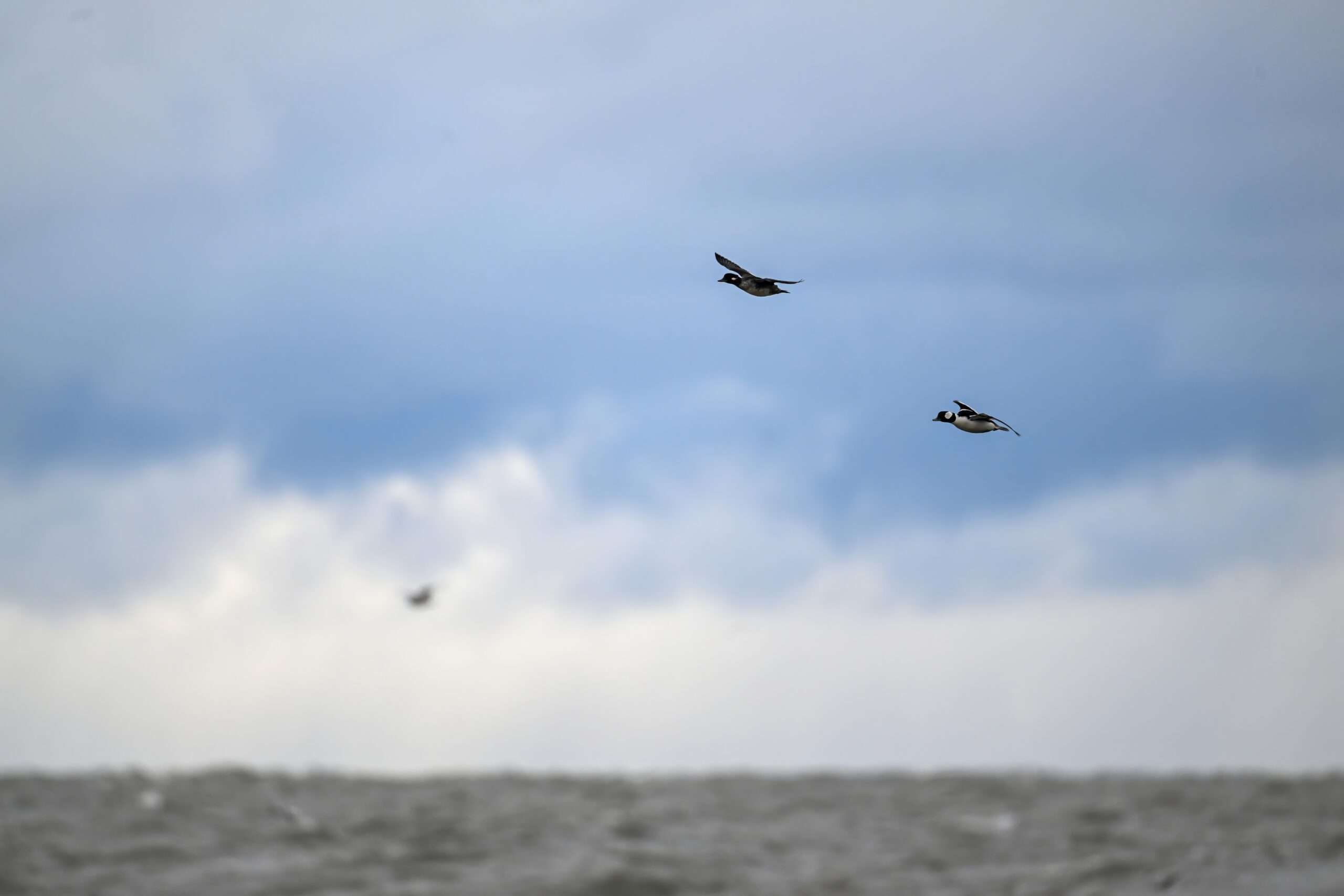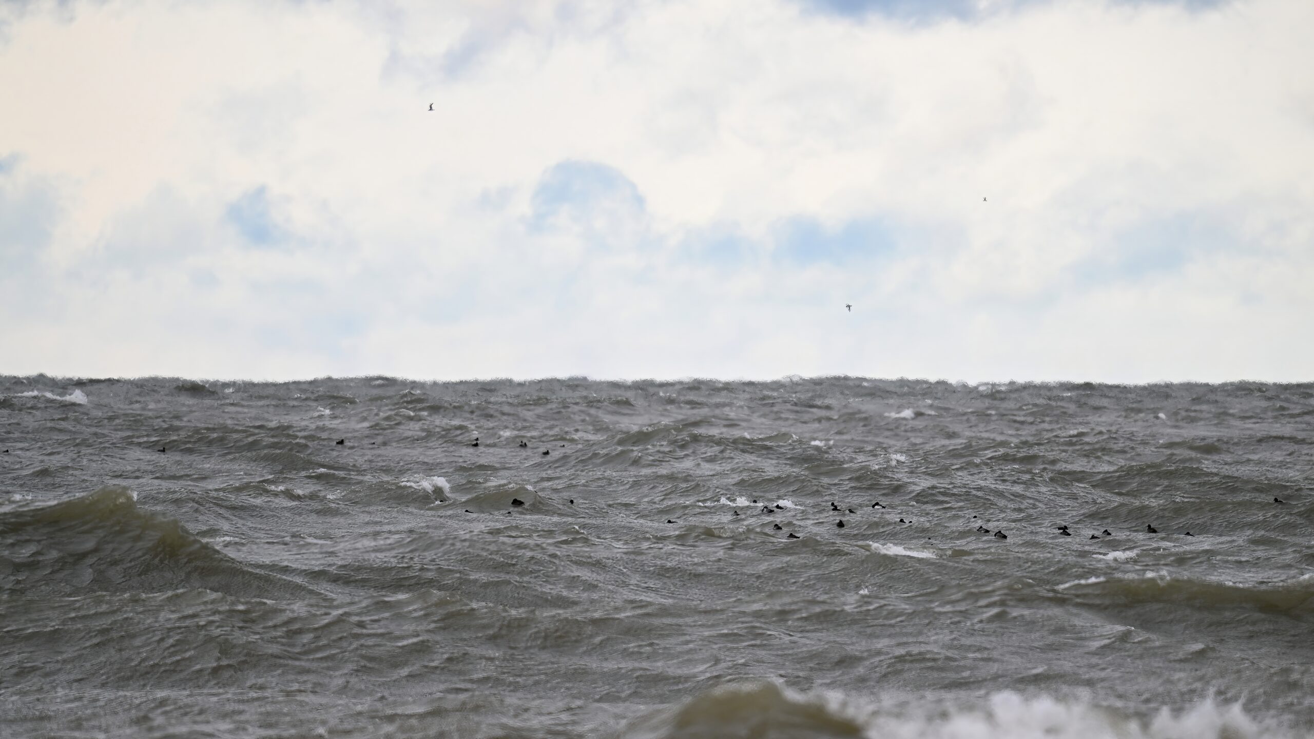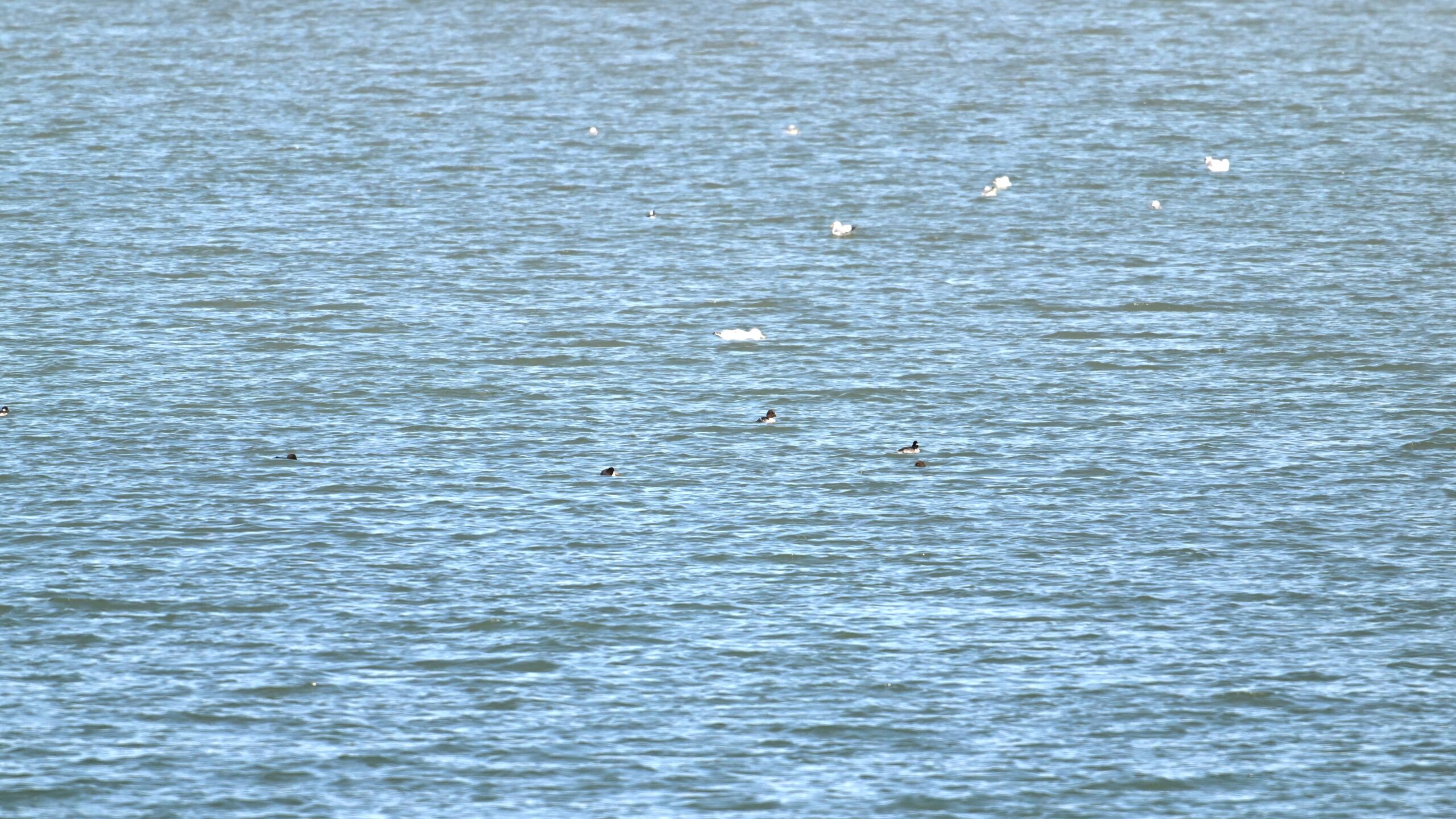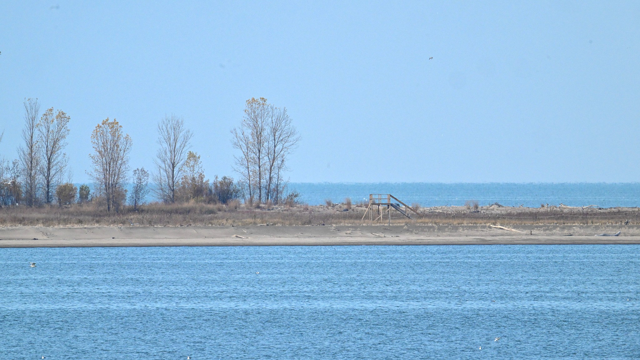 One idea for Erie County, Pennsylvania birding this time of year is peering “out to sea,” out to see Lake Erie, rather, with an eye towards passing waterfowl. Generally, this requires some sort of optics, such as a spotting scope or giant camera. Here, @ 1200mm from Chatauqua Park, on the east side of the City of Erie, generally southeast across outer Thompson Bay from Gull Point.