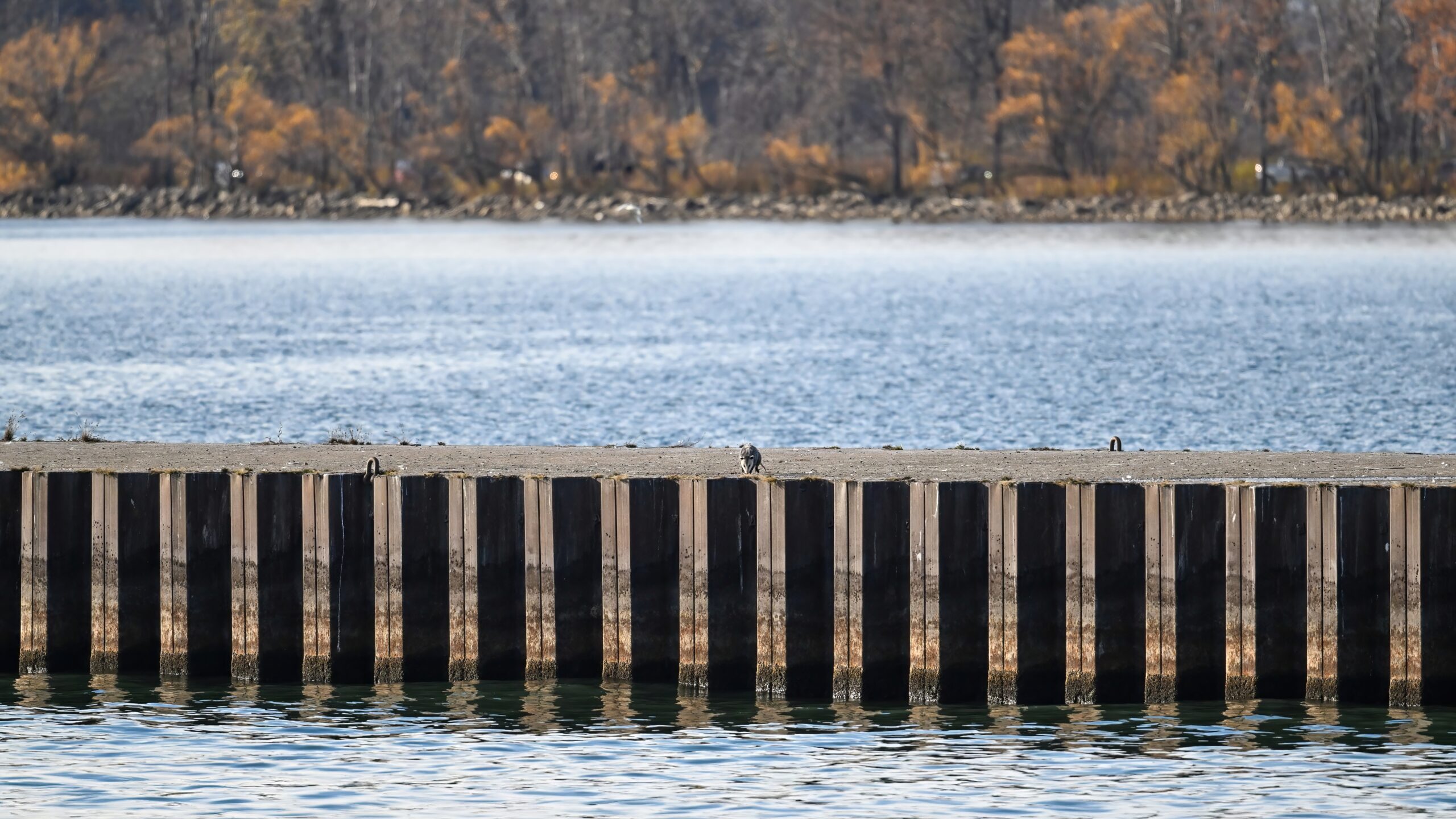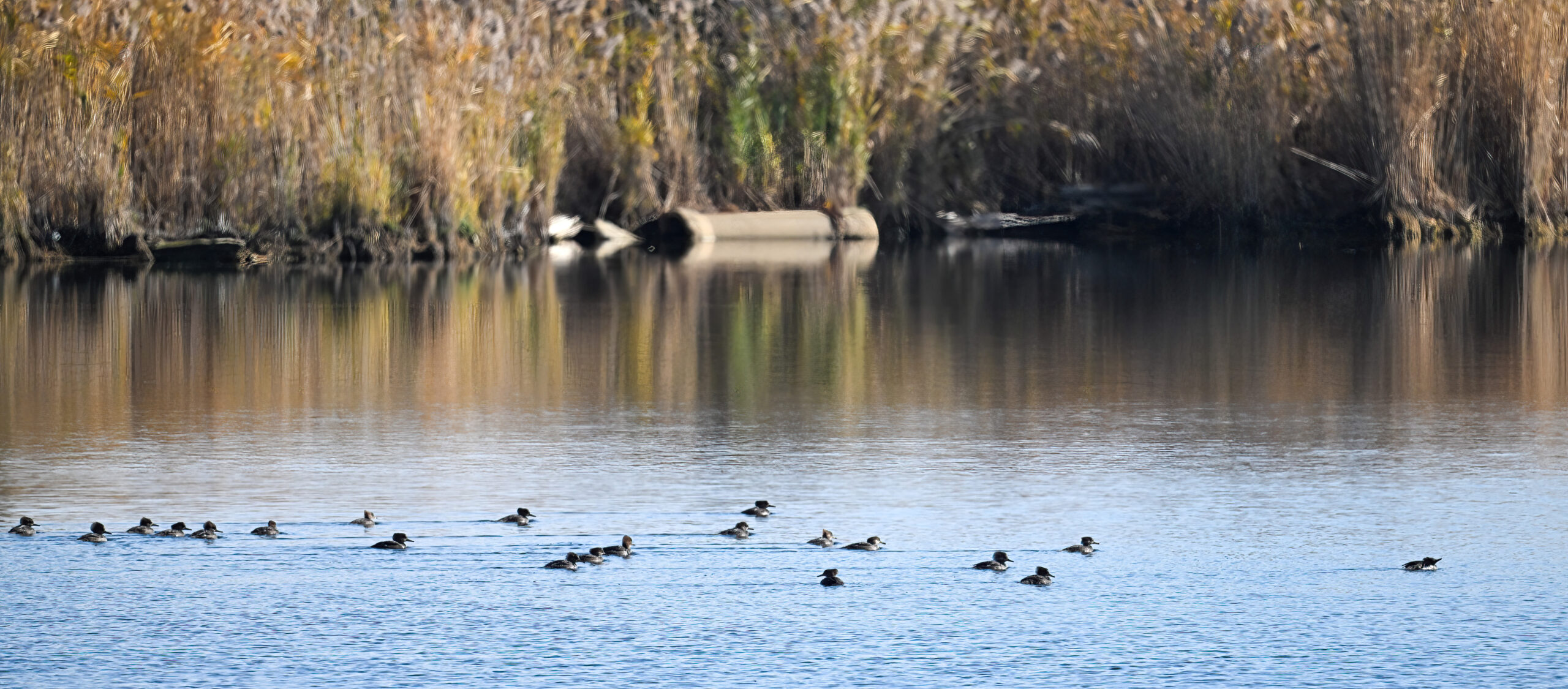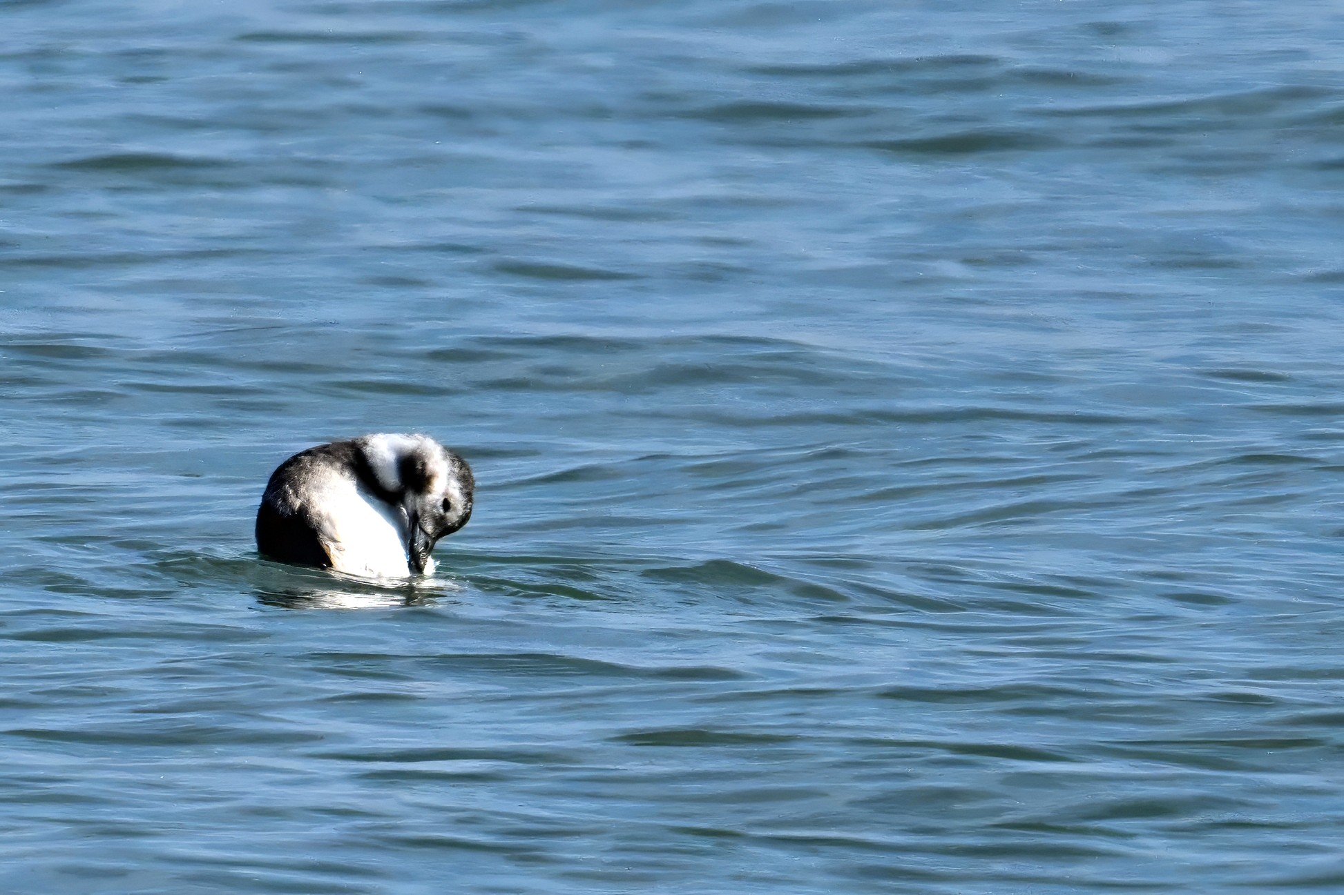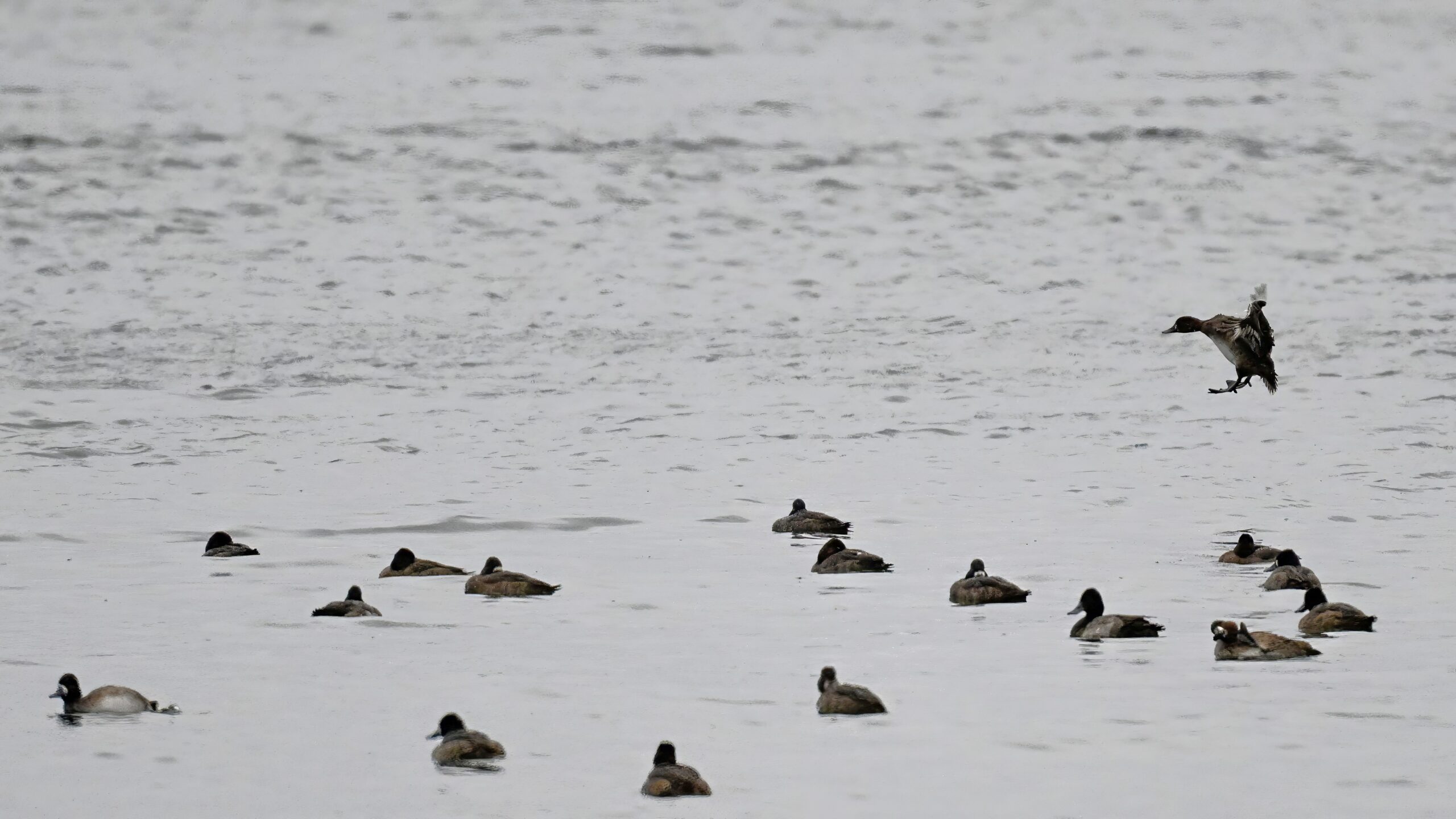 One idea for Erie County, Pennsylvania birding this time of year is peering “out to sea,” out to see Lake Erie, rather, with an eye towards passing waterfowl. Generally, this requires some sort of optics, such as a spotting scope or giant camera. Here, @ 1200mm from Chatauqua Park, on the east side of the City of Erie, generally southeast across outer Thompson Bay from Gull Point.