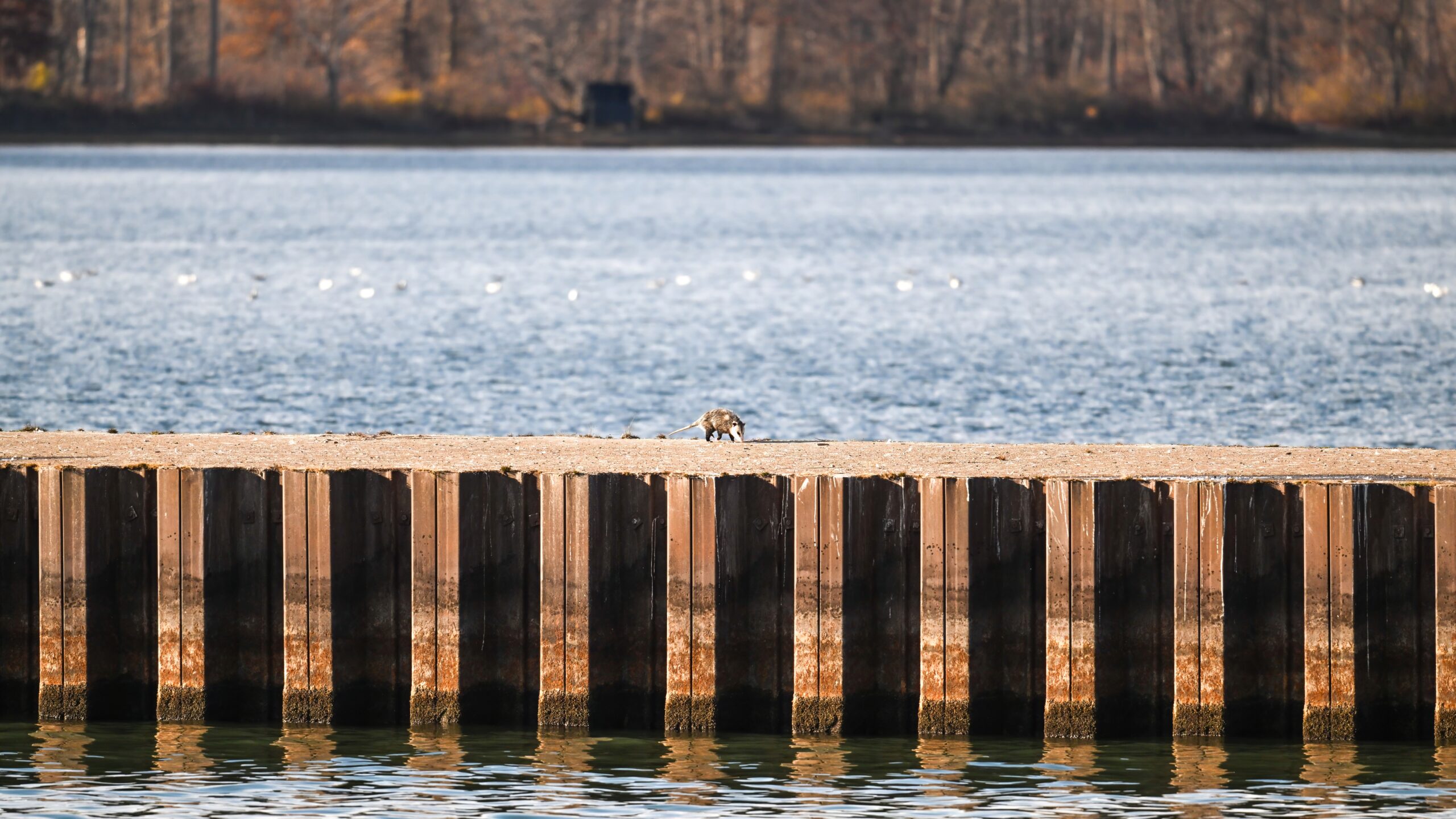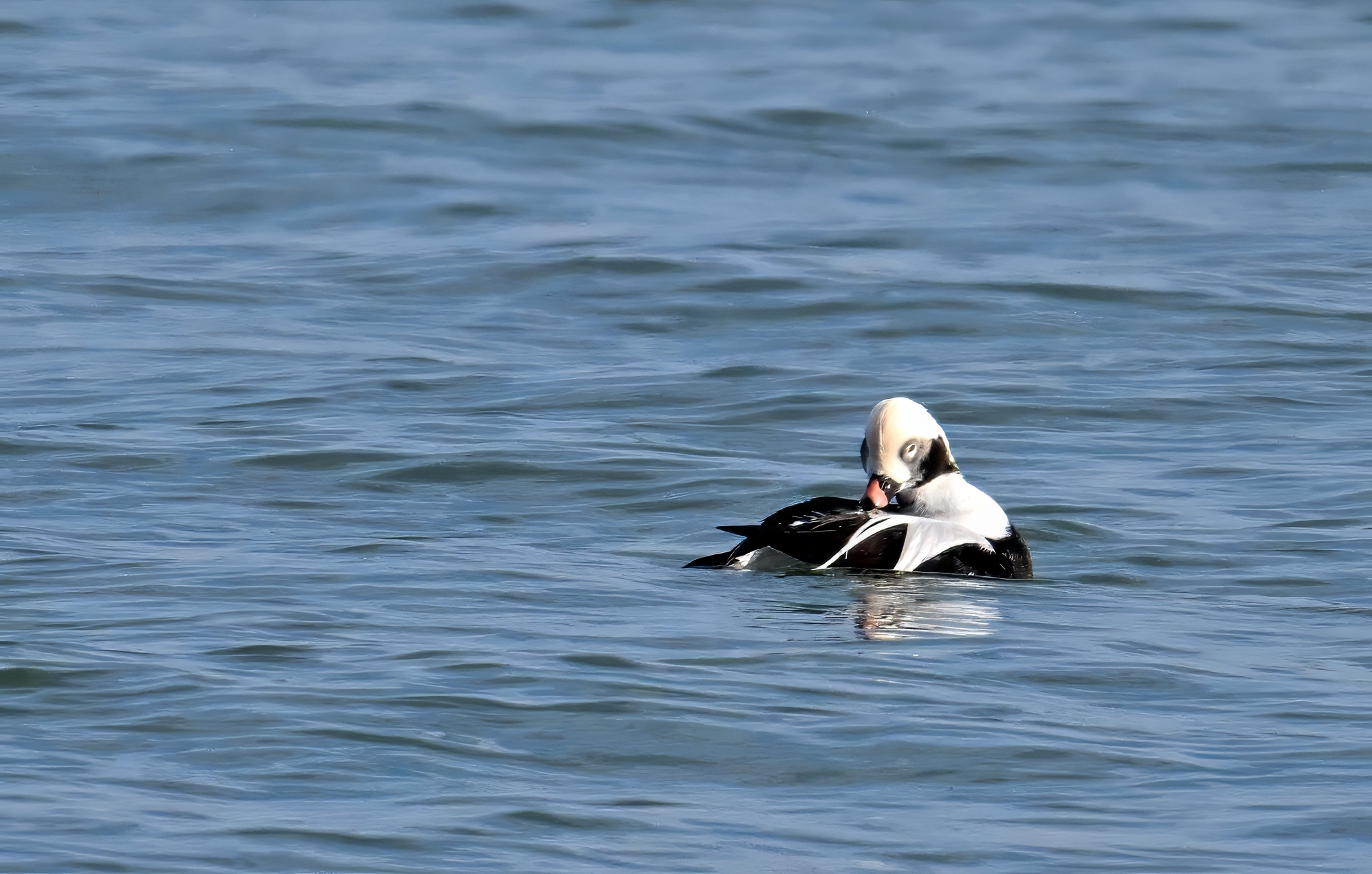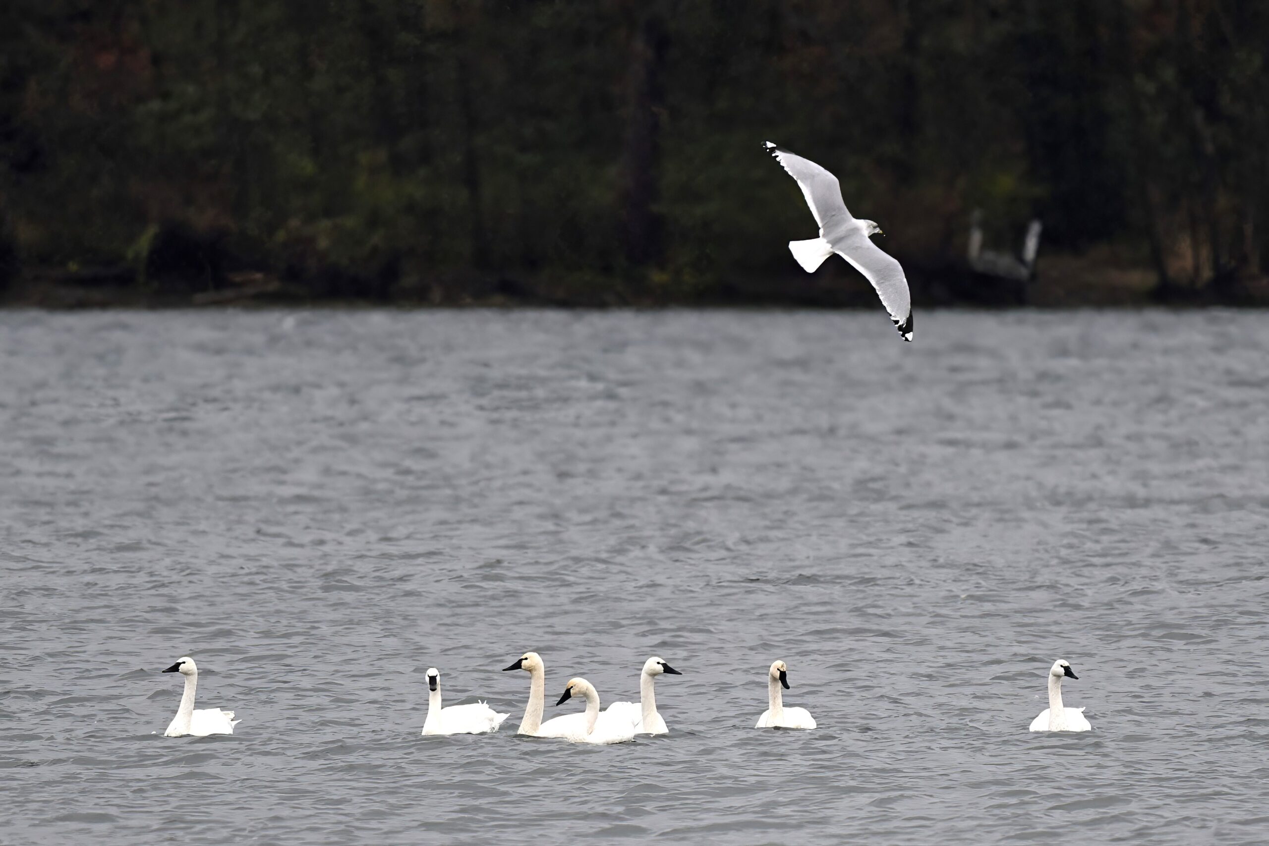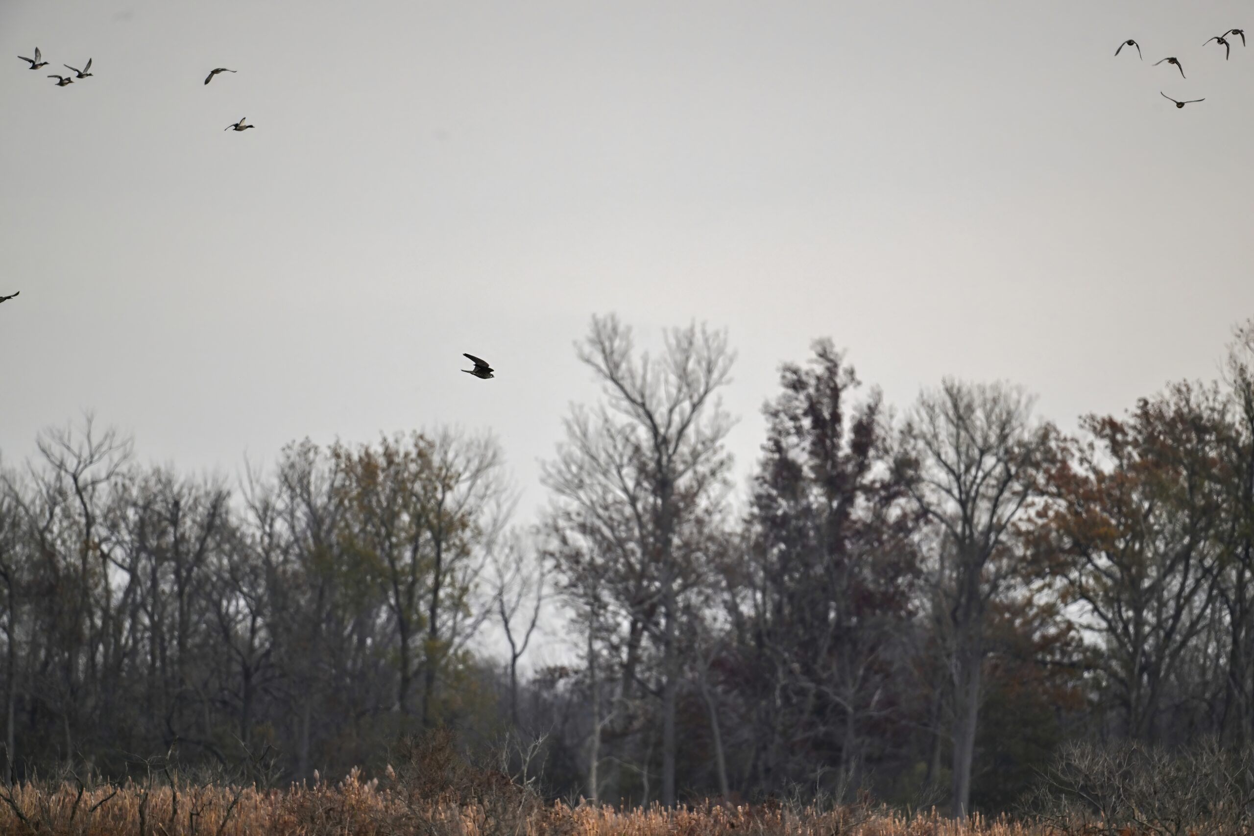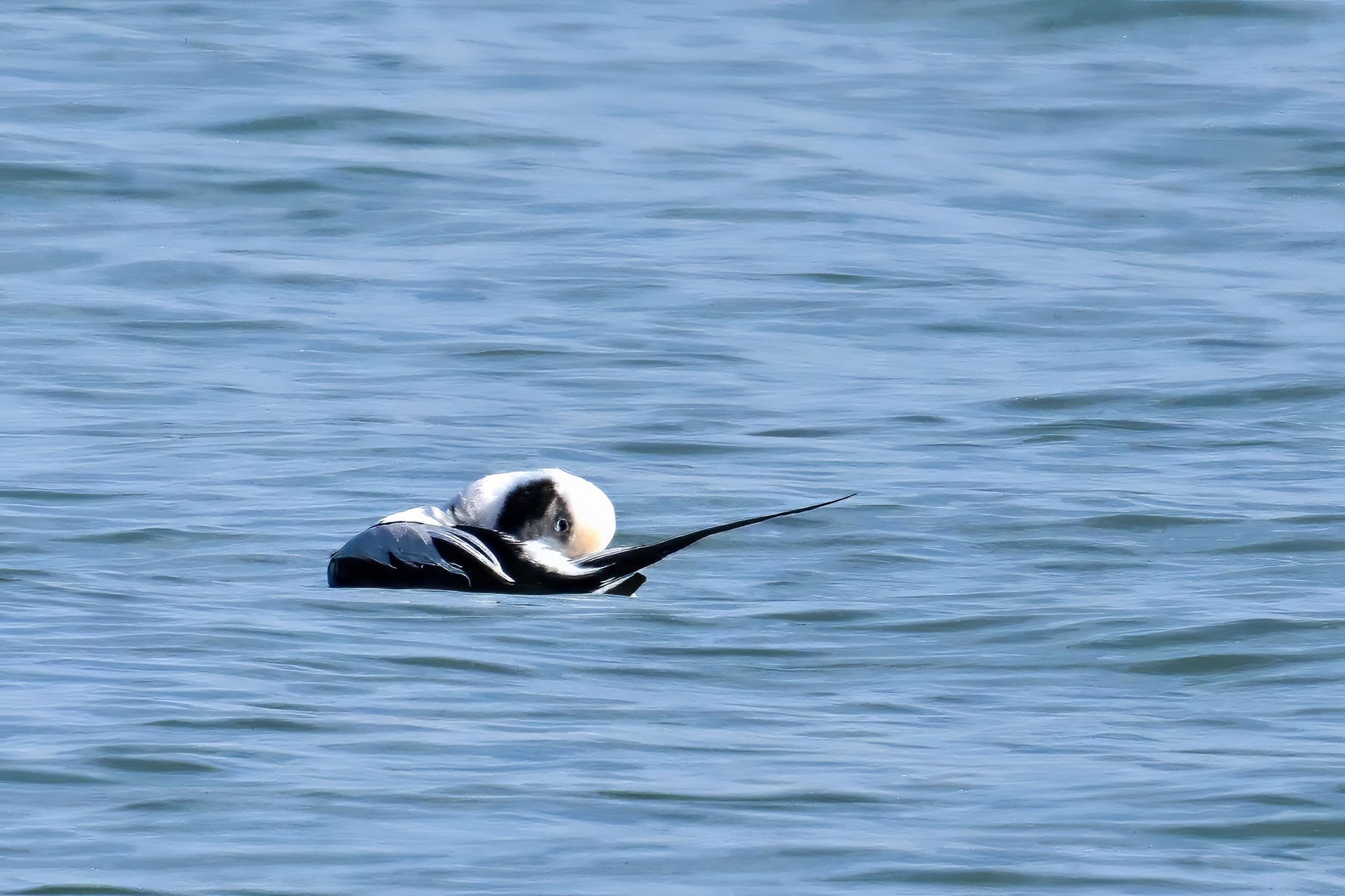 One idea for Erie County, Pennsylvania birding this time of year is peering “out to sea,” out to see Lake Erie, rather, with an eye towards passing waterfowl. Generally, this requires some sort of optics, such as a spotting scope or giant camera. Here, @ 1200mm from Chatauqua Park, on the east side of the City of Erie, generally southeast across outer Thompson Bay from Gull Point.