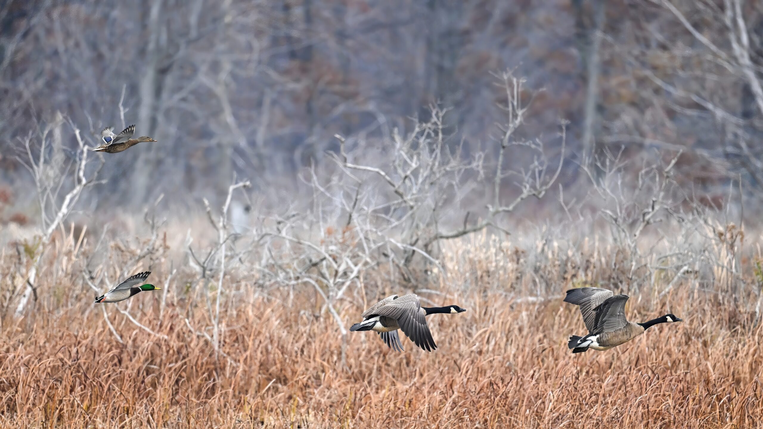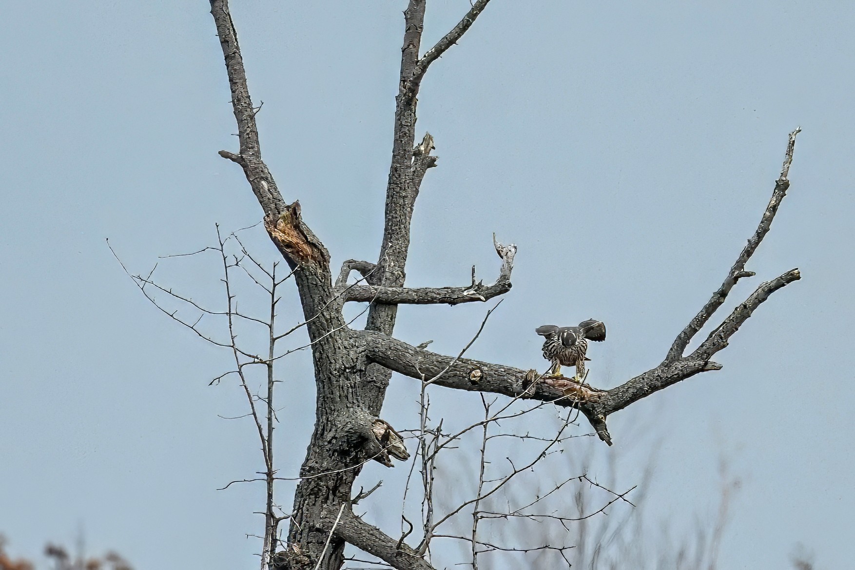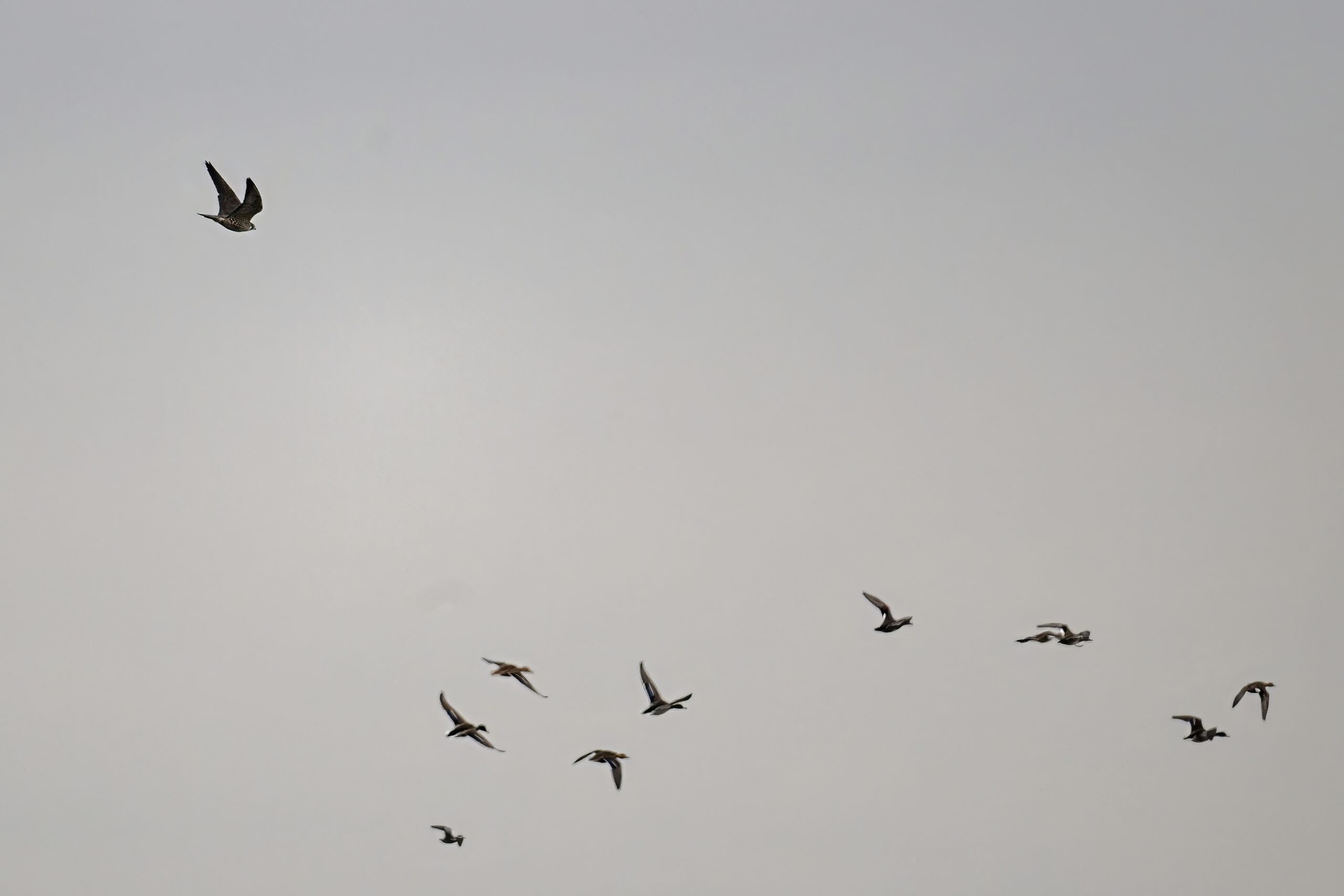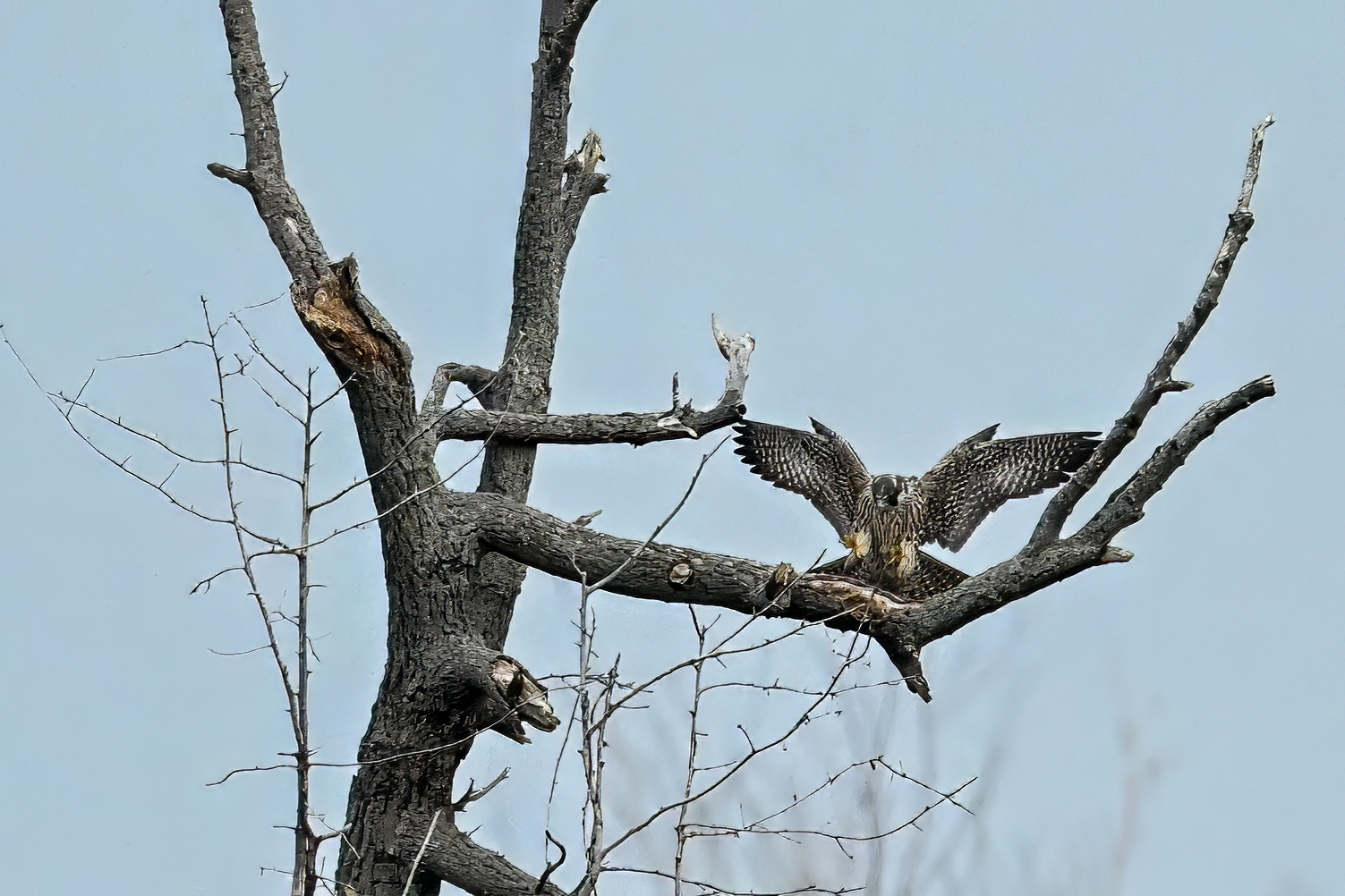 Peregrine FalconPFIFGBHPeregrine Falcon startling misc ducksFalcon w/ ducks IIRather gloomy female Hooded MerganserFalcon w/ ducks IIIFalcon flies low over the marshMallardsFalcon w/ ducks IVPFIF IICanada Geese taking flightFalcon w/ ducks VPFIF IIICanada Geese (right) + Mallards (left – male @ bottom, female @ top)Peregrine Falcon – landing approachLandingMallards taking flightLanding IIPeregrine Falcon perched in tree IIUncropped @ 600mmMallards taking flight IIPeregrine Falcon perched in tree IVFinal Falcon