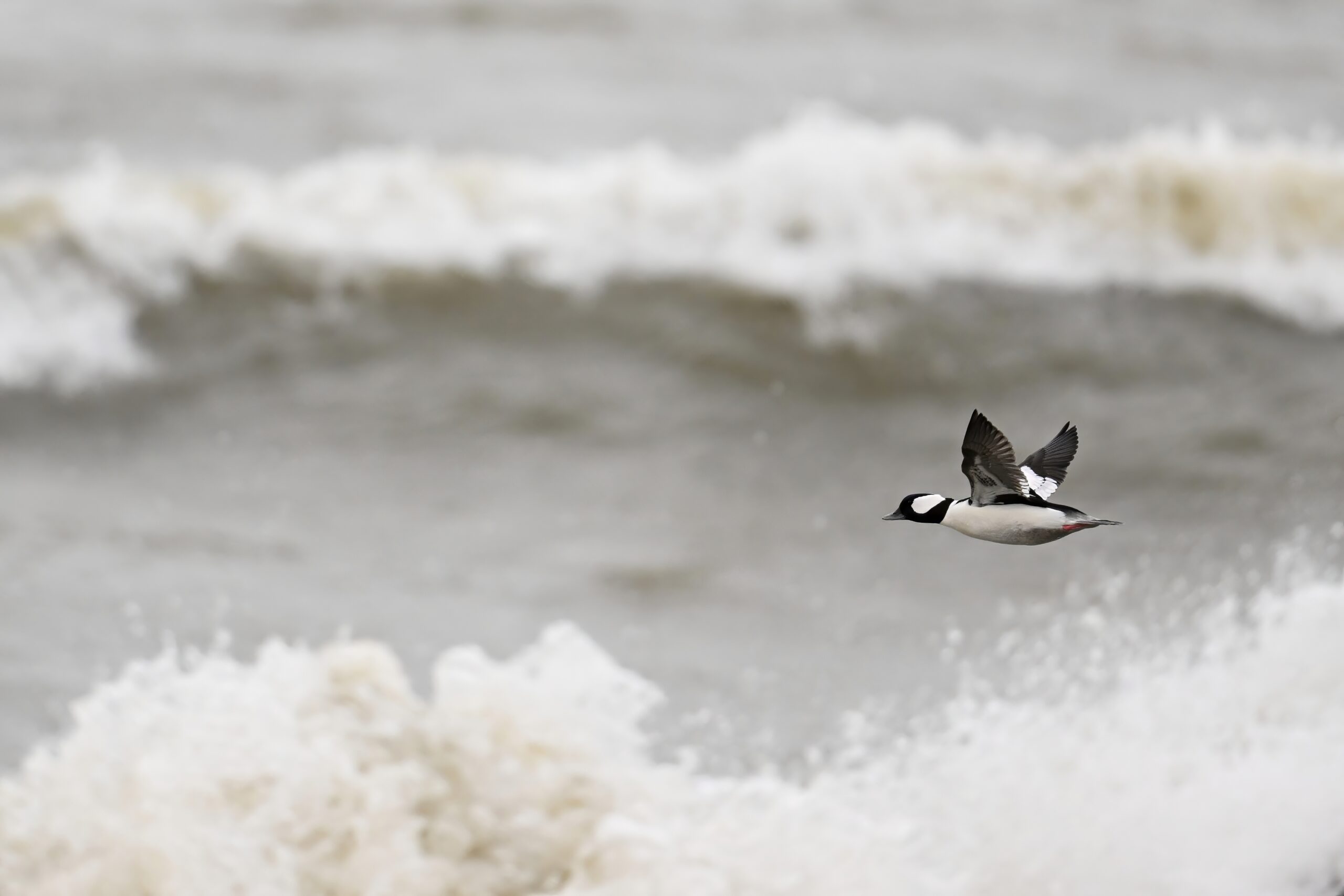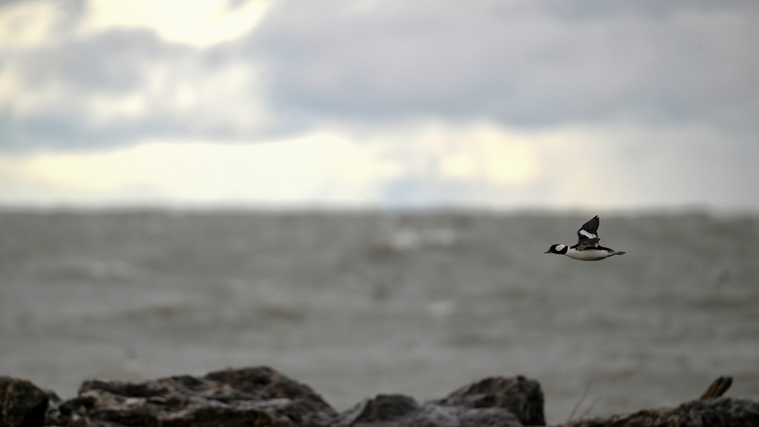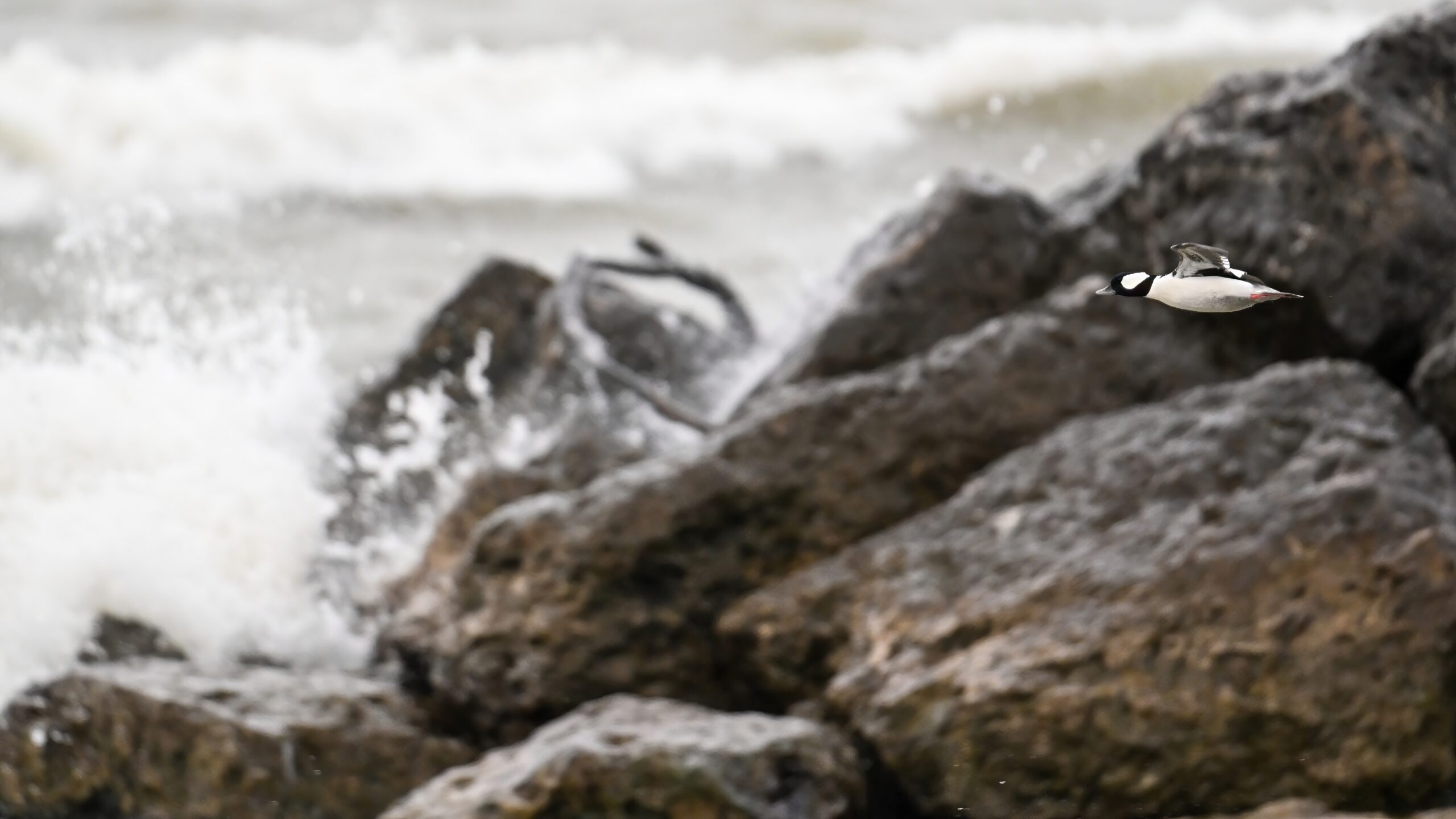 More Bufflehead in flight along the beach @ outer Lake Erie:
