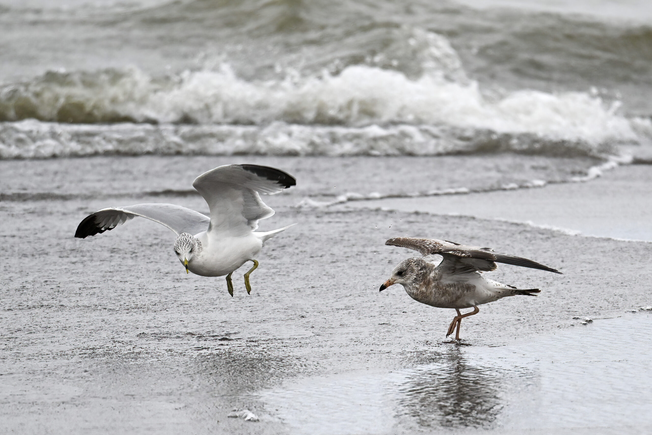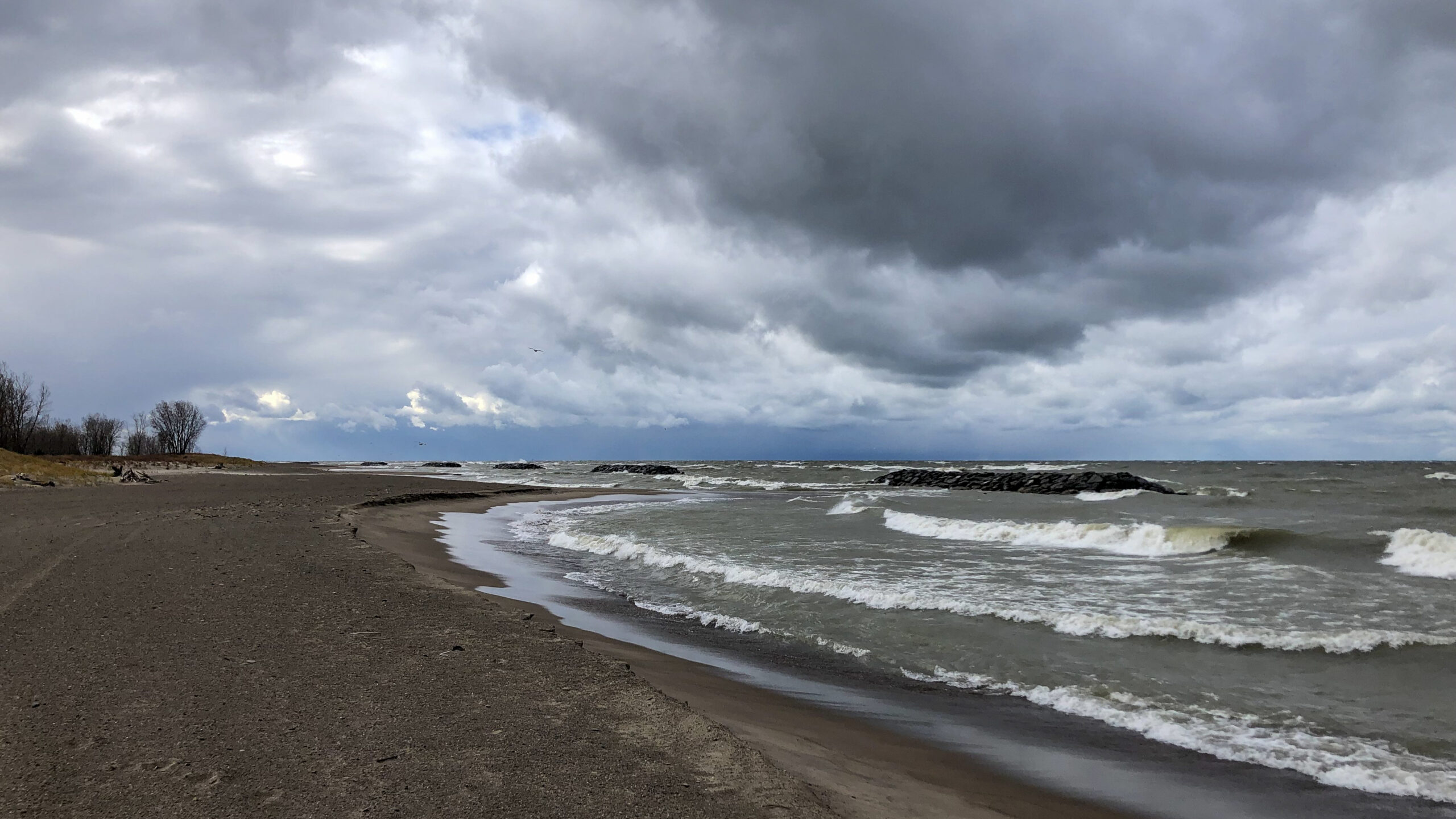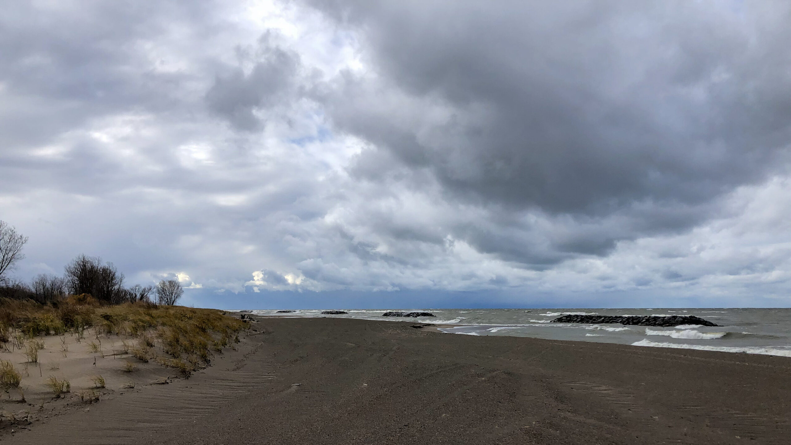 After a spell of highly unsettled weather in Erie County, Pennsylvania, looks like it might be a nice day (Wednesday) today, w/ some sunshine. Weather Saturday was unusually warm (above 17 deg C / 63 deg F) with localized thunderstorms, Sunday it turned colder with mixed wintery precipitation, sometimes locally heavy, then cloudy/cold/windy since then. These photographs taken on the beach at Sunset Point on Sunday at Presque Isle State Park, under amazingly unpleasant (very windy and bitterly cold) conditions.