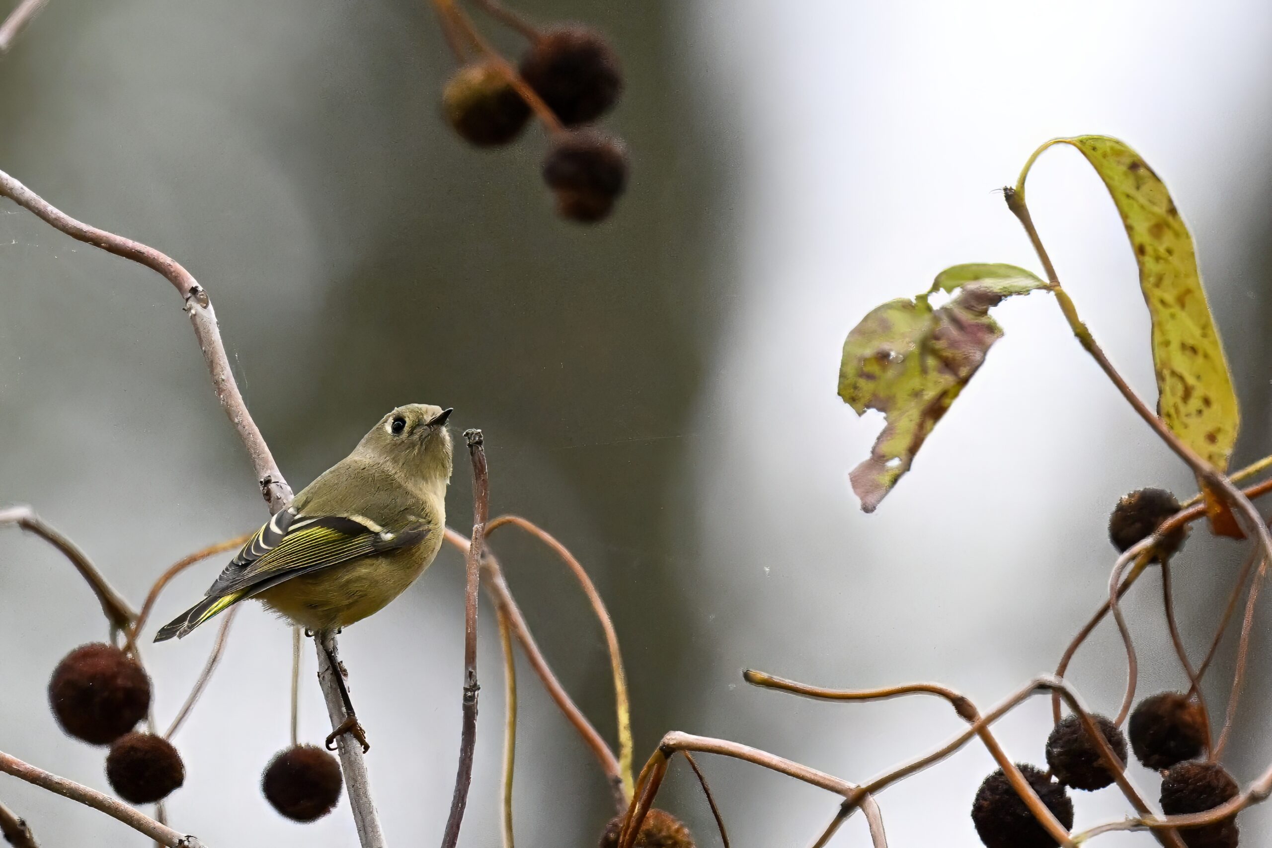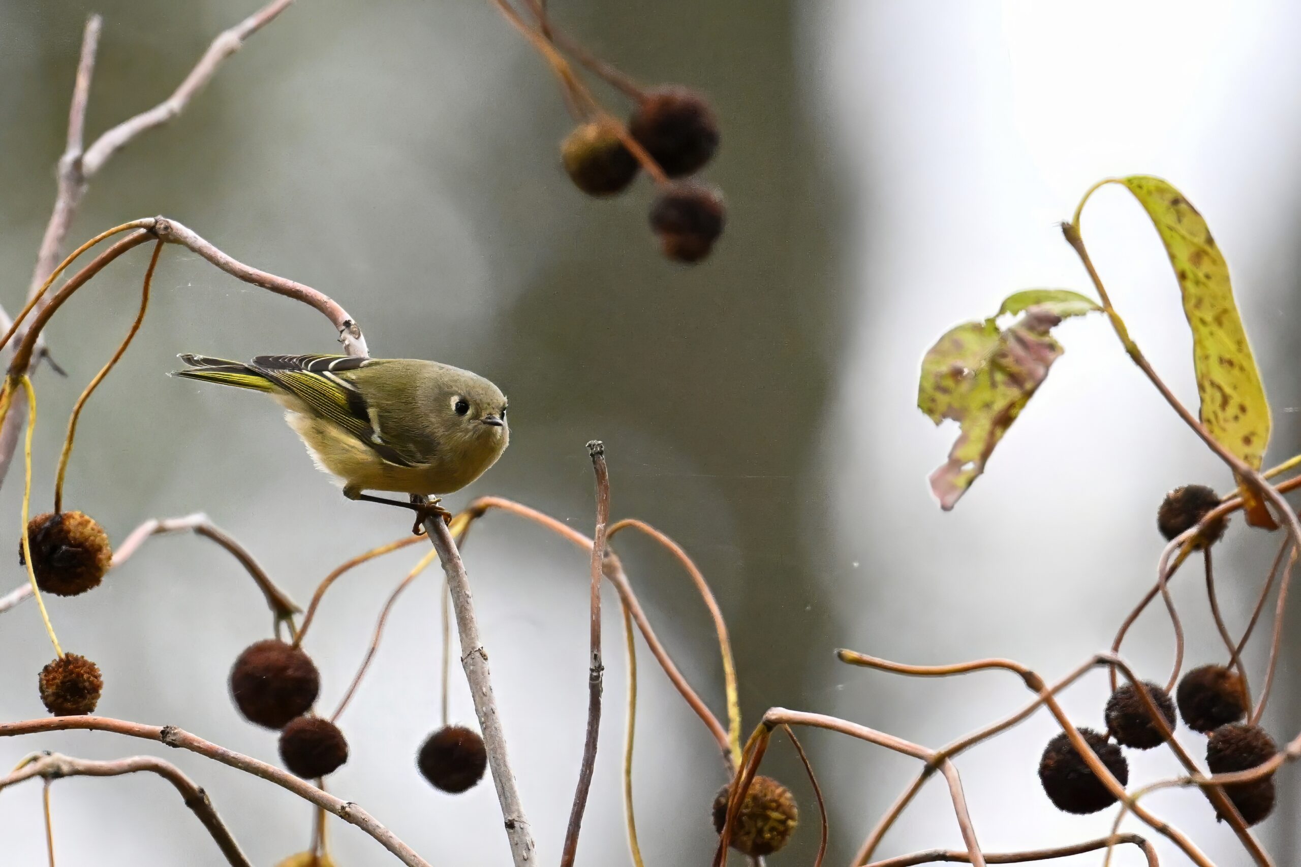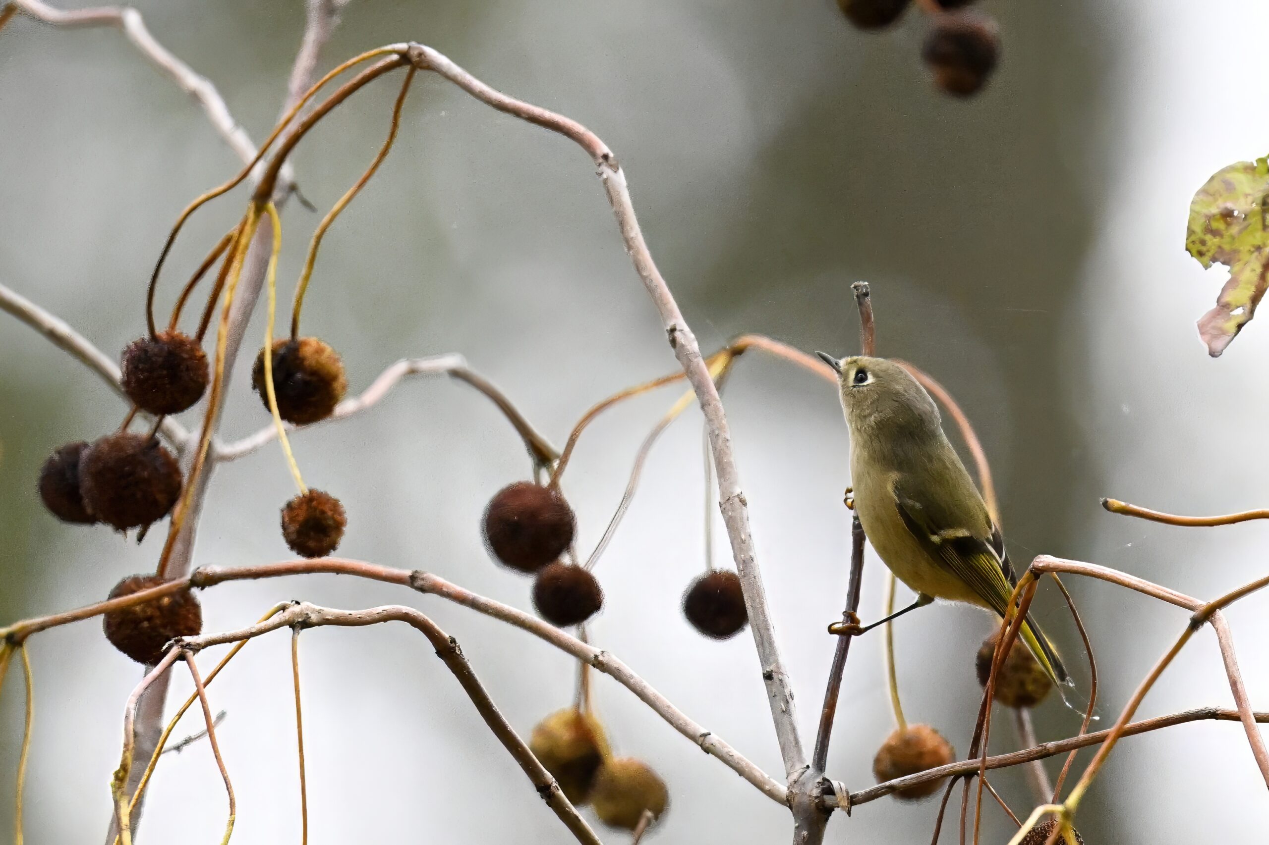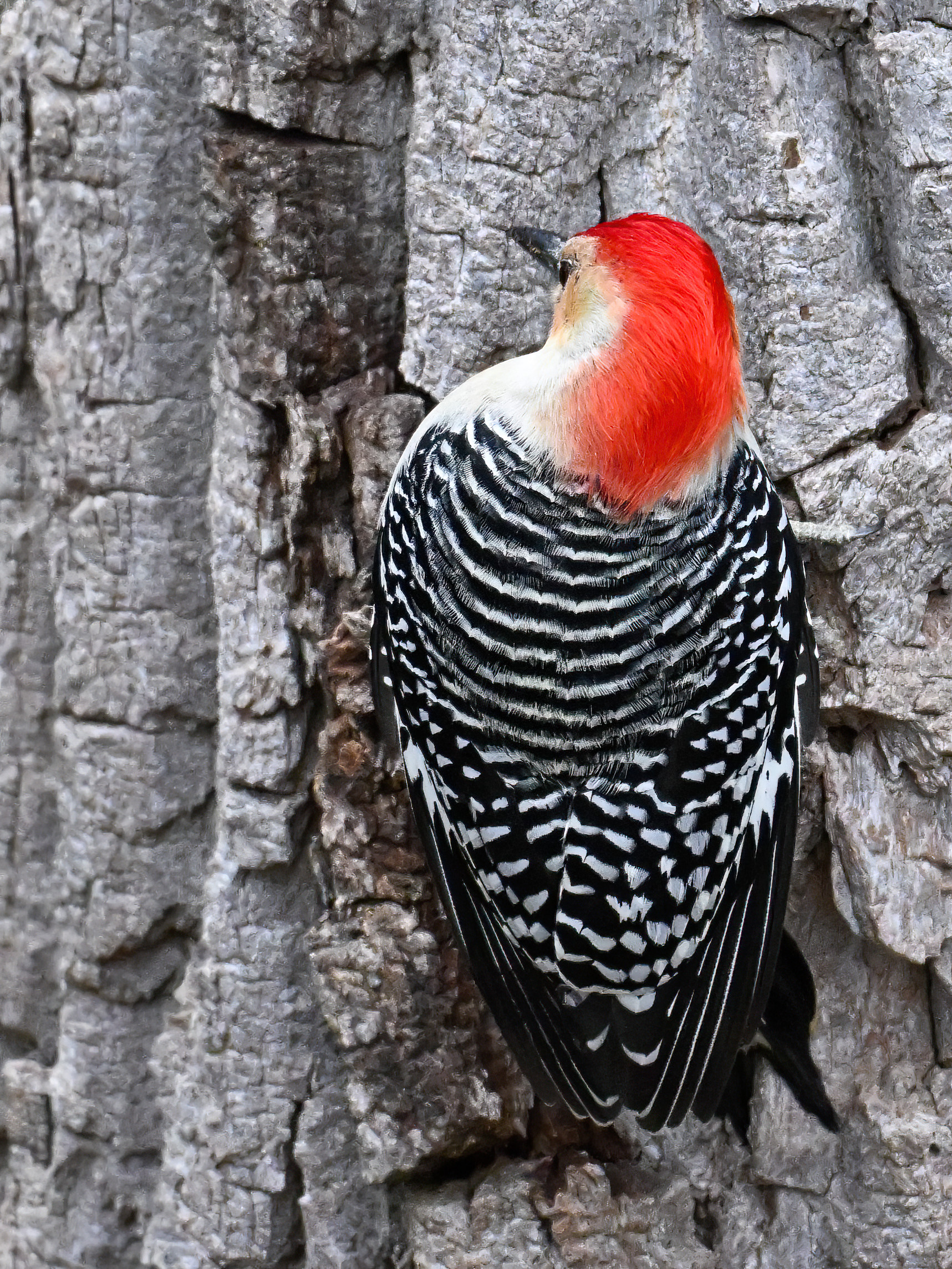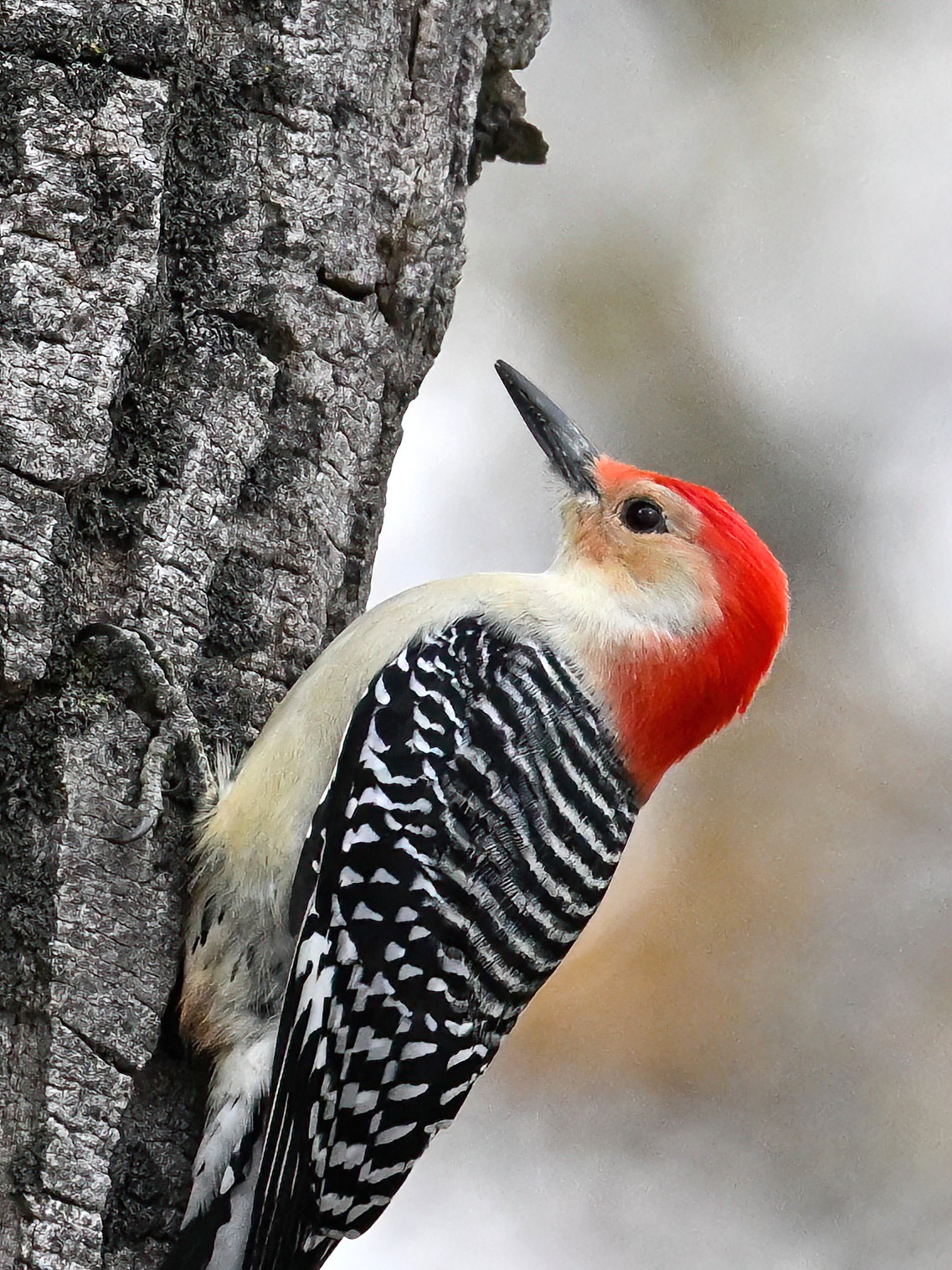 Rather awful weather in Erie County, Pennsylvania for yesterday’s Veterans’ Day holiday in the U.S. – overcast and cold with wind and snow. Nevertheless, plenty of nice bird activity for brief field operations, including this beautiful Red-bellied Woodpecker along the main entrance road at Presque Isle State Park: