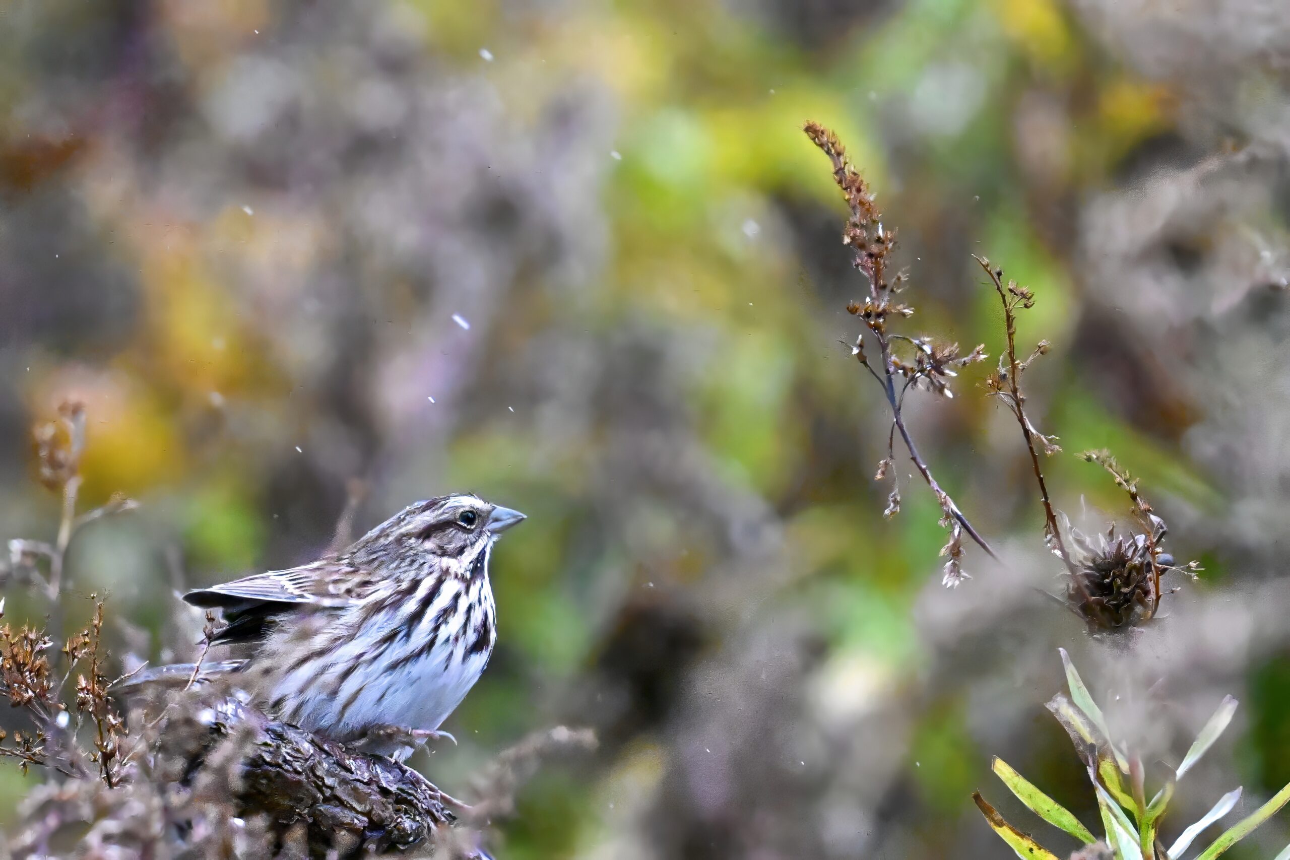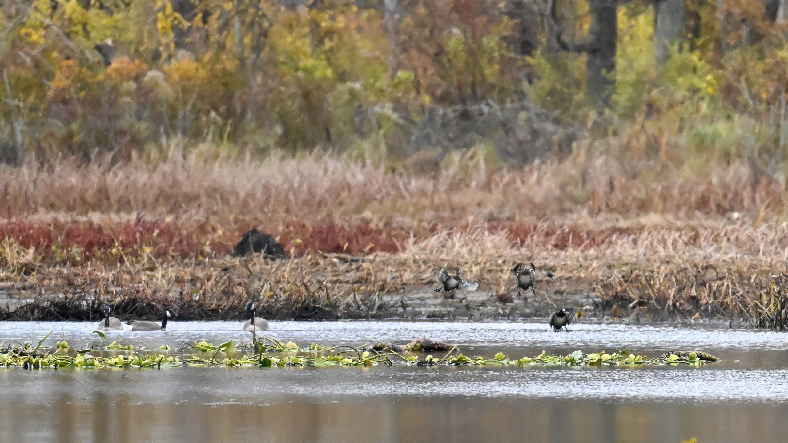 Otherwise, lots of nice, seasonal waterfowl activity, + sparrows, etc.: