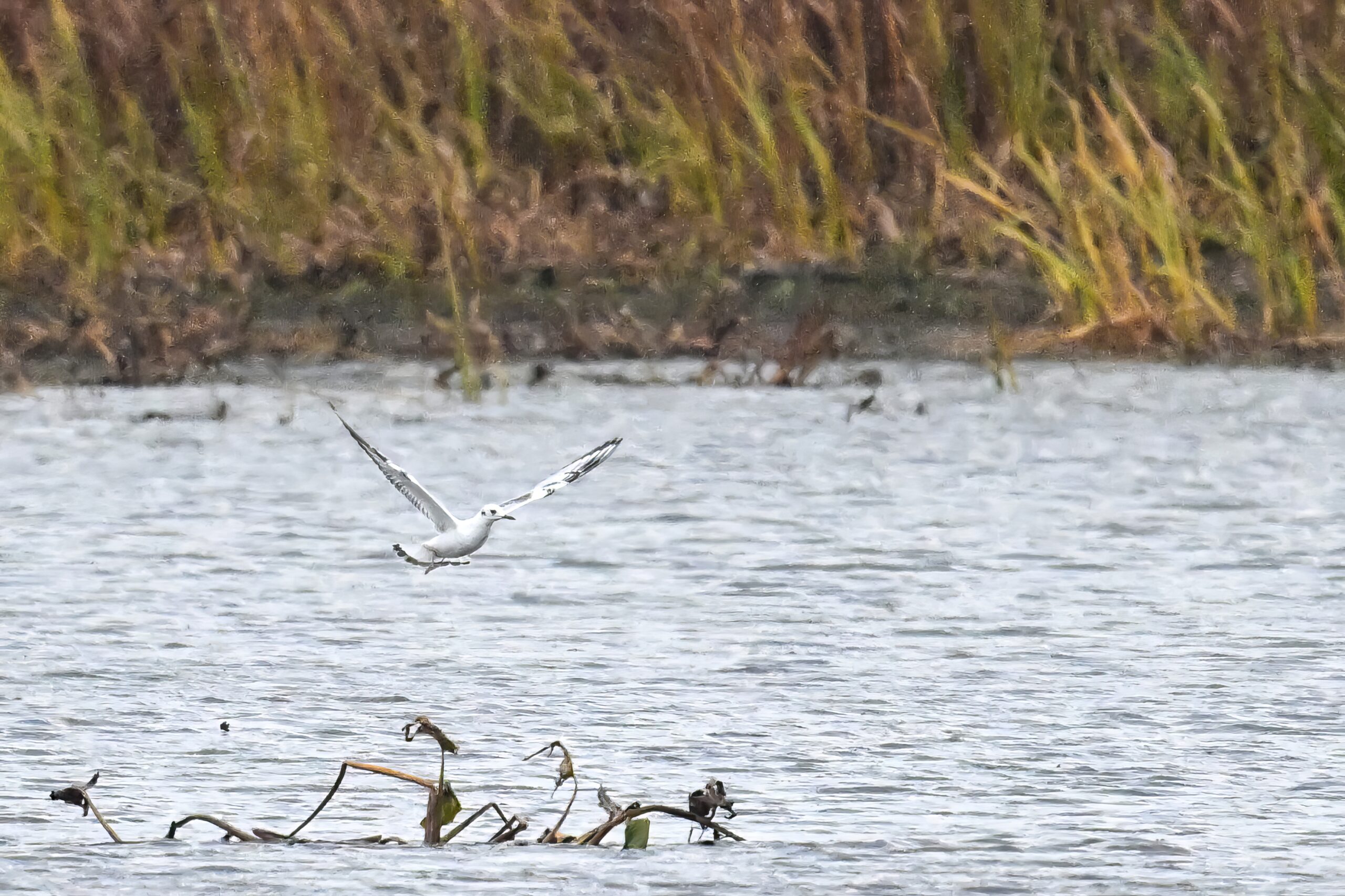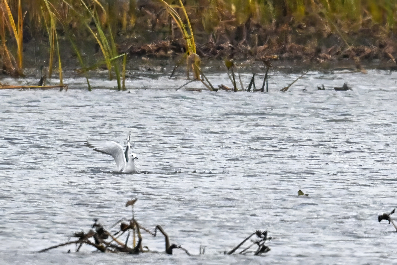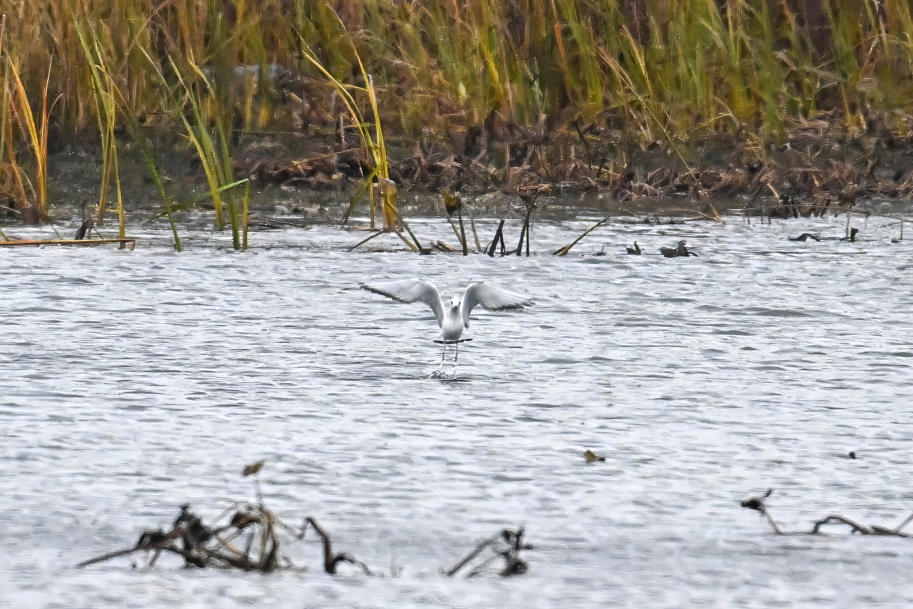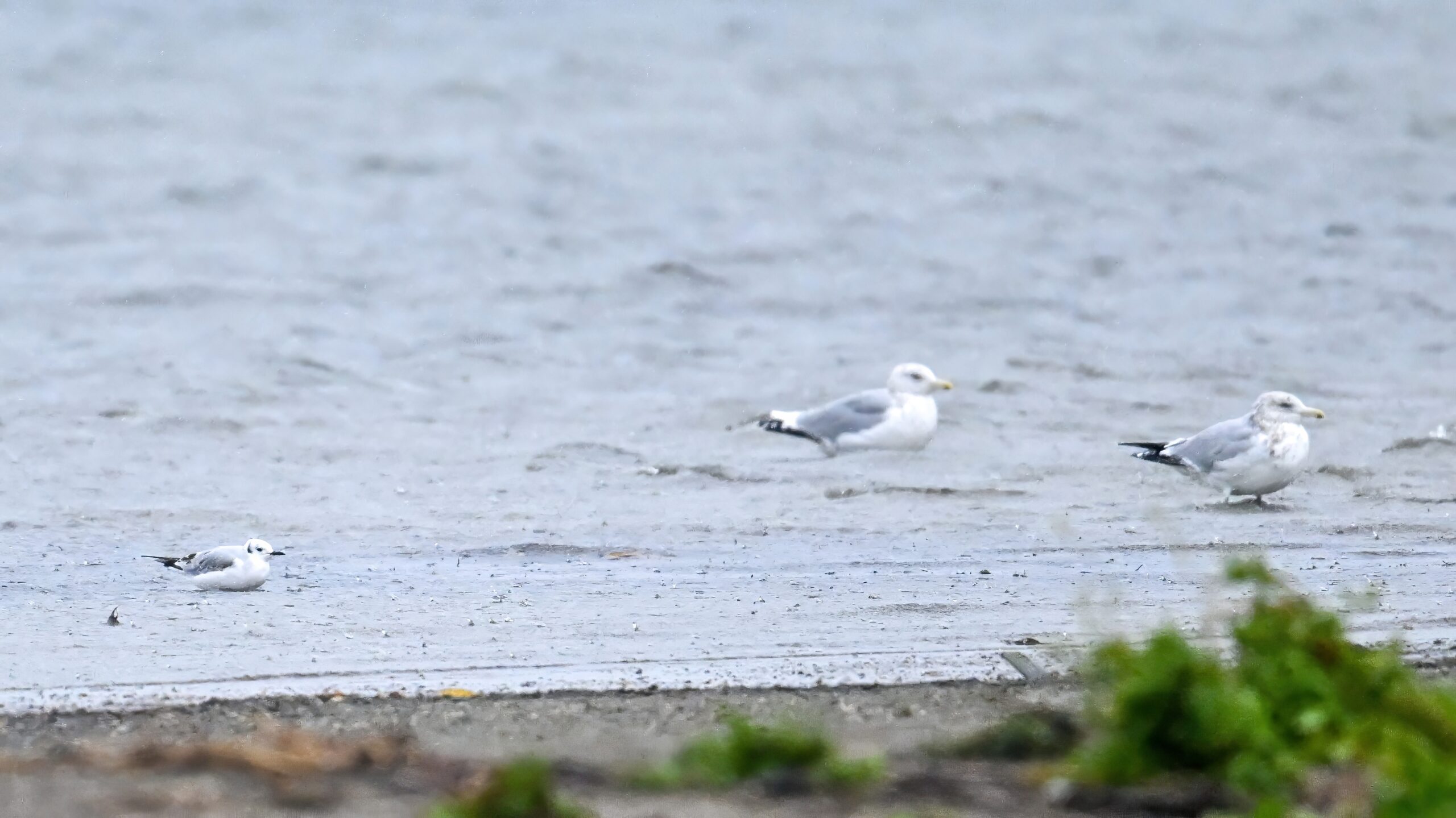 Finally, the Bonaparte’s Gull was ‘out and about’ finally, dipping into the rainy lagoon: